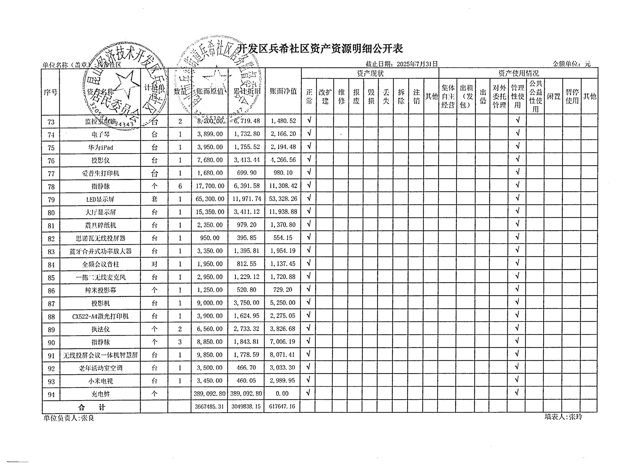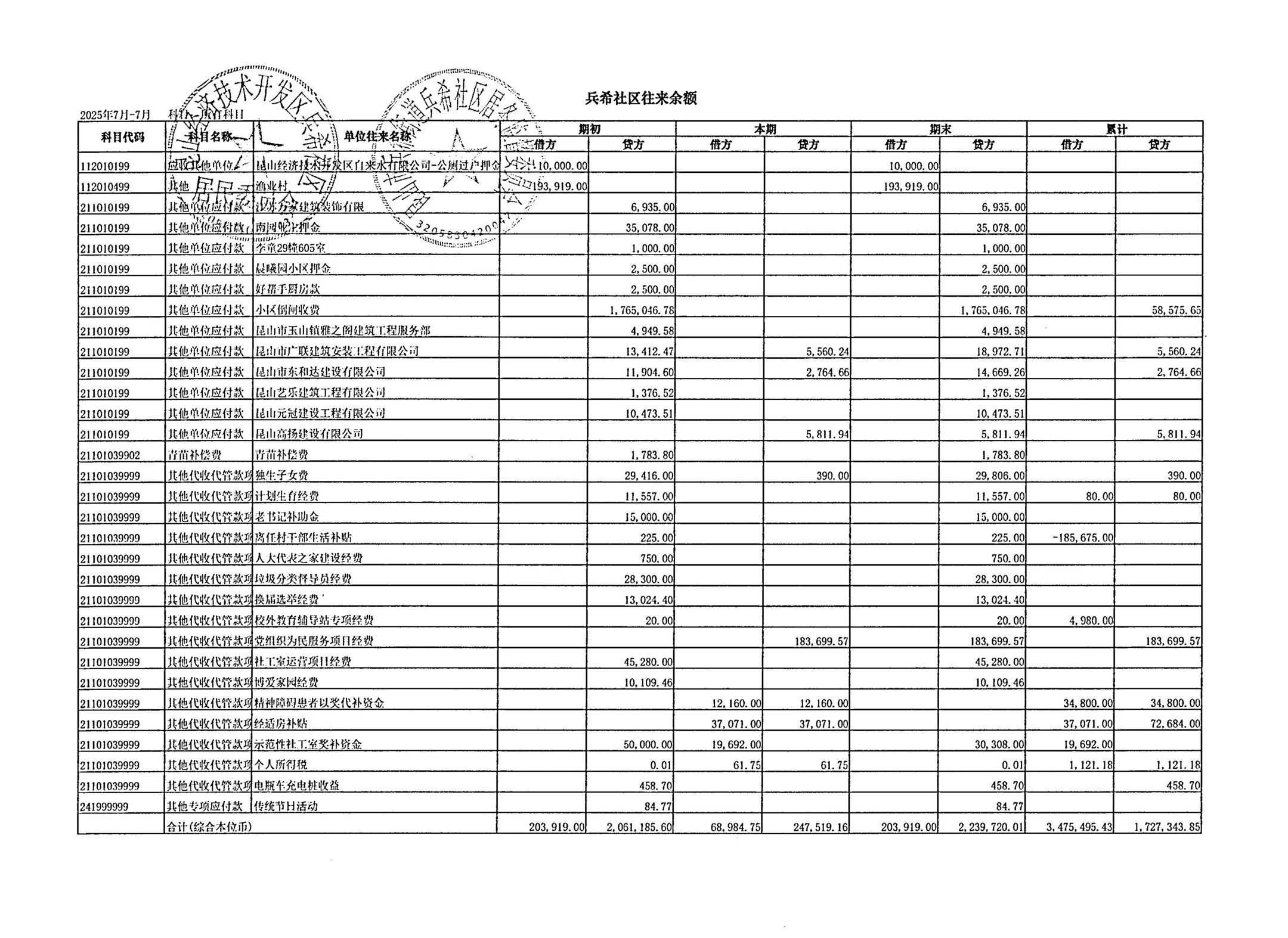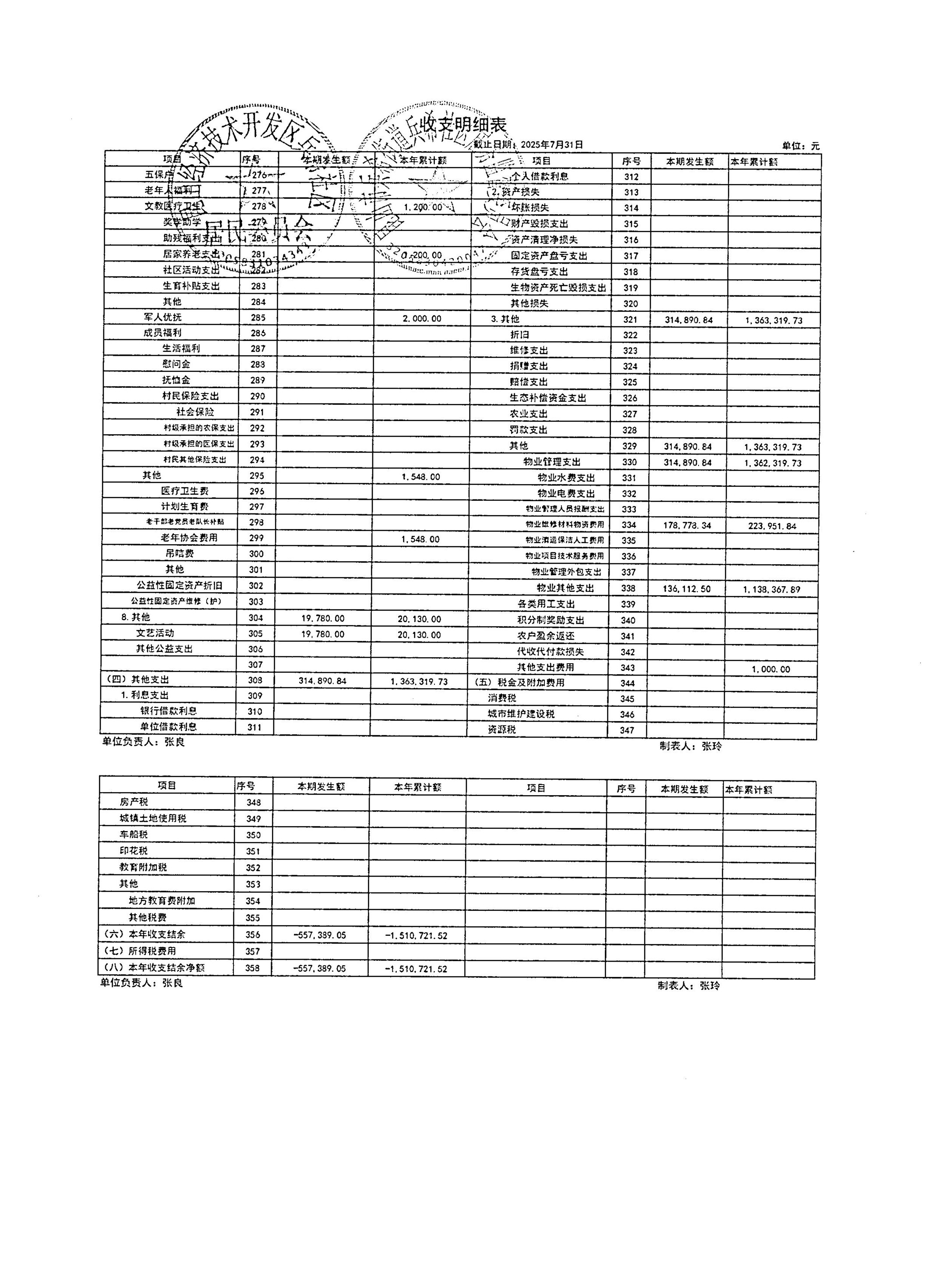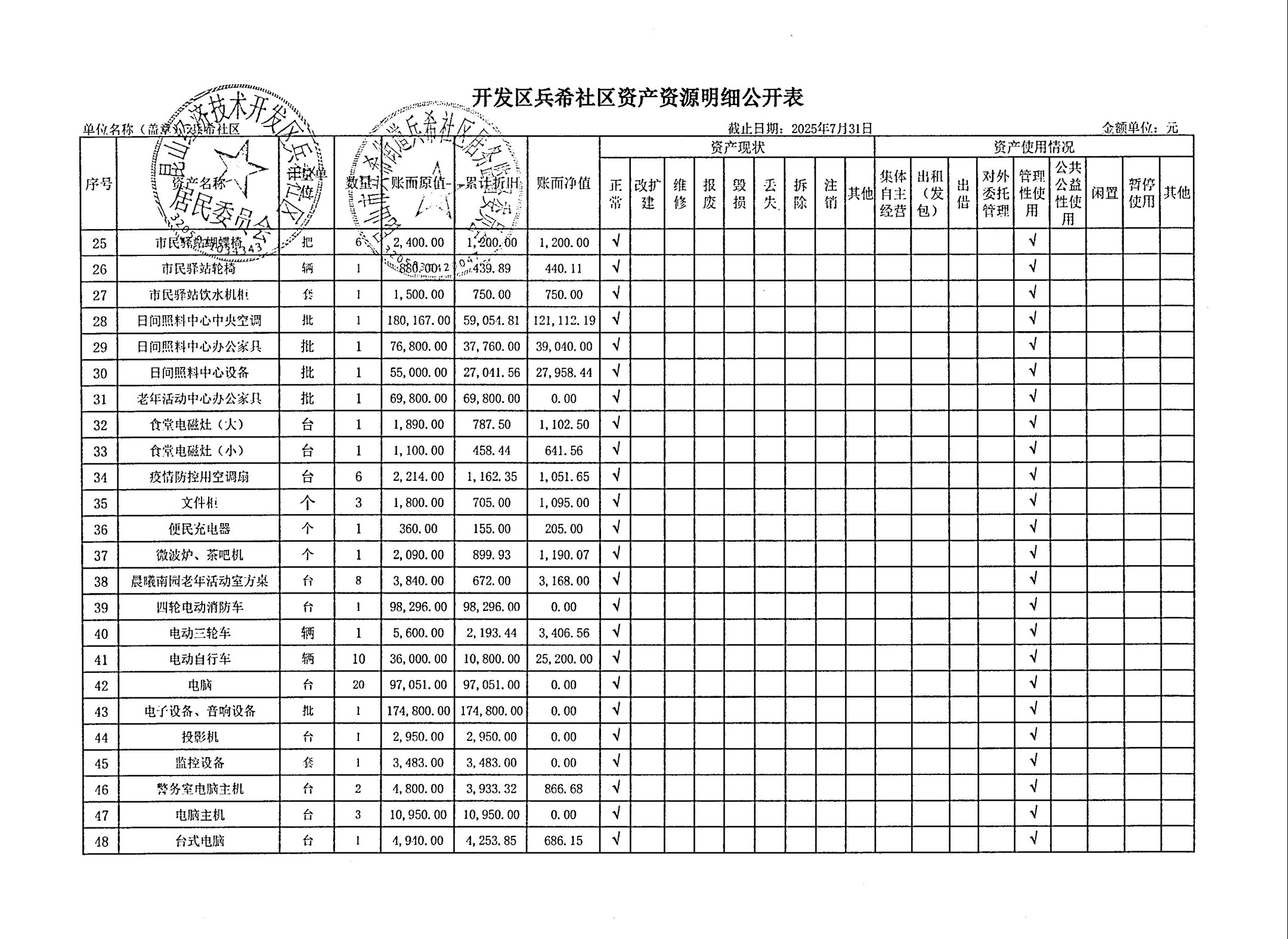 2025年8月兵希社區(qū)財(cái)務(wù)公開