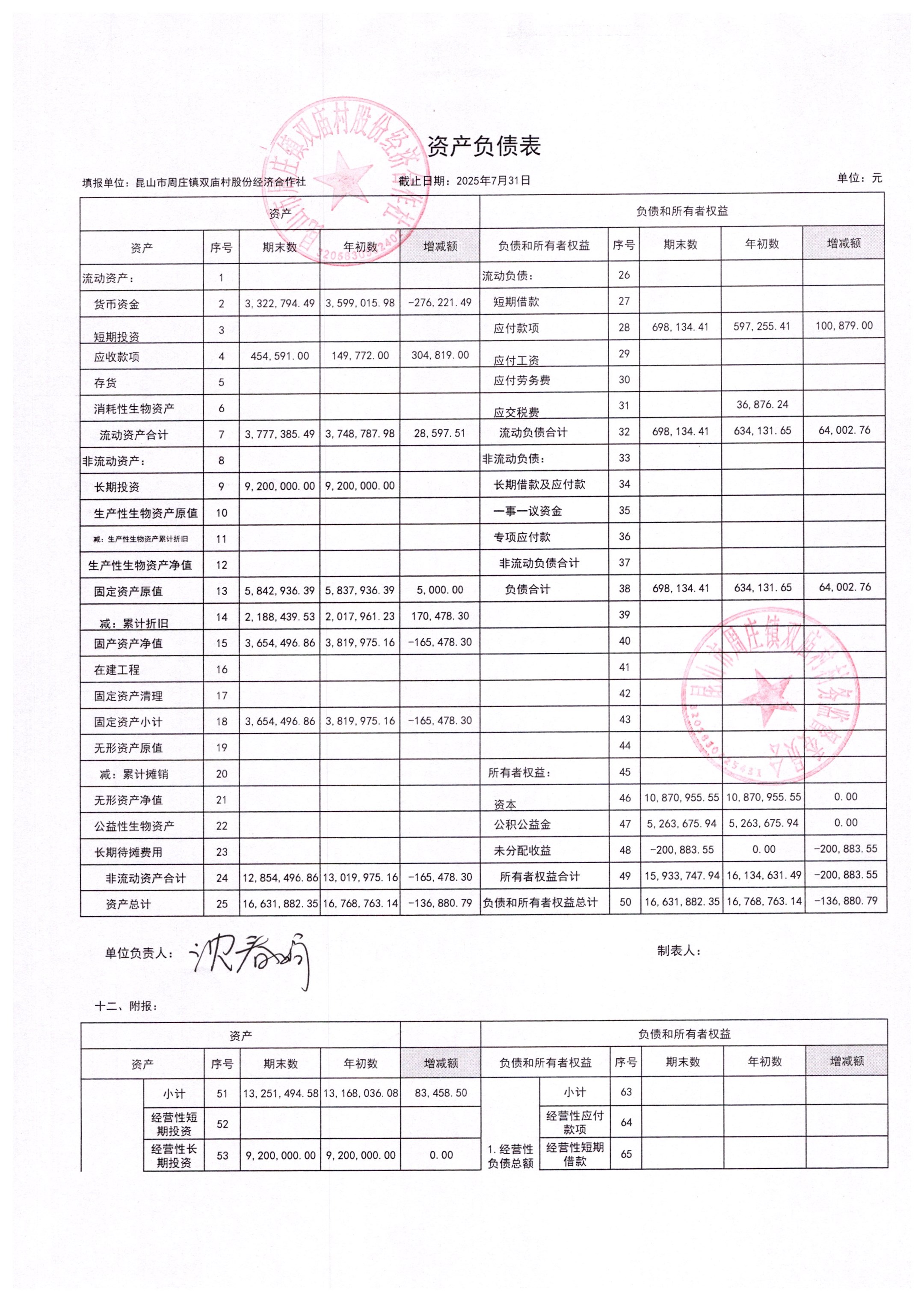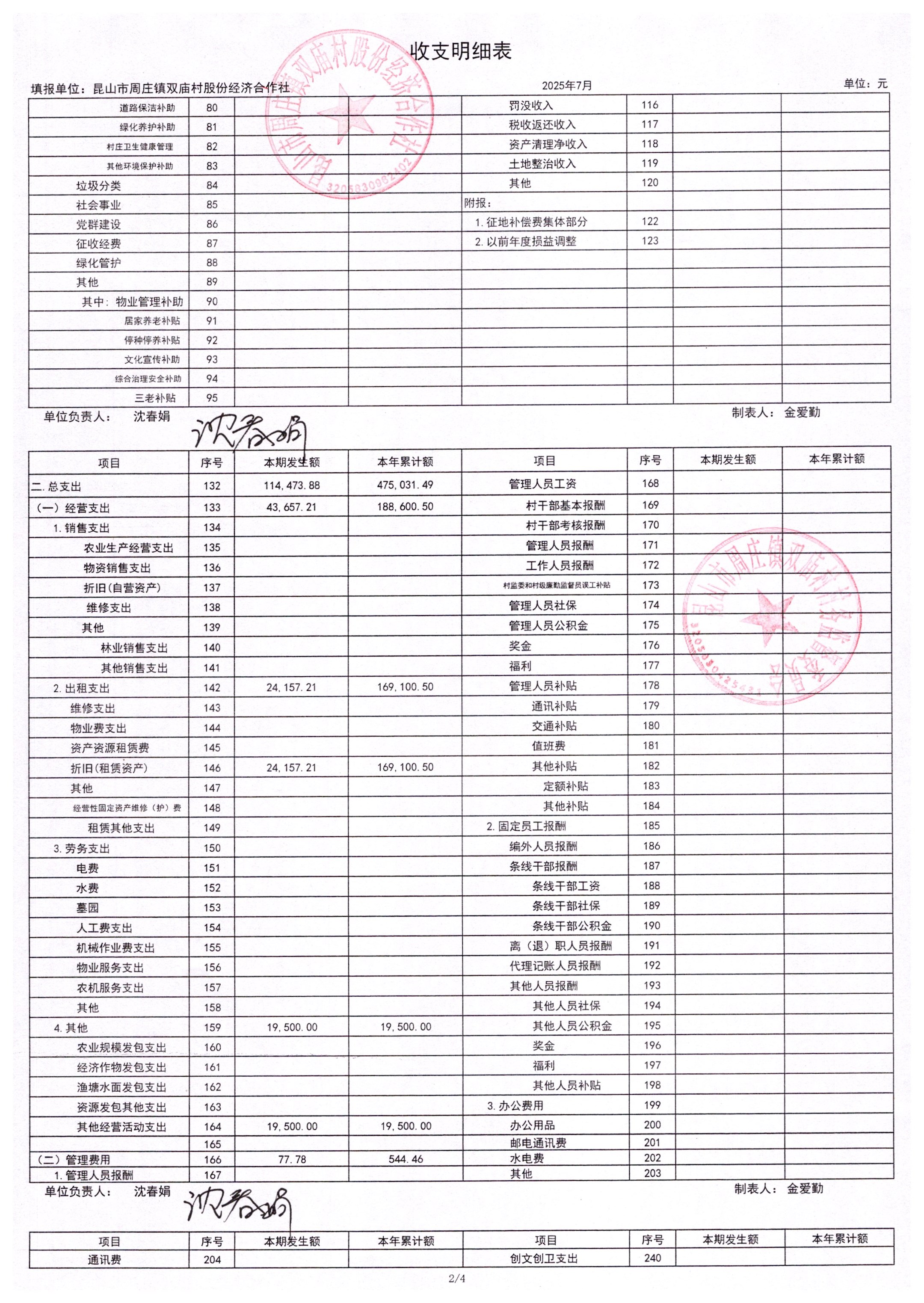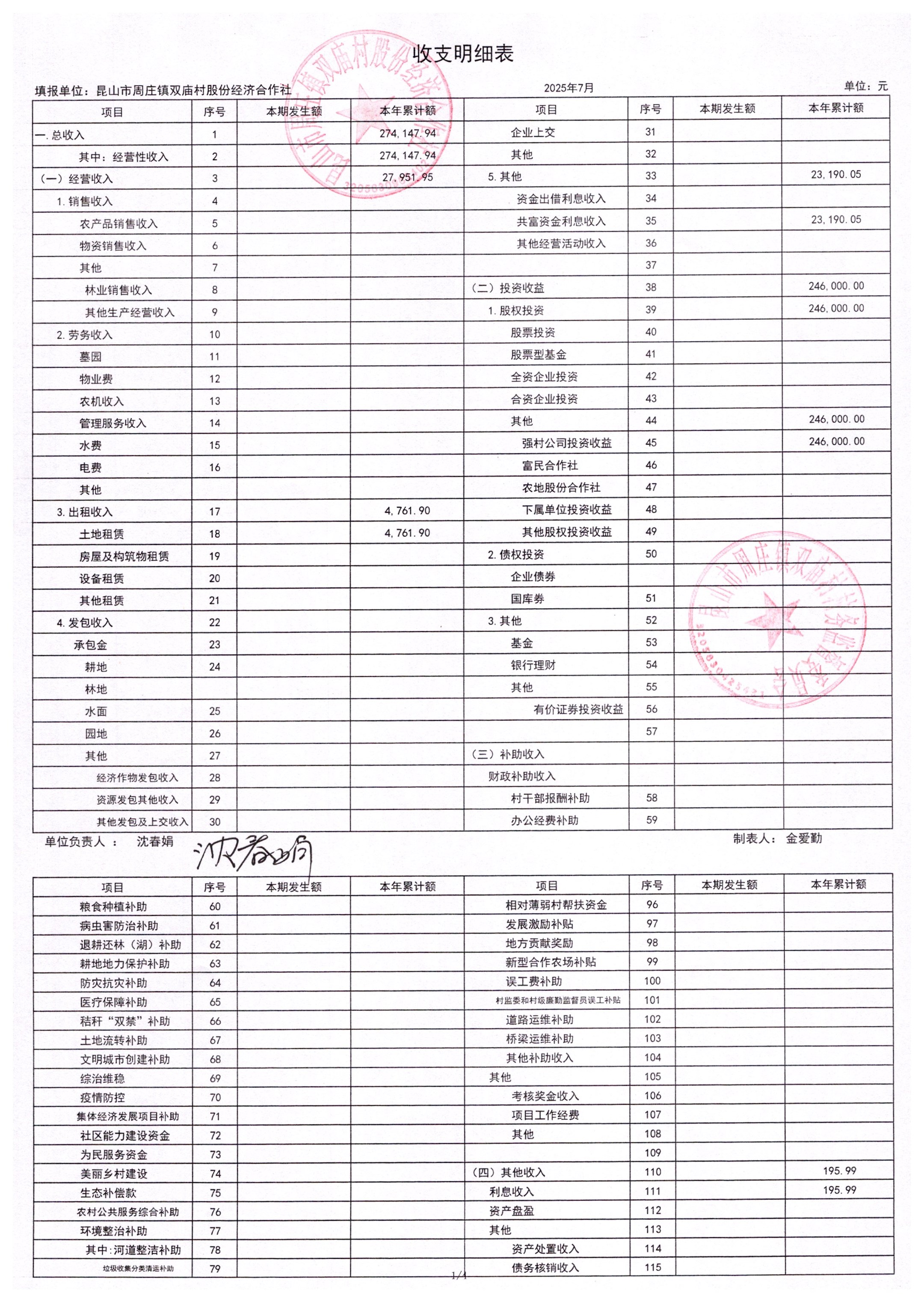 2025年7月財務公開-雙廟村股份經(jīng)濟合作社財務公開