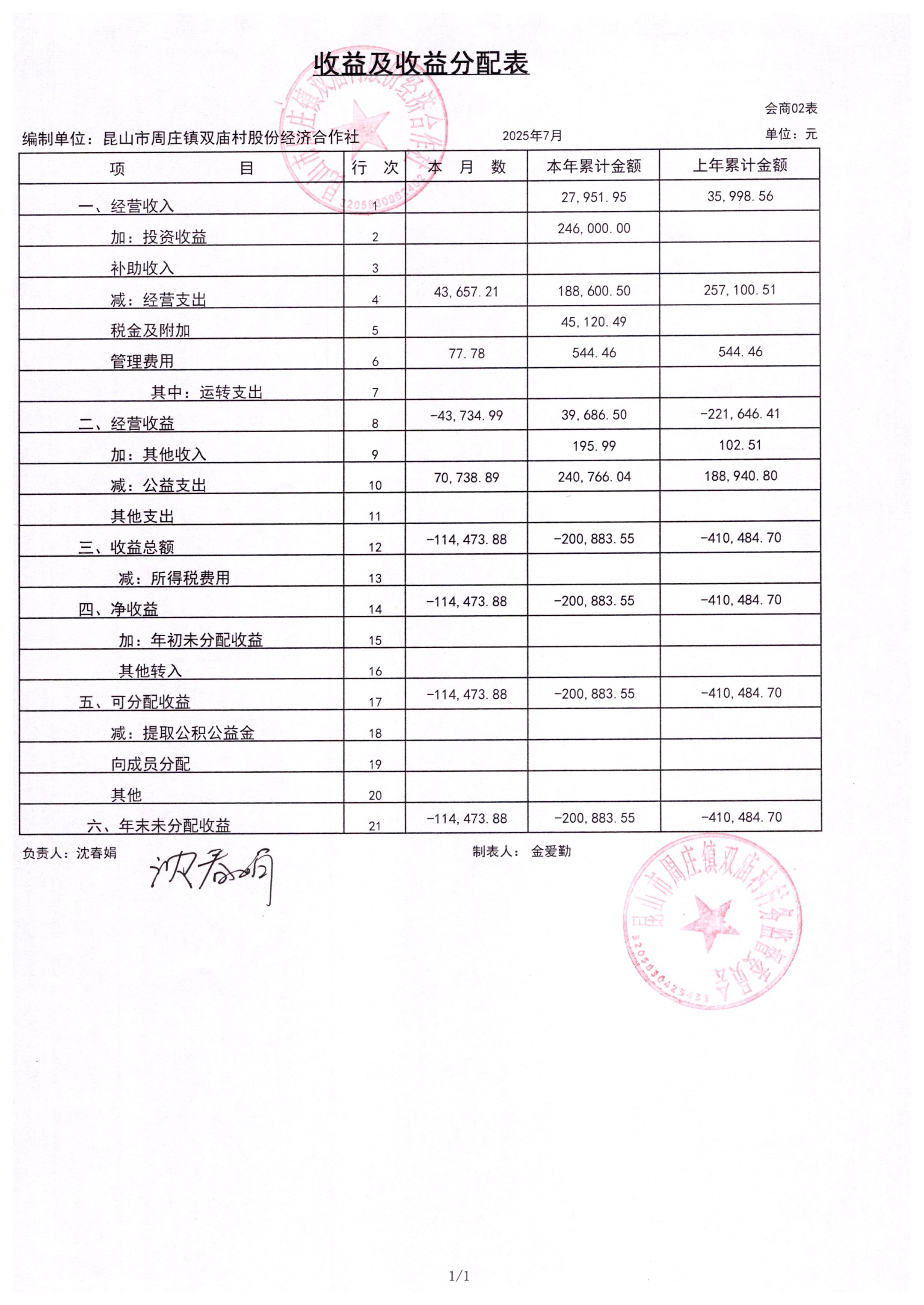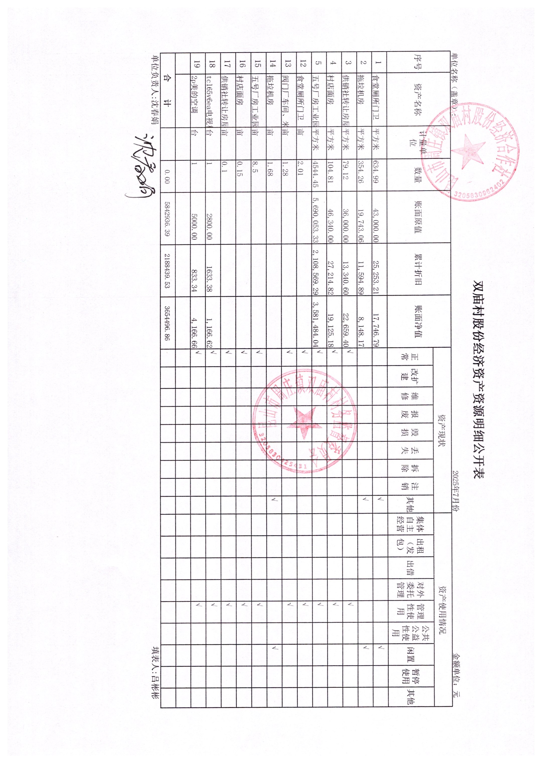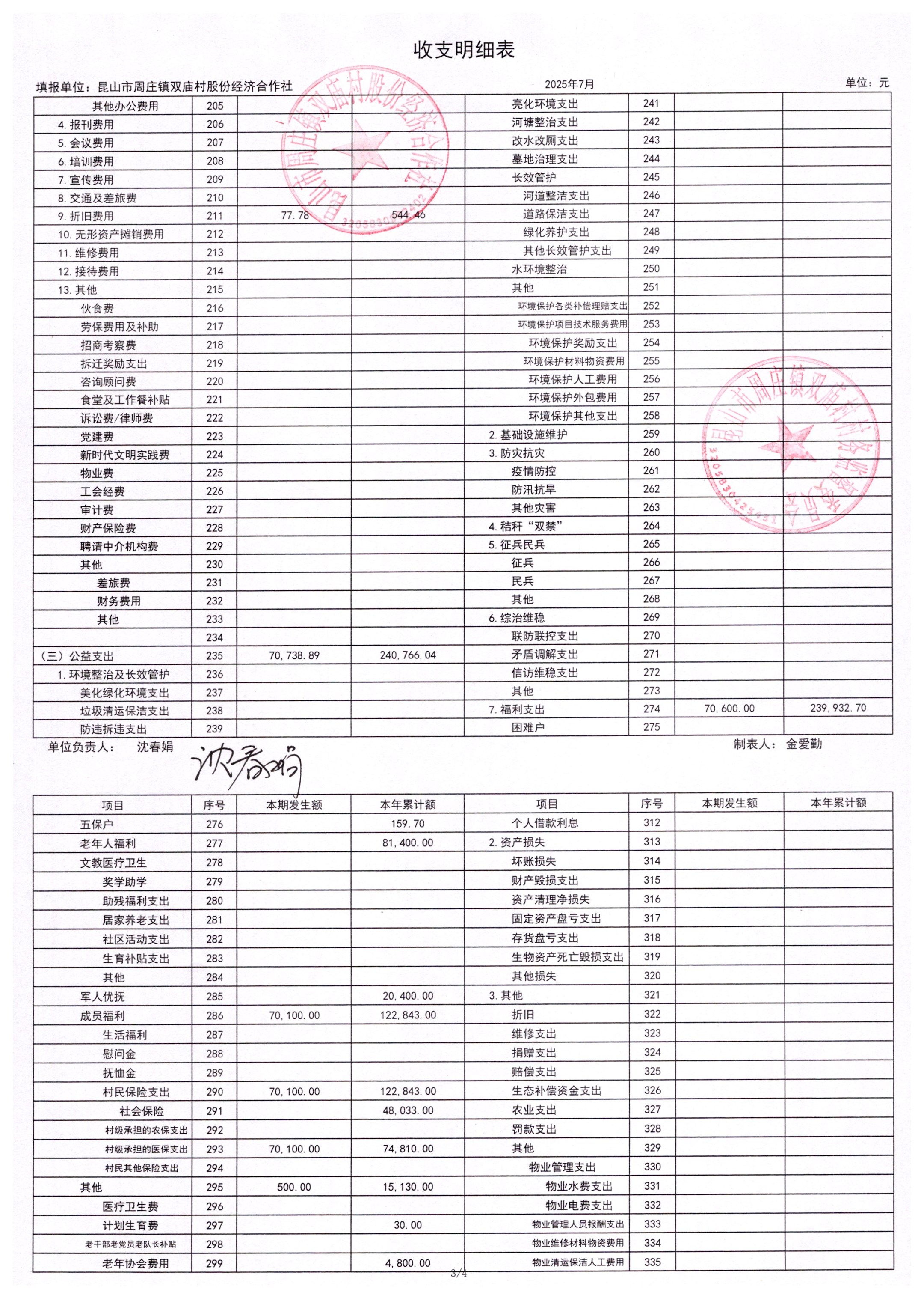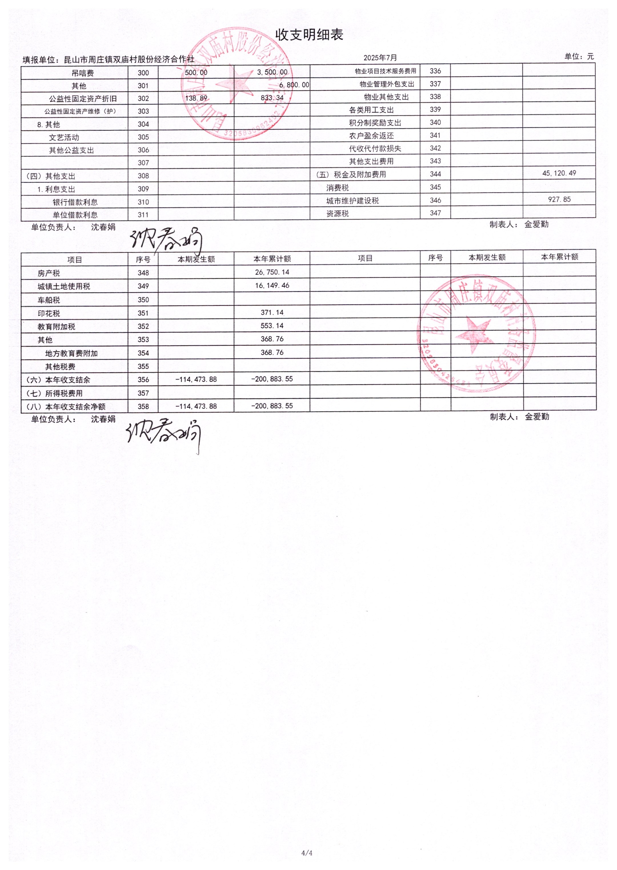 2025年7月財務公開-雙廟村股份經(jīng)濟合作社財務公開