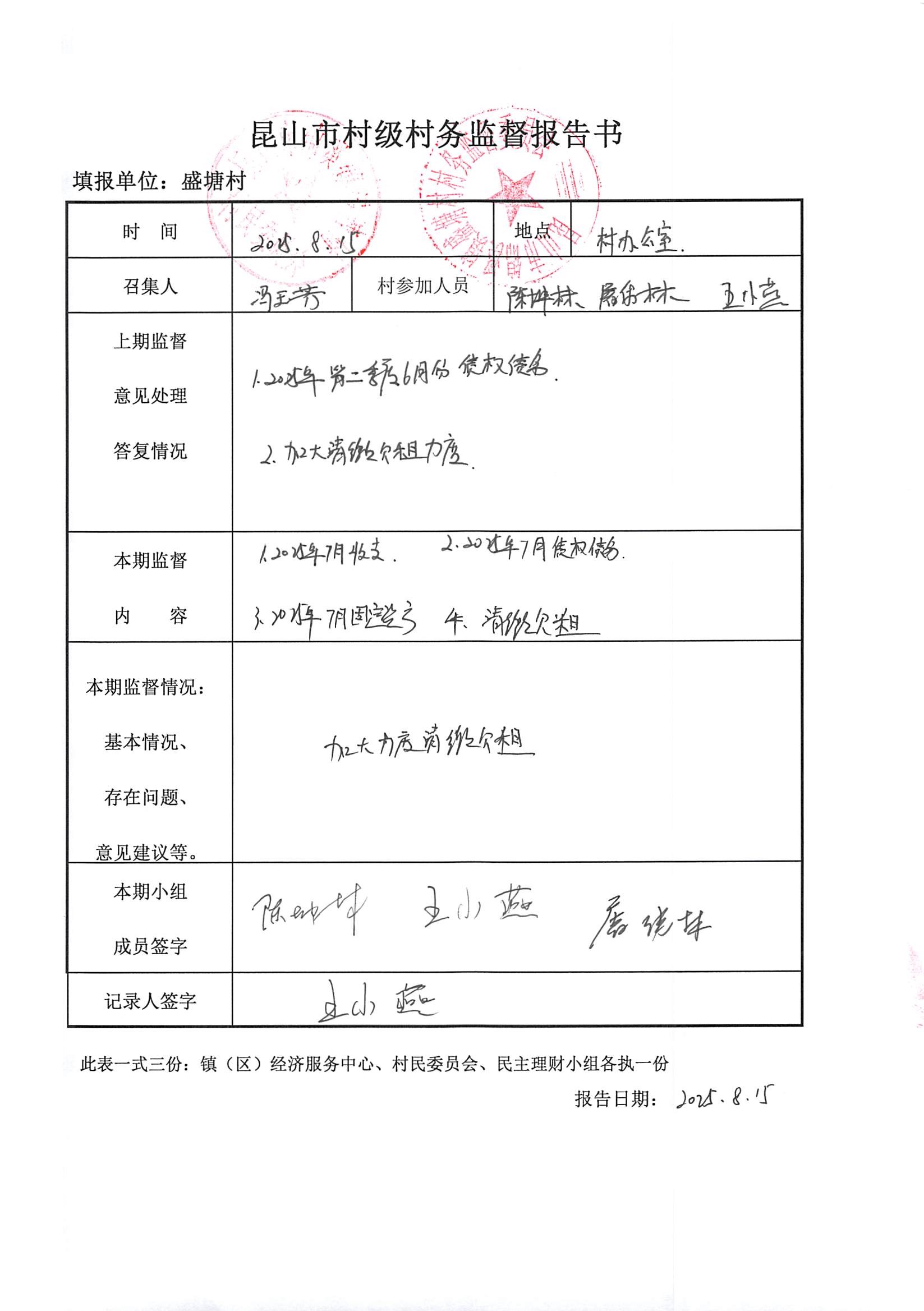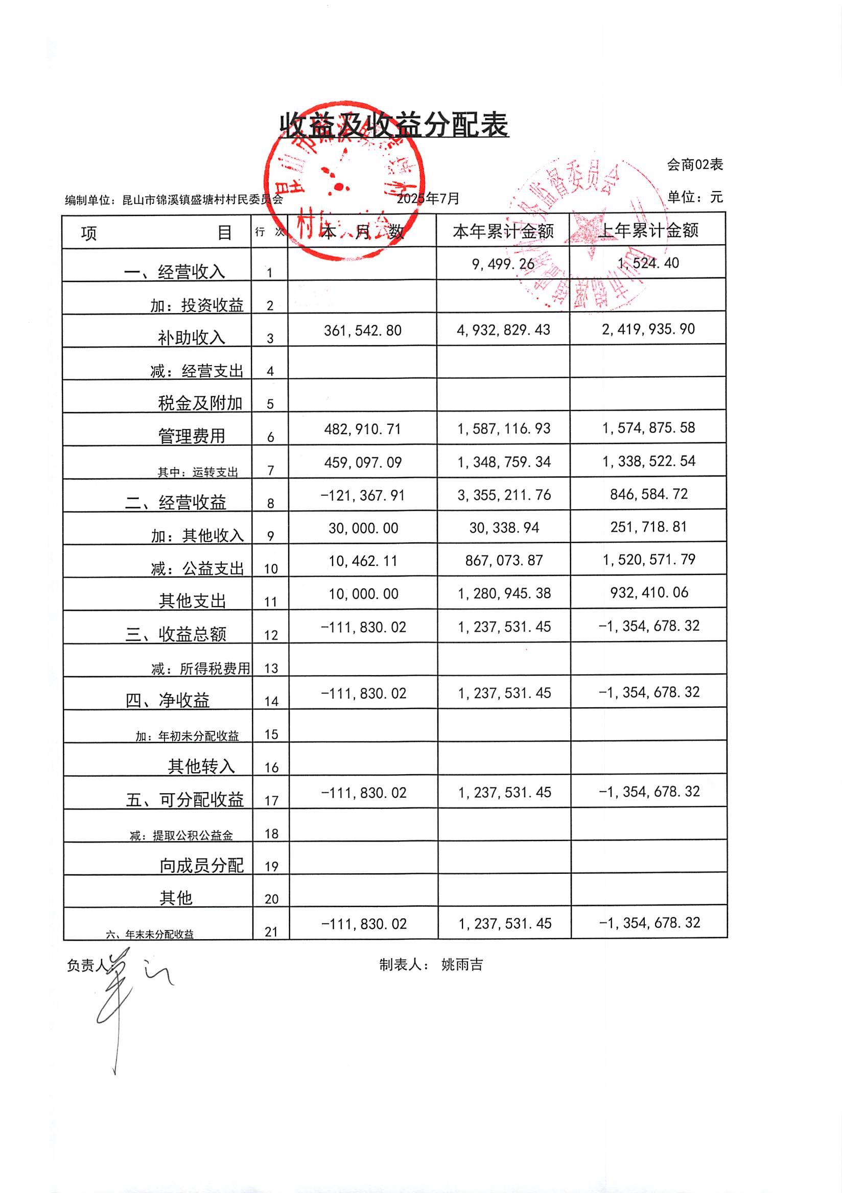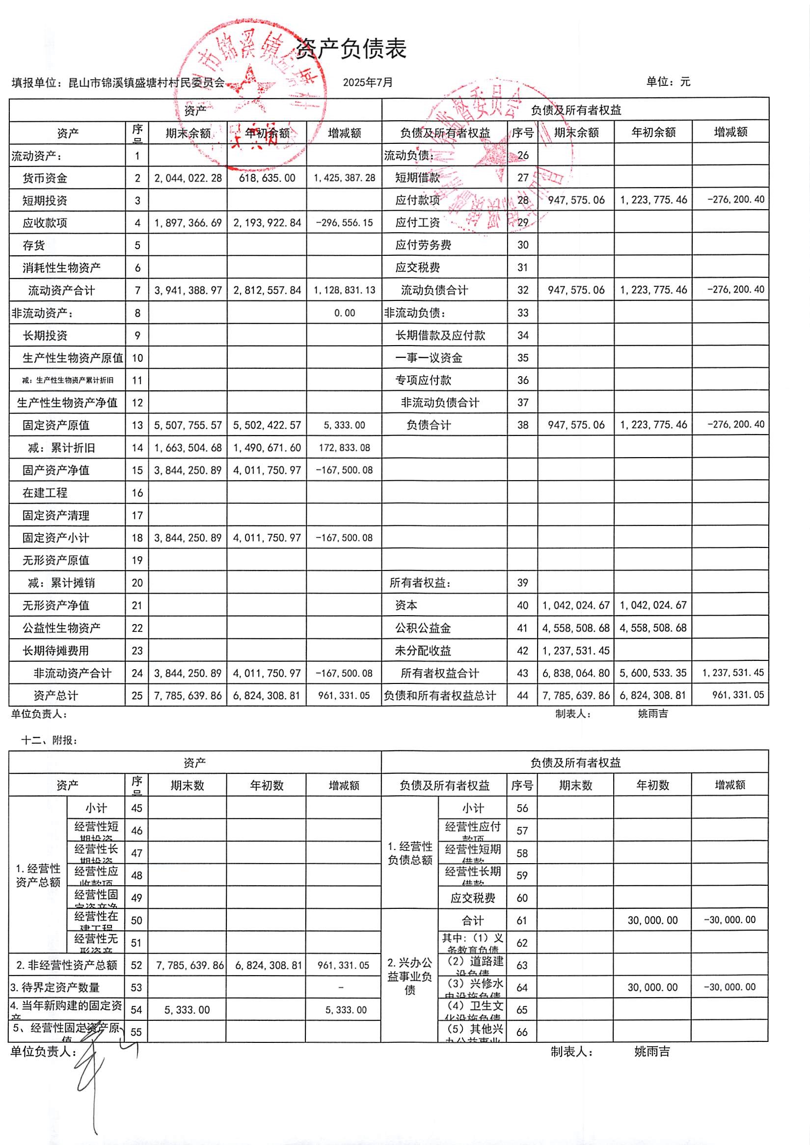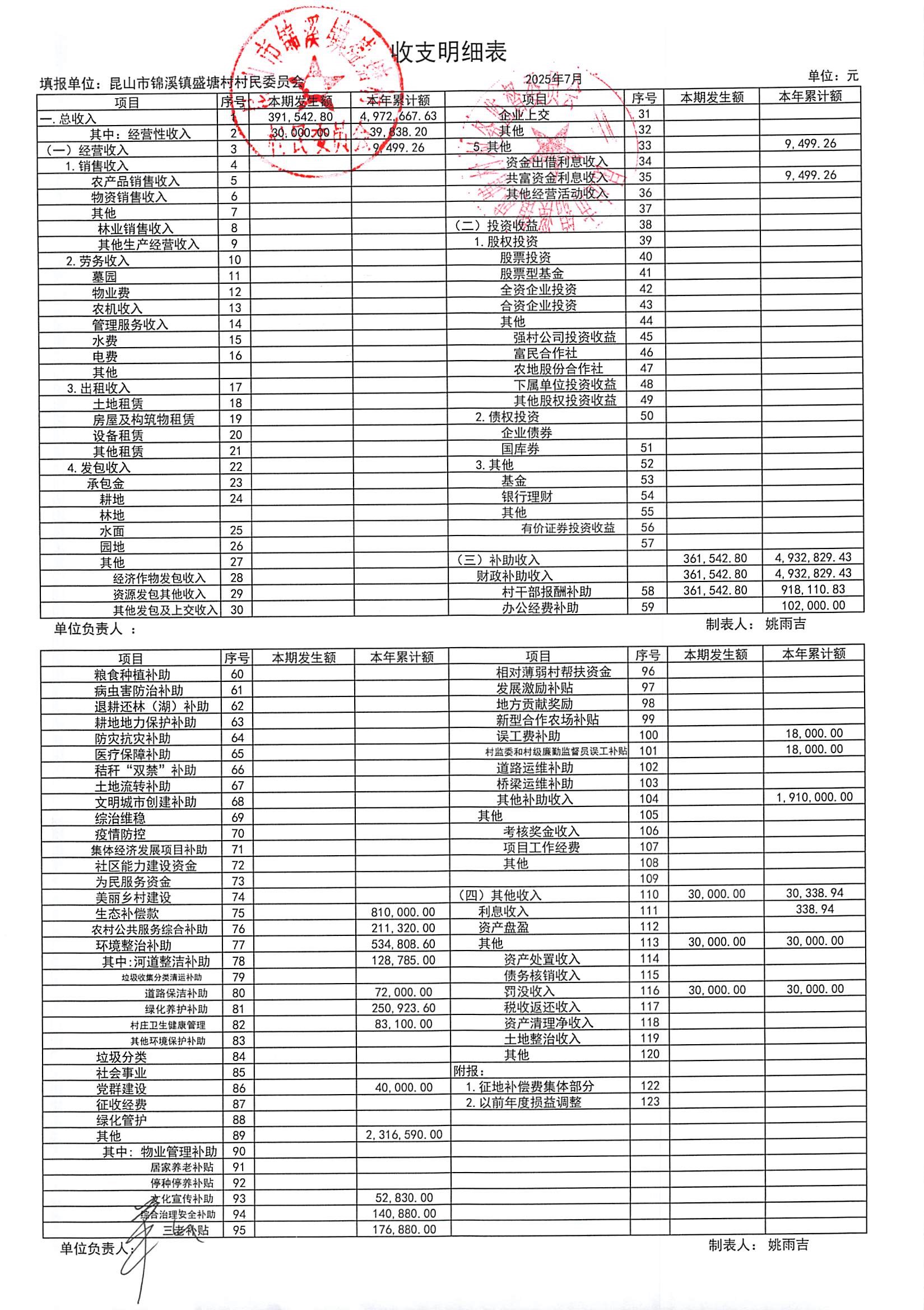 昆山市錦溪鎮(zhèn)盛塘村2025年第三季度7月村財務(wù)公開資料