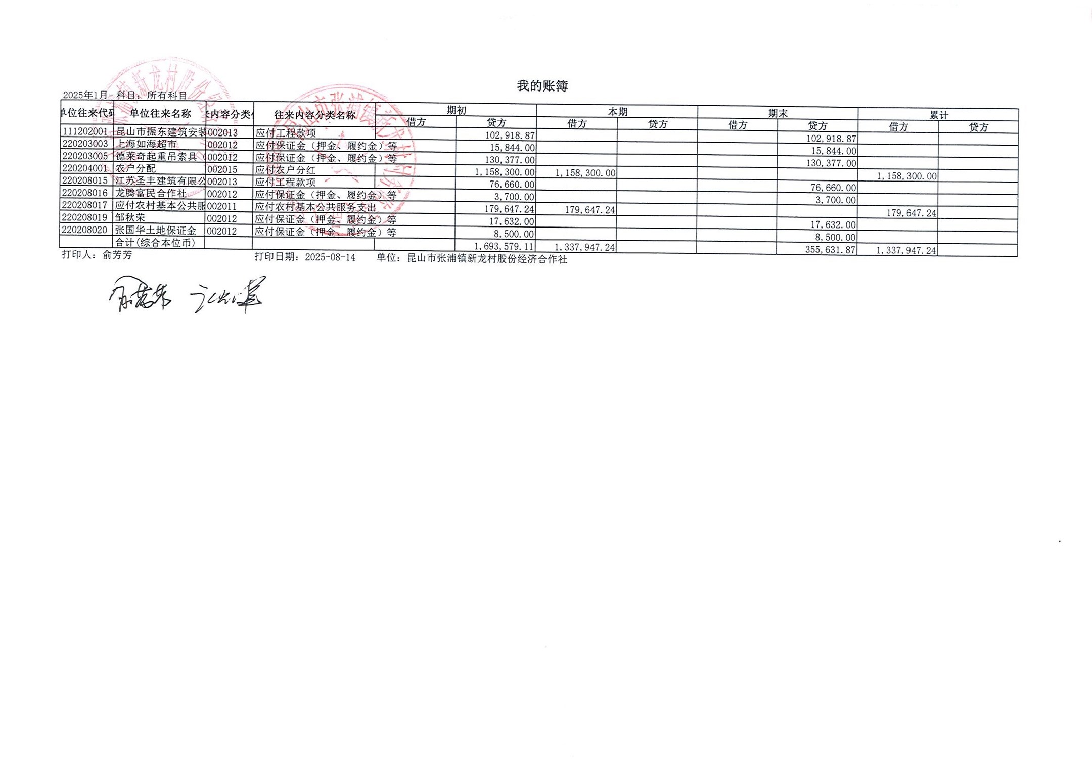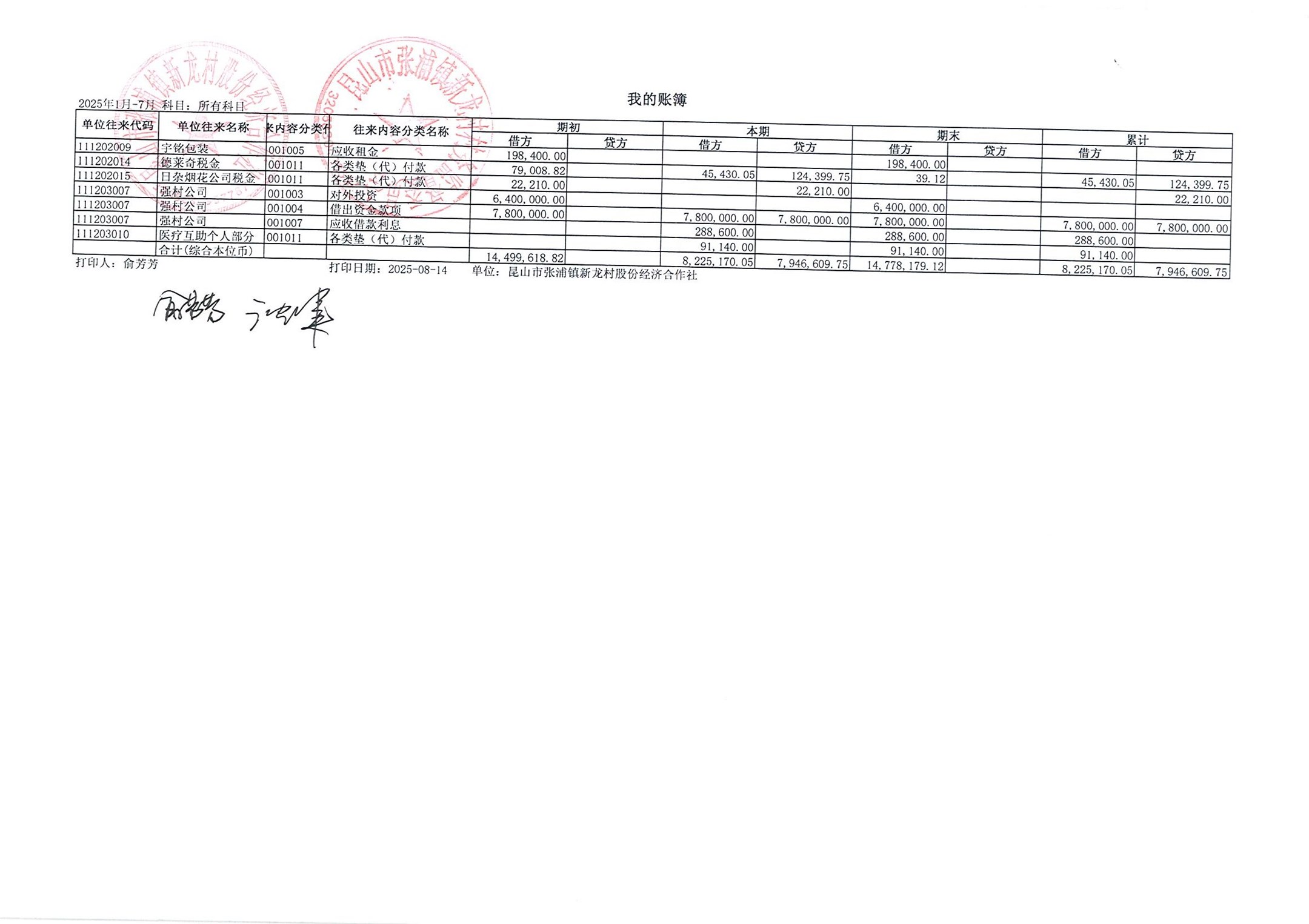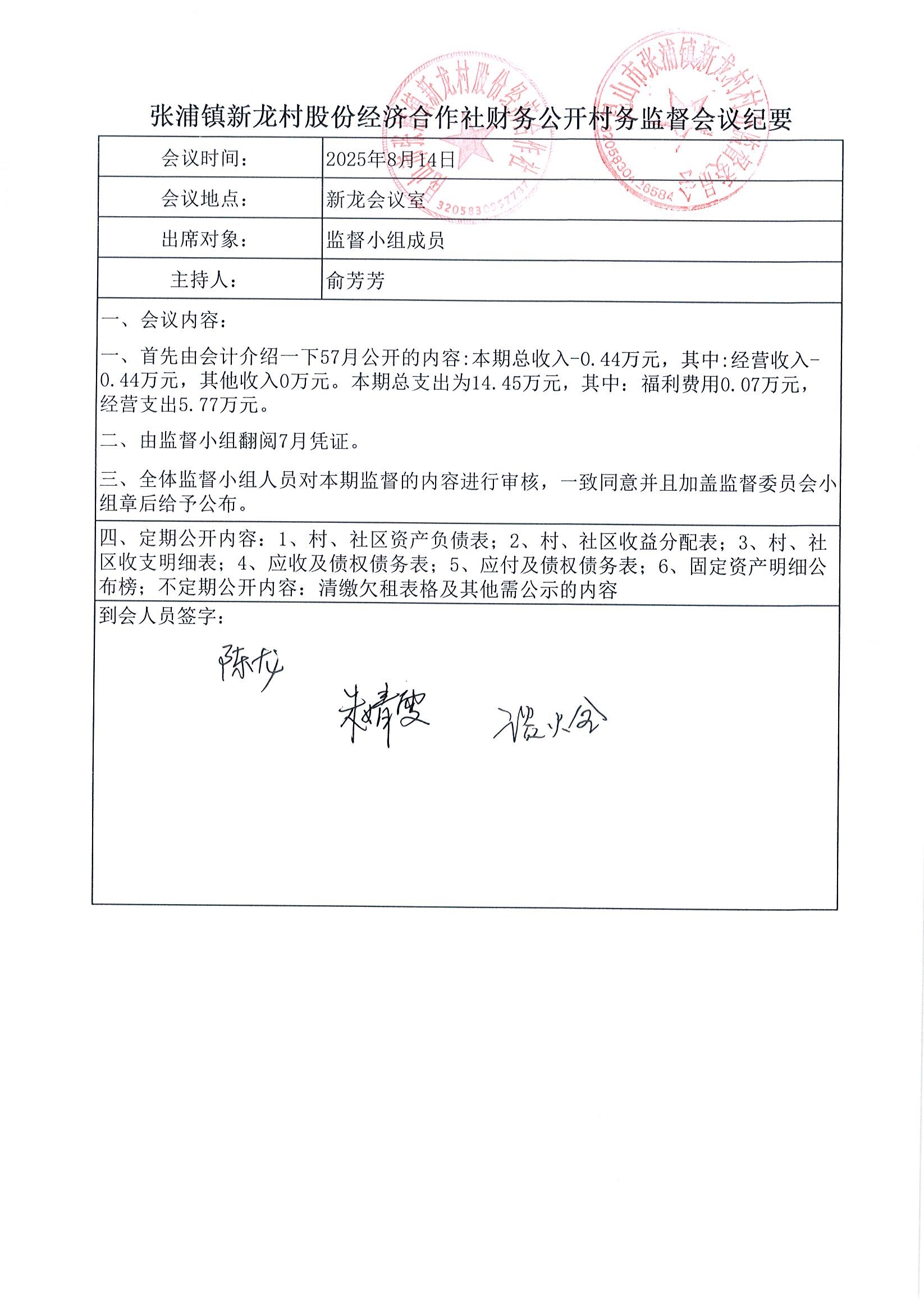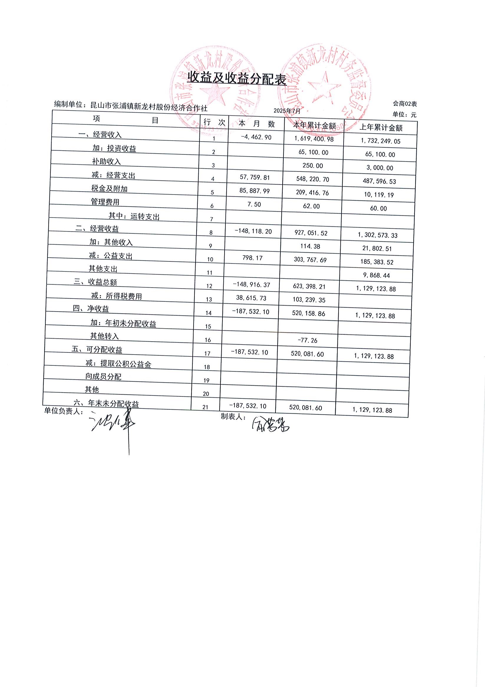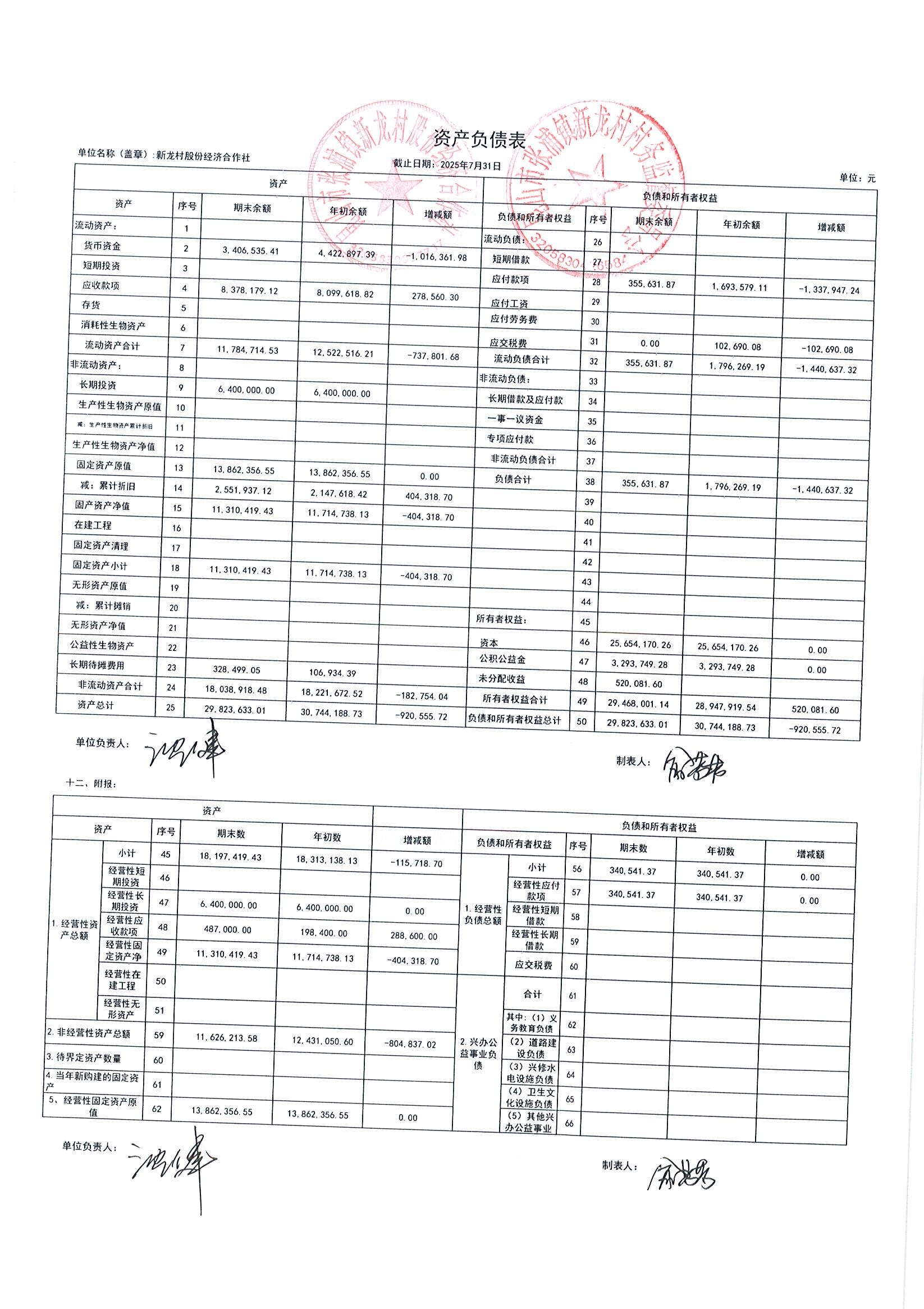 2025年張浦鎮(zhèn)新龍村股份經(jīng)濟合作社7月財務公開