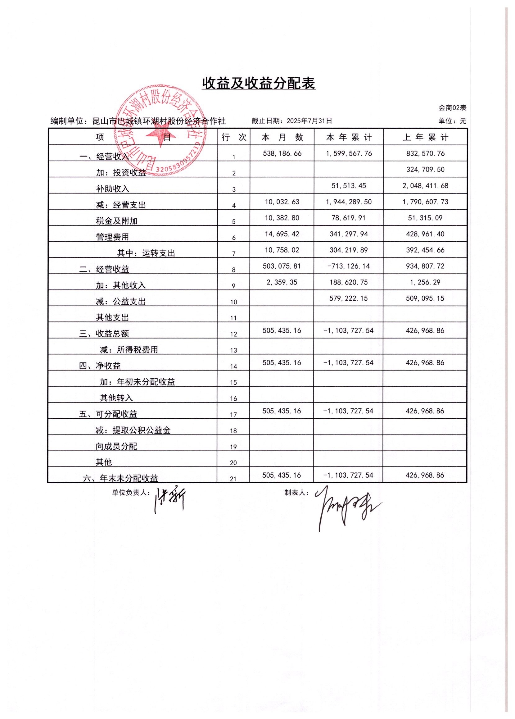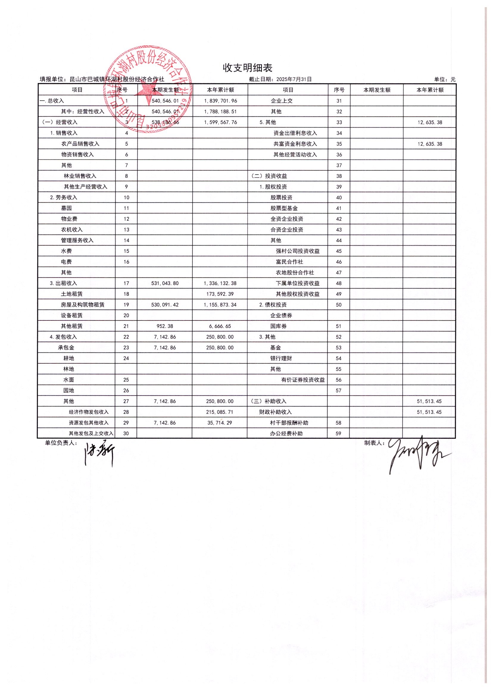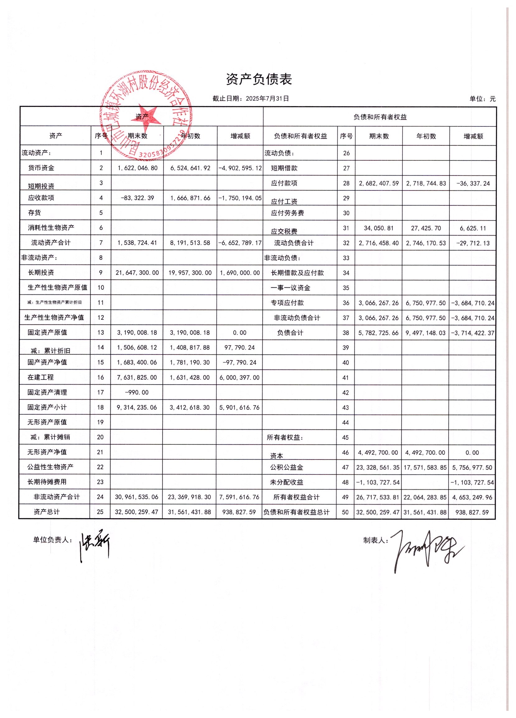 2025年7月環(huán)湖村股份經(jīng)濟合作社財務(wù)公開