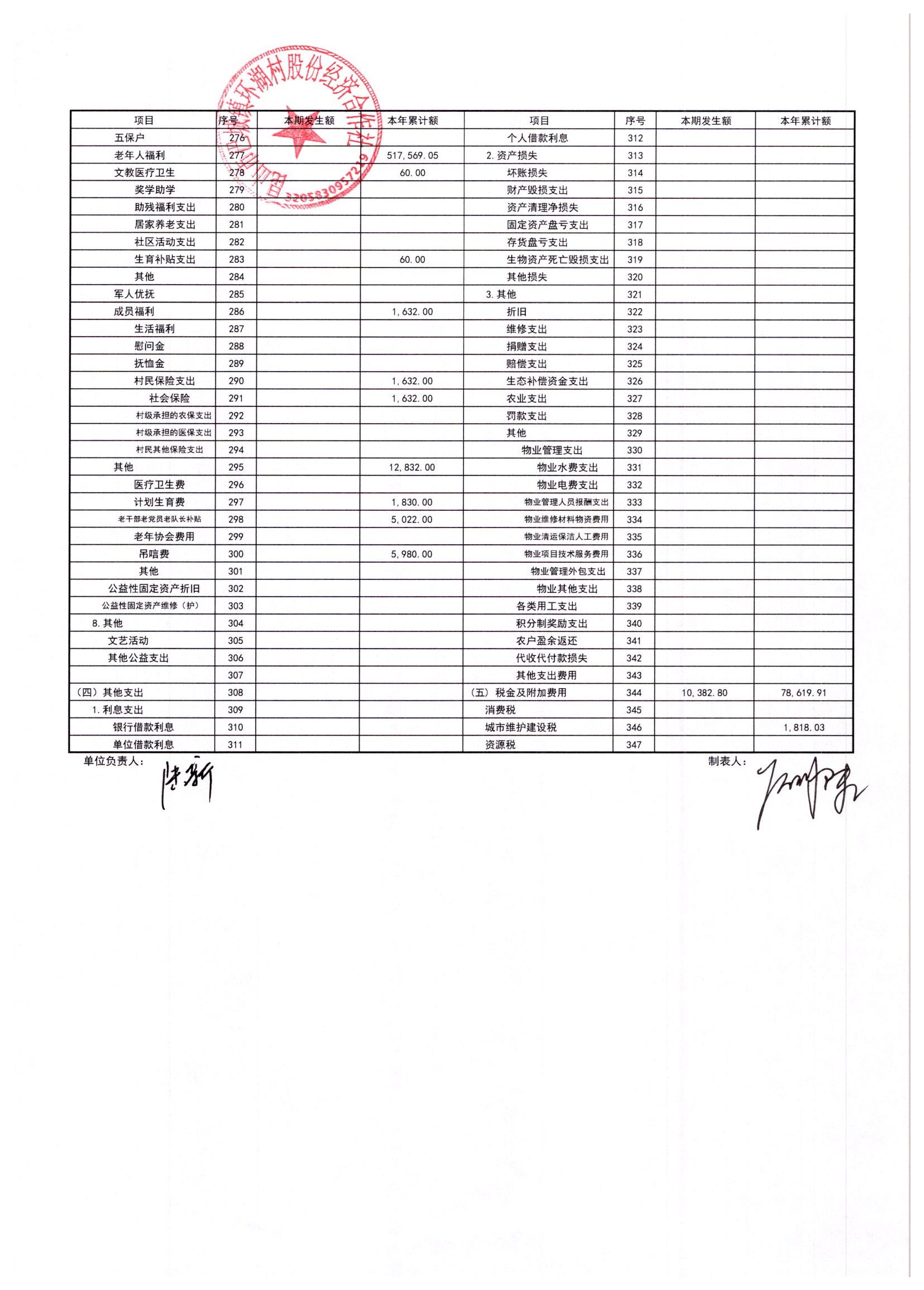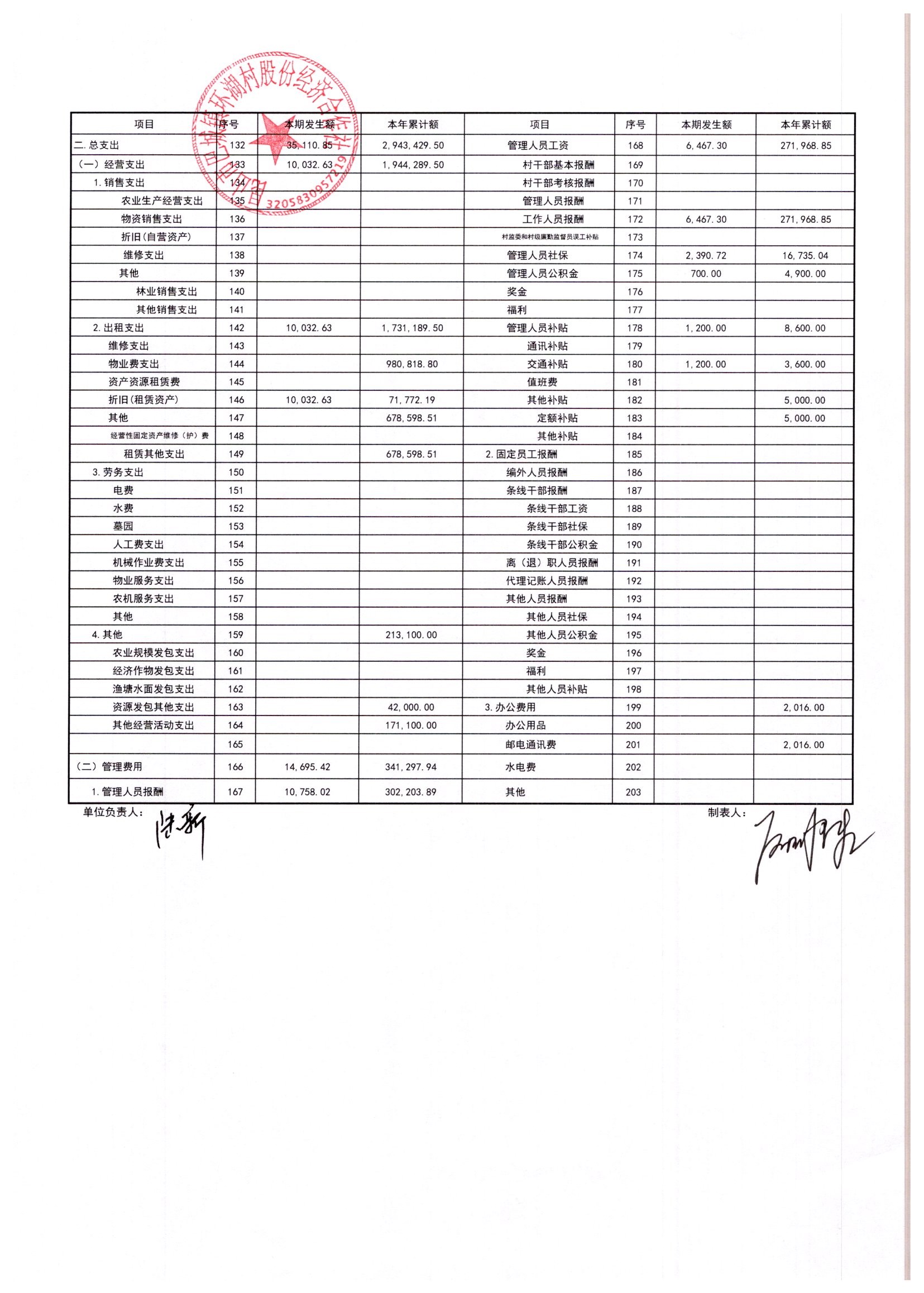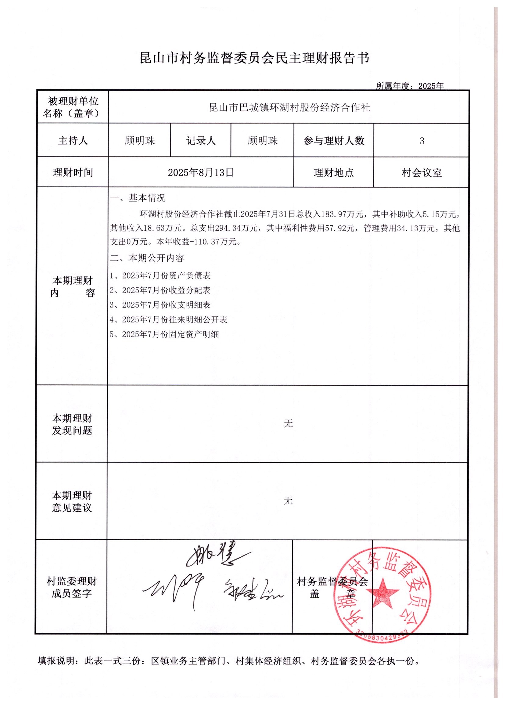 2025年7月環(huán)湖村股份經(jīng)濟合作社財務(wù)公開