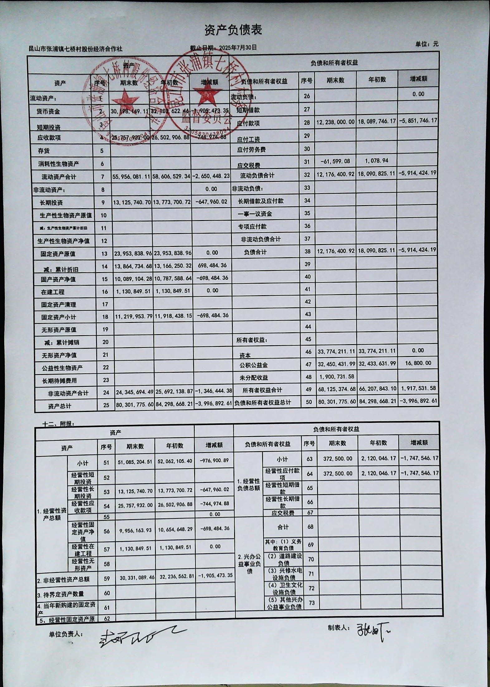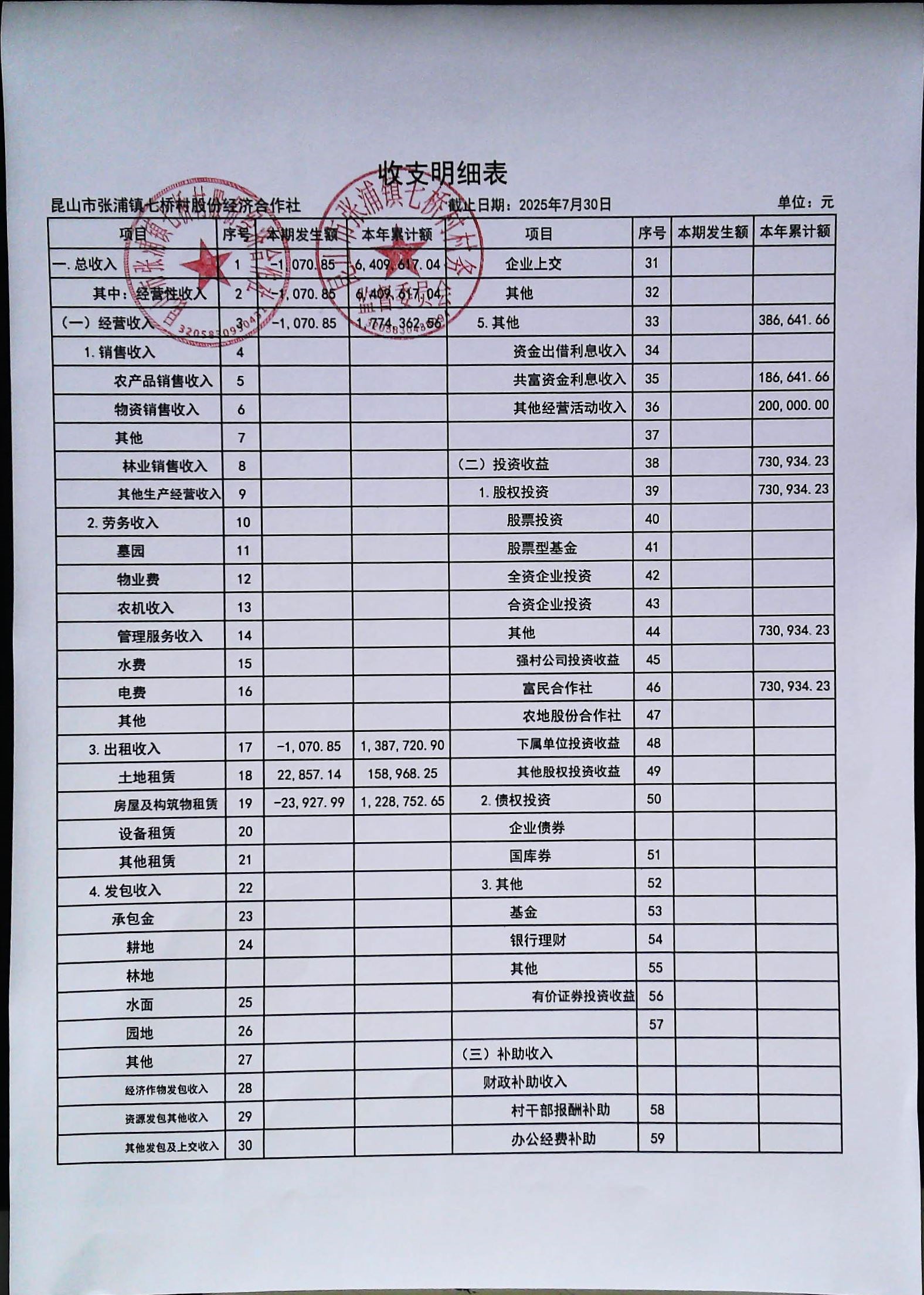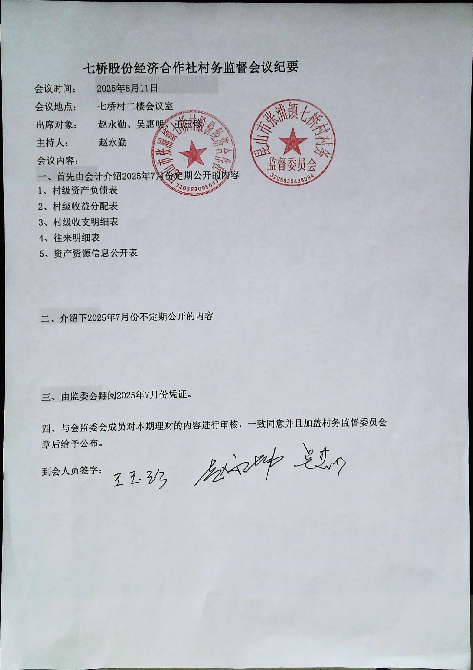 2025年七橋村股份經(jīng)濟合作社8月份財務(wù)公開