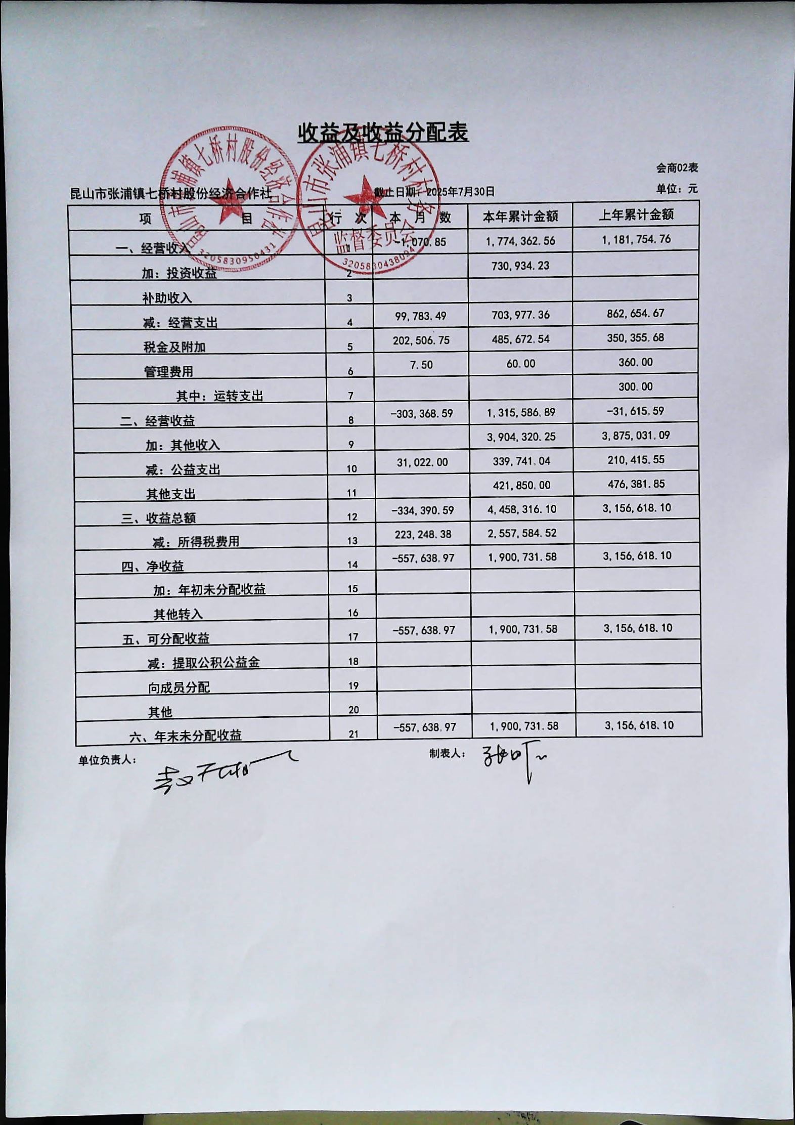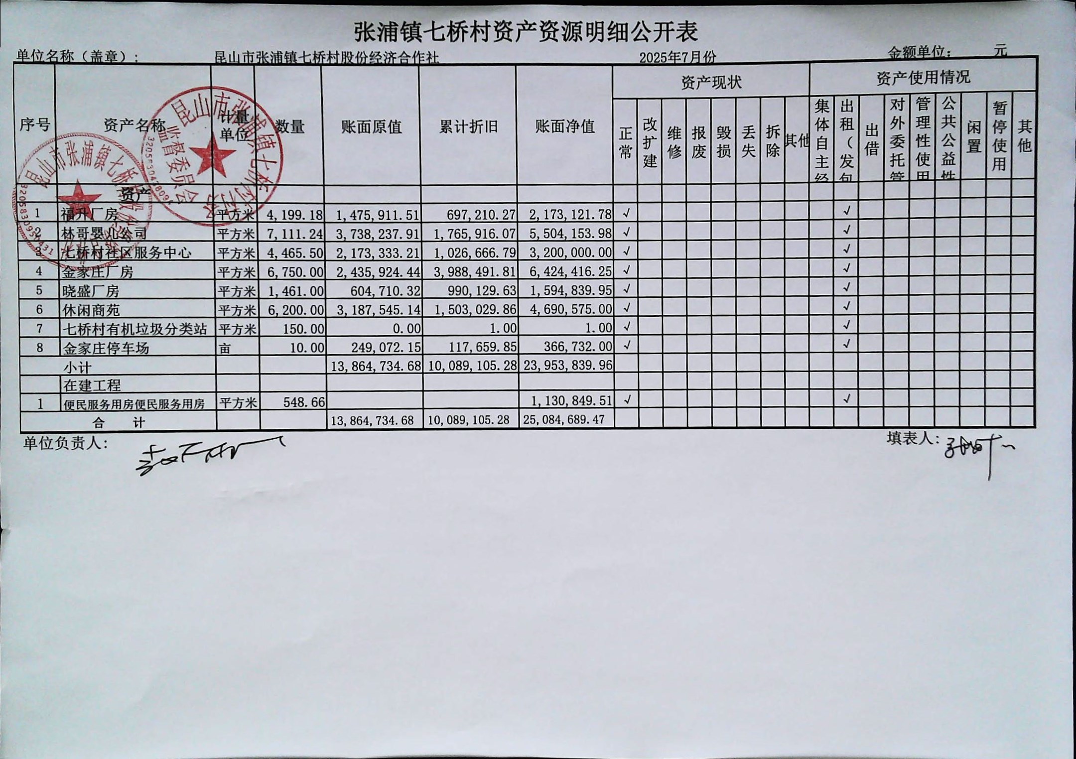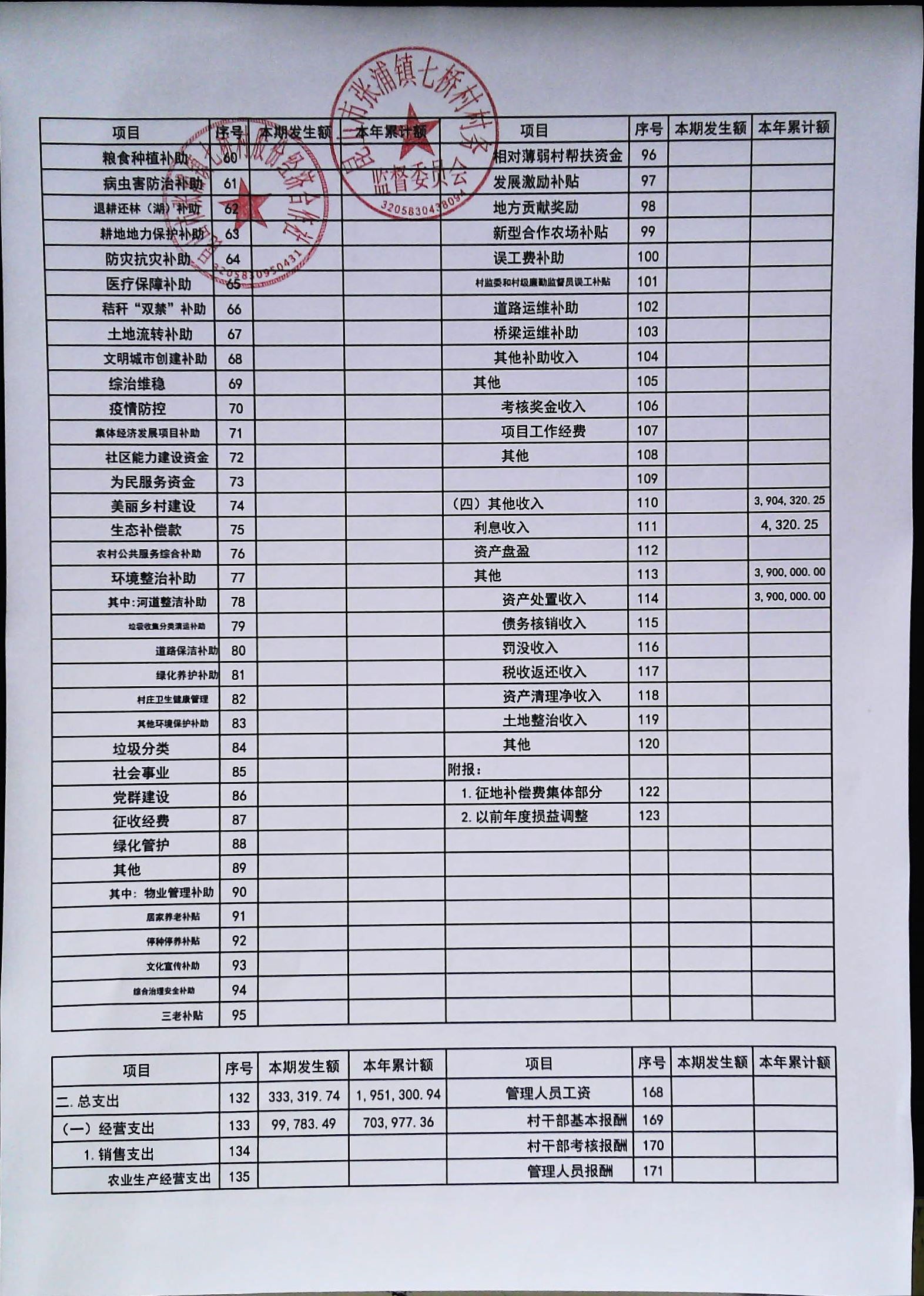 2025年七橋村股份經(jīng)濟合作社8月份財務(wù)公開