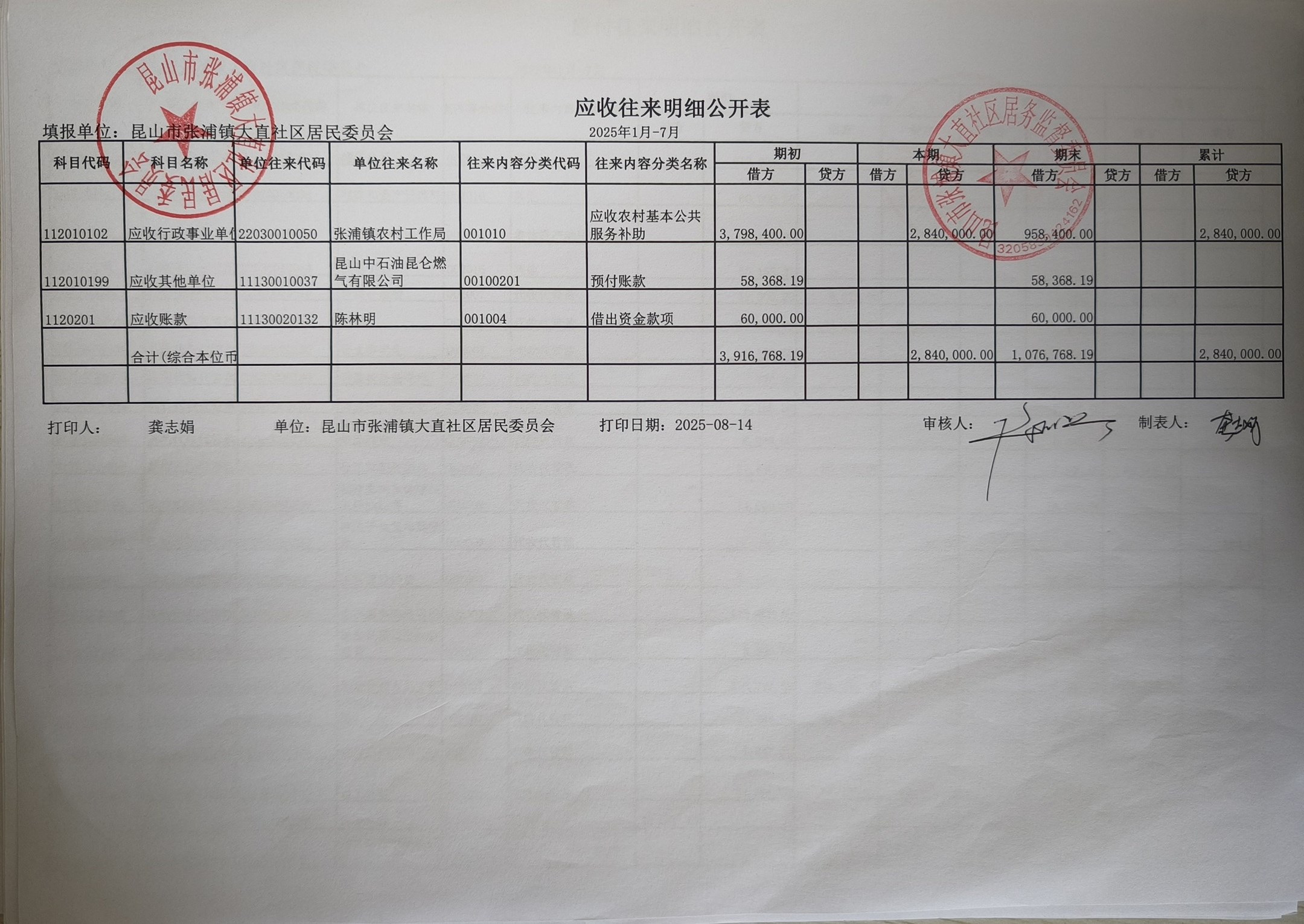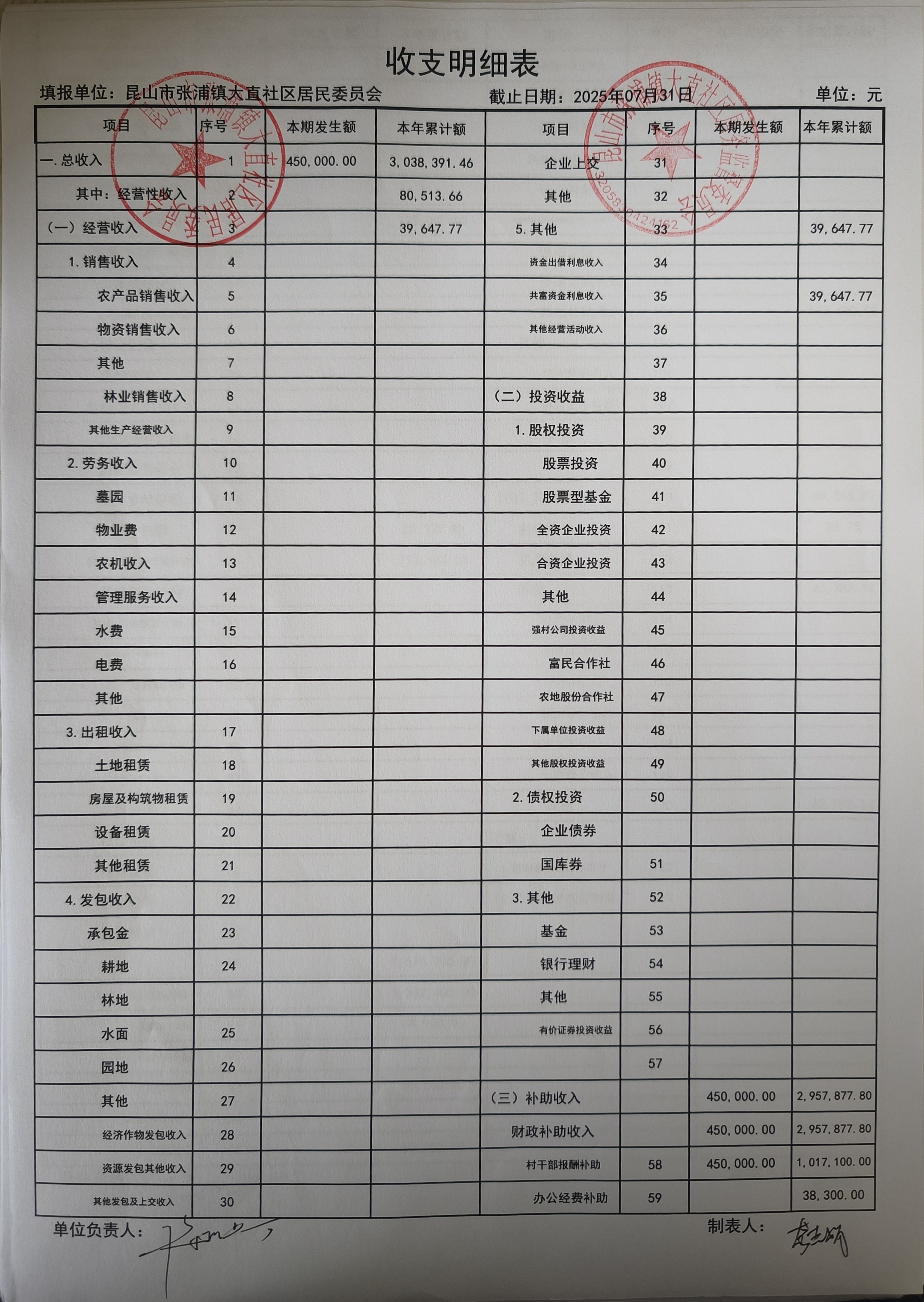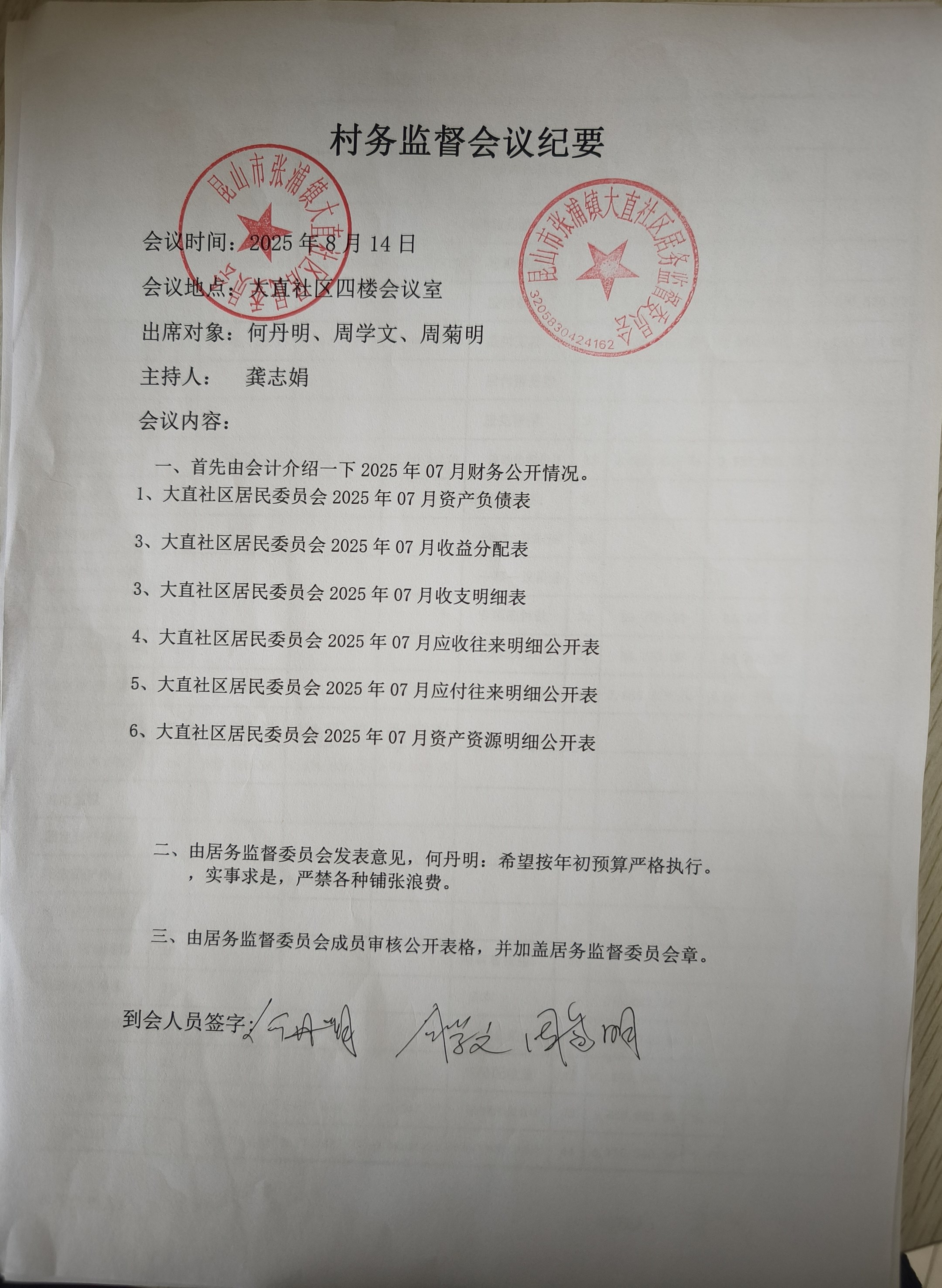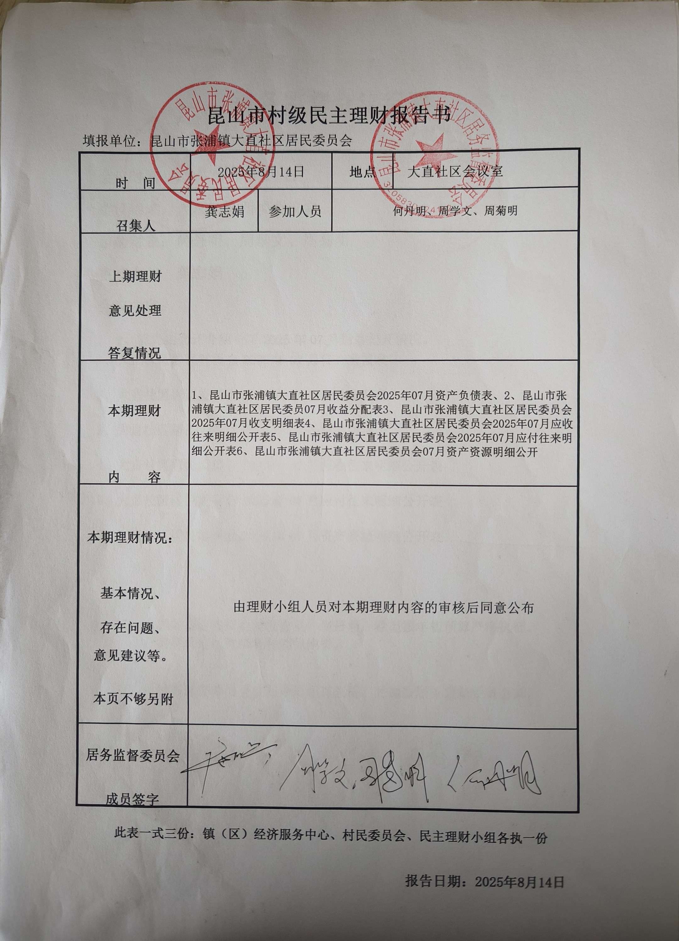2025年7月大直社區(qū)居民委員會(huì)財(cái)務(wù)公開