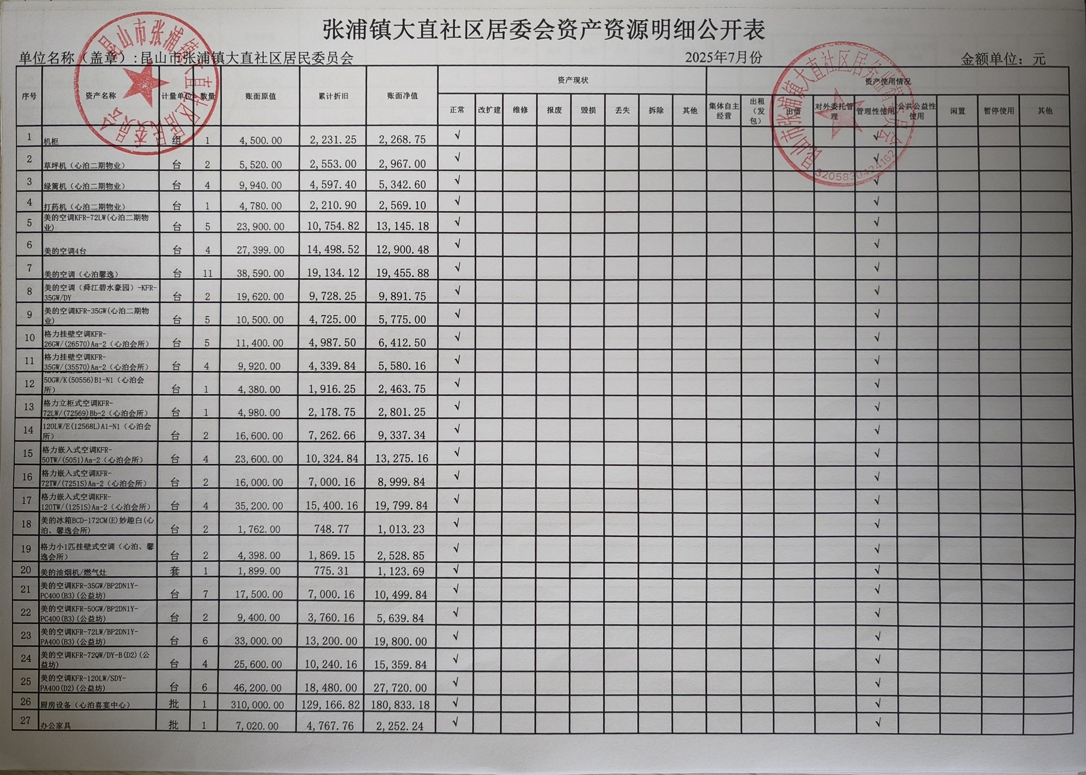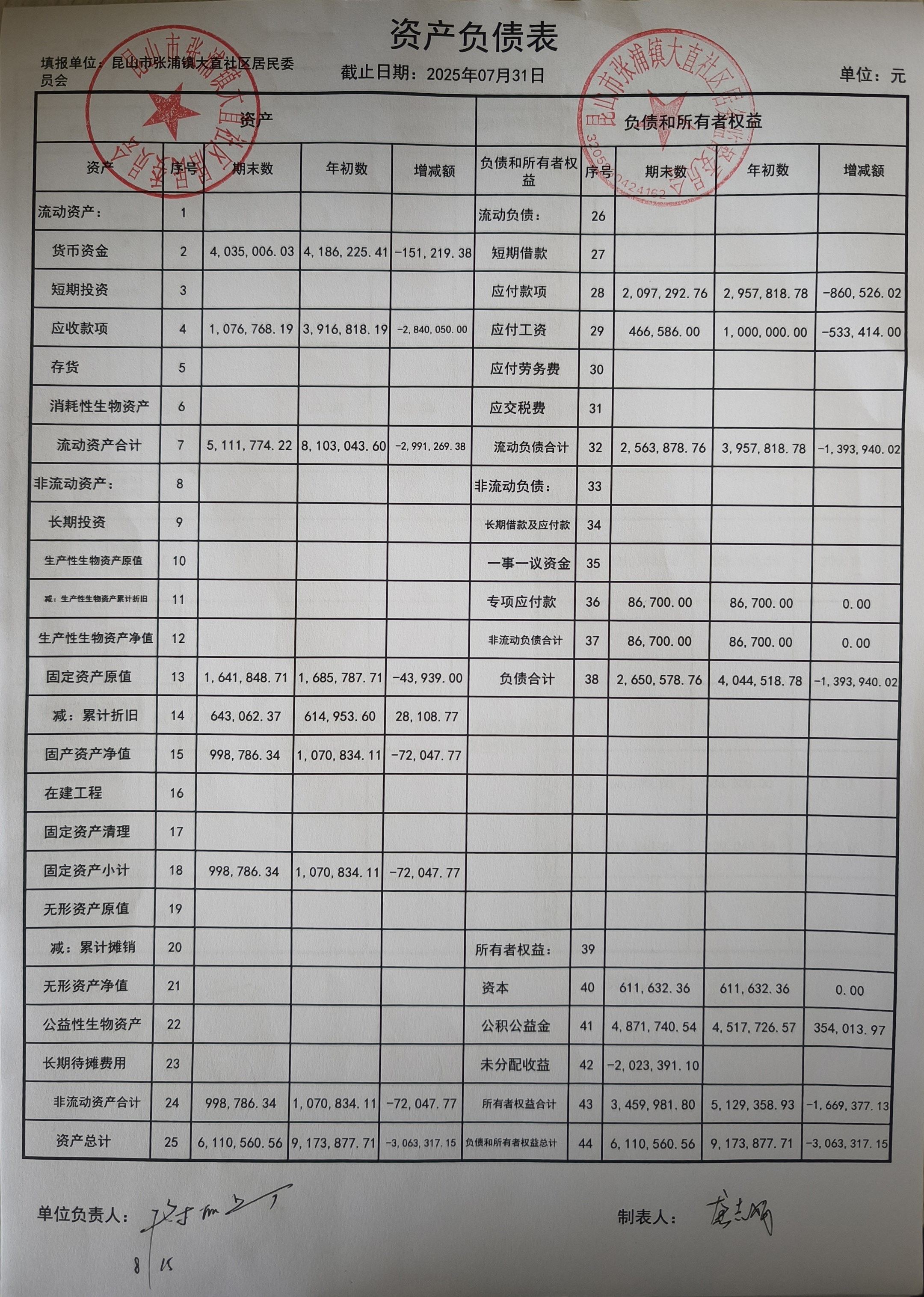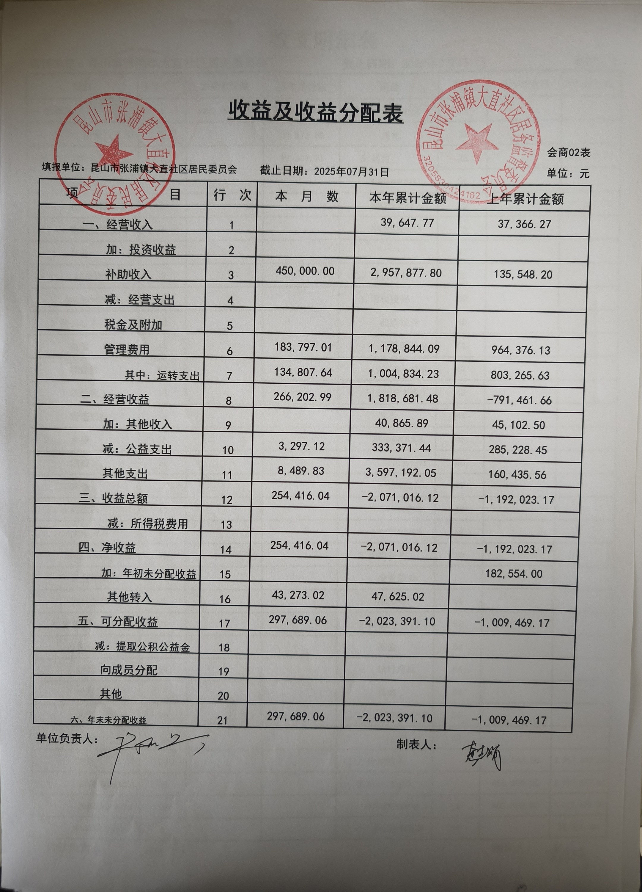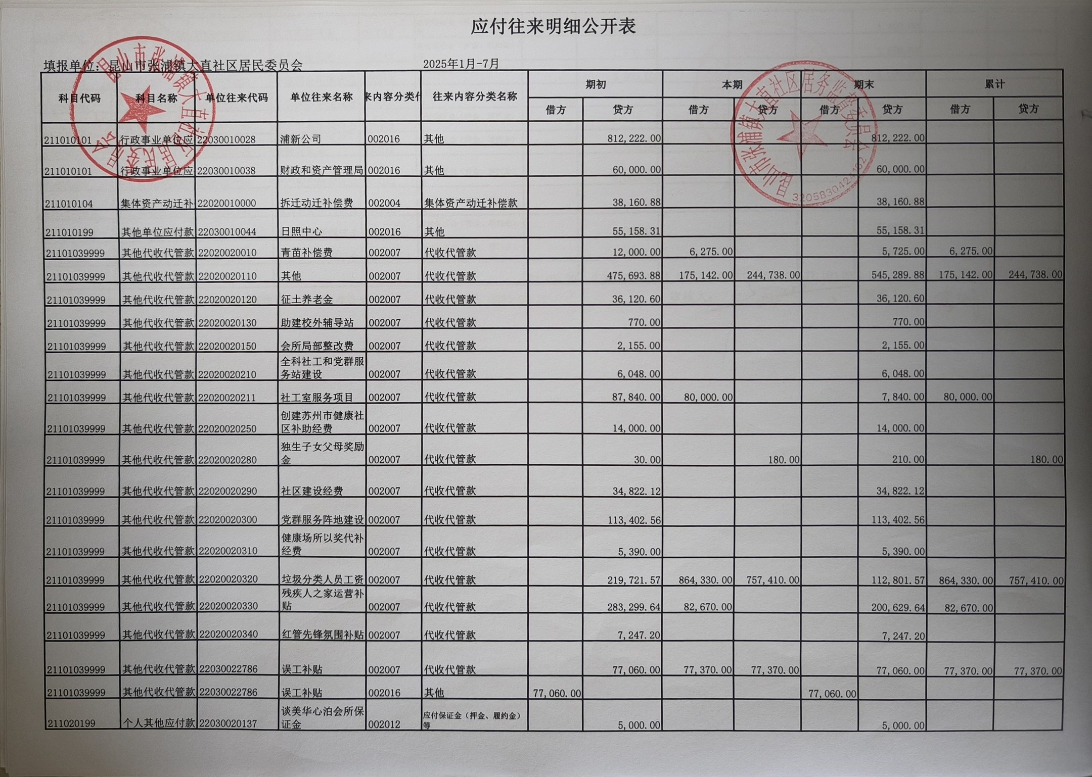 2025年7月大直社區(qū)居民委員會(huì)財(cái)務(wù)公開