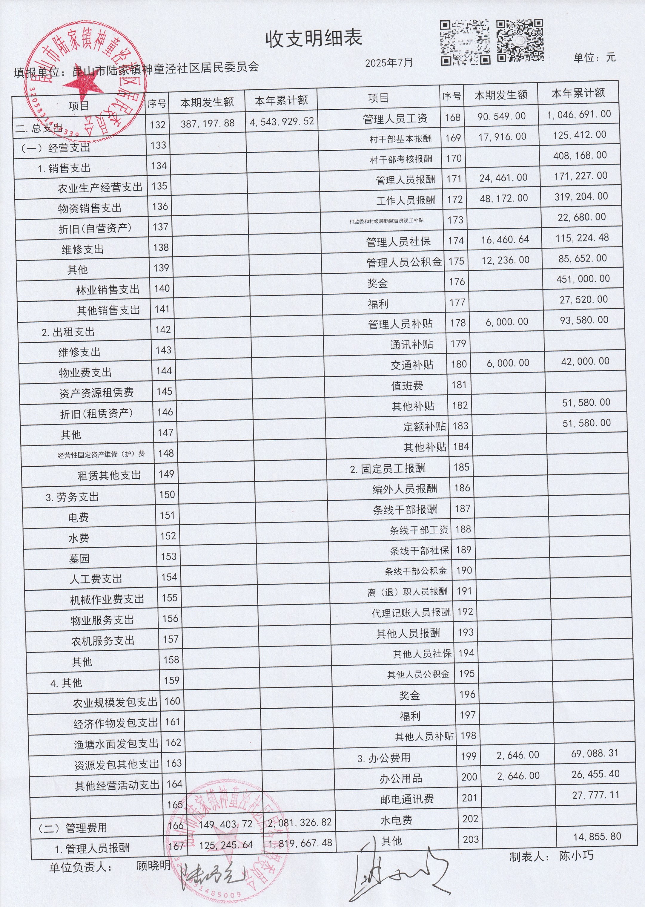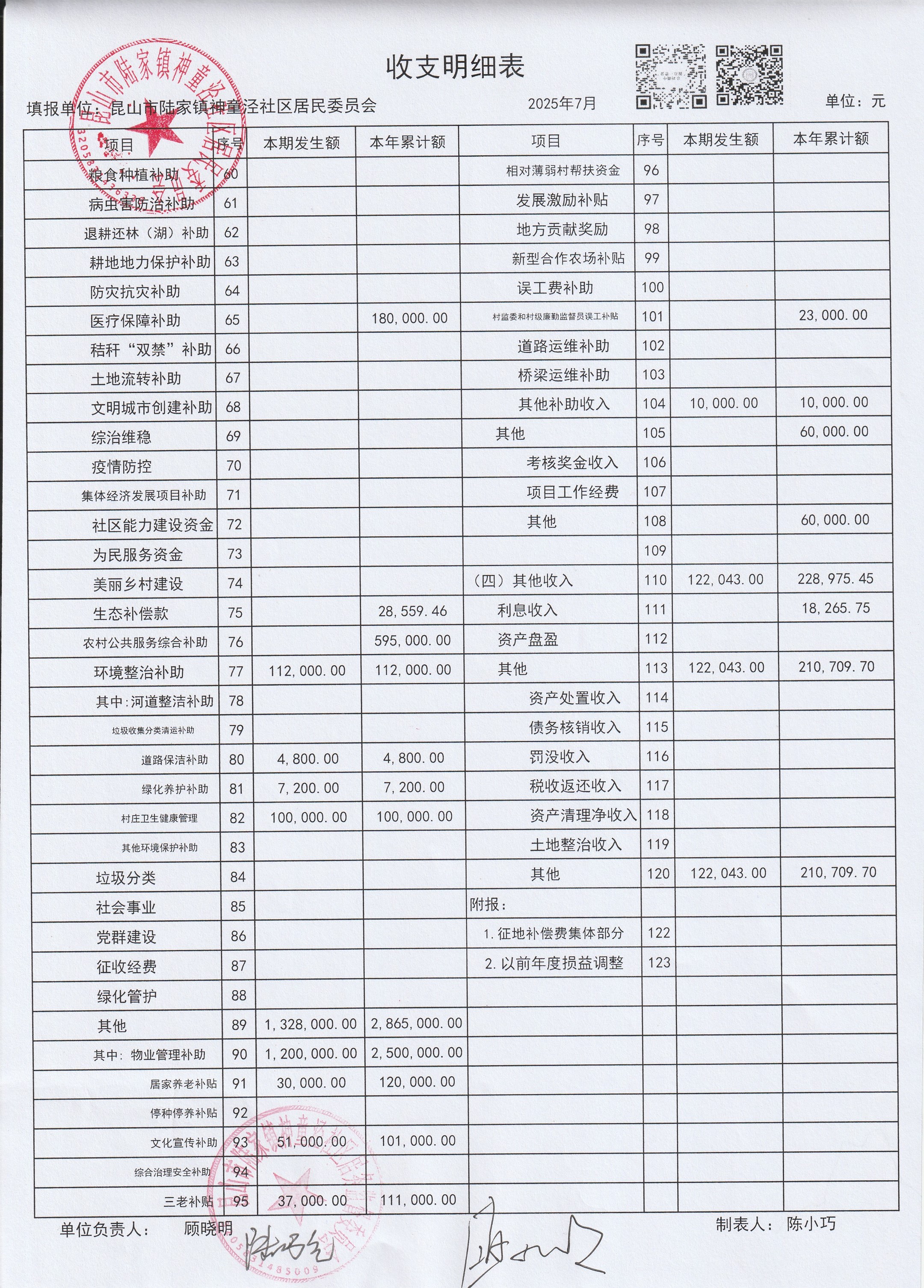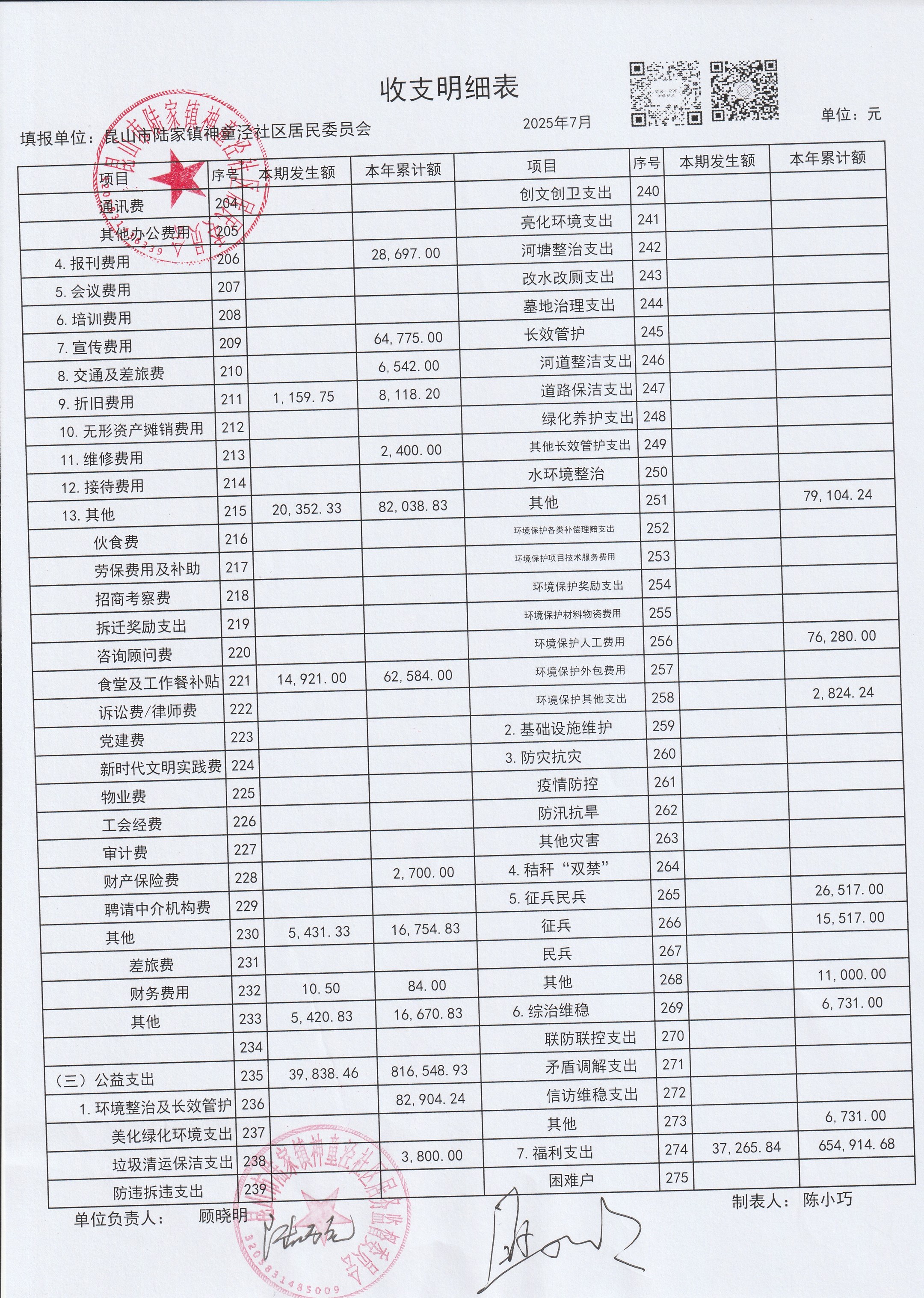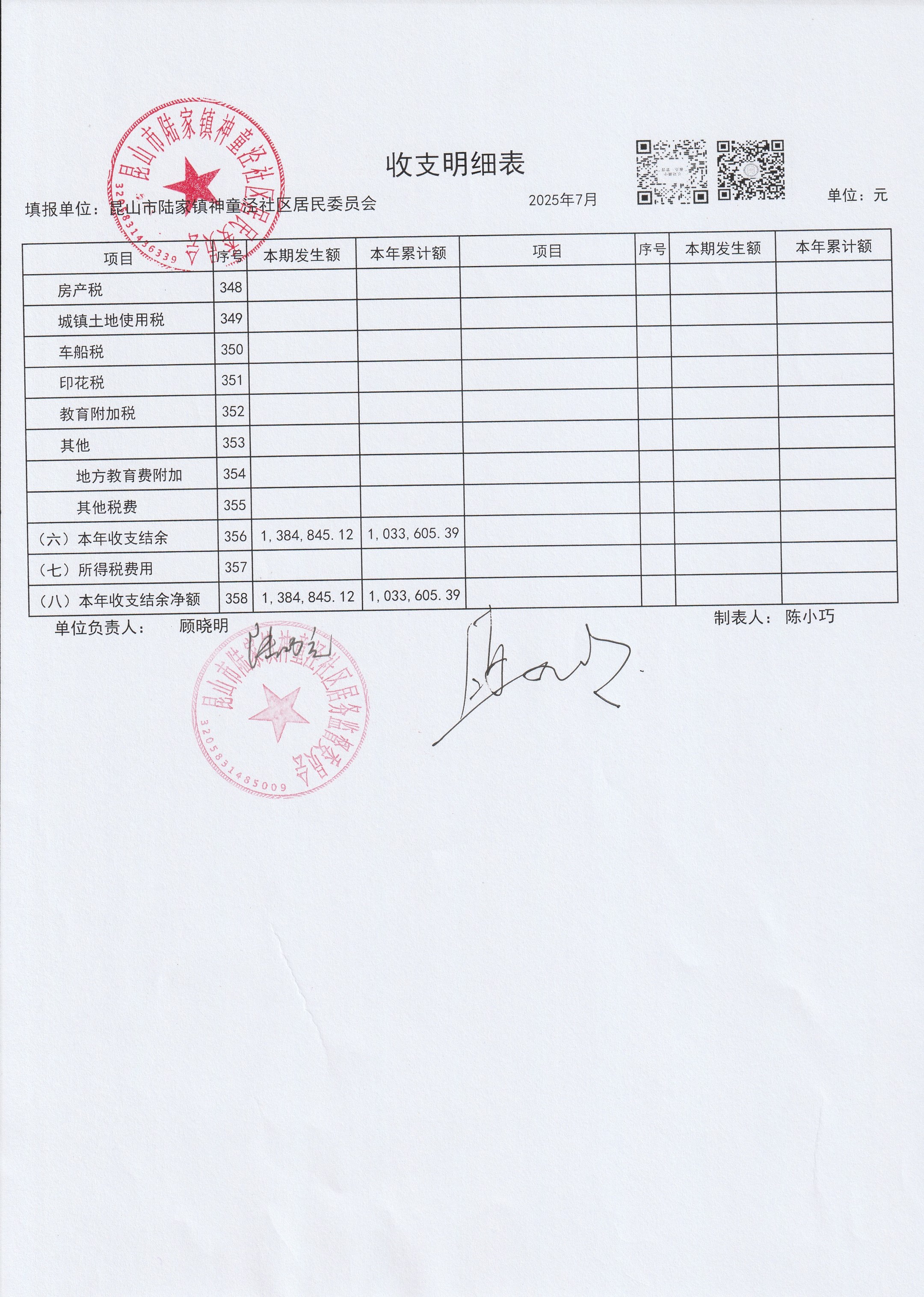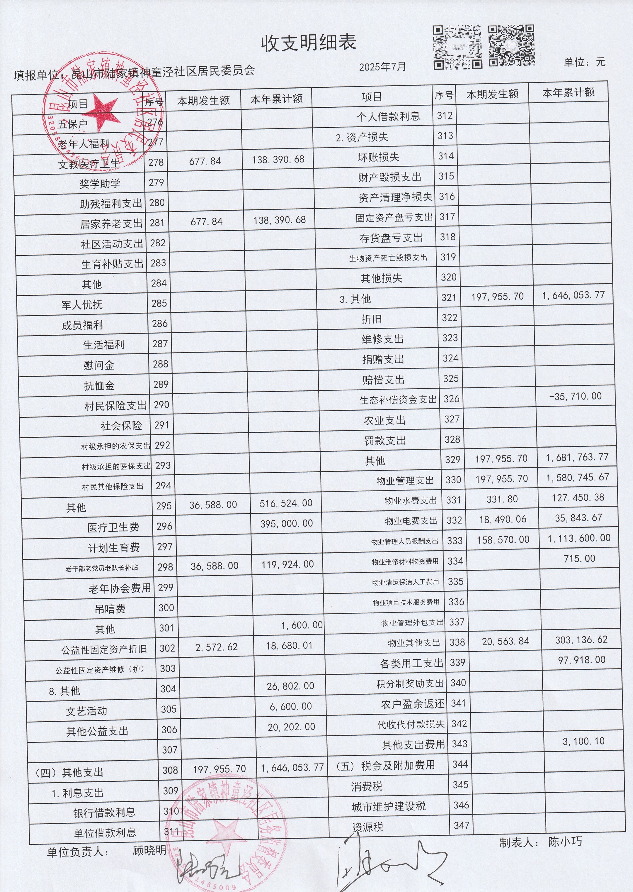 神童涇社區(qū)居民委員會財務(wù)公開(2025年7月)