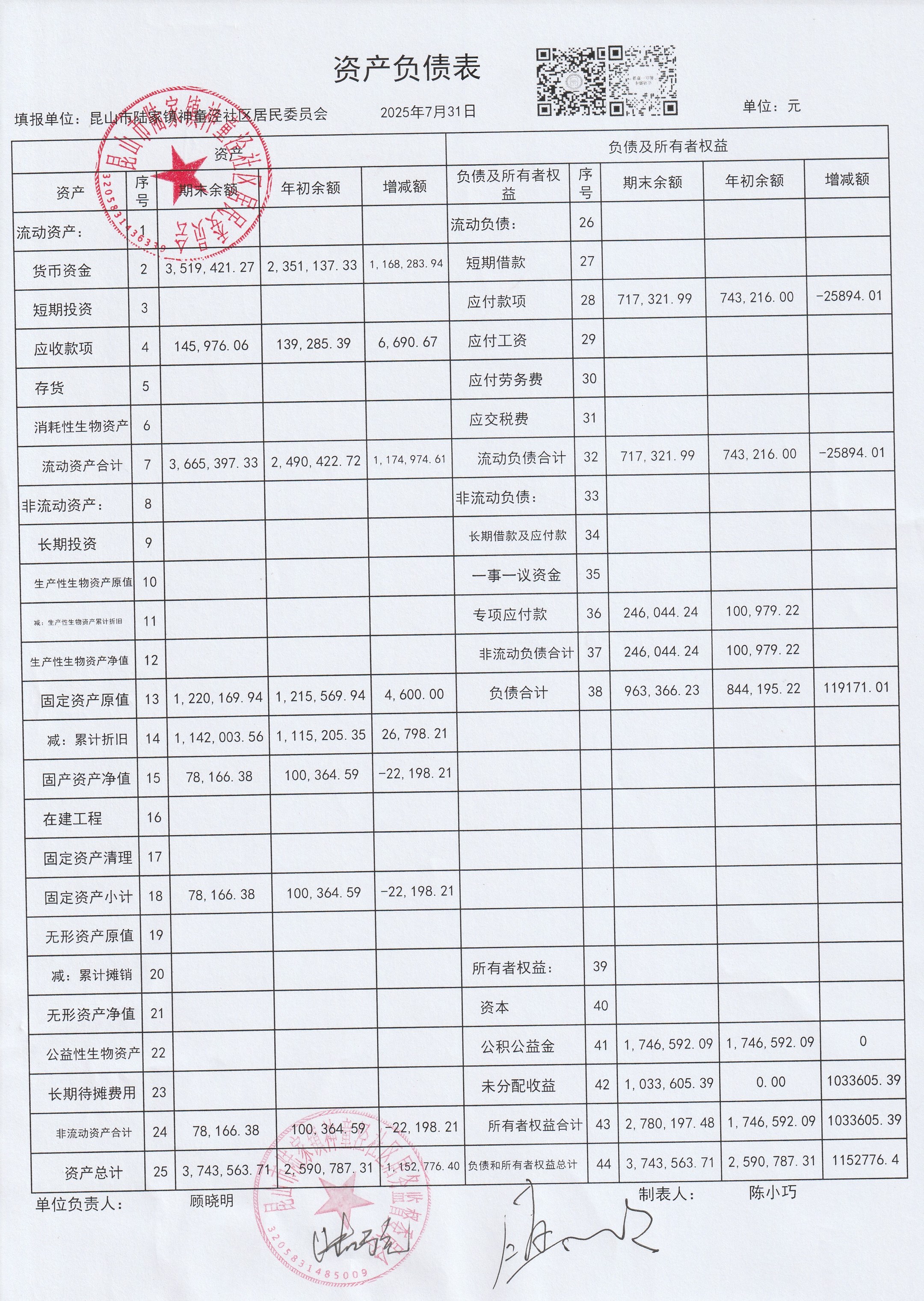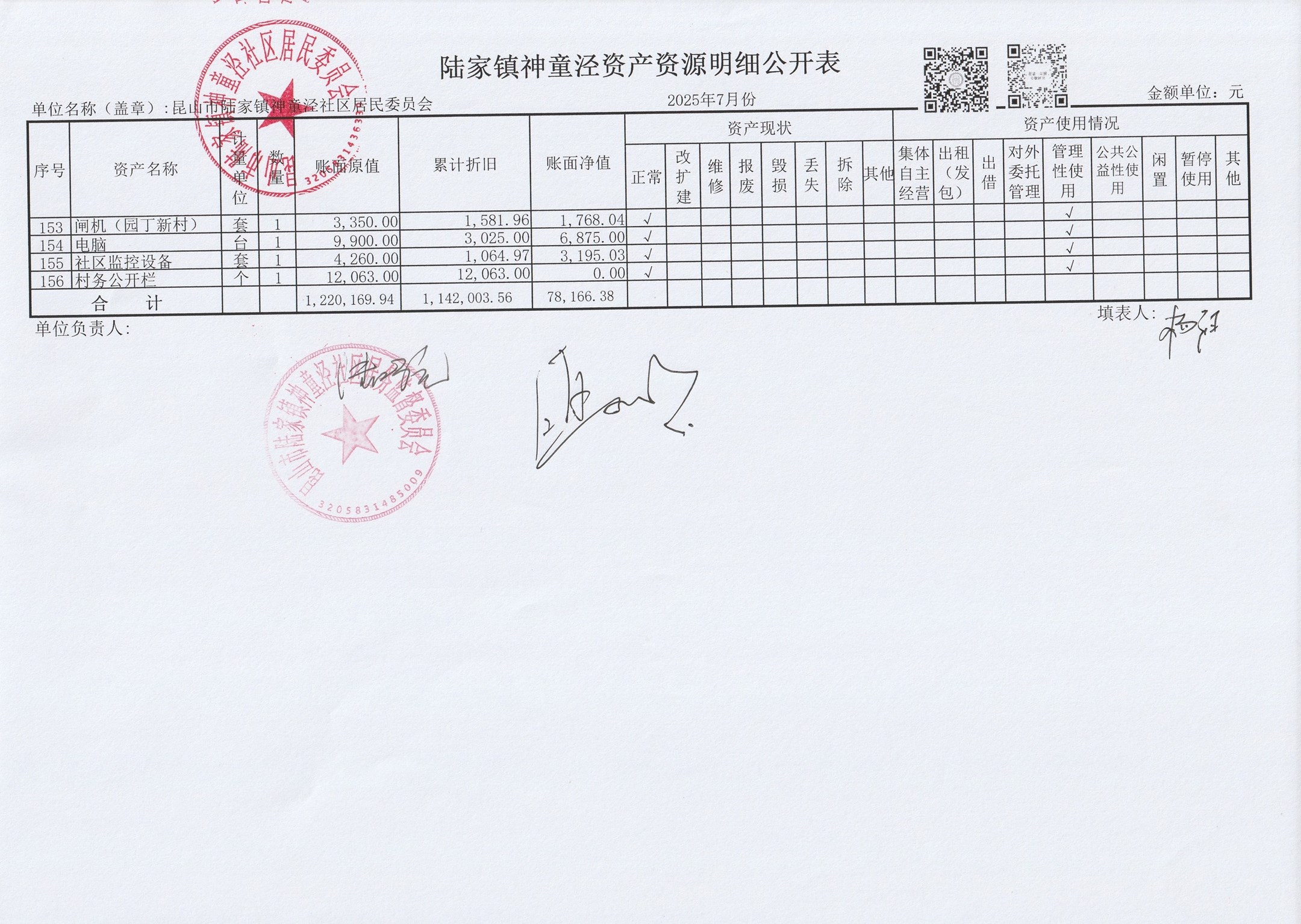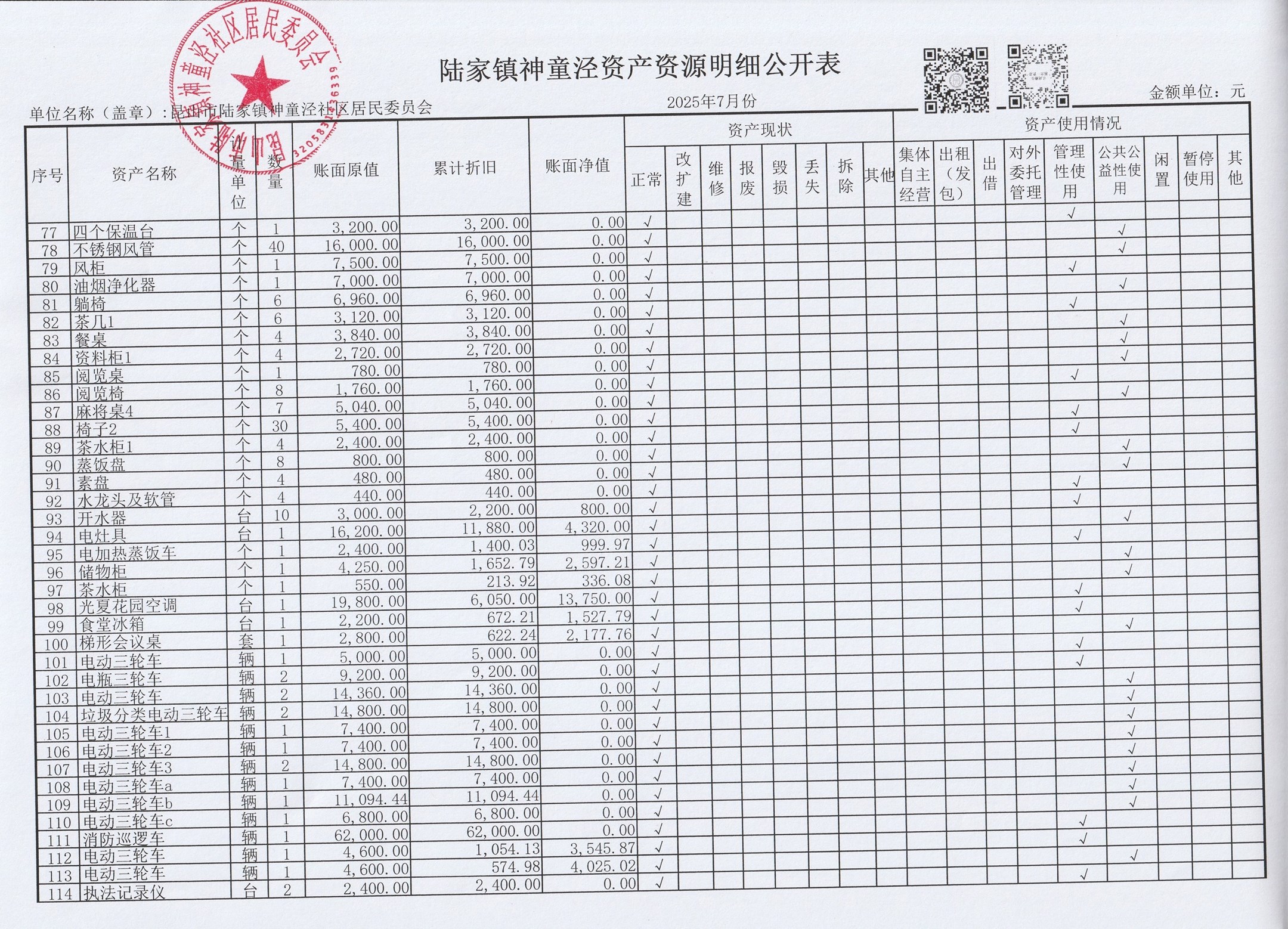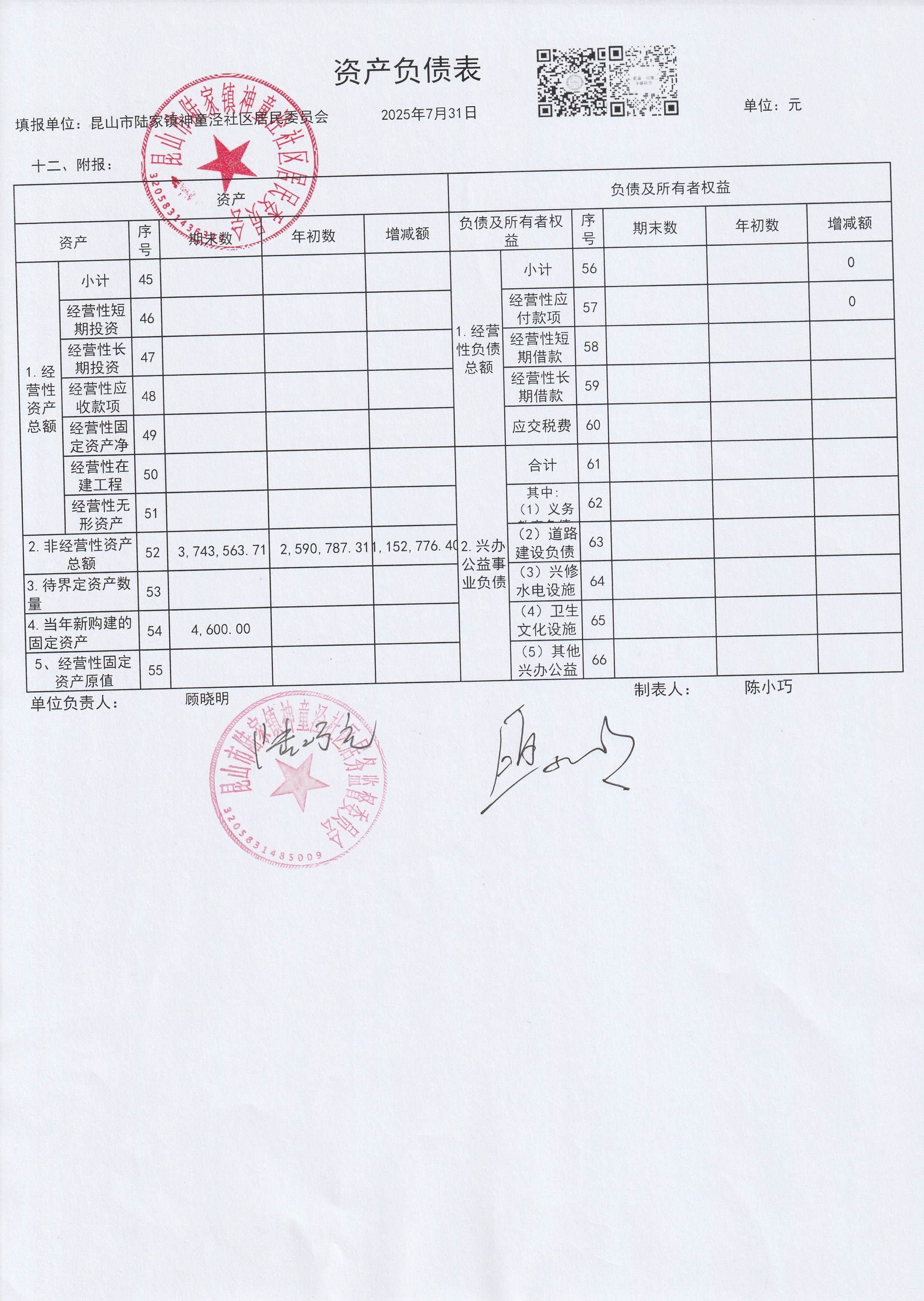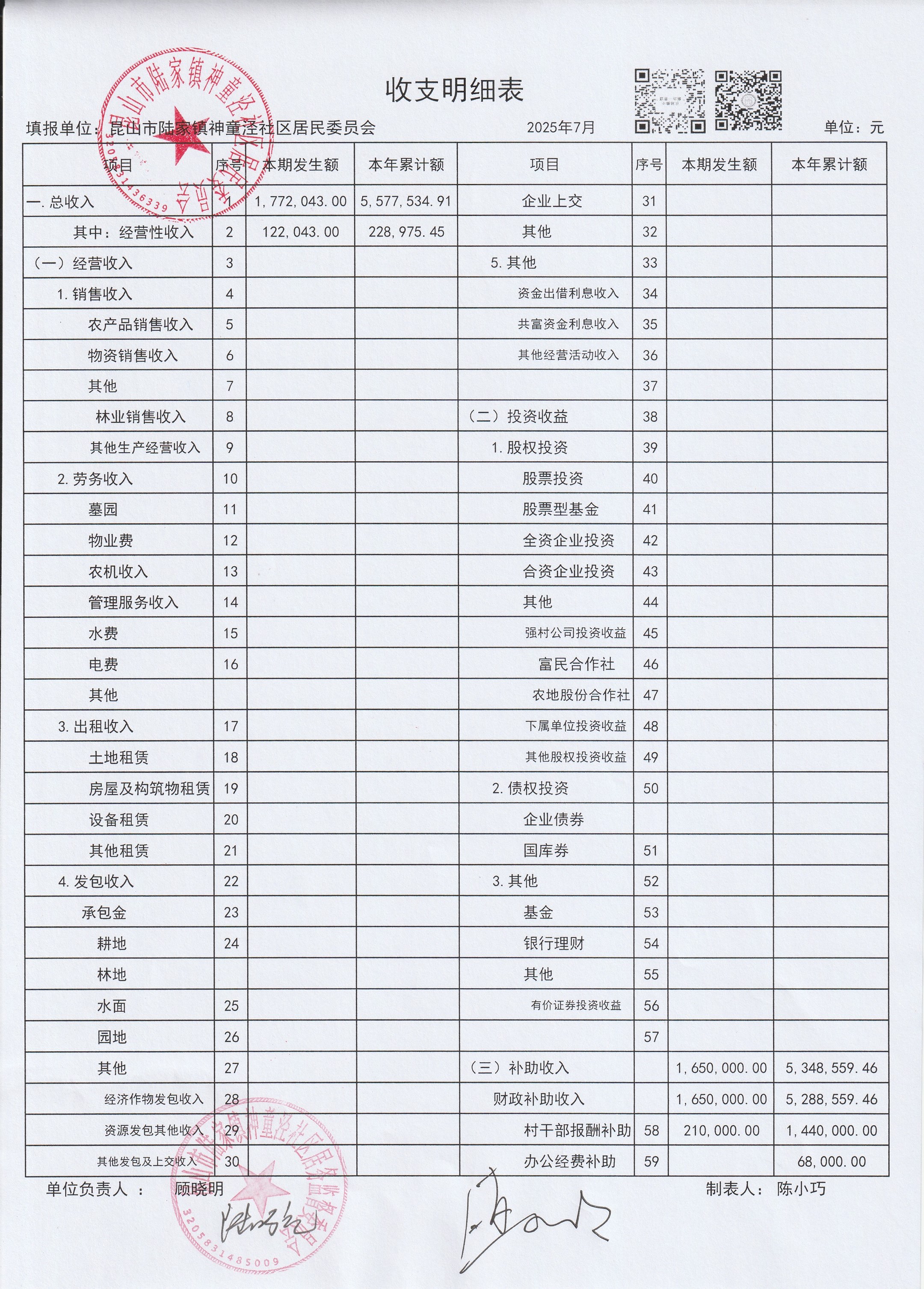 神童涇社區(qū)居民委員會財務(wù)公開(2025年7月)