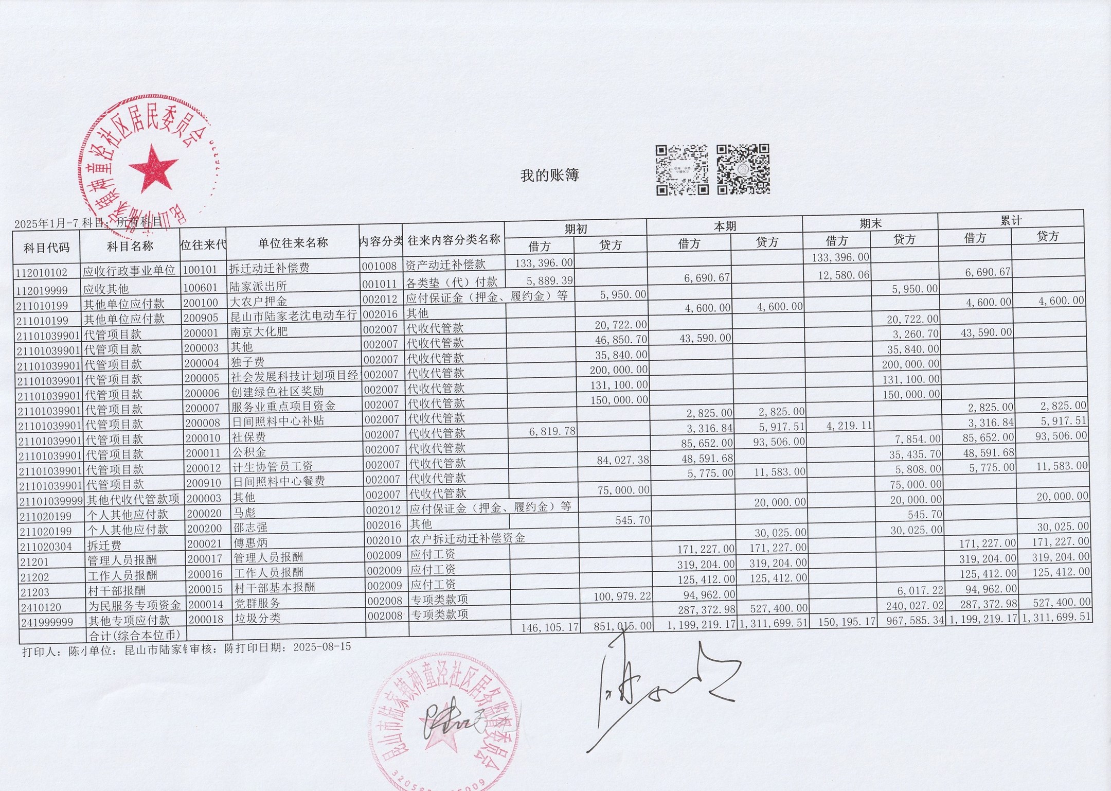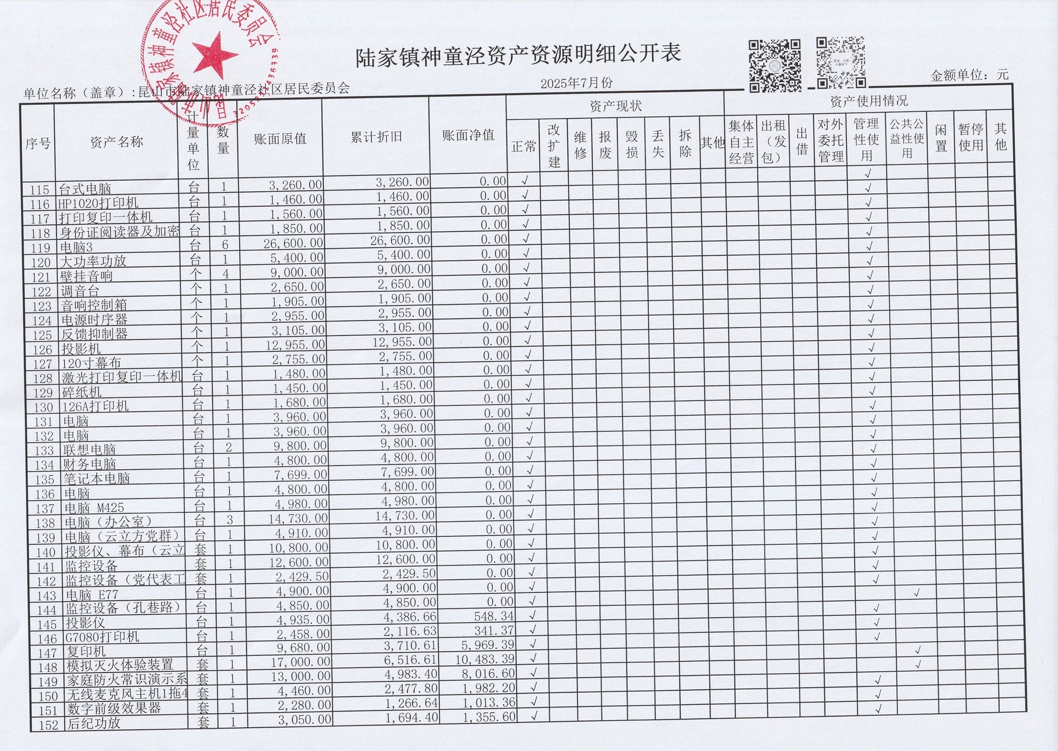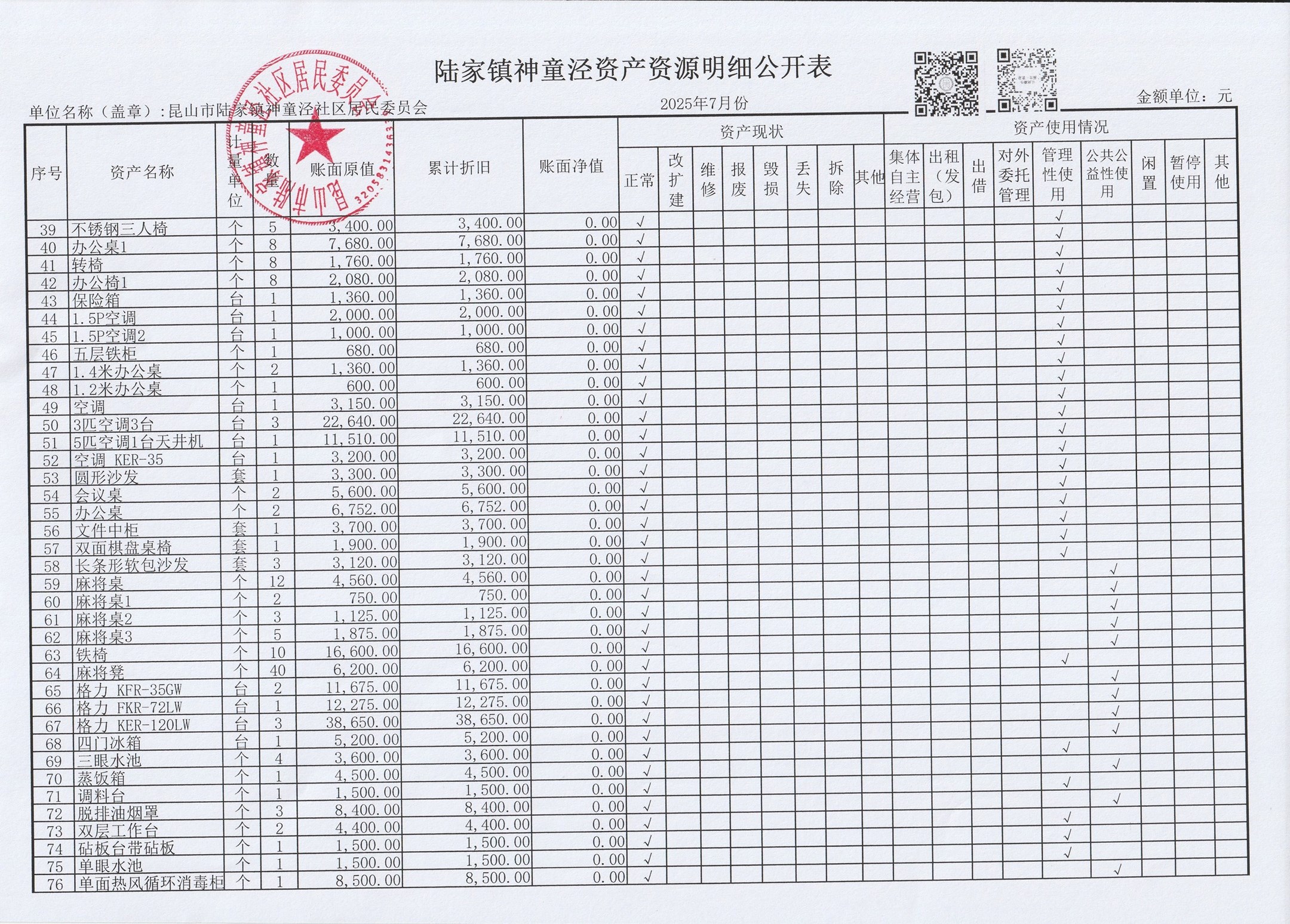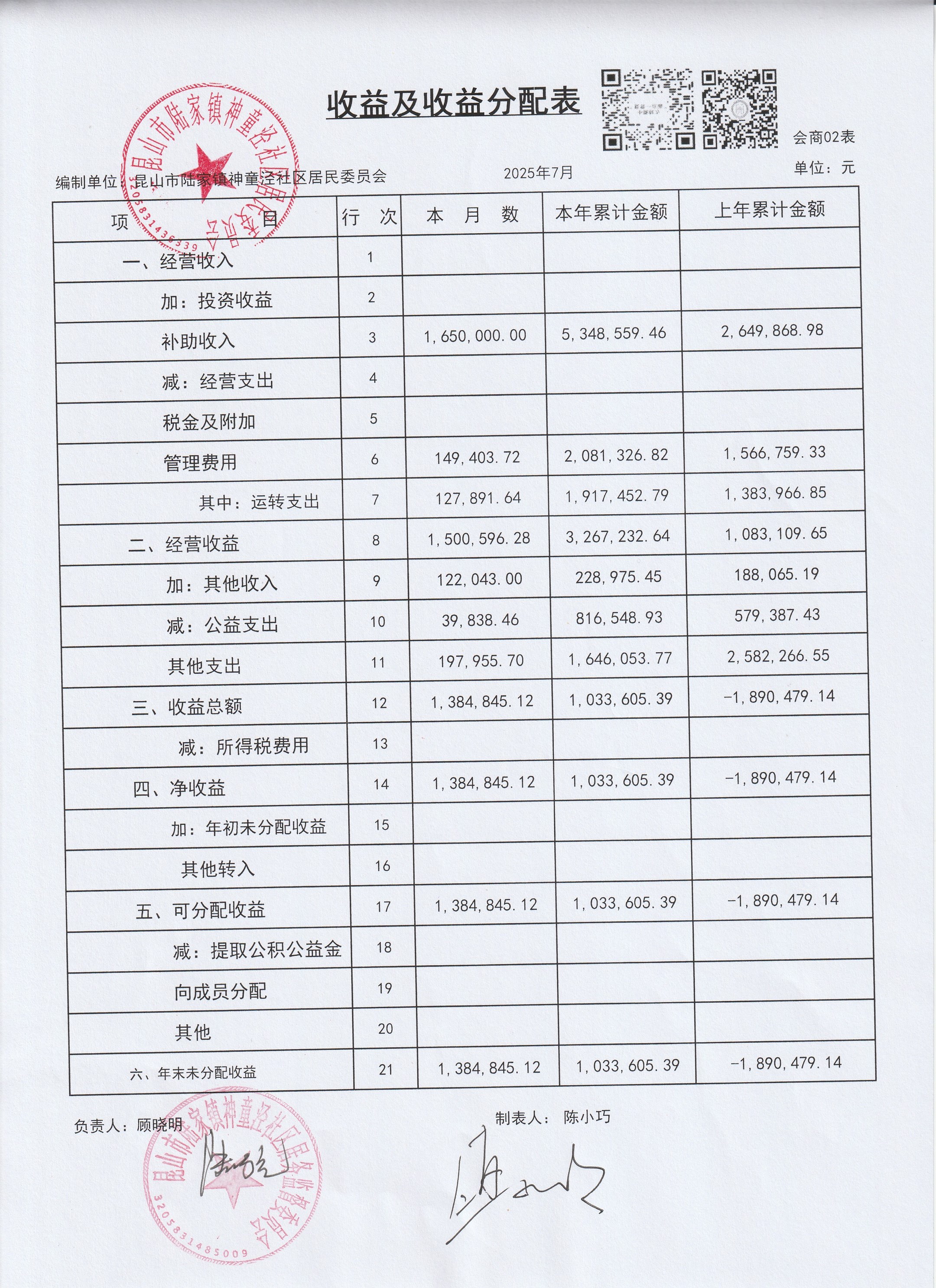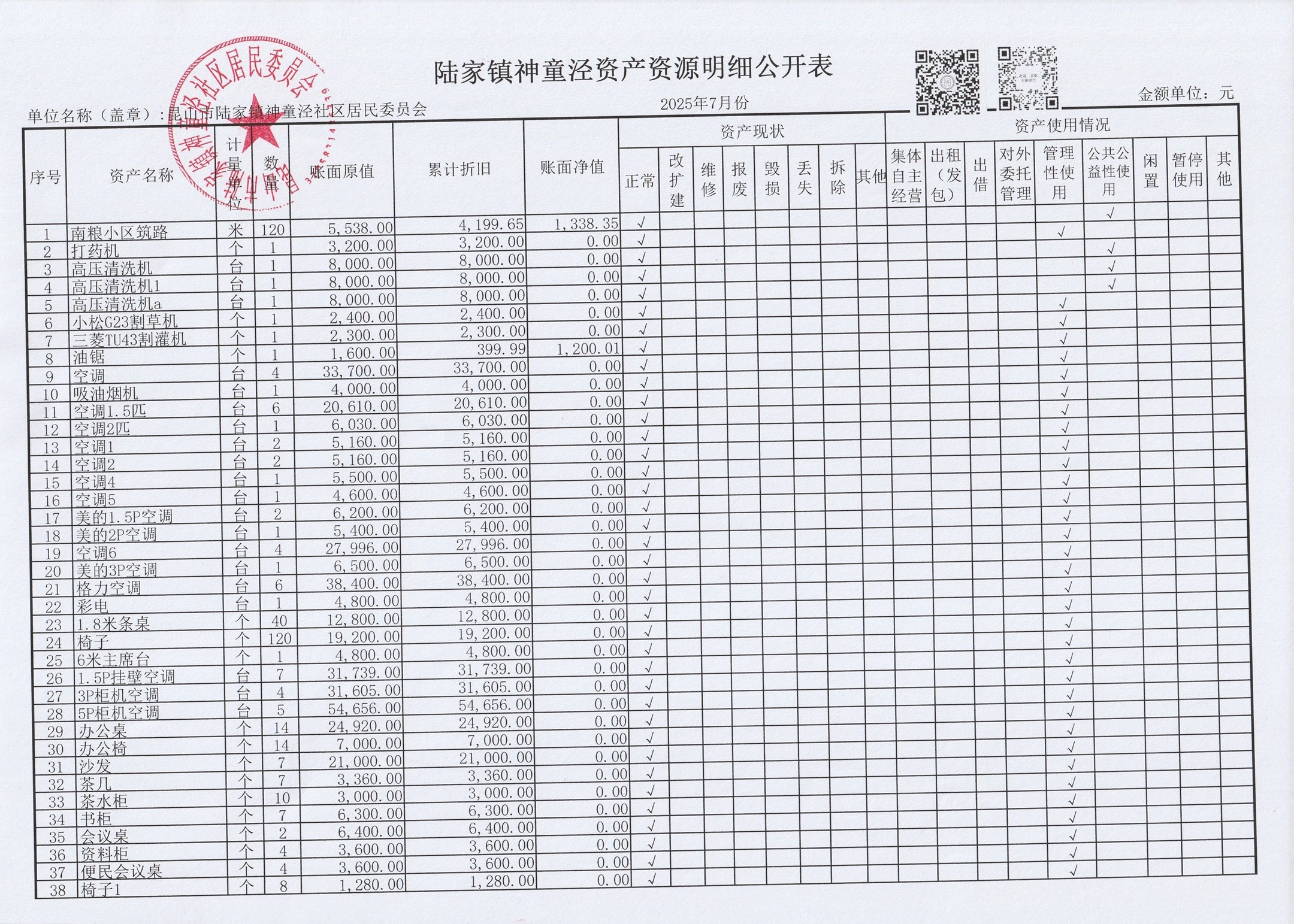 神童涇社區(qū)居民委員會財務(wù)公開(2025年7月)
