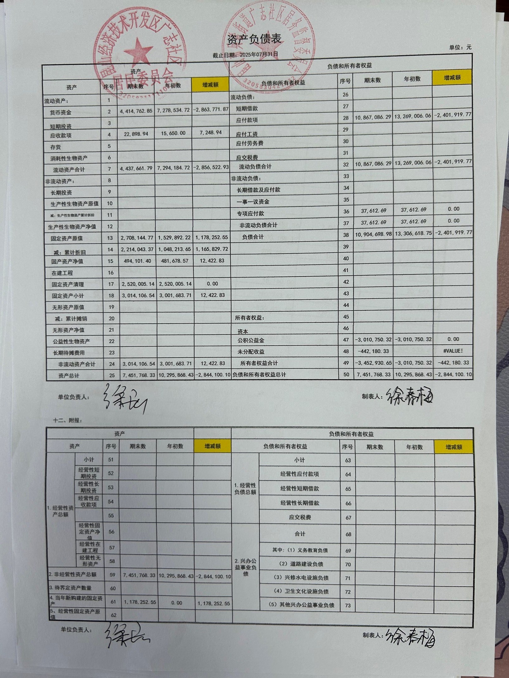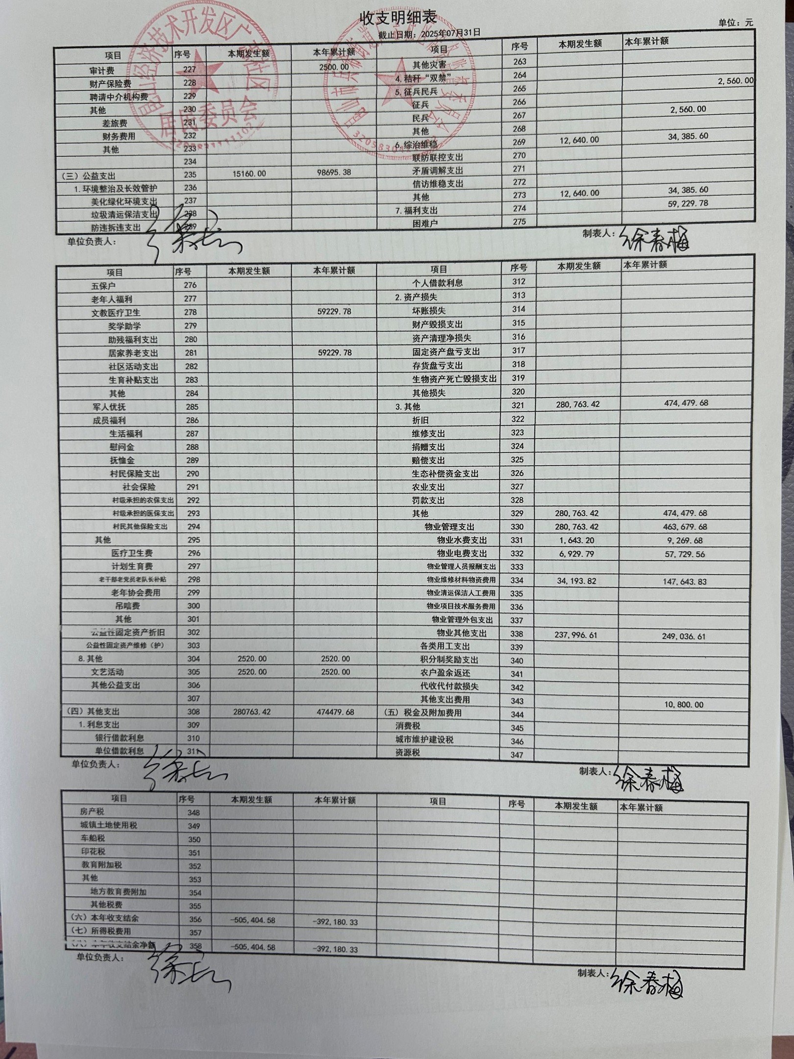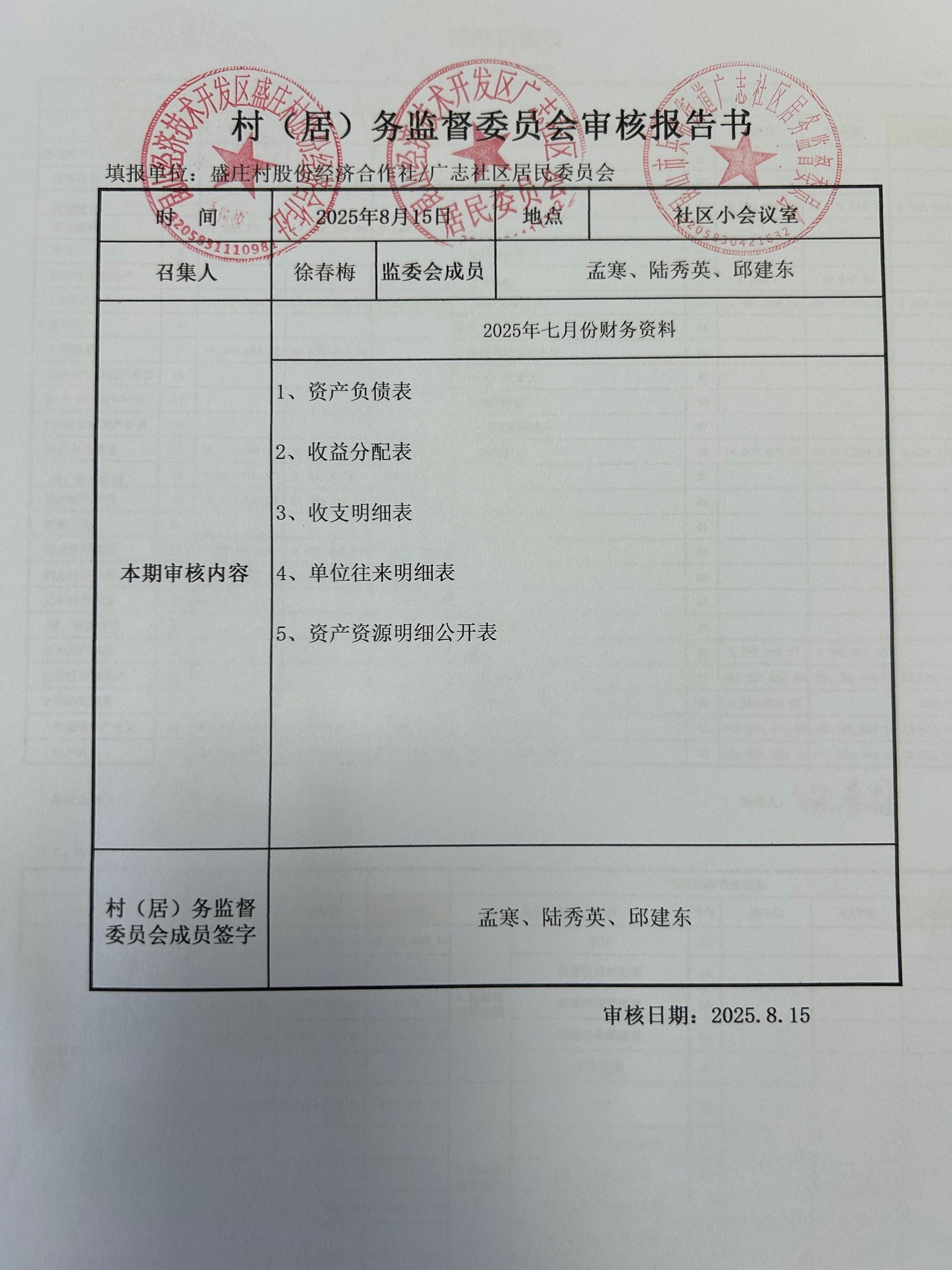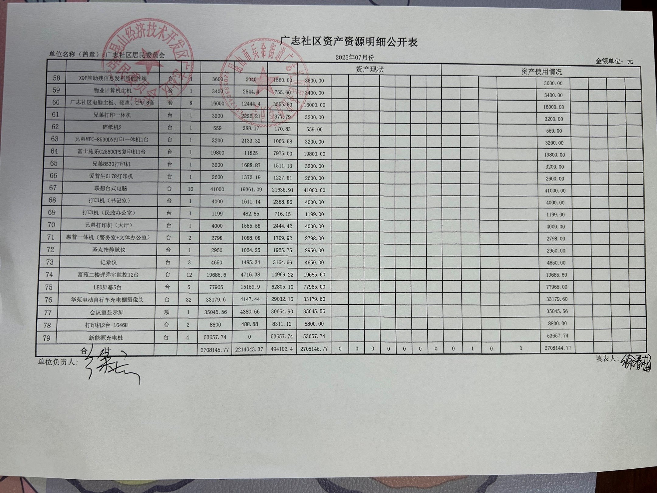 2025年7月份廣志社區(qū)財務(wù)公開資料