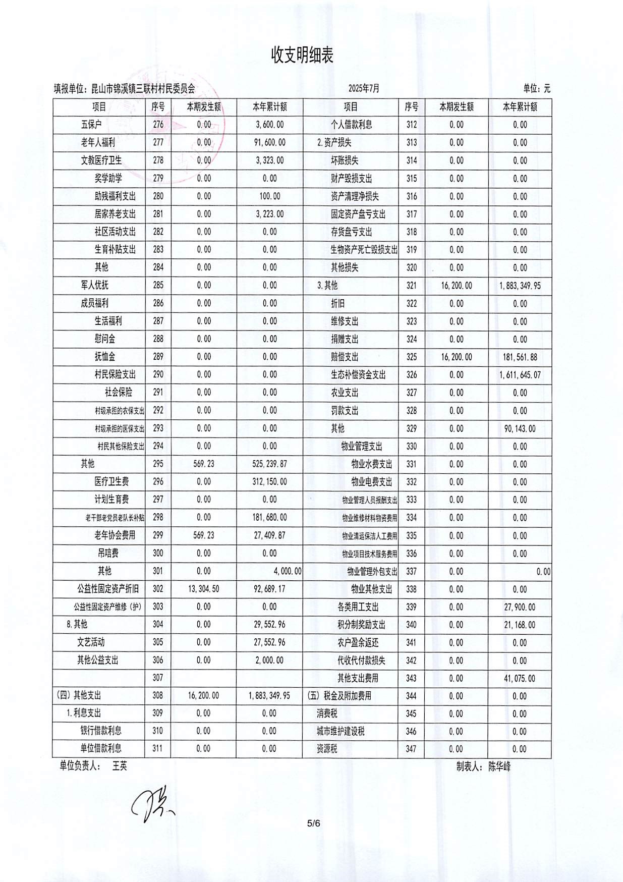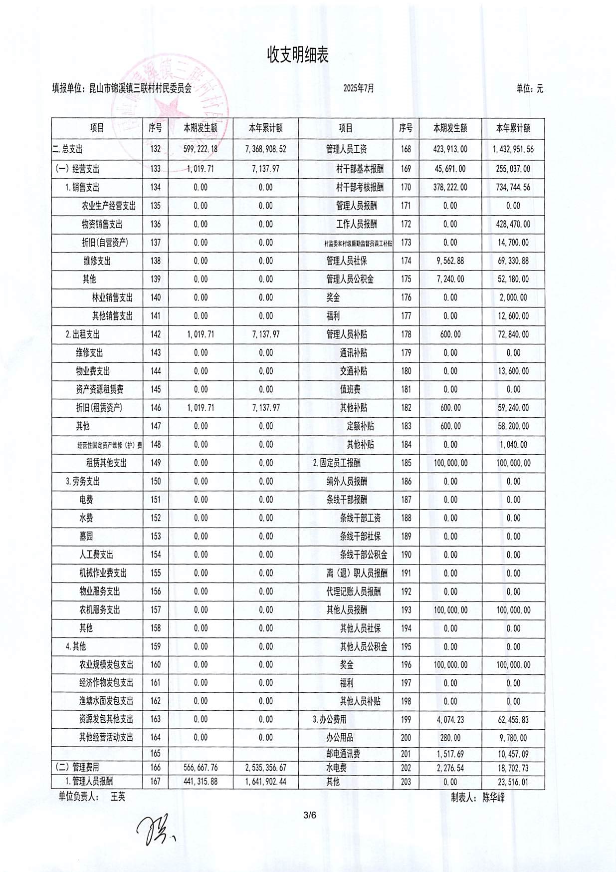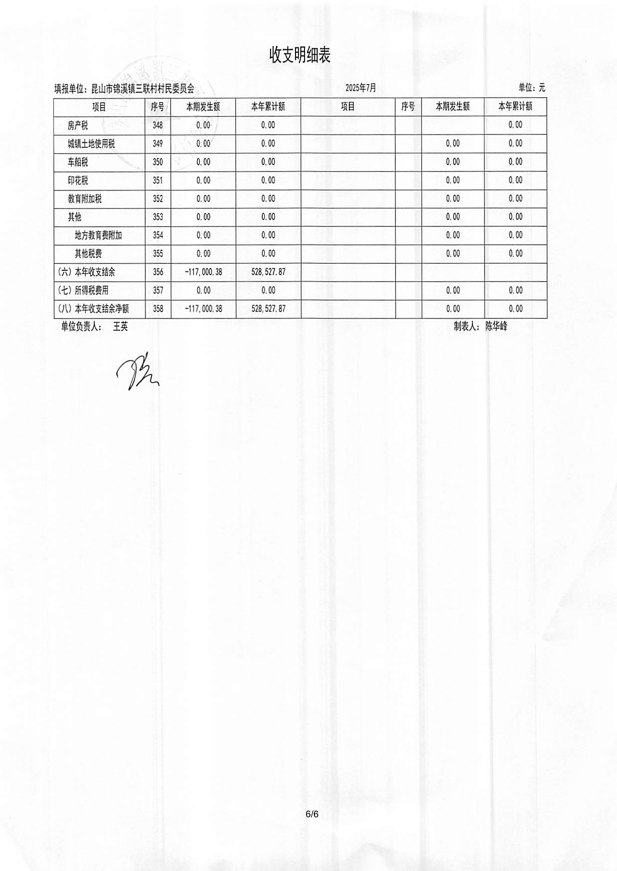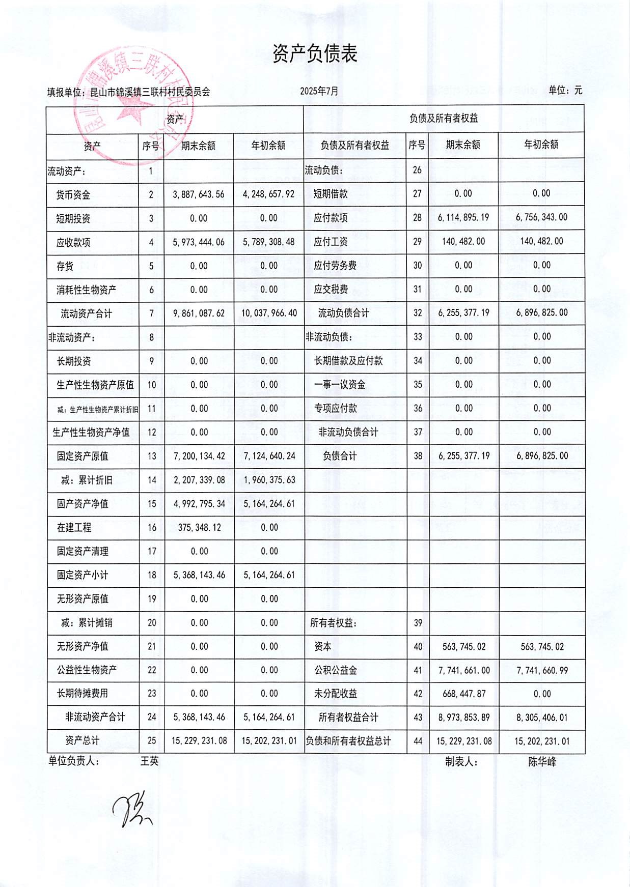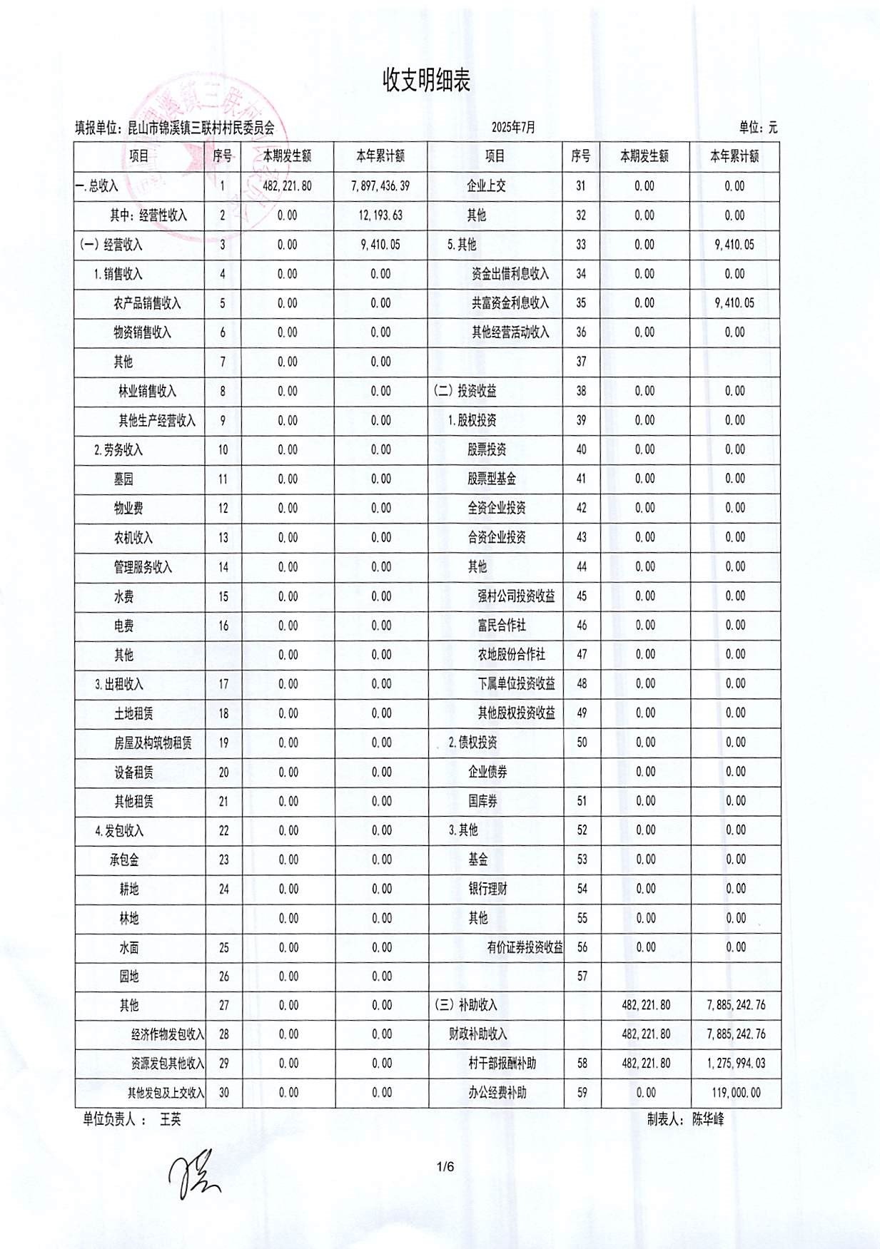 2025年三聯(lián)村村委會7月份財務(wù)公開