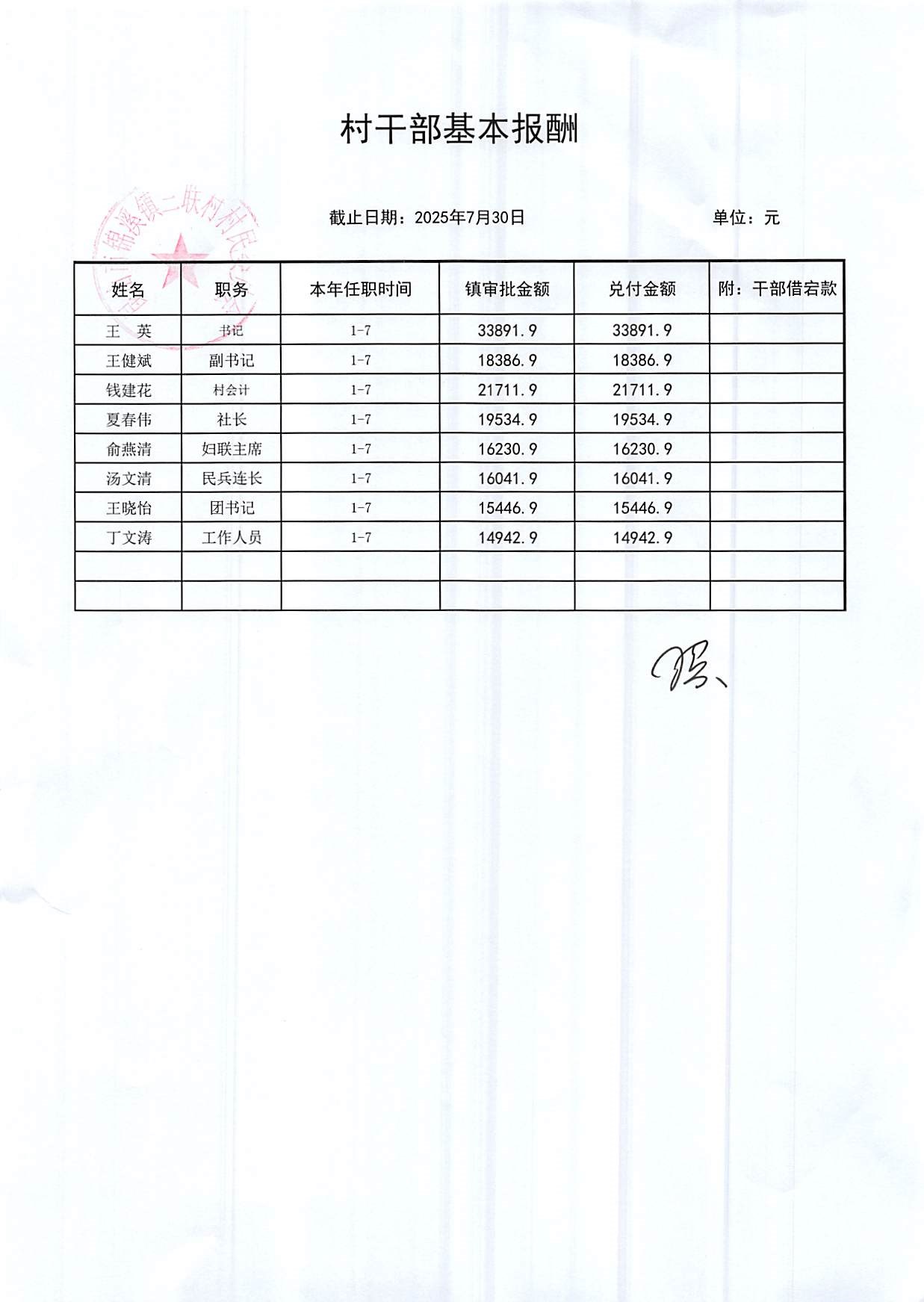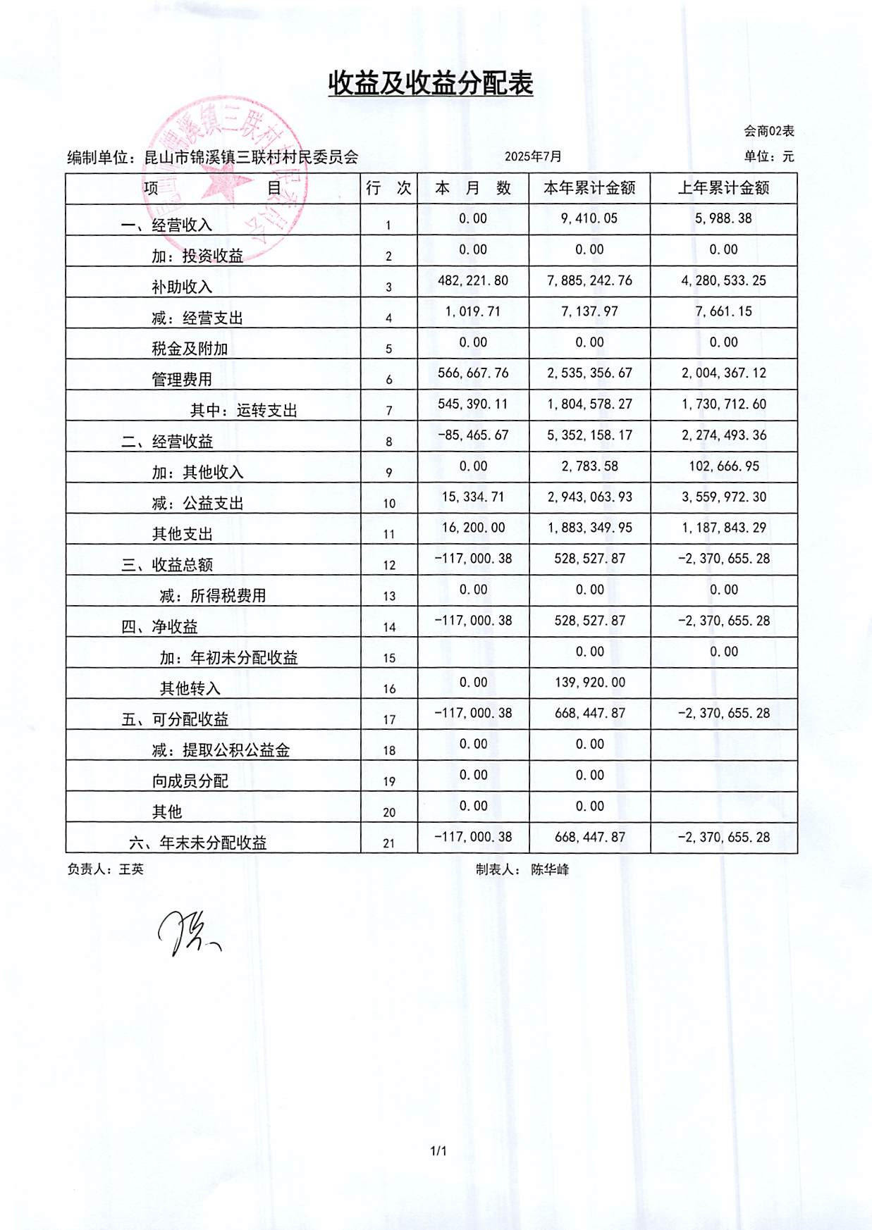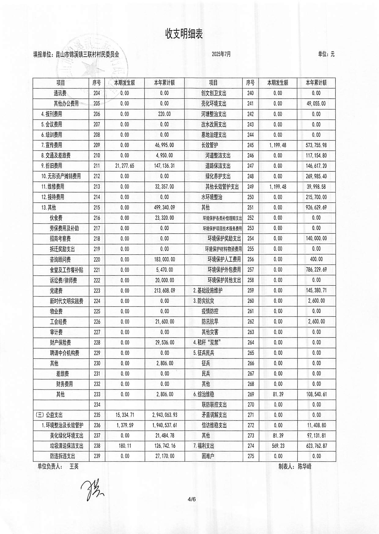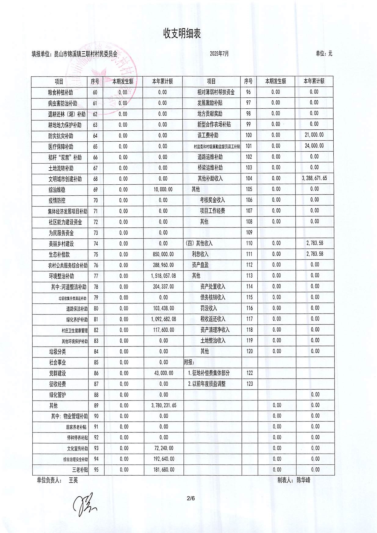 2025年三聯(lián)村村委會7月份財務(wù)公開