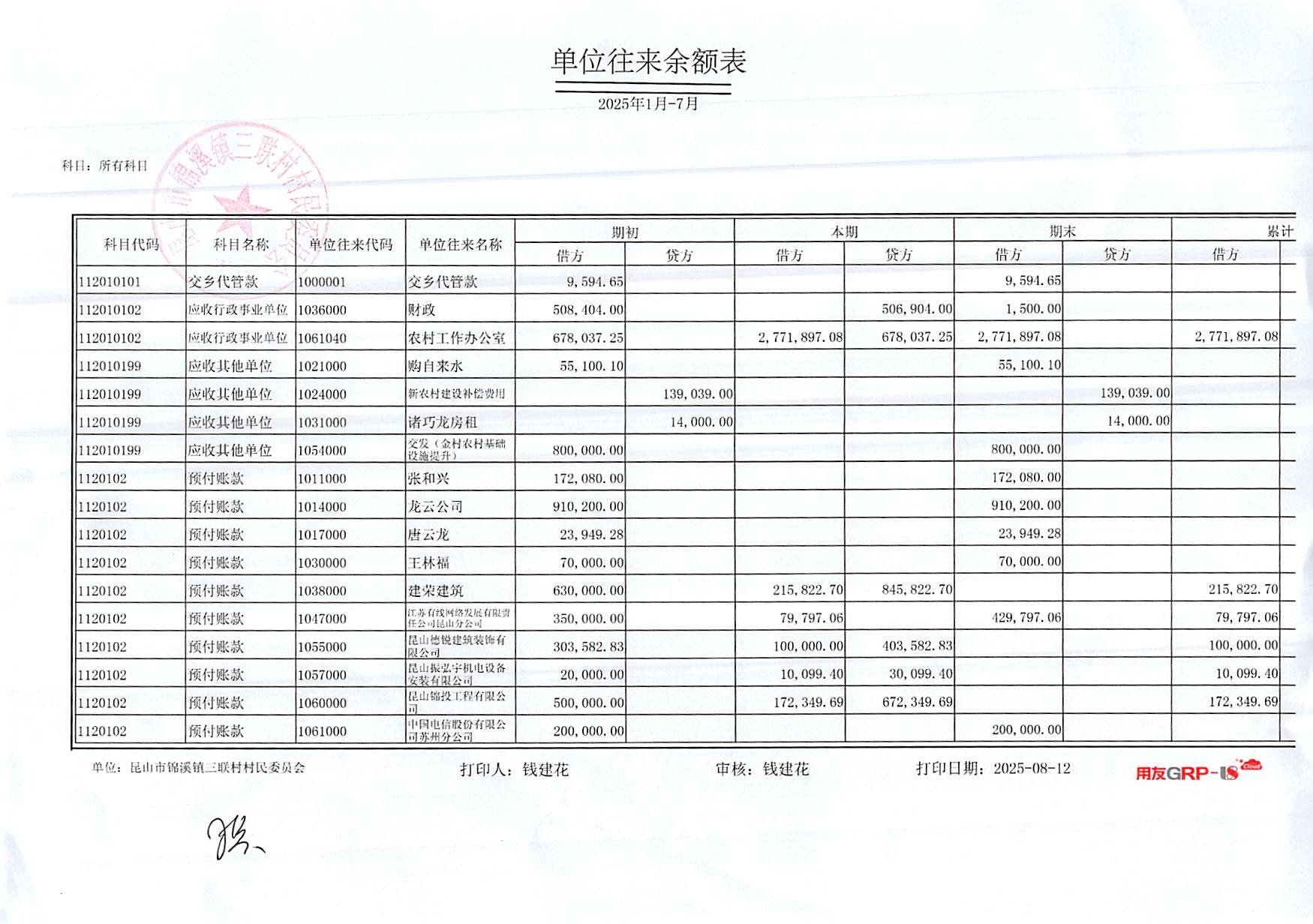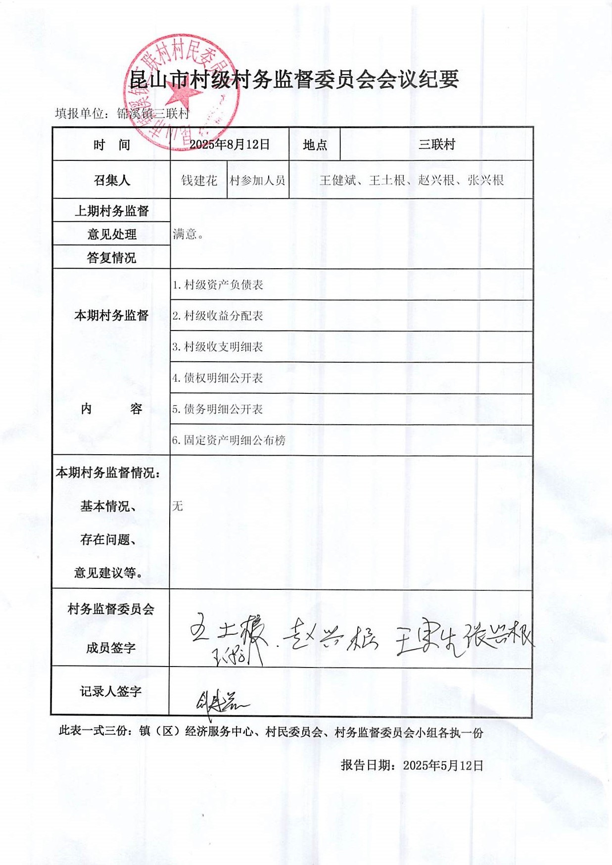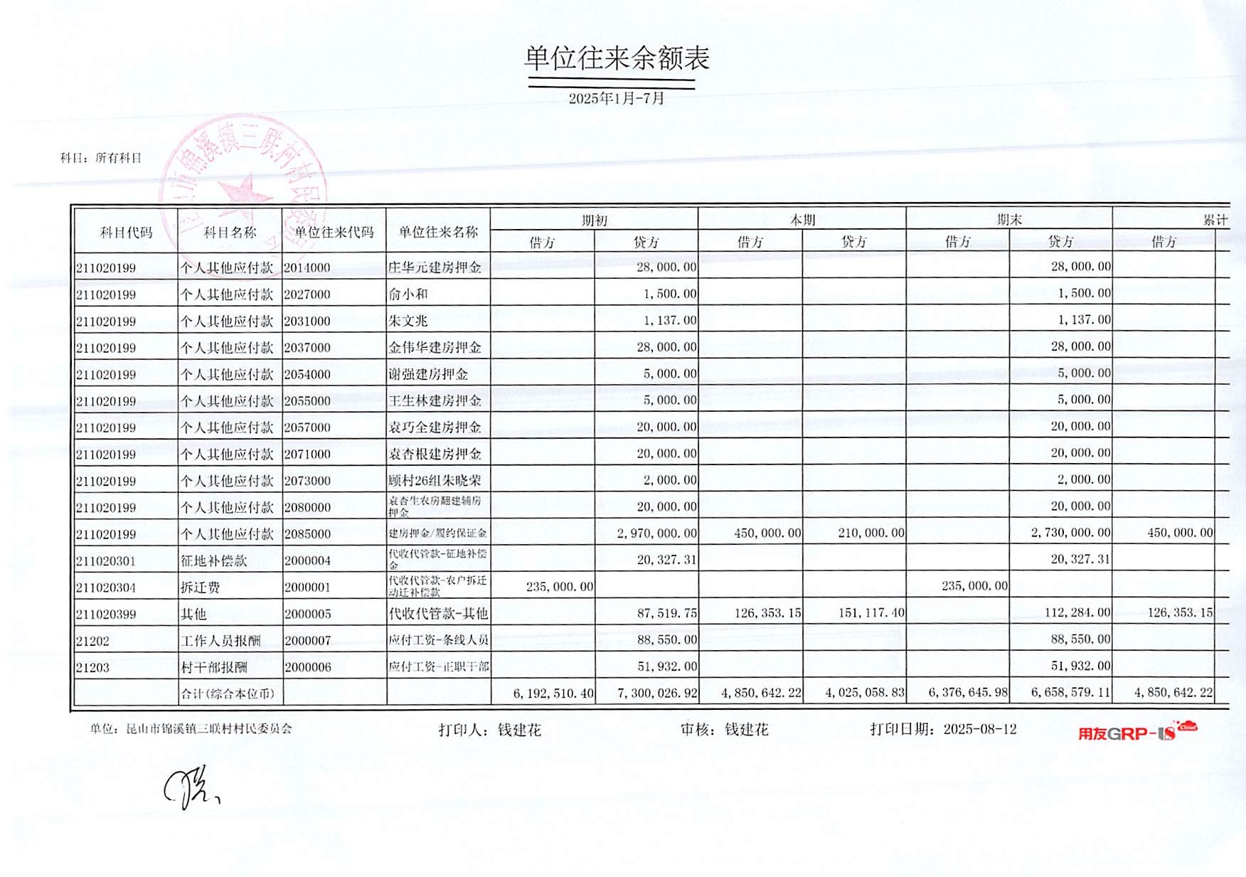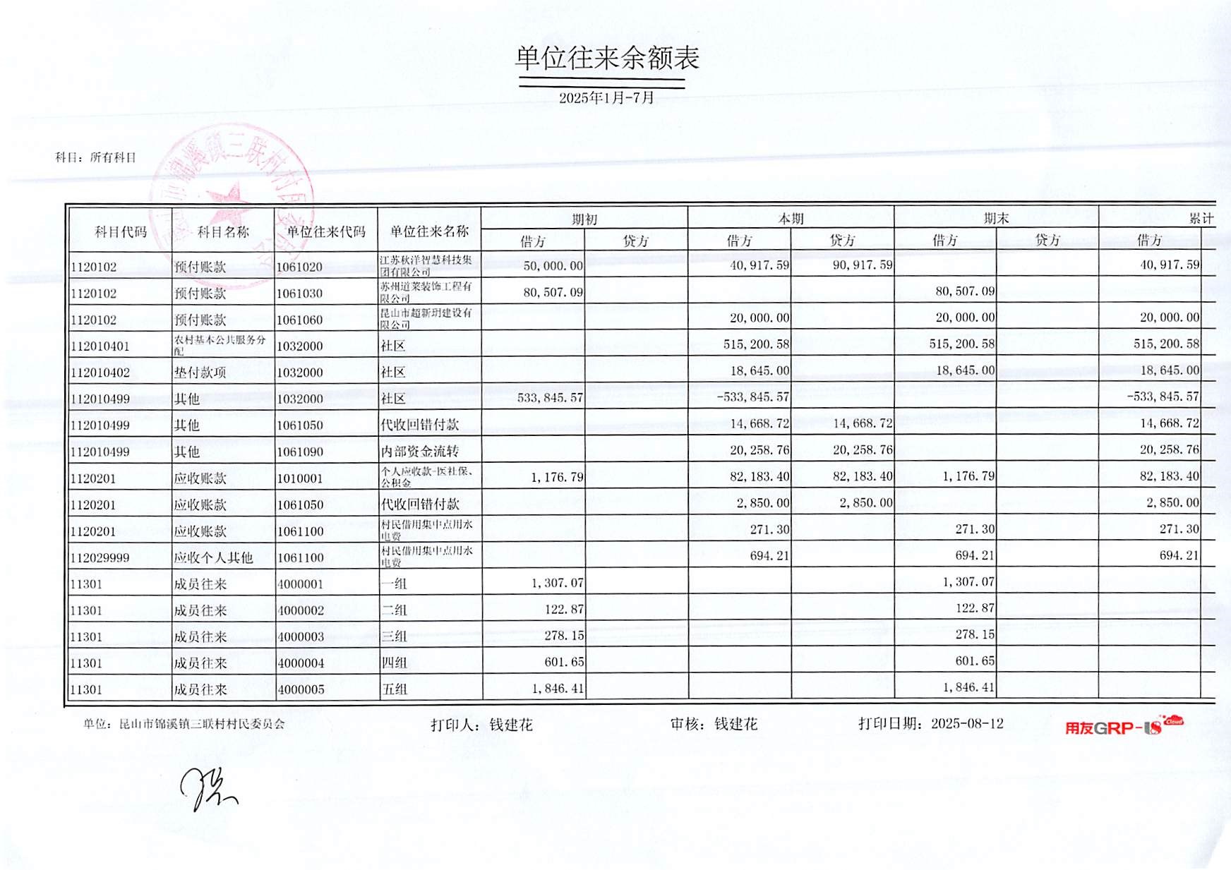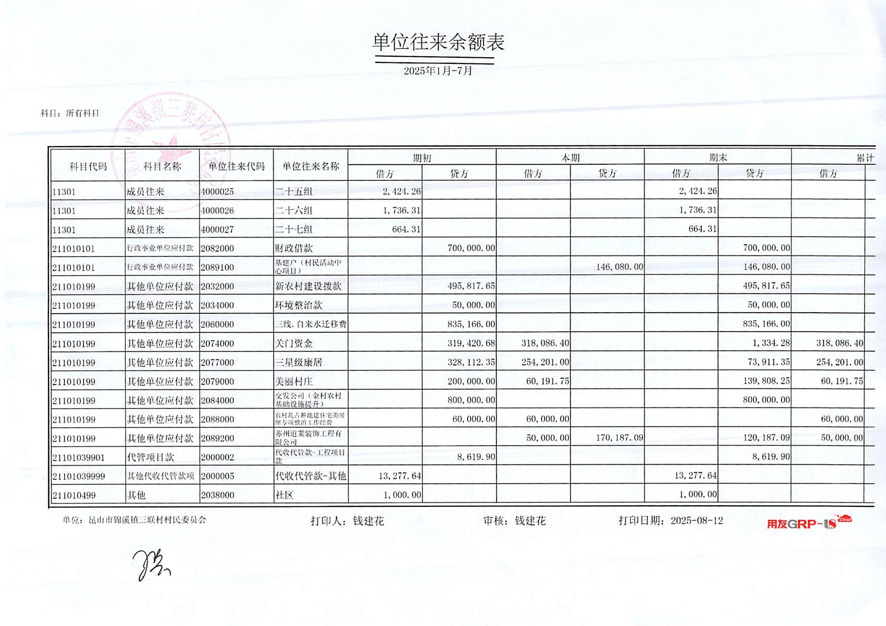 2025年三聯(lián)村村委會7月份財務(wù)公開