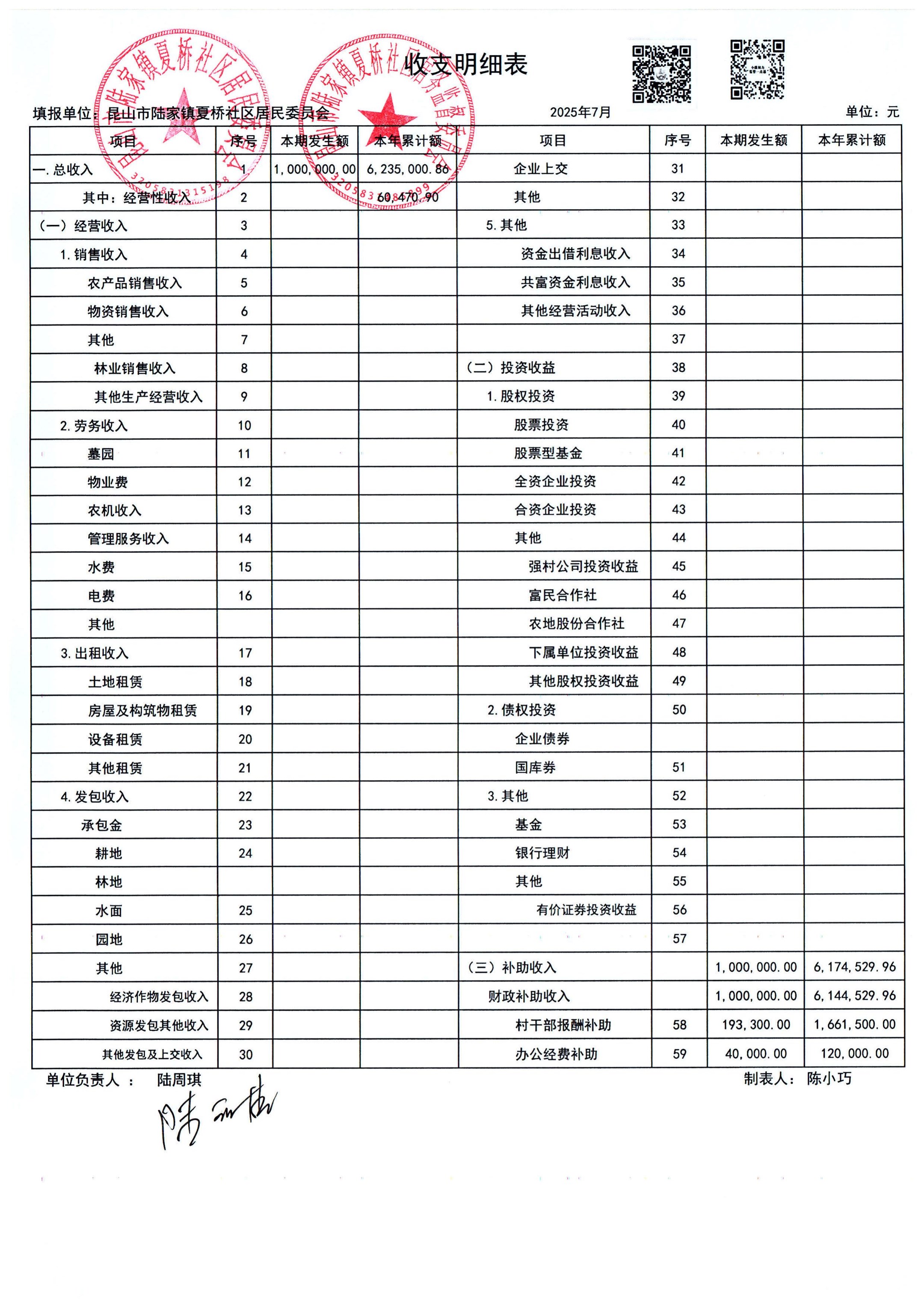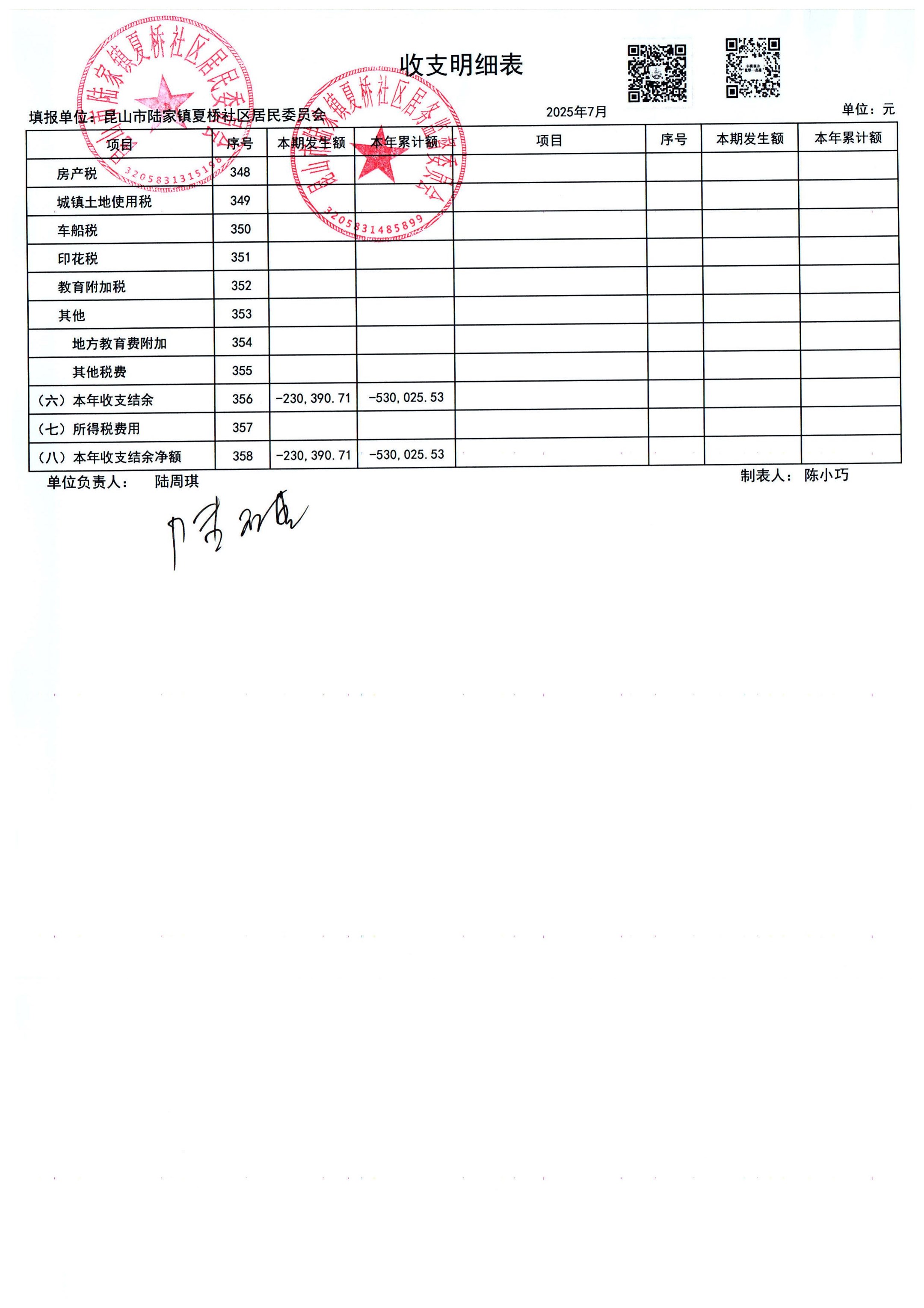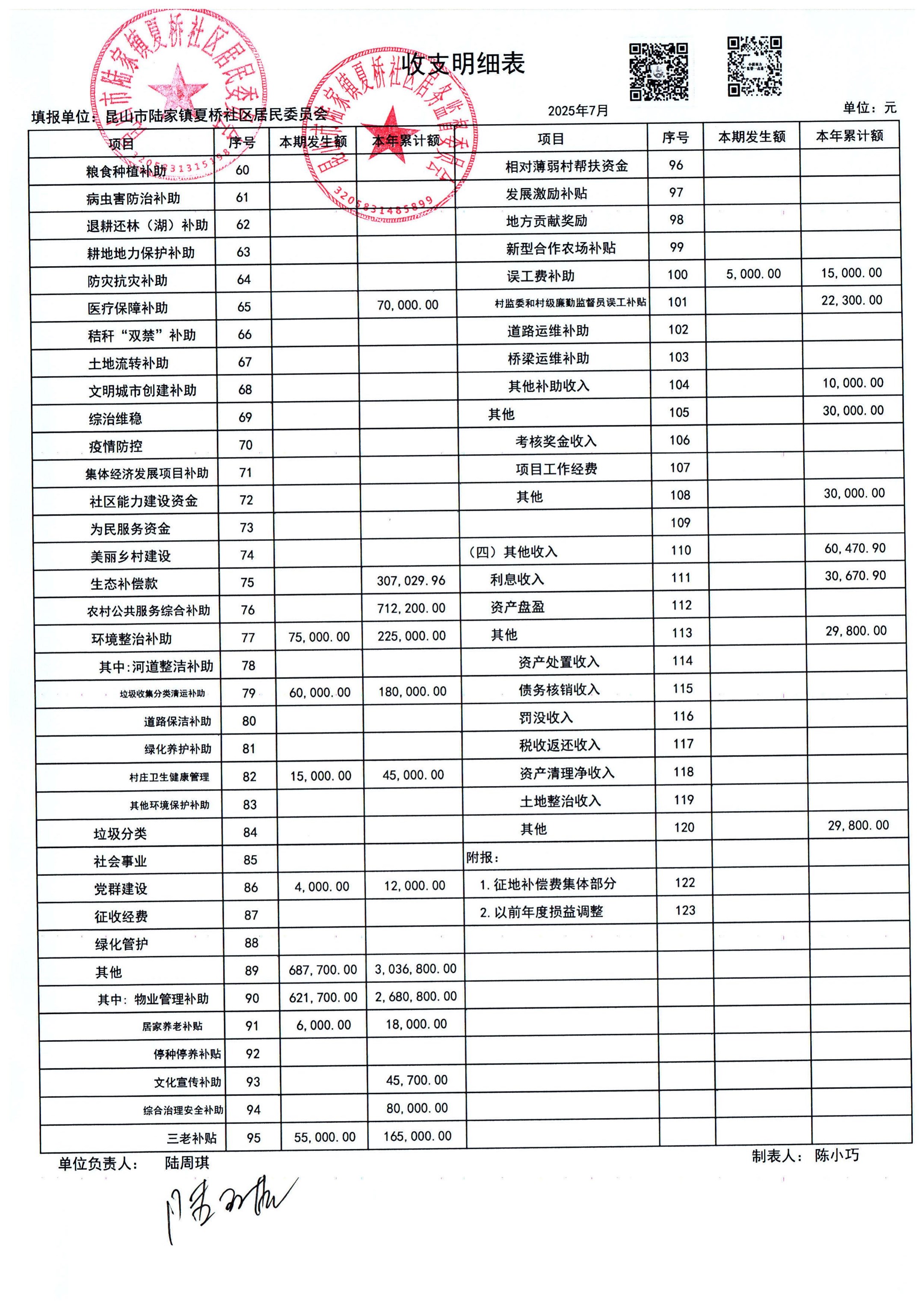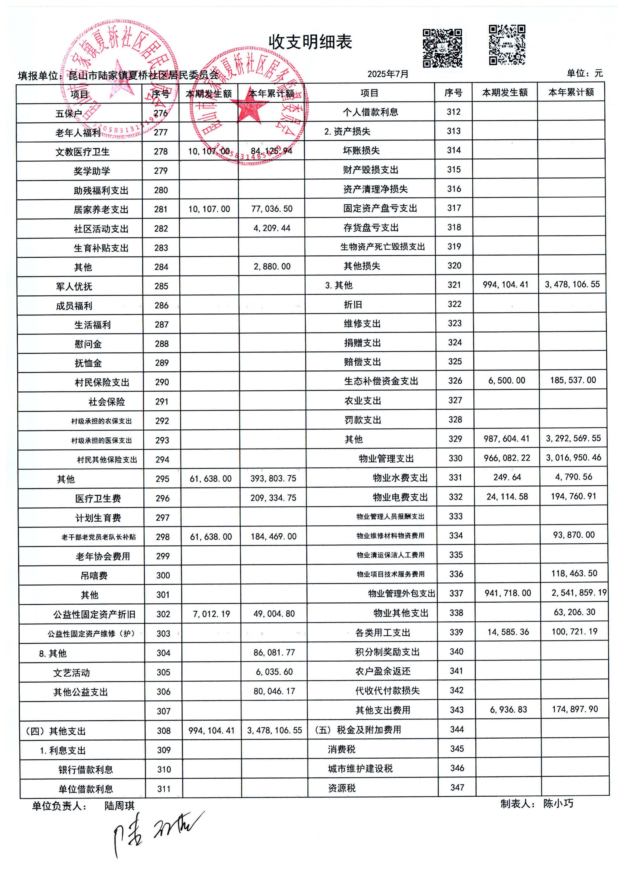 夏橋社區(qū)2025年8月份財務(wù)公開