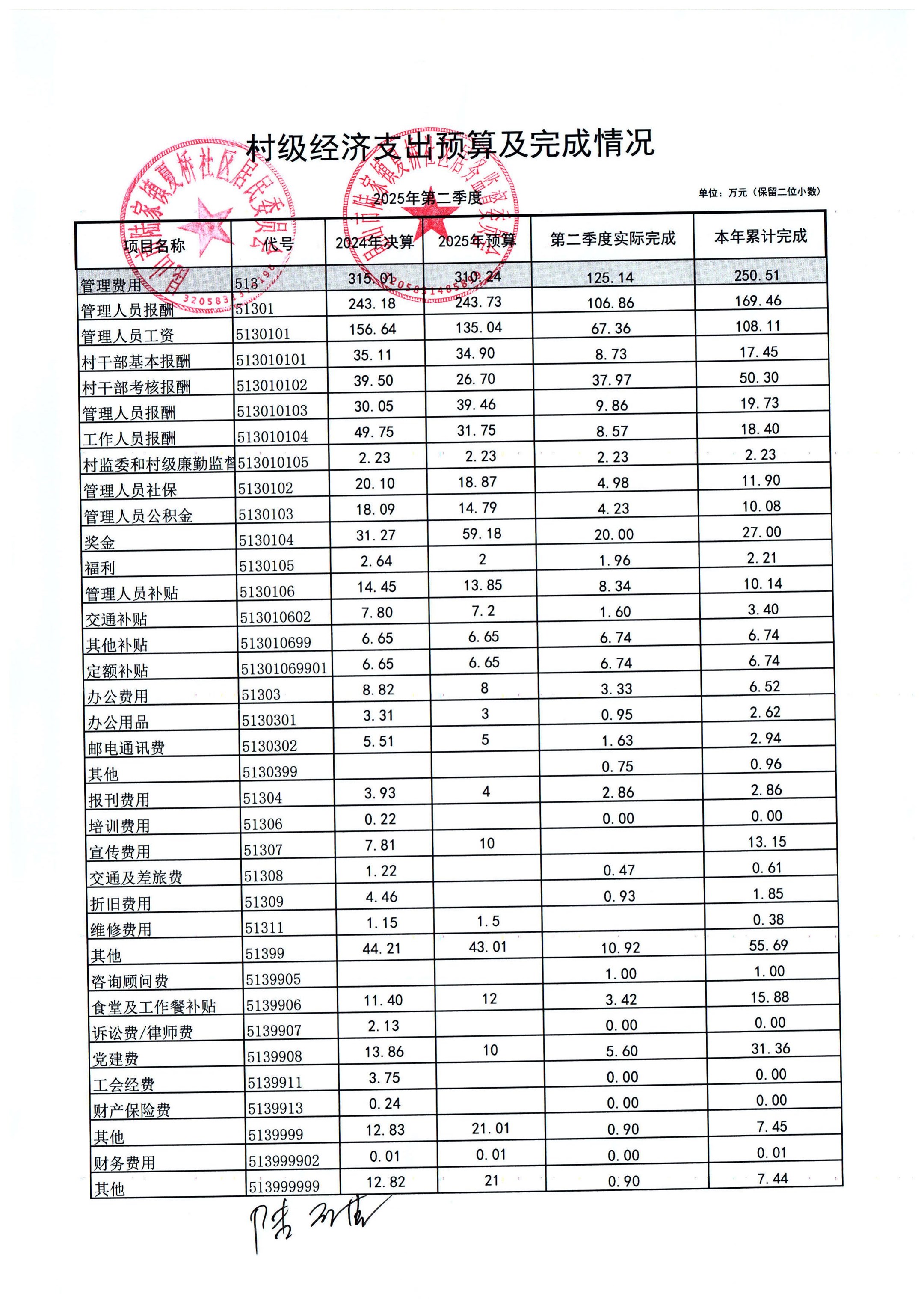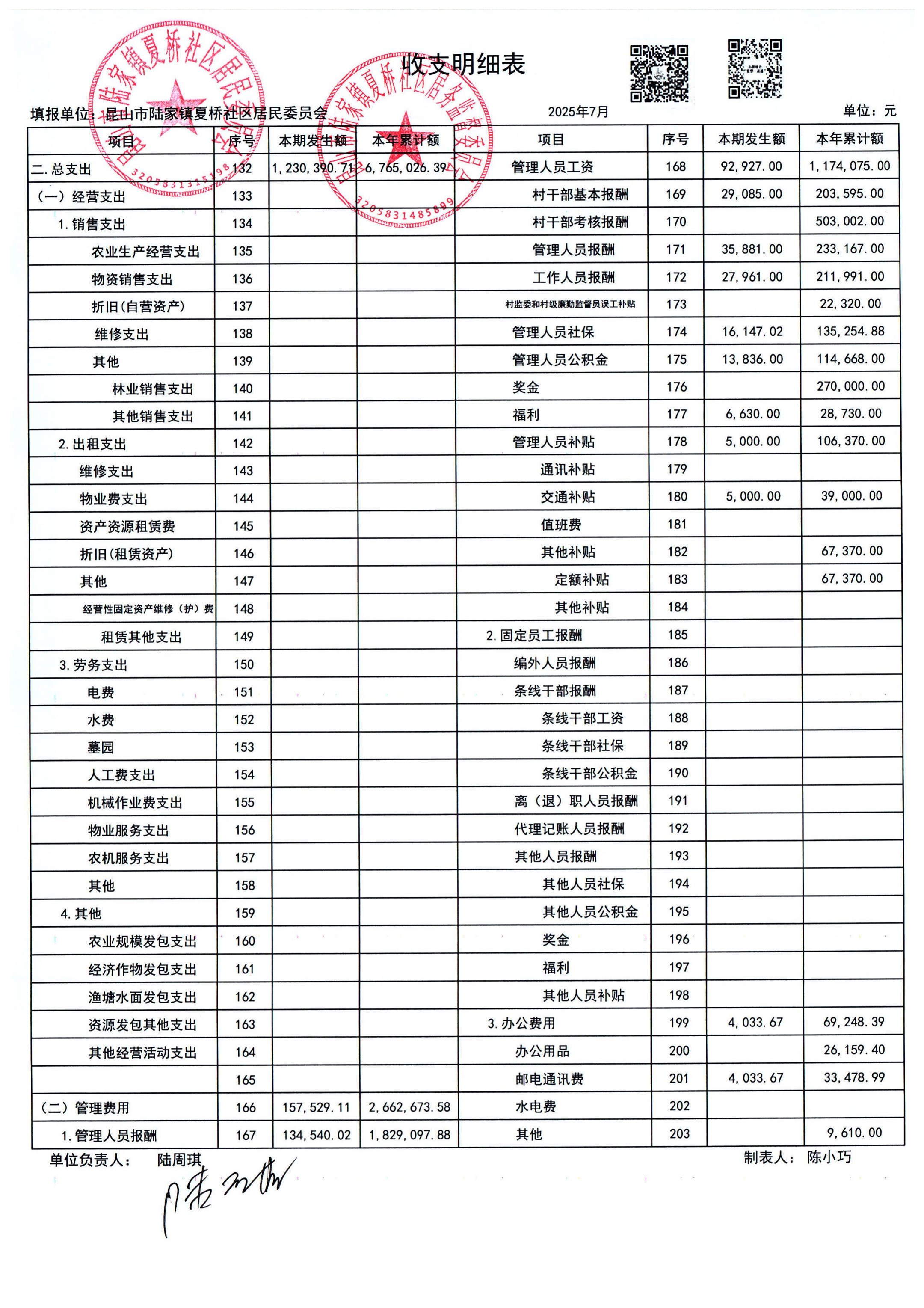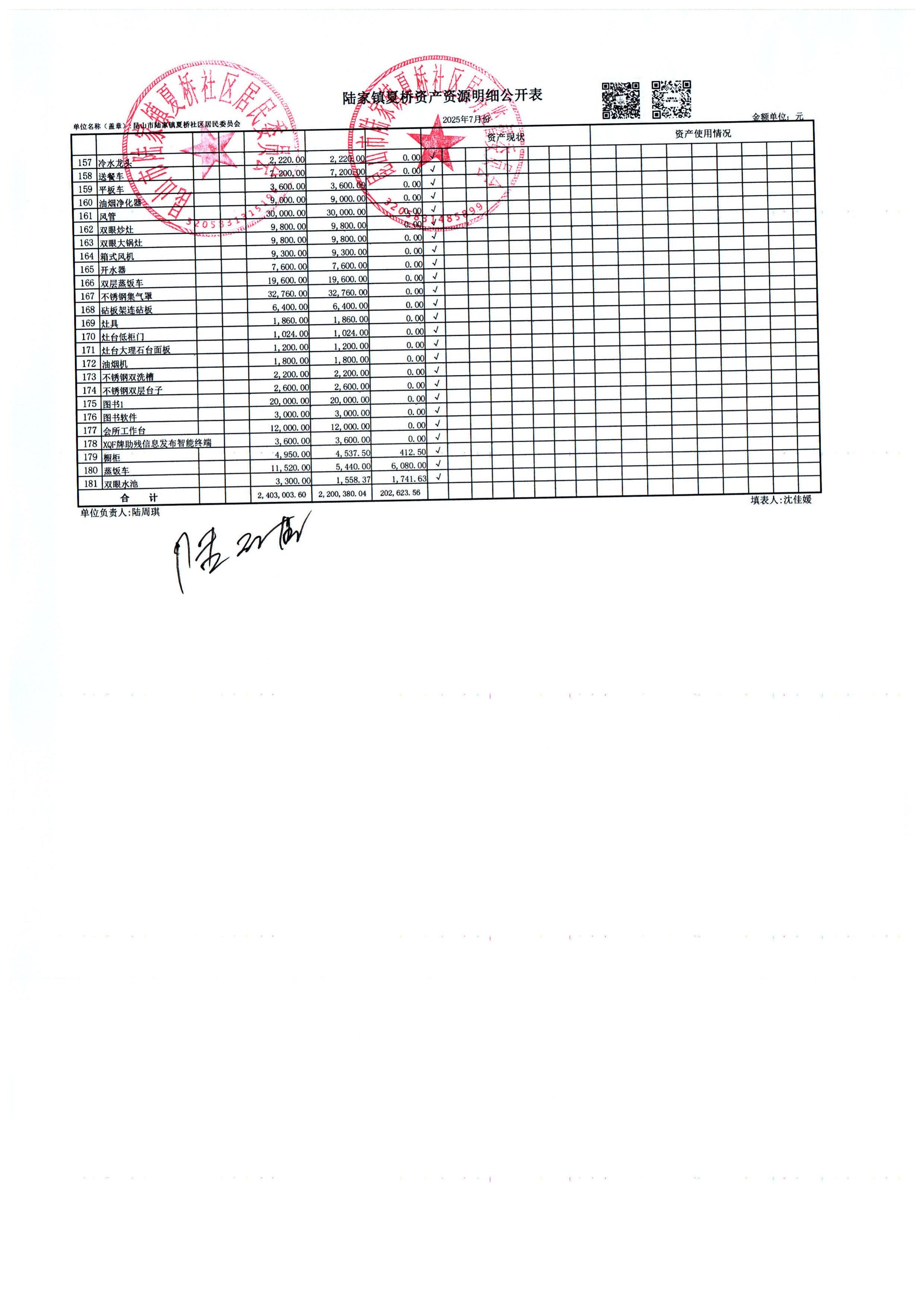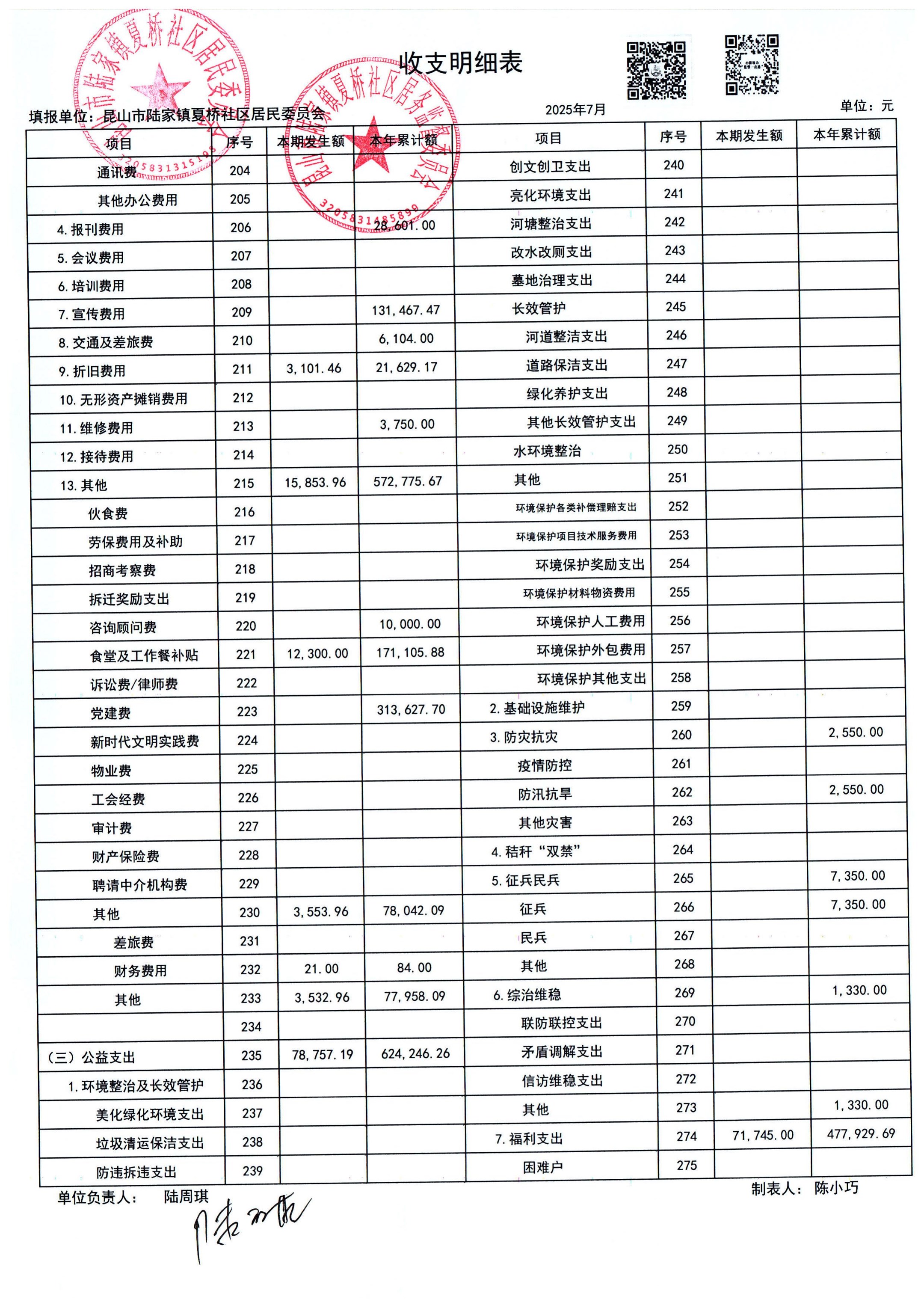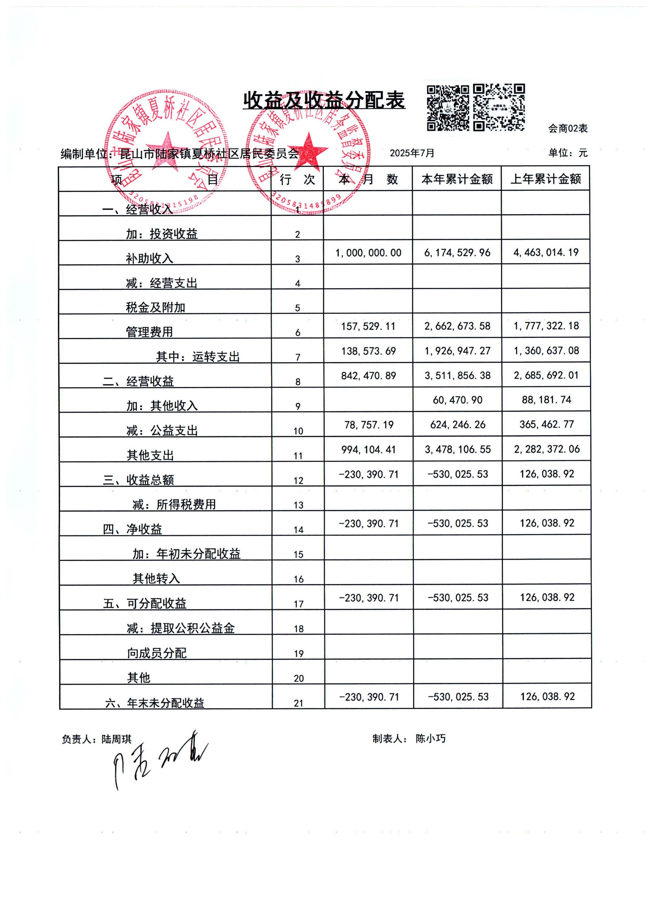 夏橋社區(qū)2025年8月份財務(wù)公開