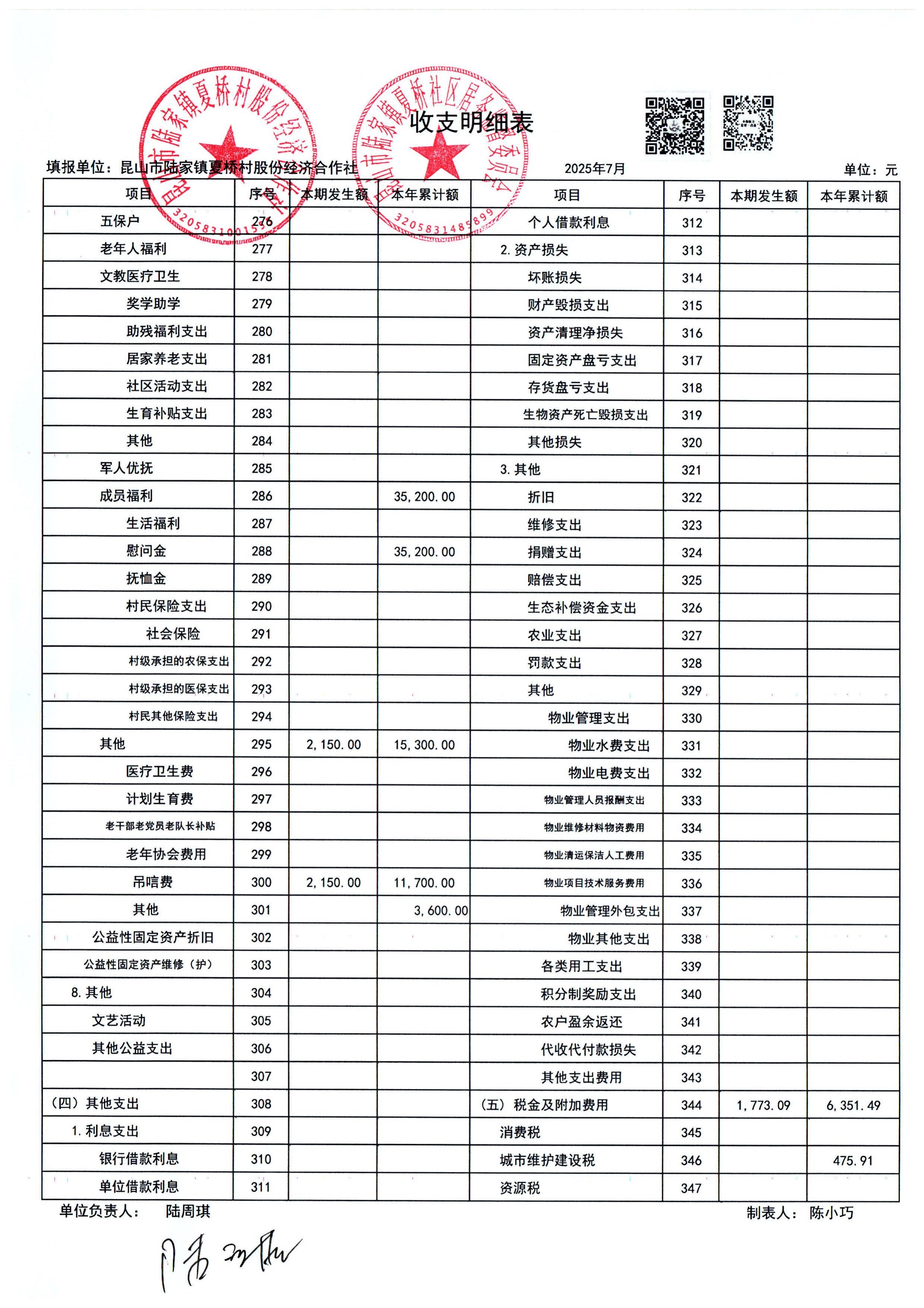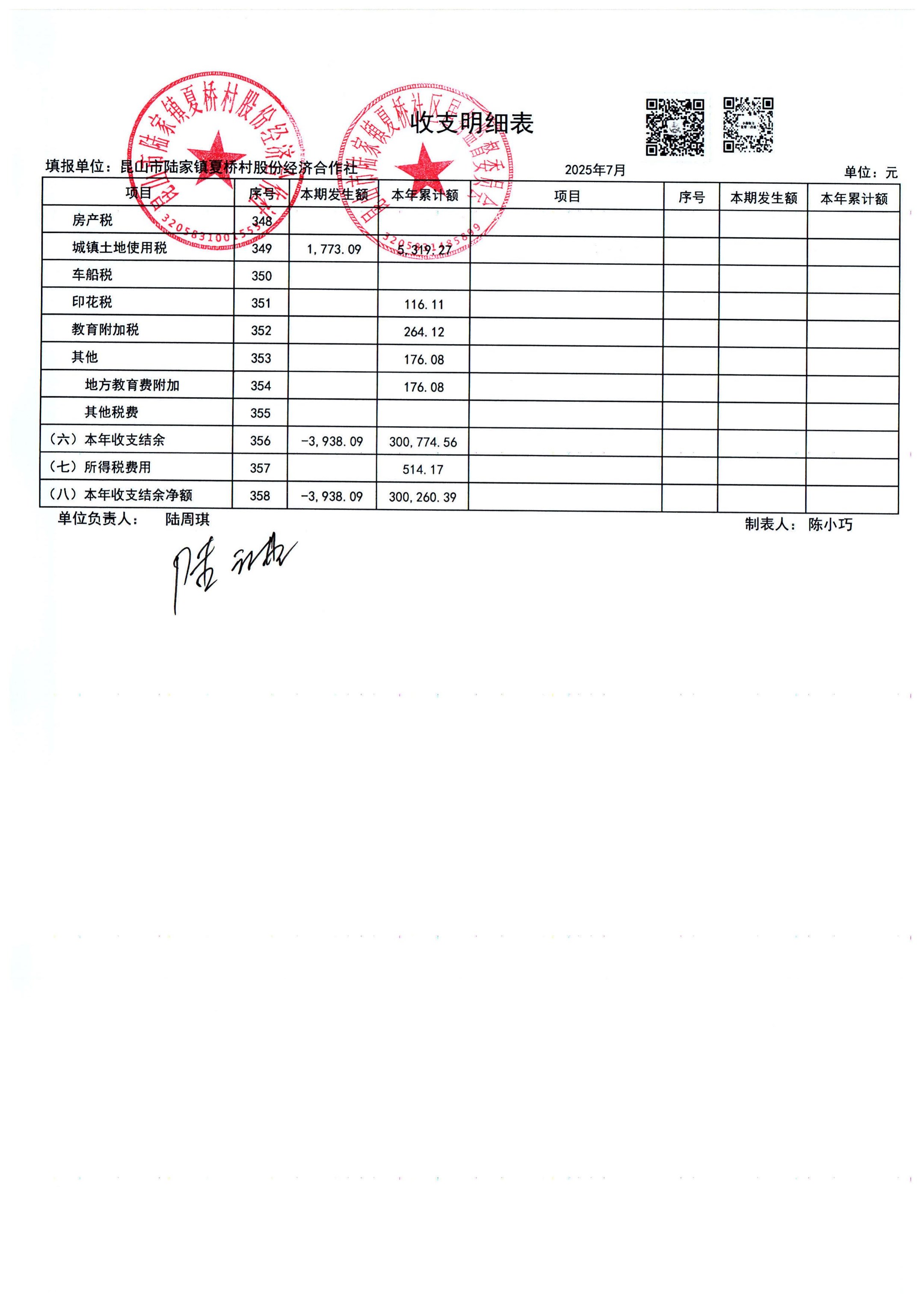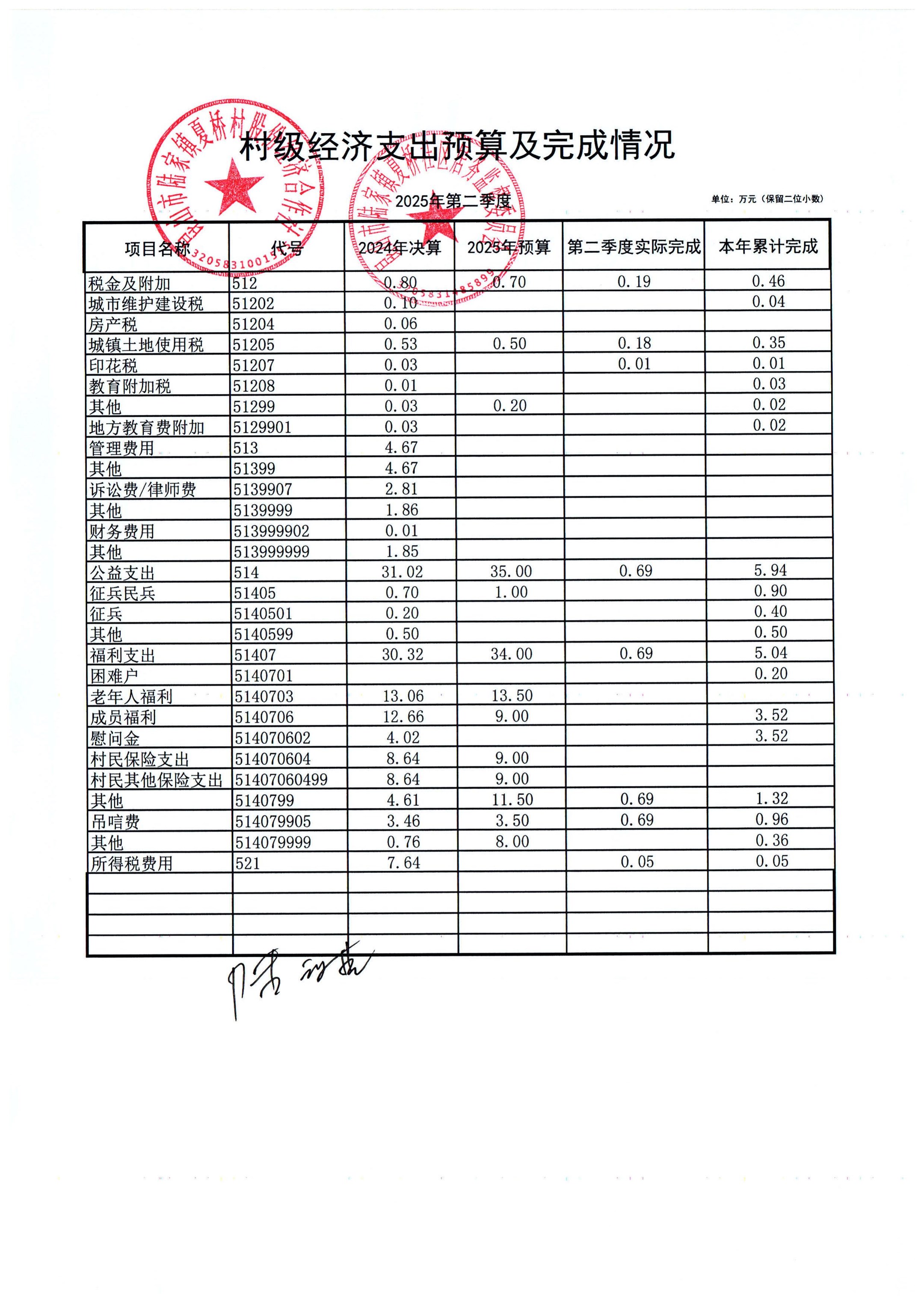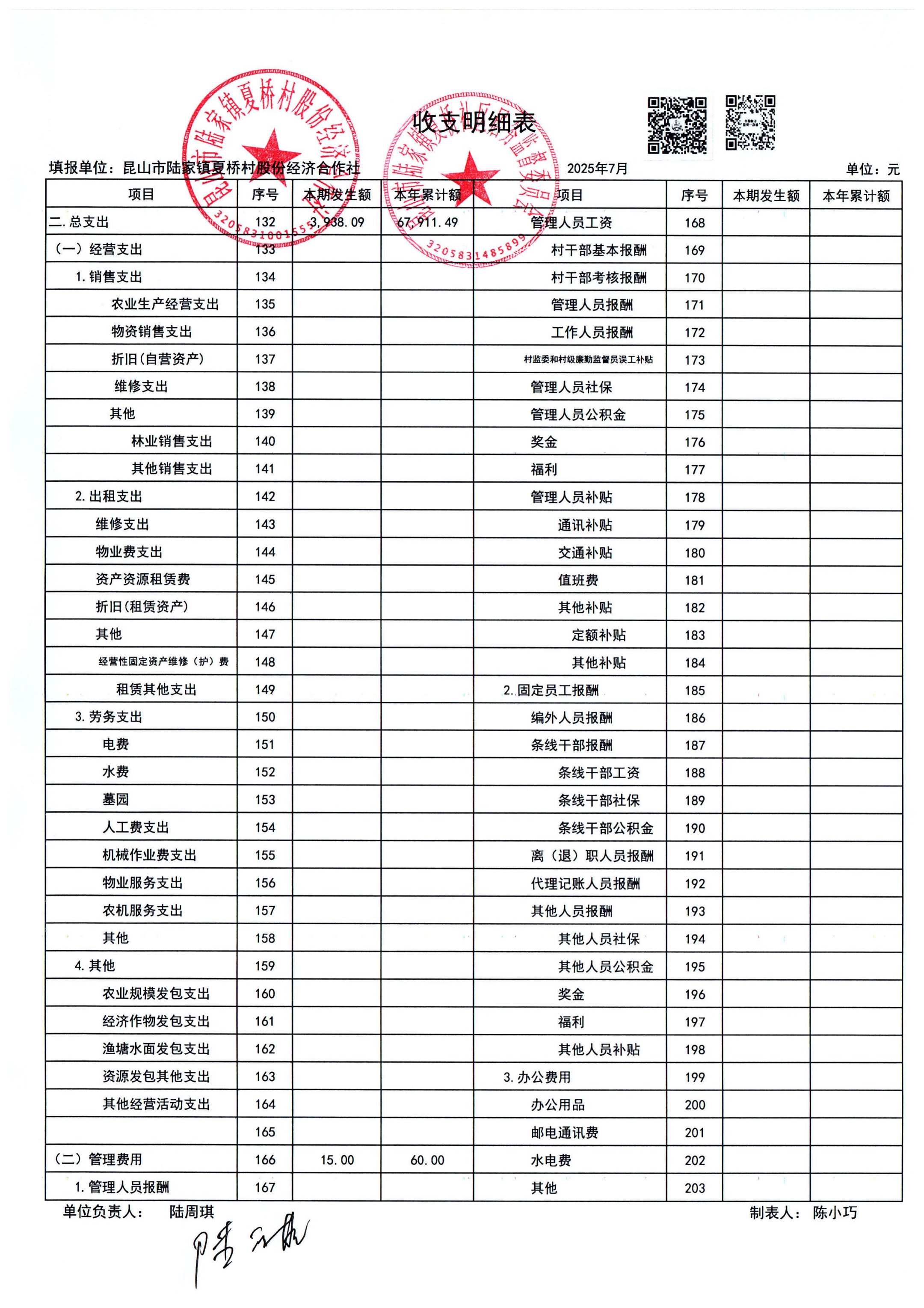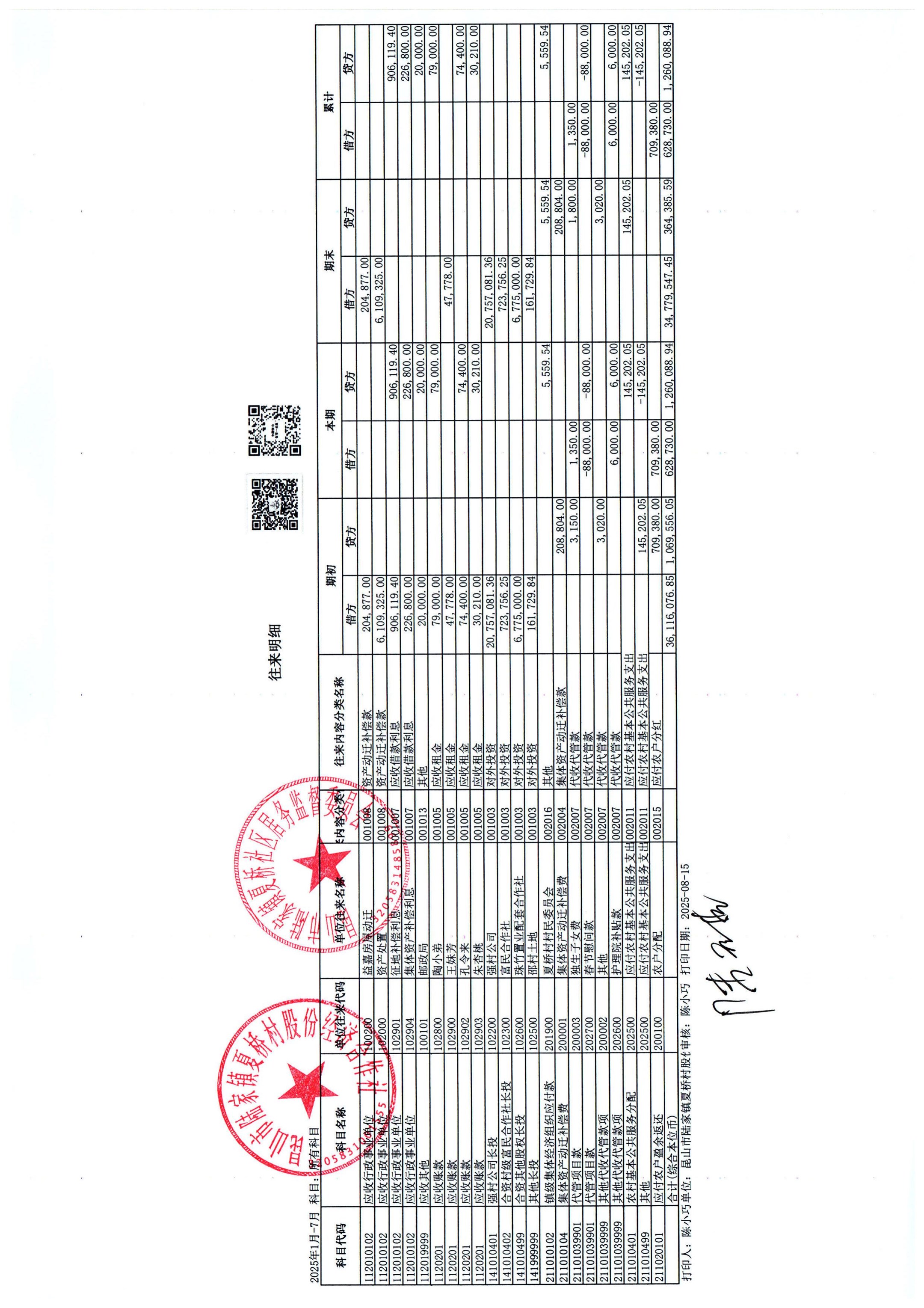 夏橋村股份經(jīng)濟合作社2025年8月份財務公開