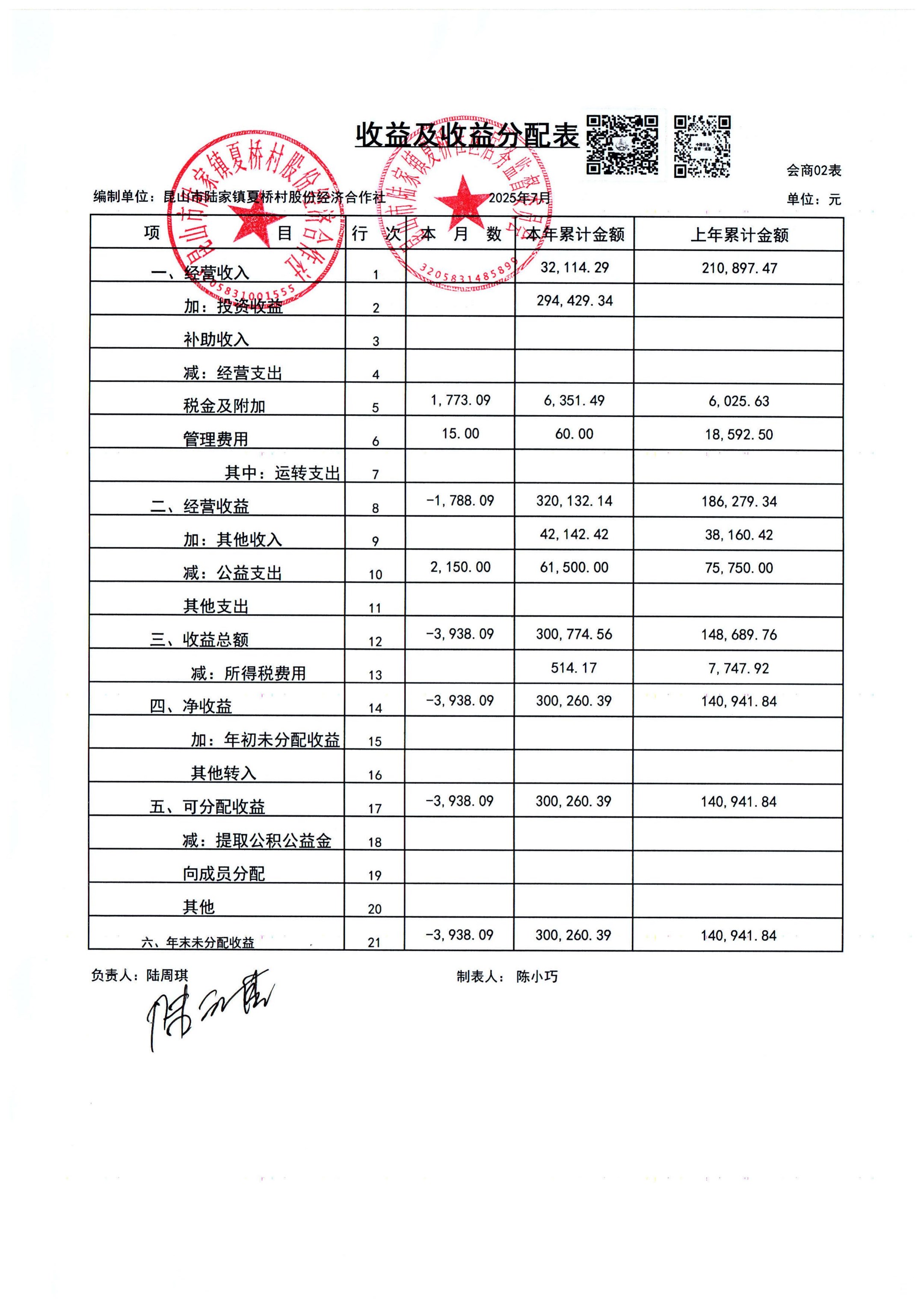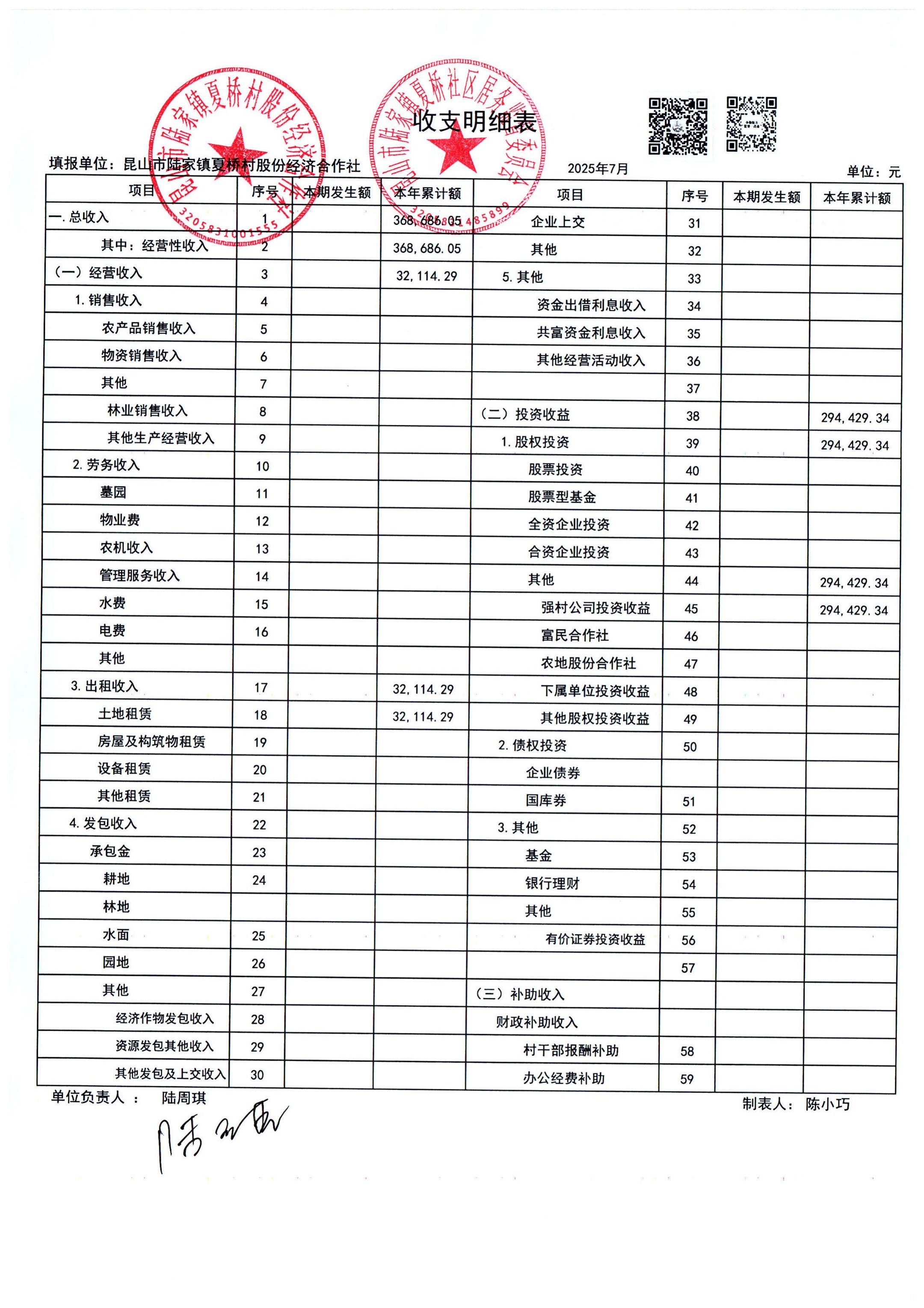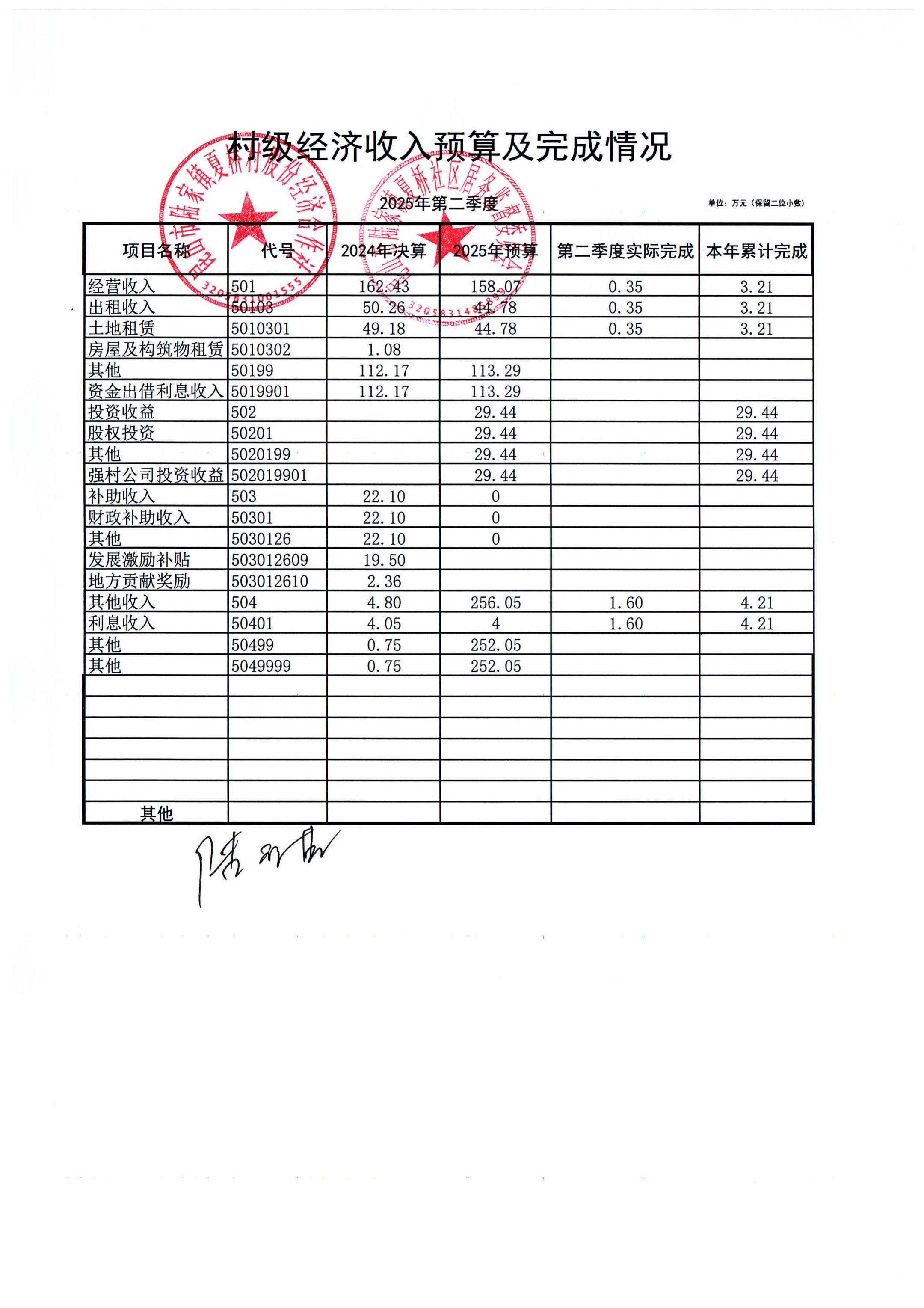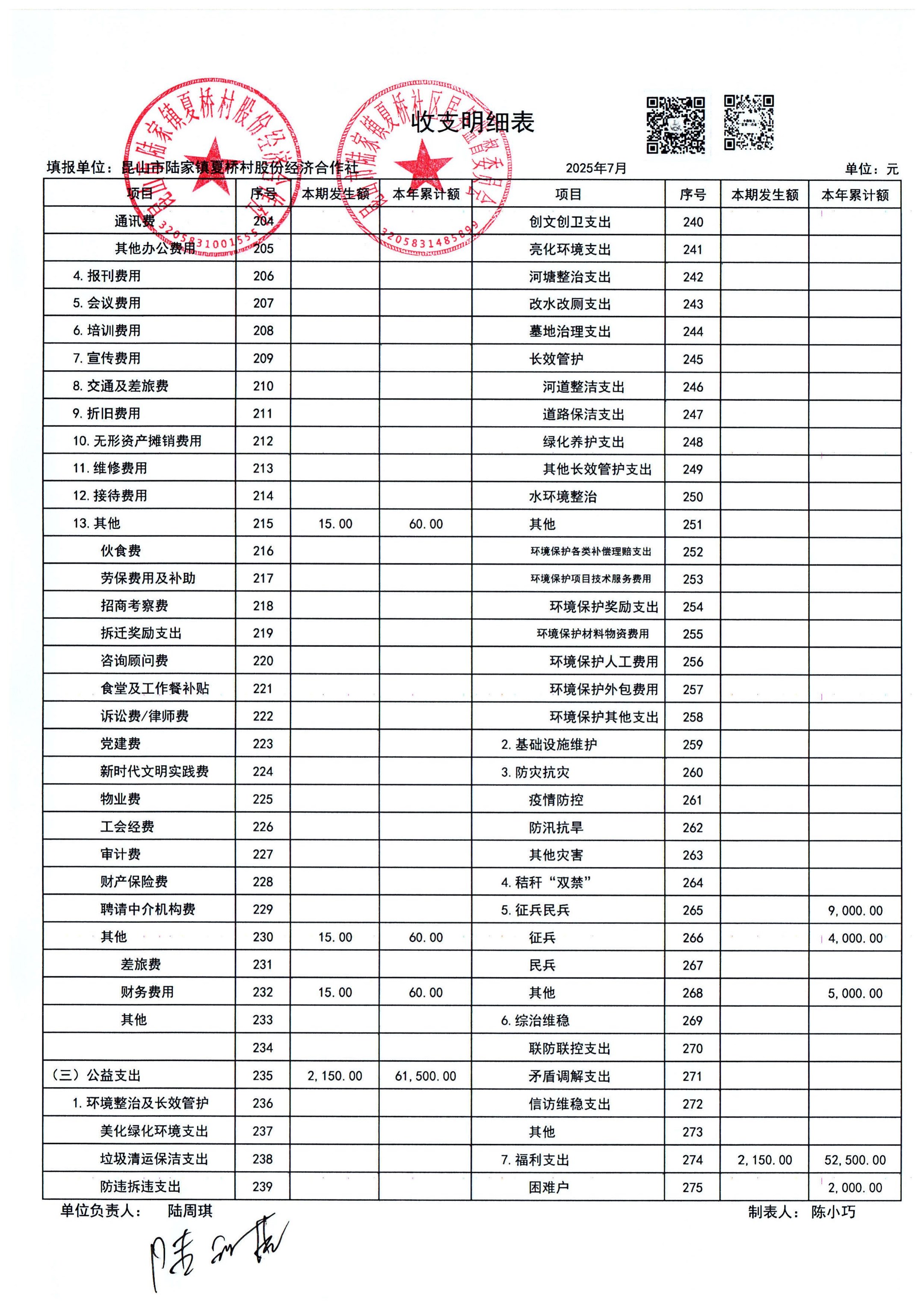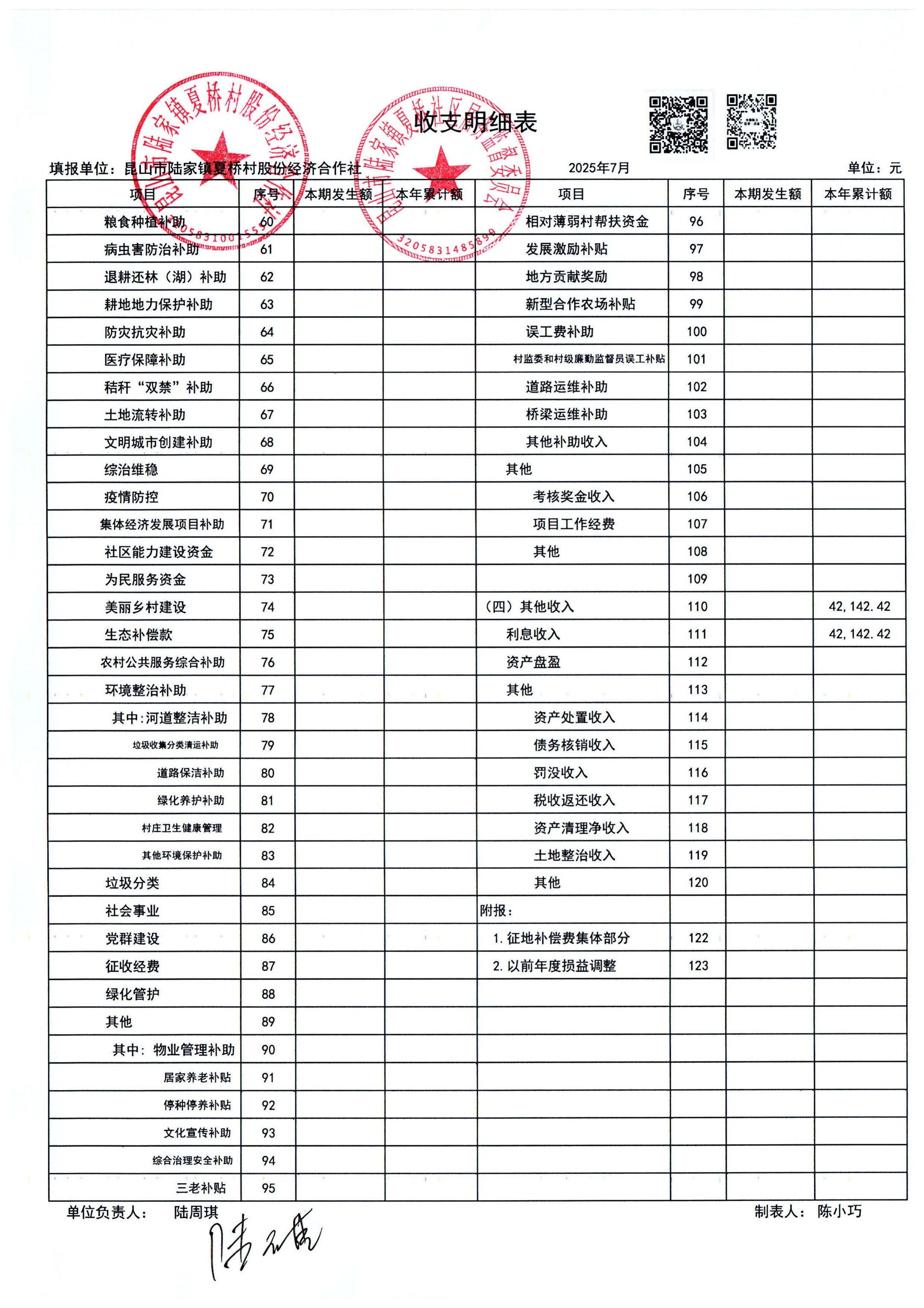 夏橋村股份經(jīng)濟合作社2025年8月份財務公開