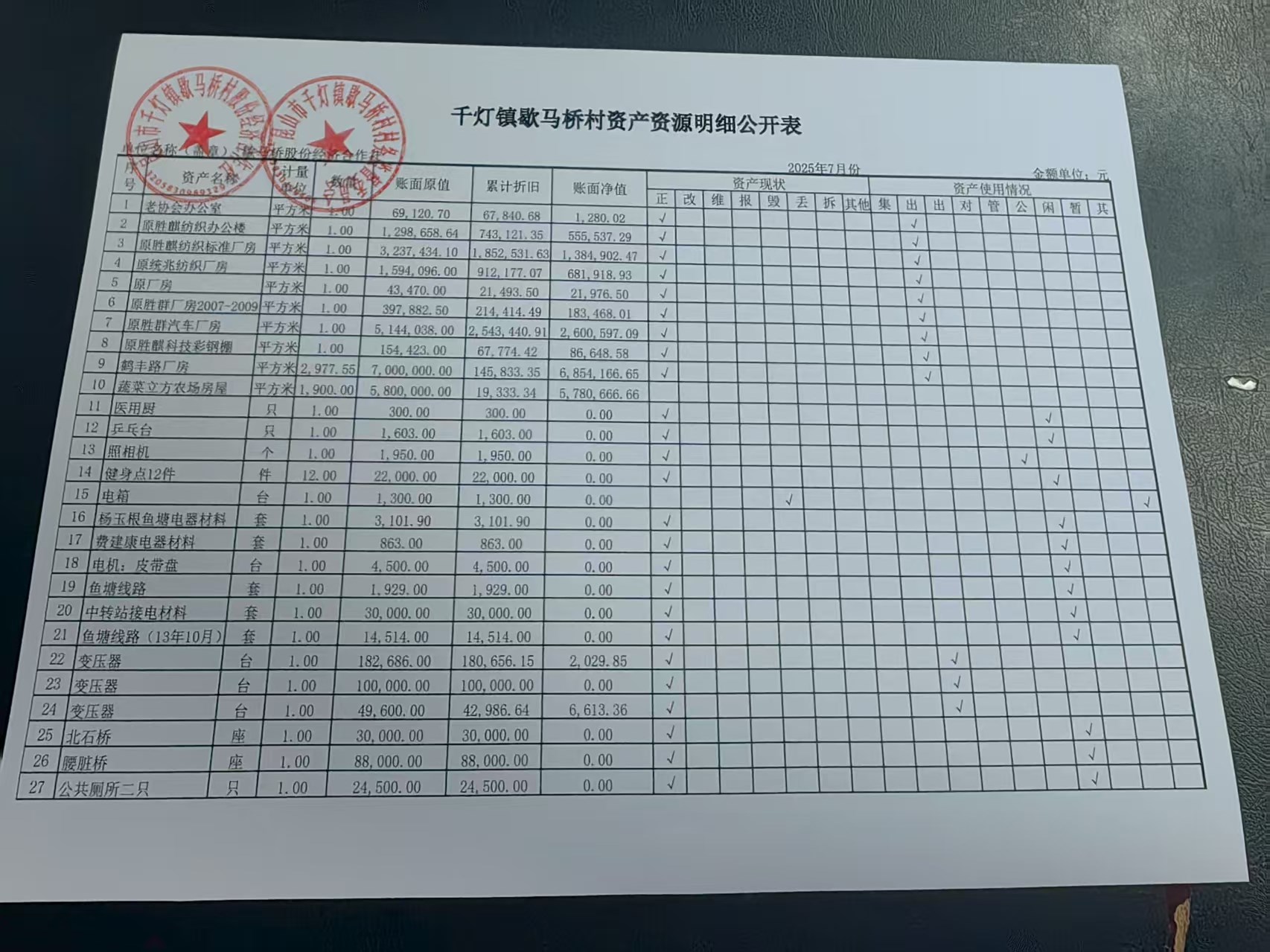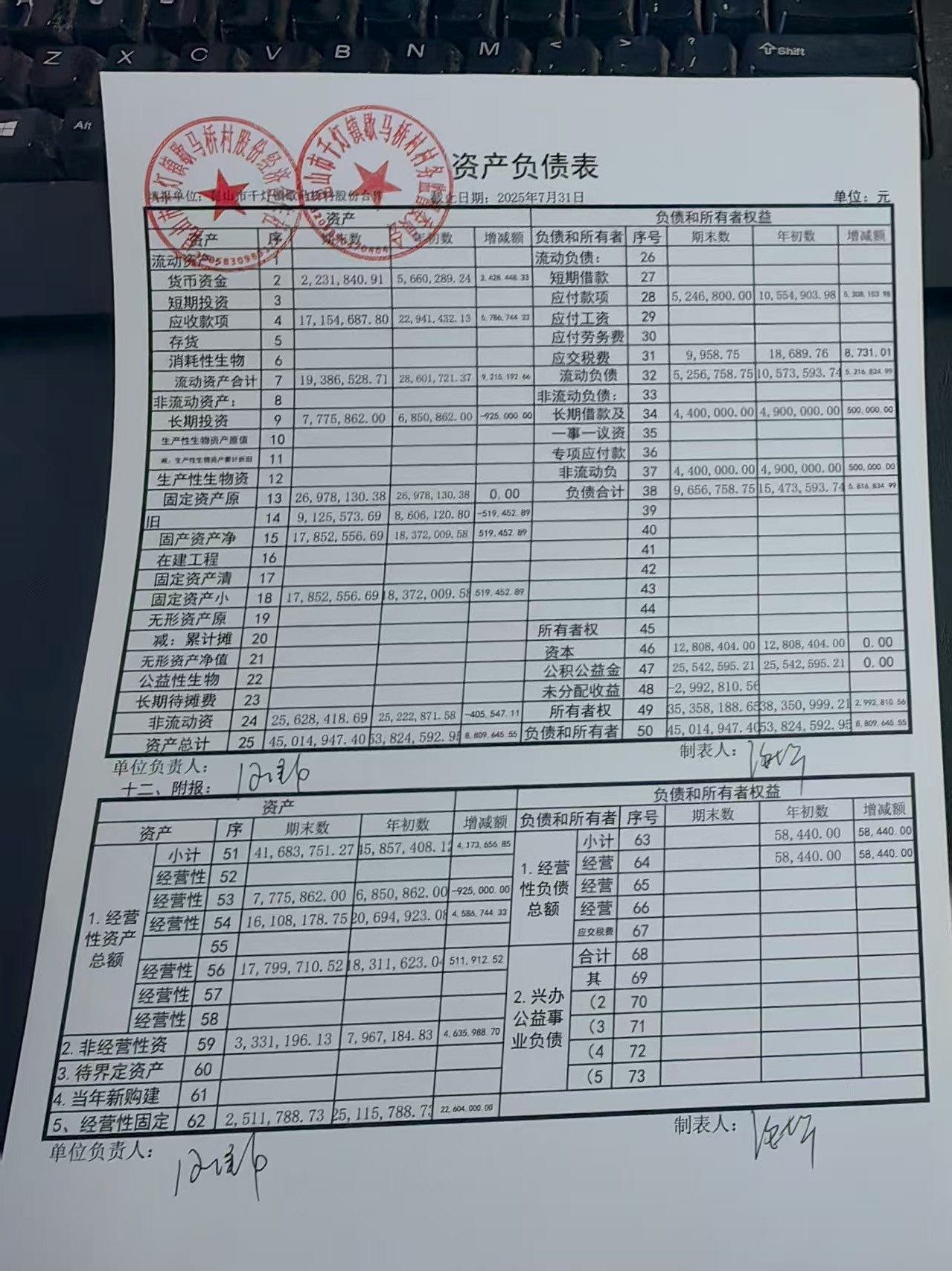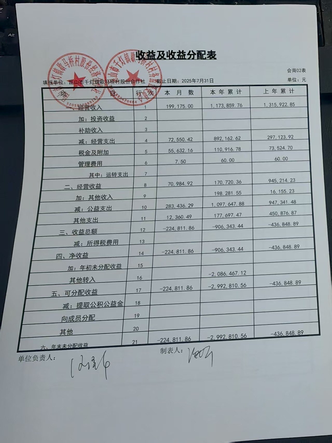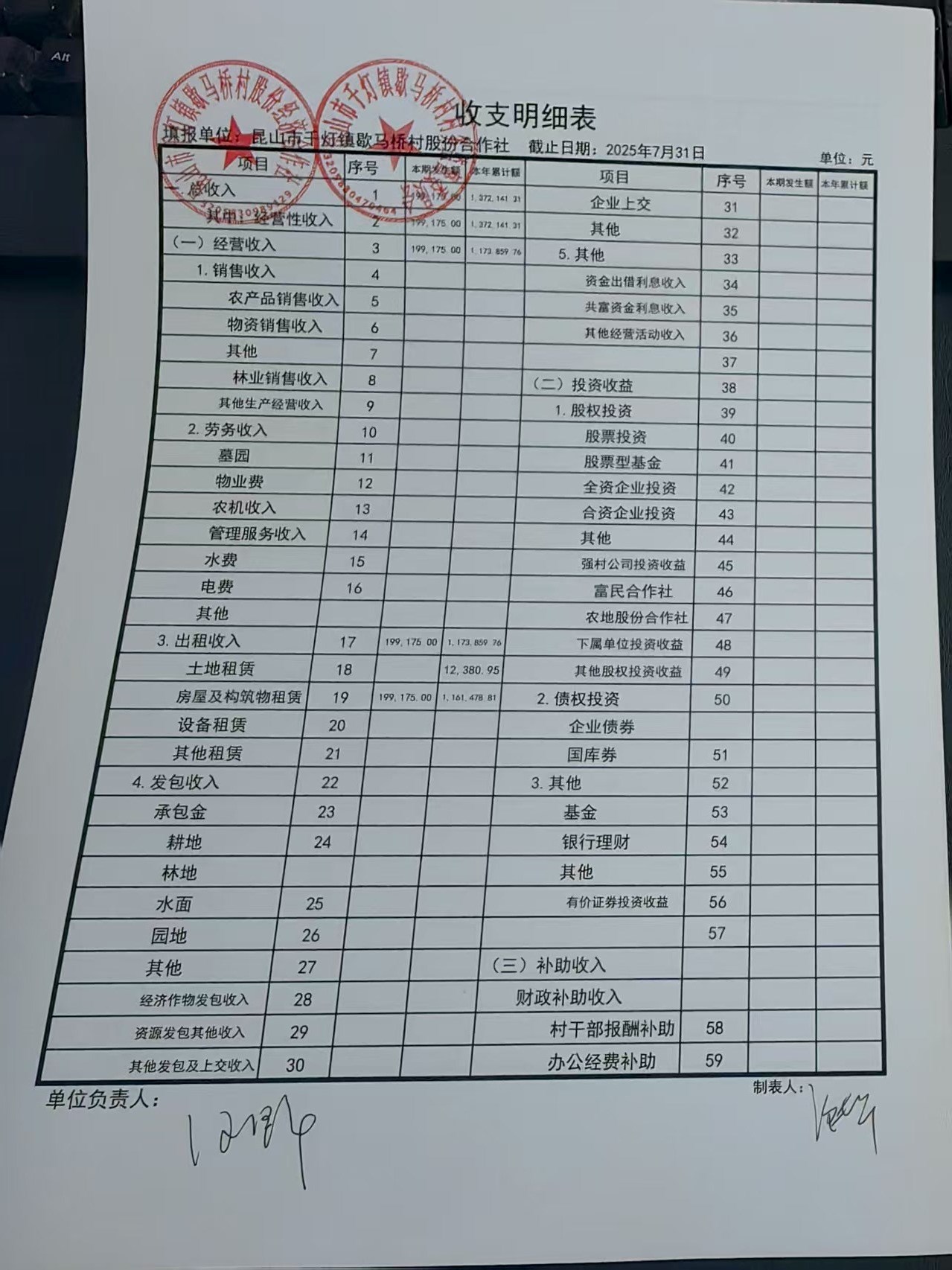 2025年7月份歇馬橋村股份經濟合作社財務公開