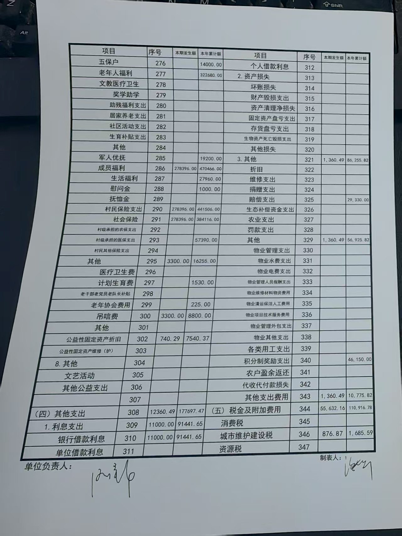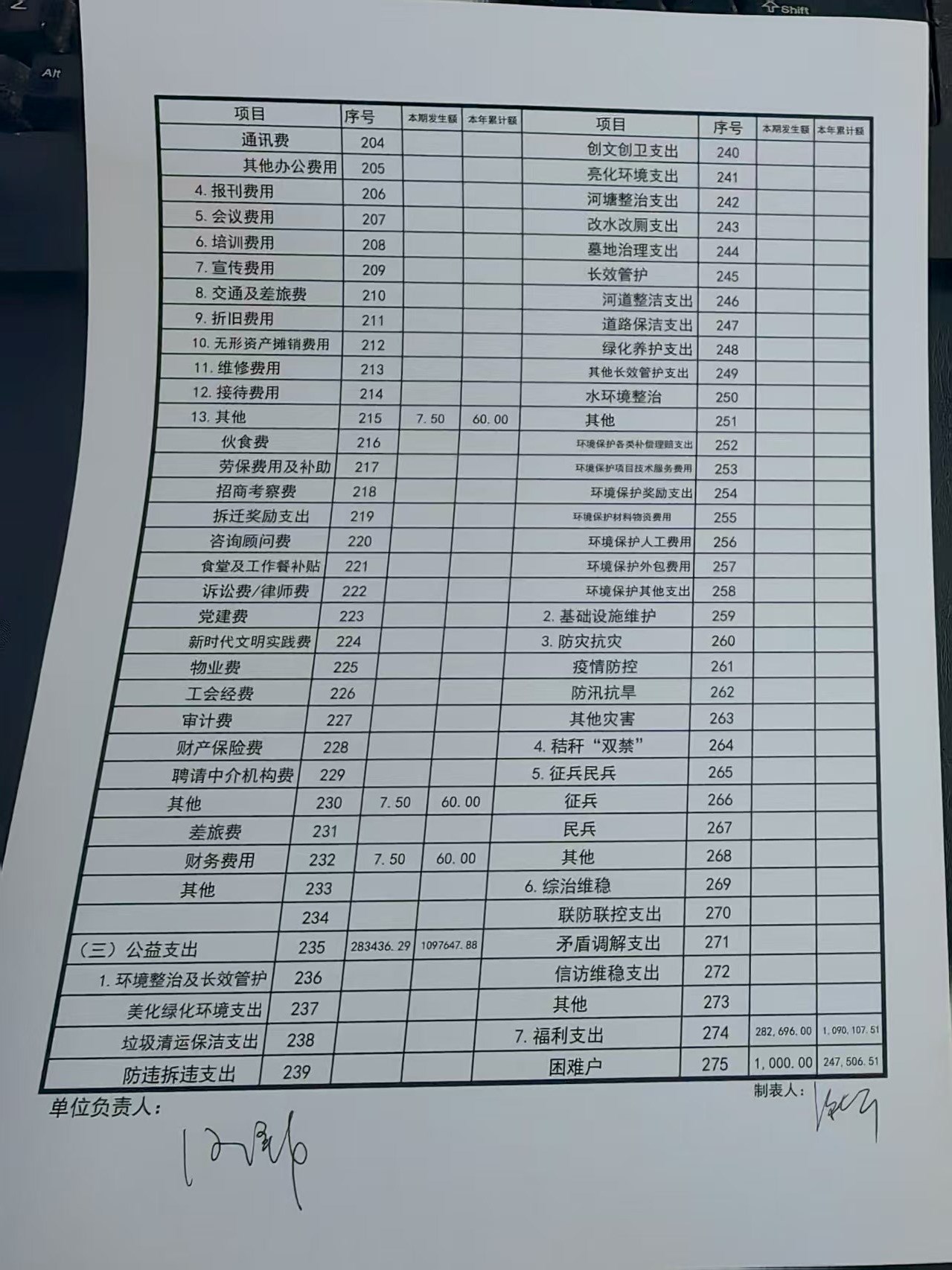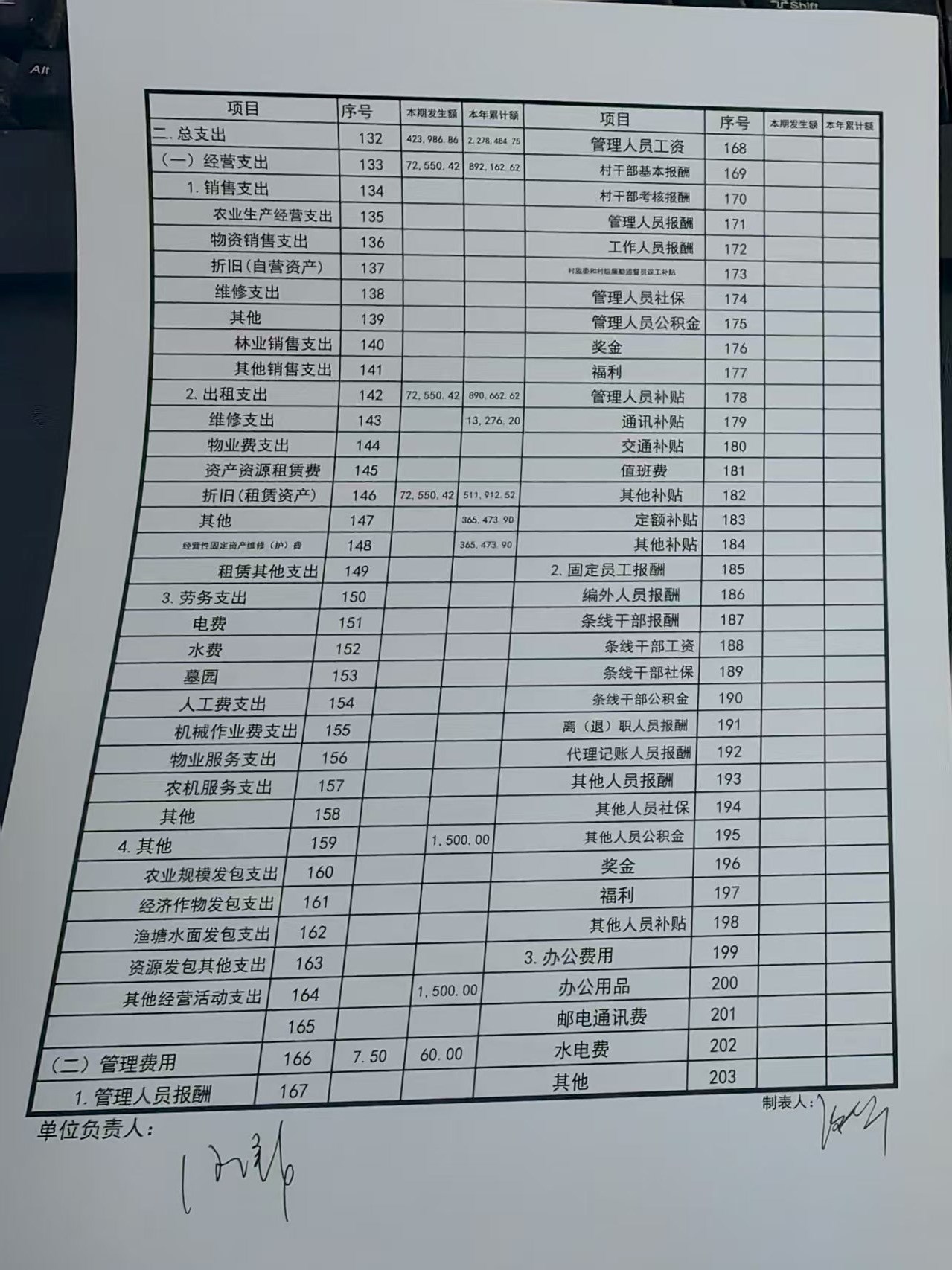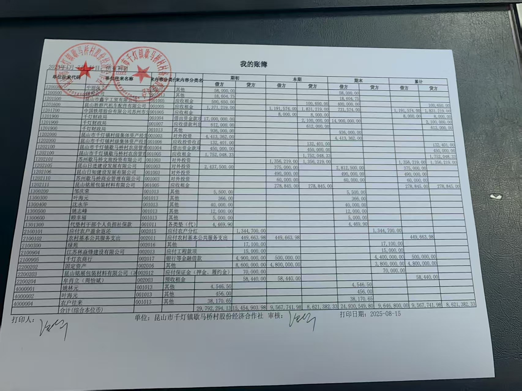 2025年7月份歇馬橋村股份經濟合作社財務公開