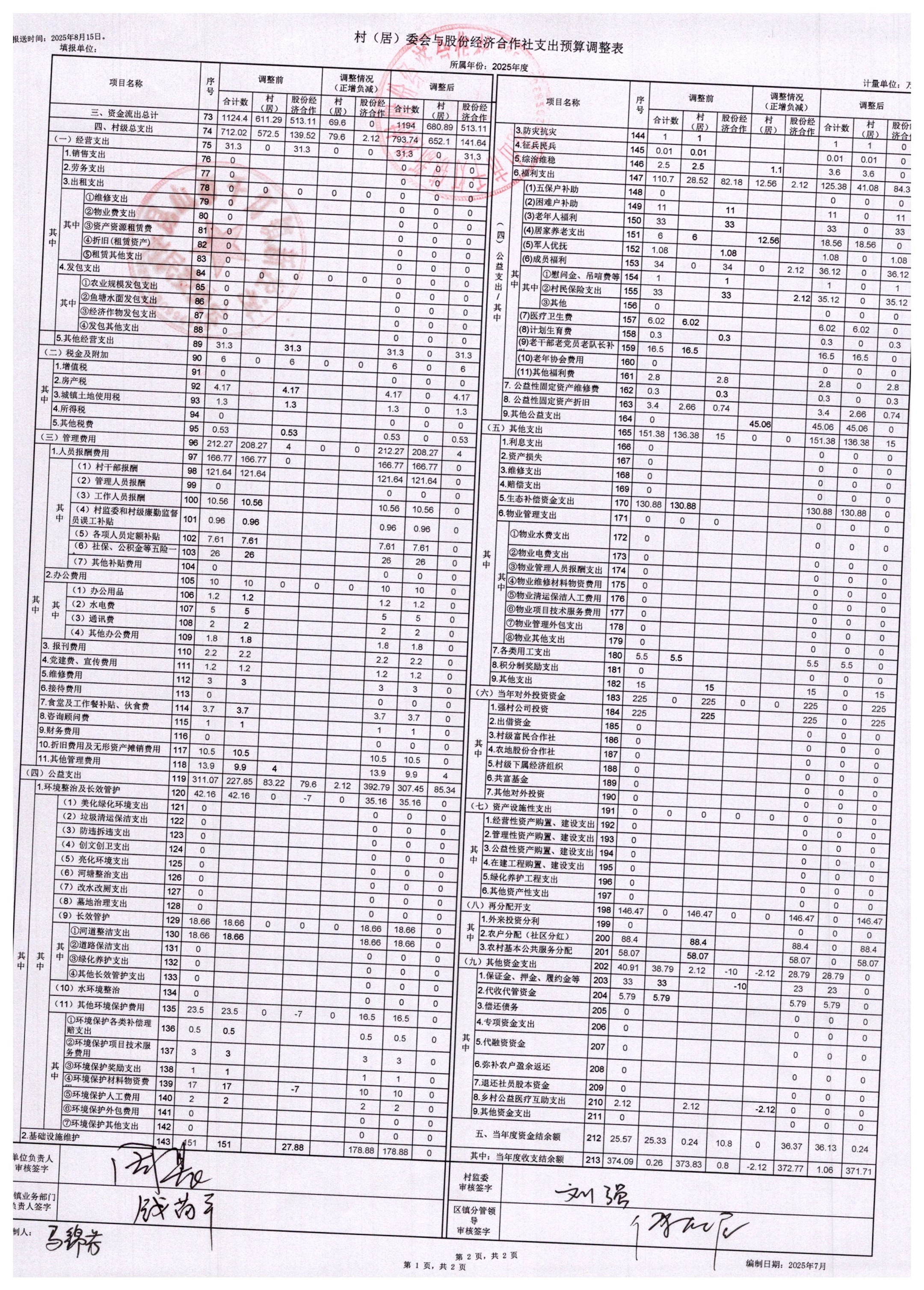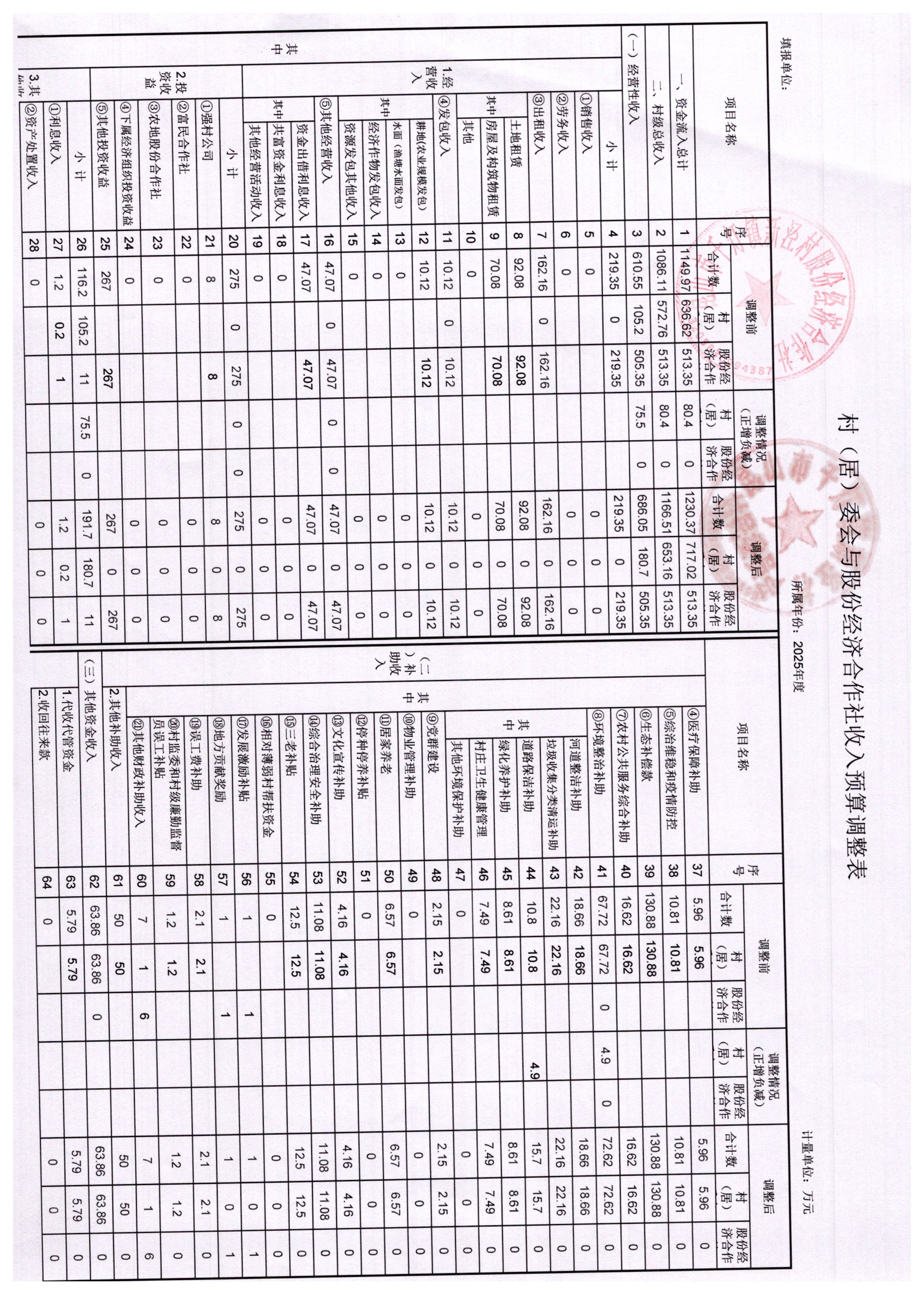 村委會與股份合作社預(yù)算調(diào)整變動表