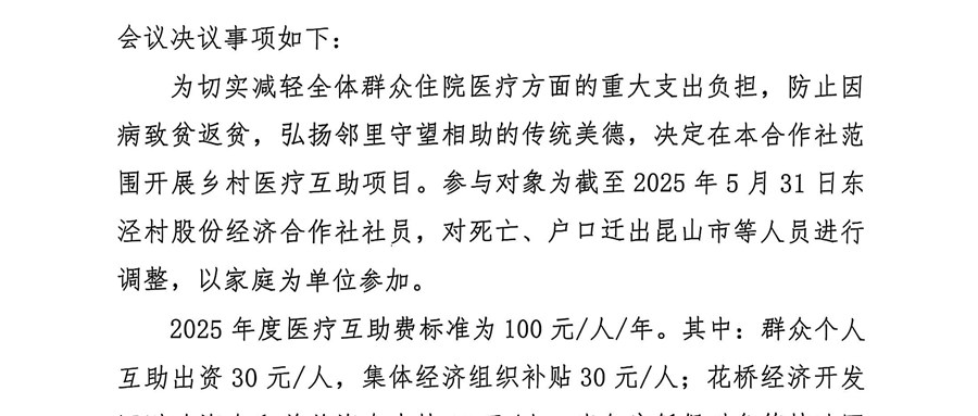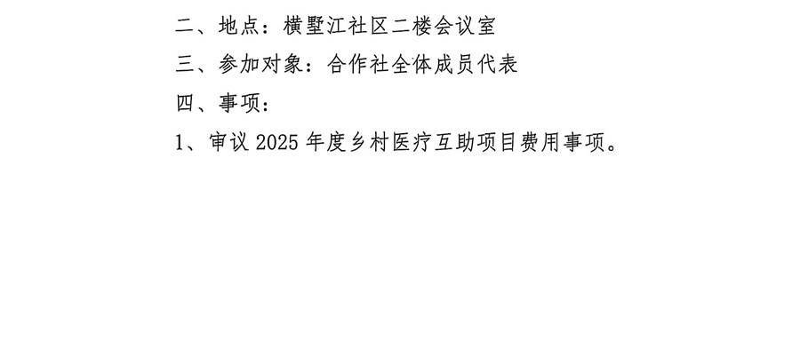 東涇村股份經(jīng)濟合作社關(guān)于審議2025年度鄉(xiāng)村醫(yī)療互助項目事項的成員代表大會