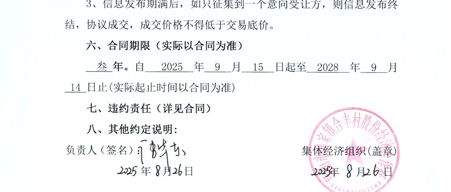 農(nóng)村集體資產(chǎn)流轉(zhuǎn)交易方案公示 20250826001號