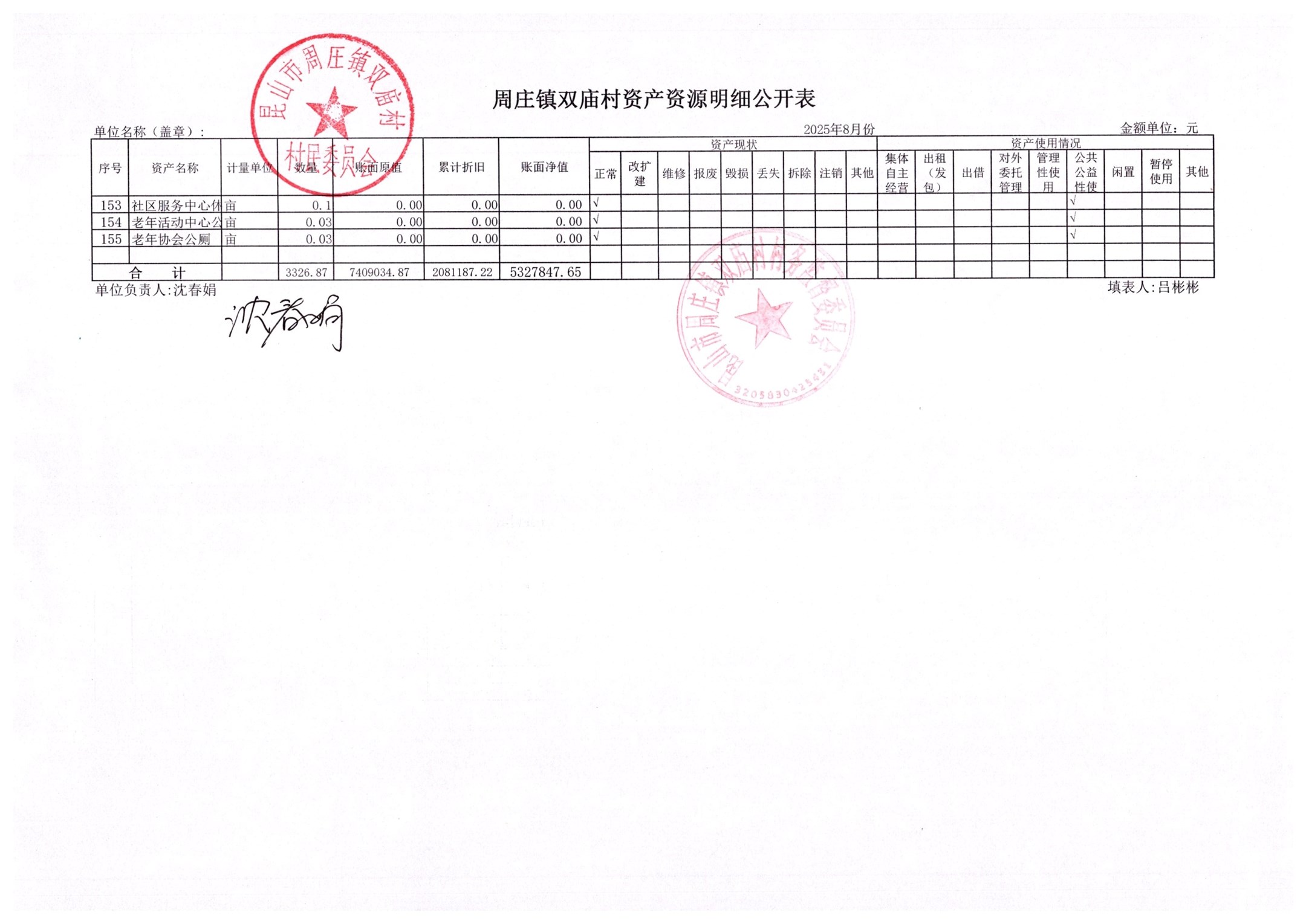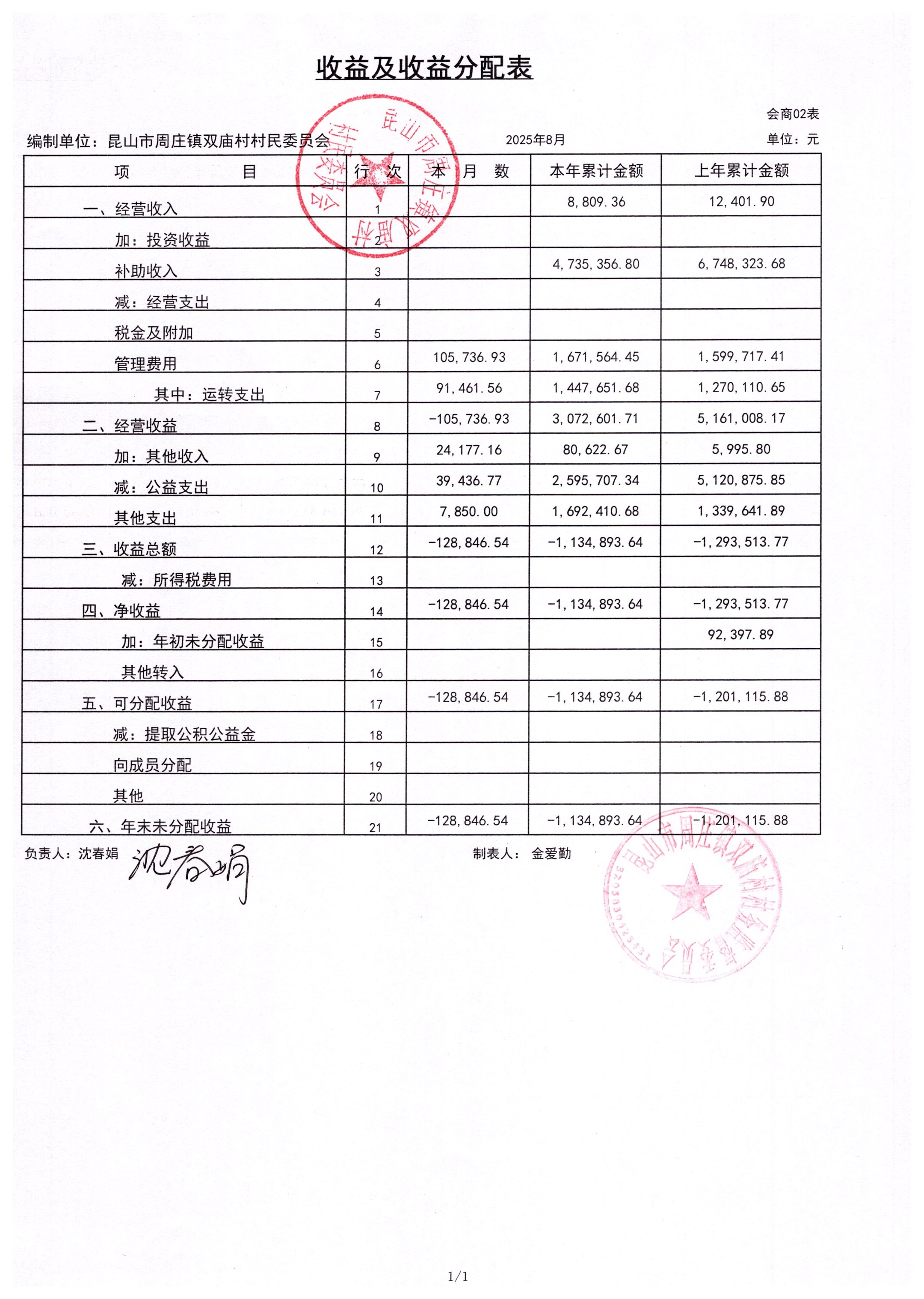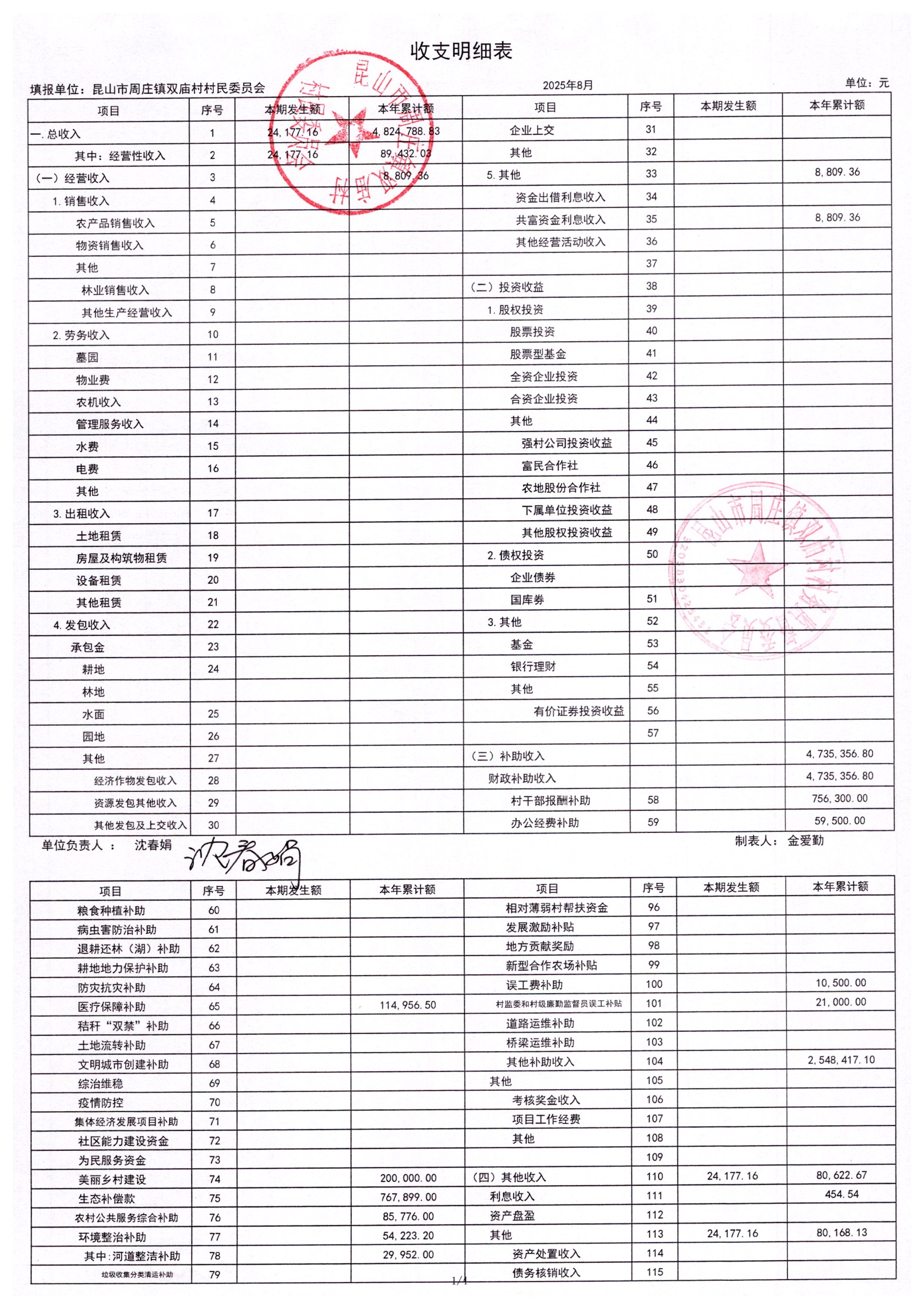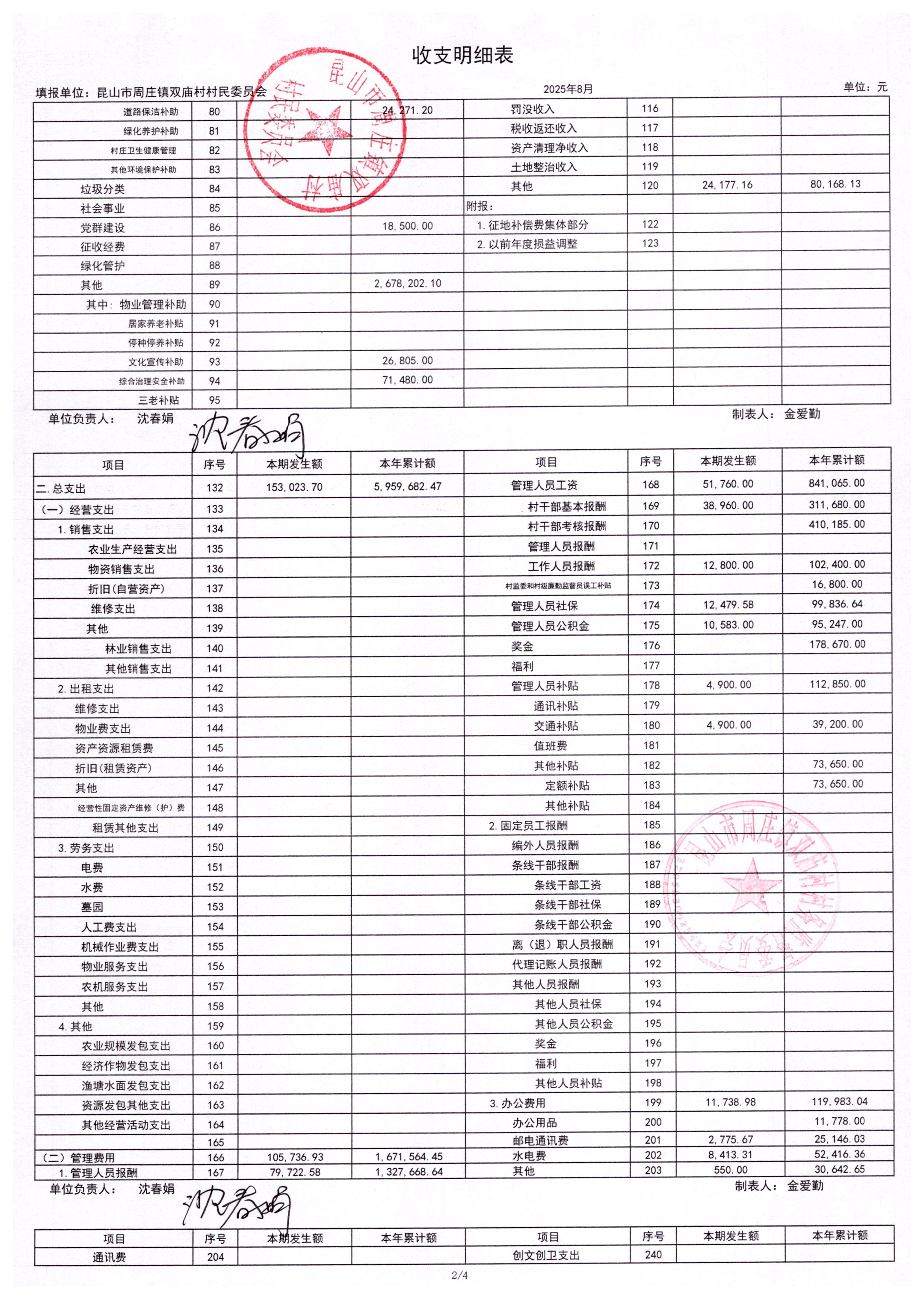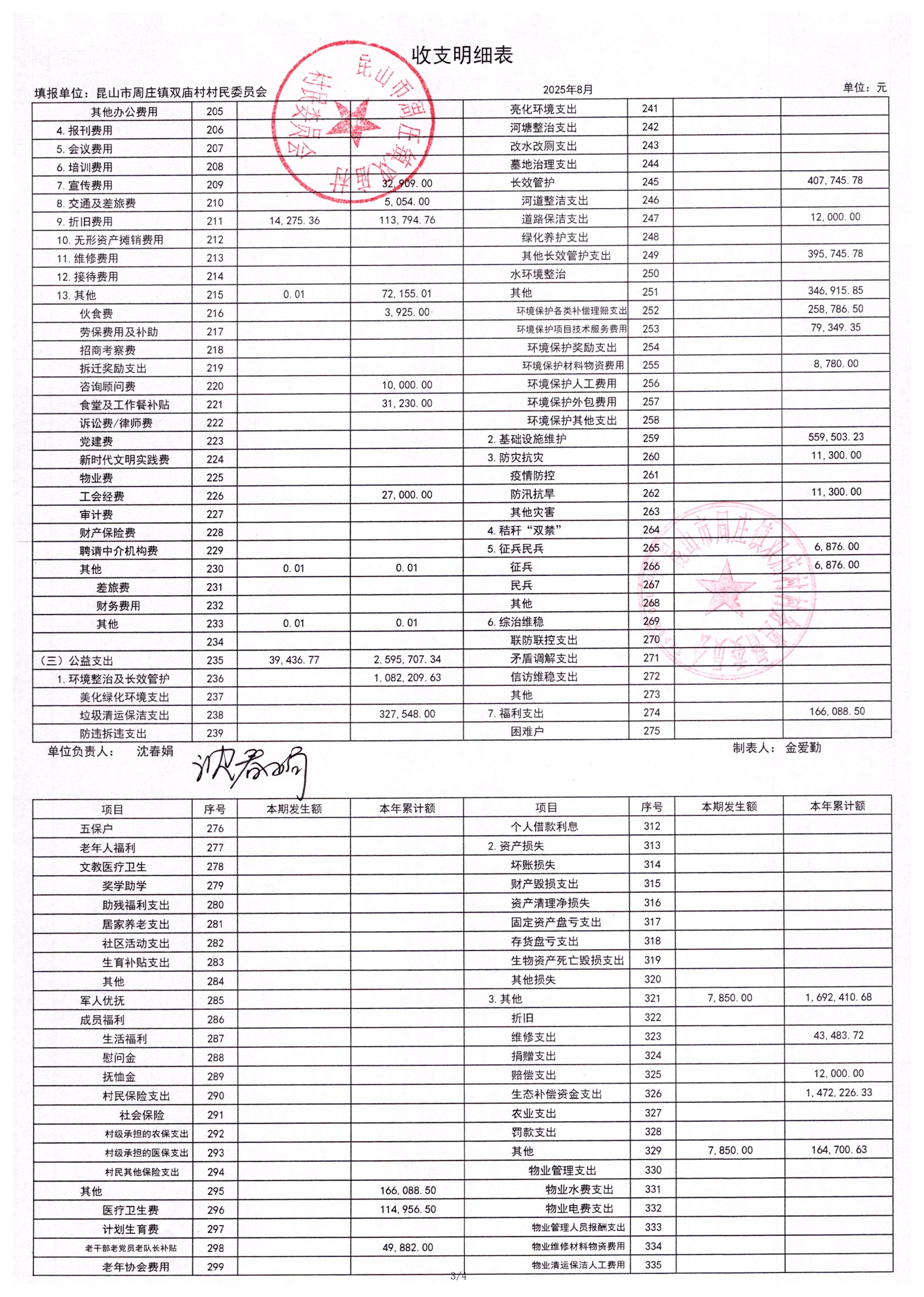 2025年8月財務(wù)公開-雙廟村財務(wù)公開
