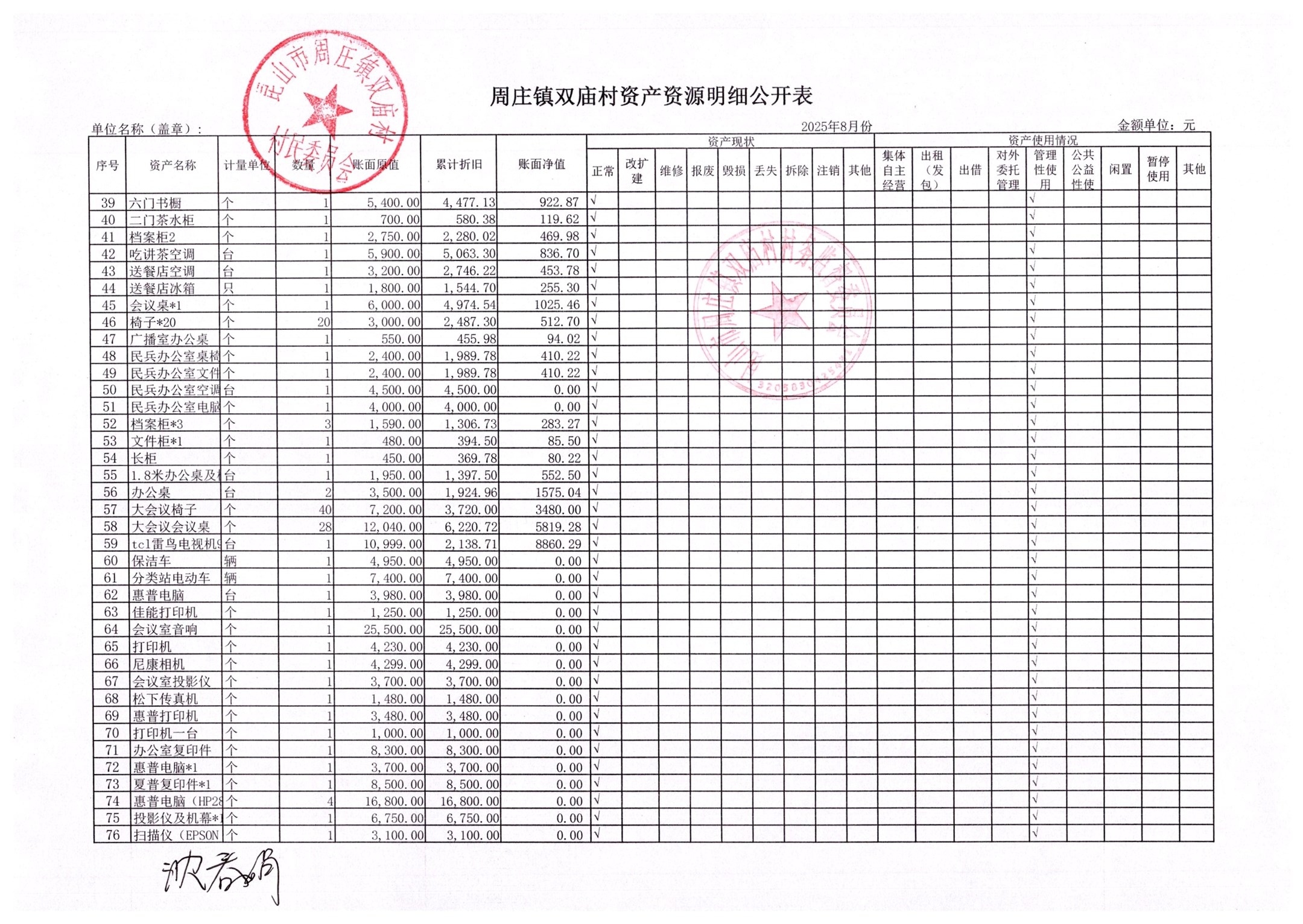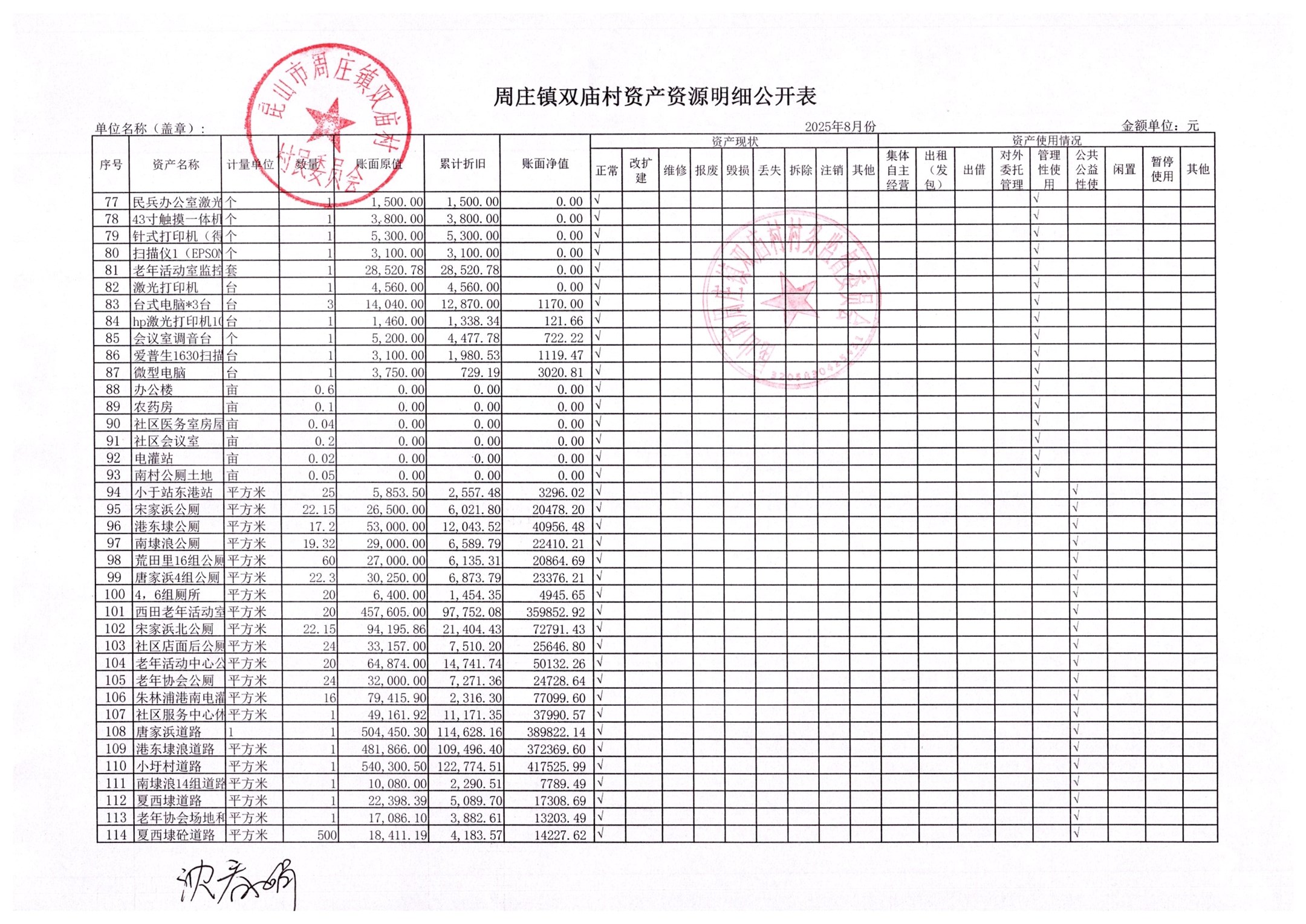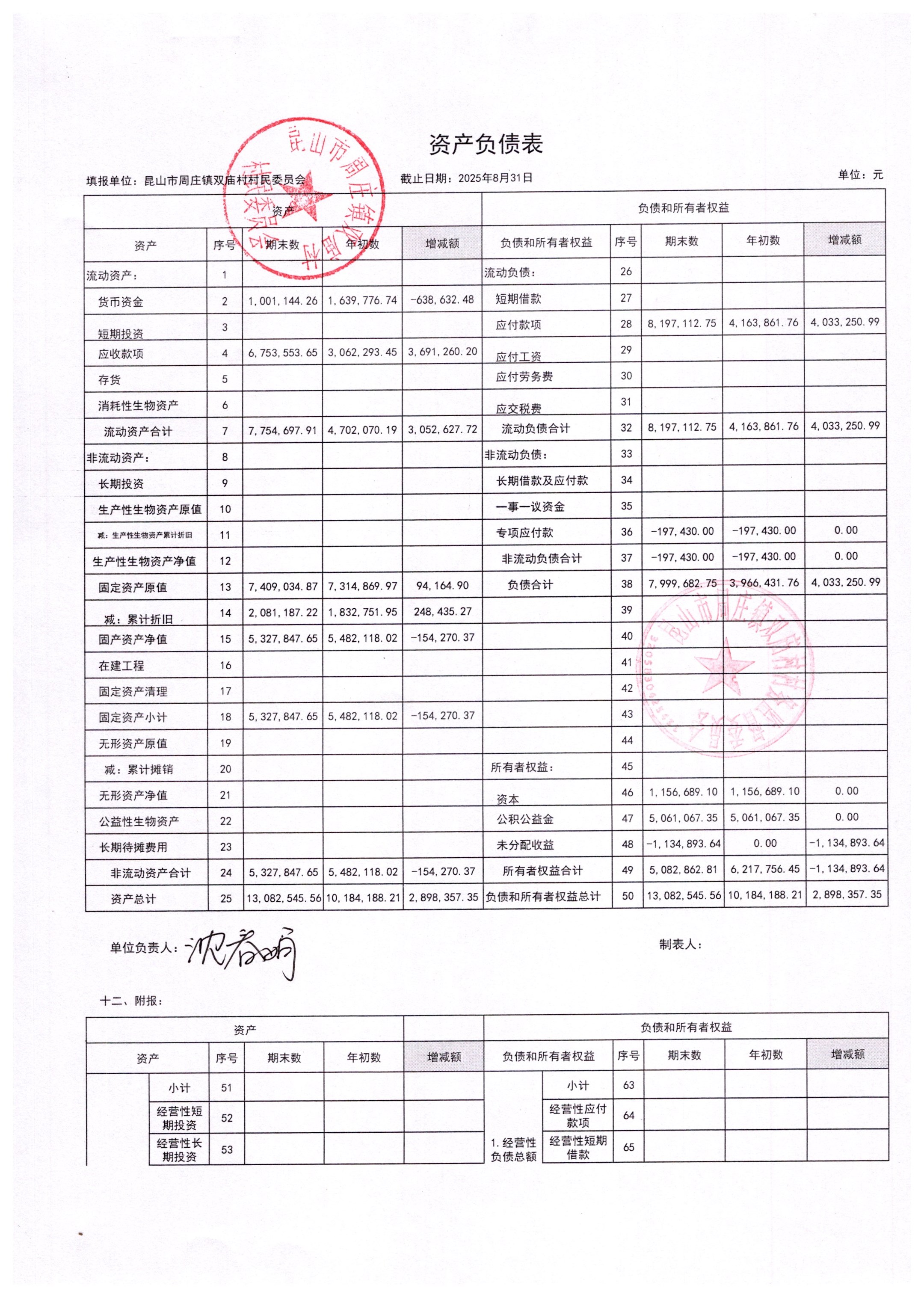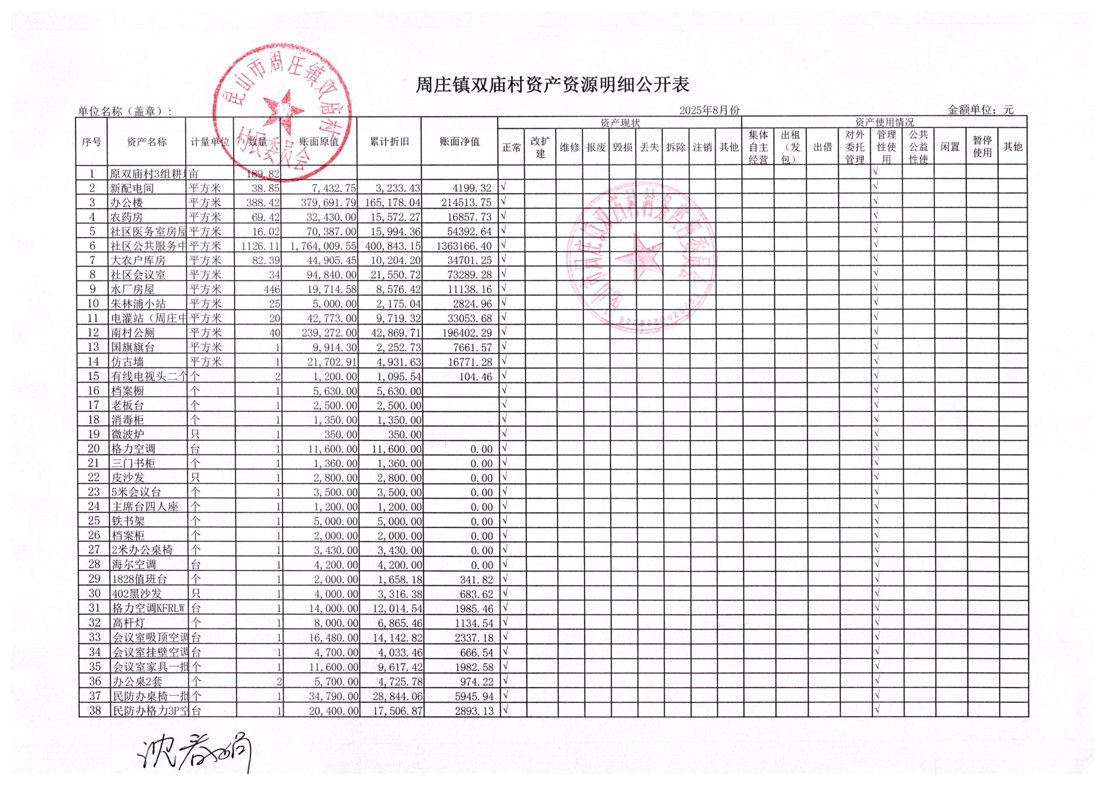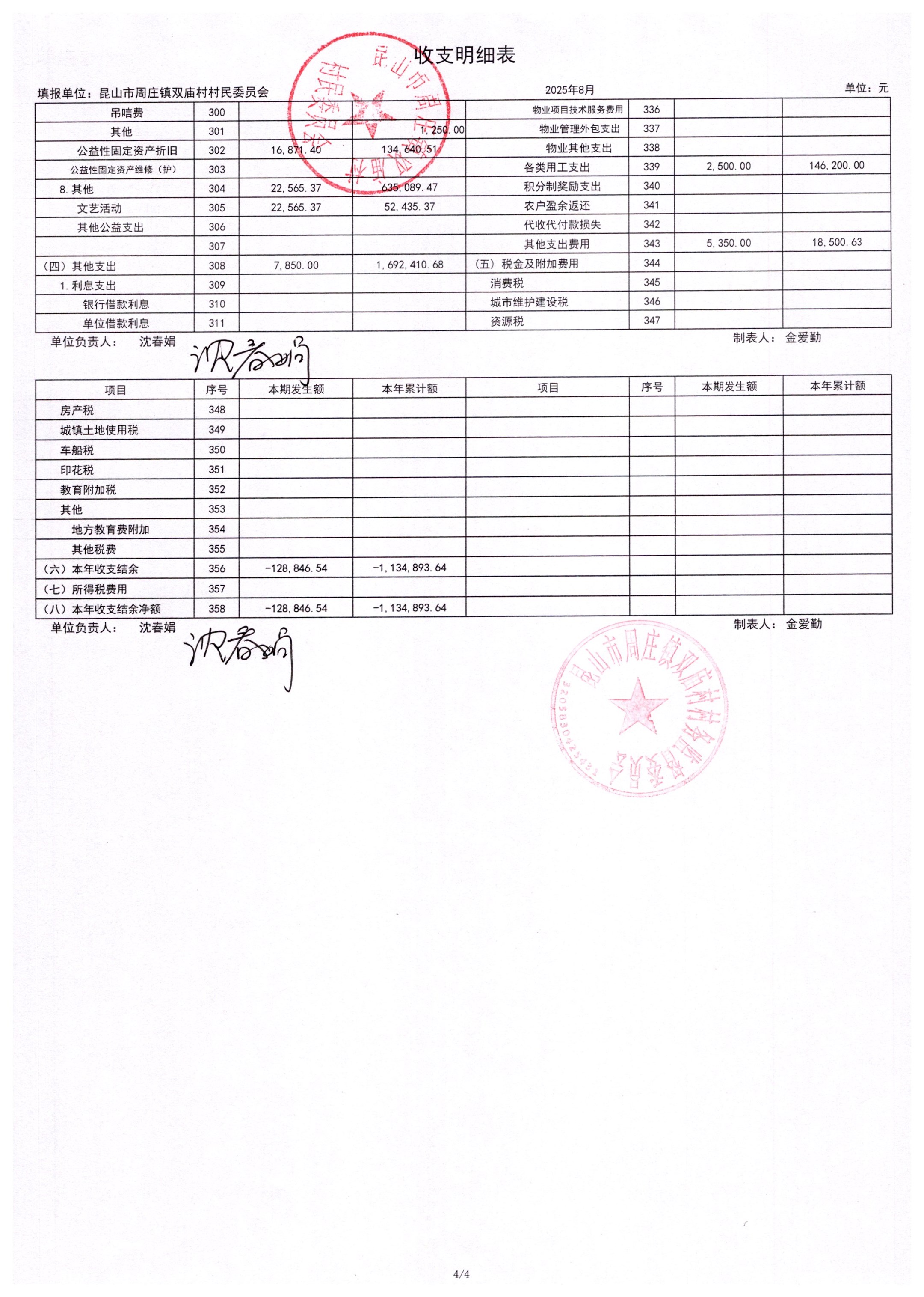 2025年8月財務(wù)公開-雙廟村財務(wù)公開