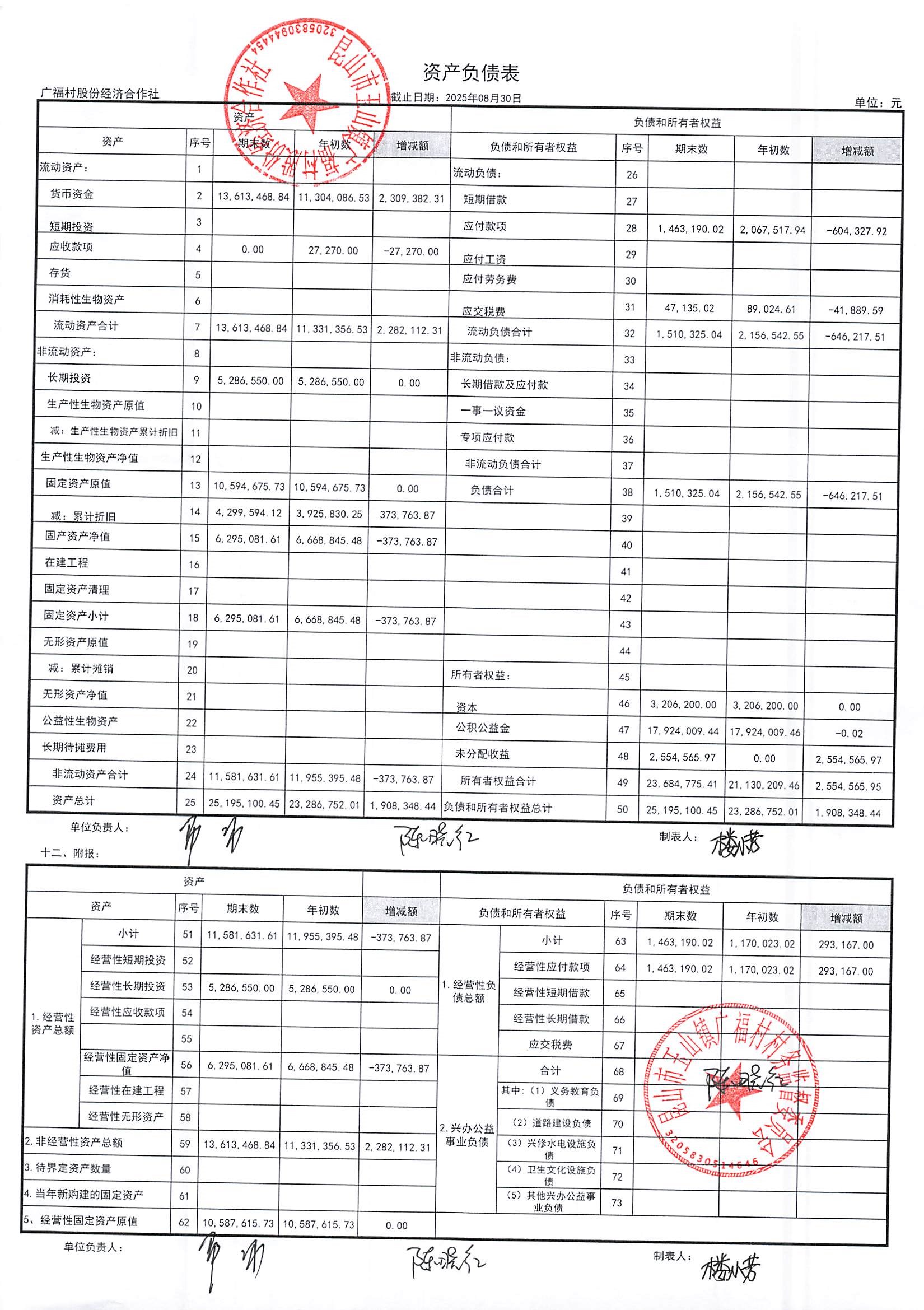2025年廣福村股份經(jīng)濟(jì)合作社9月份財務(wù)公開內(nèi)容