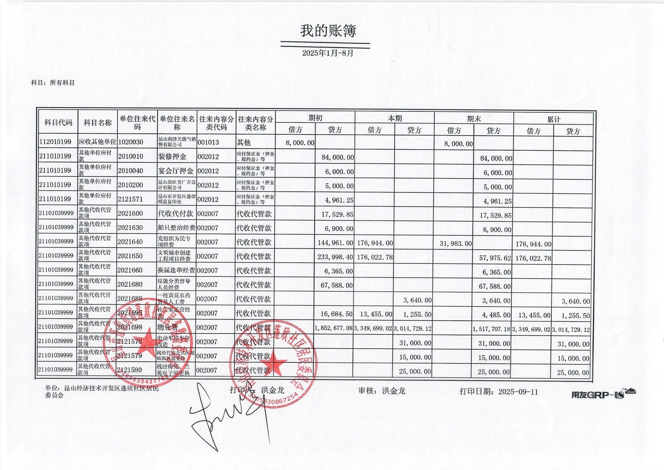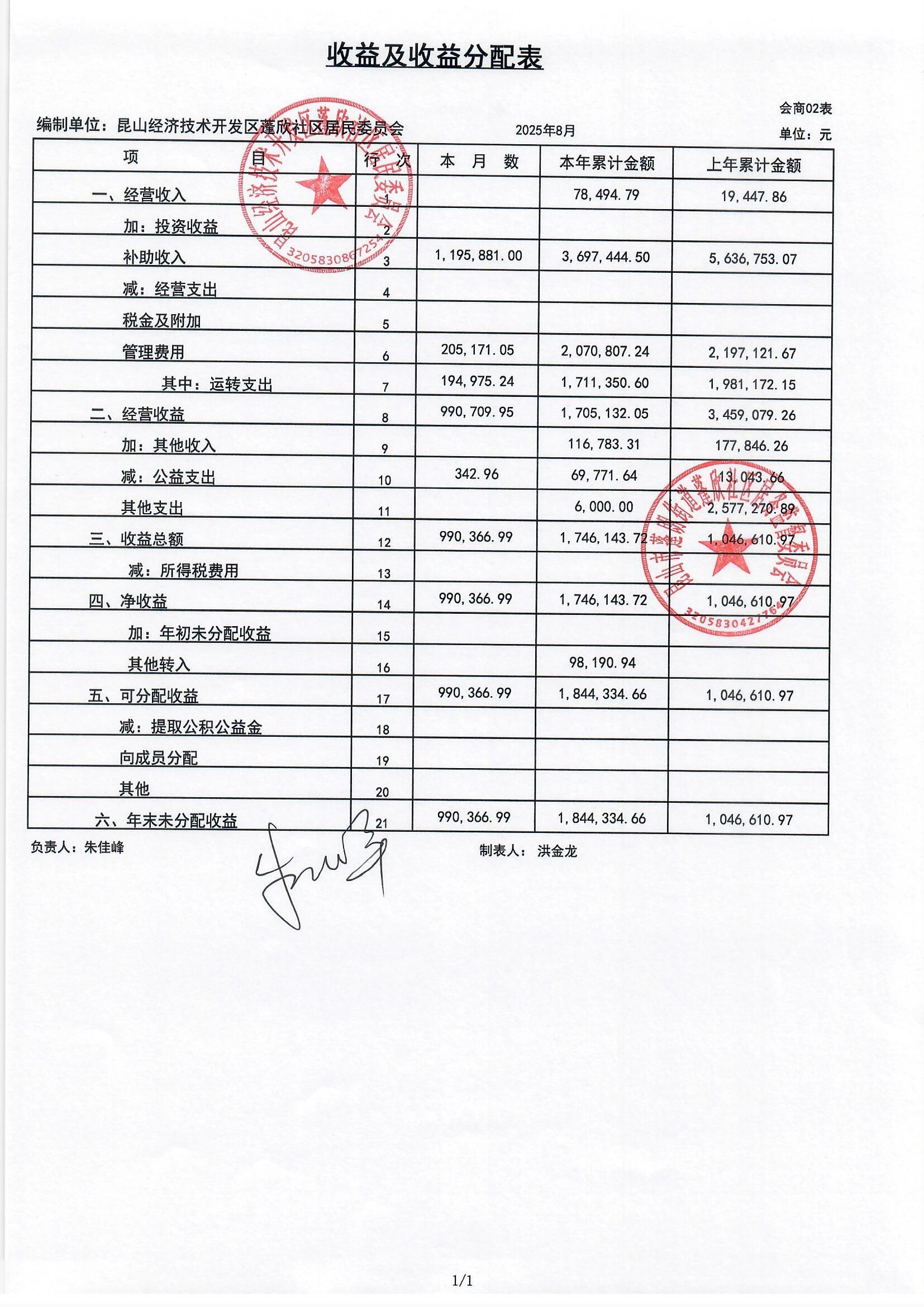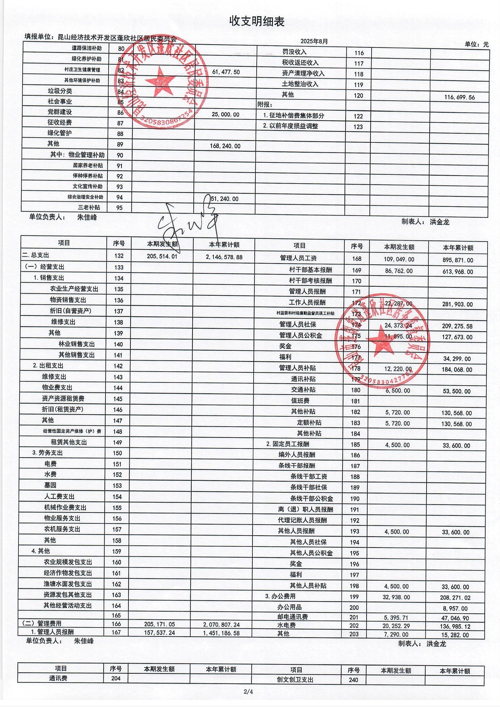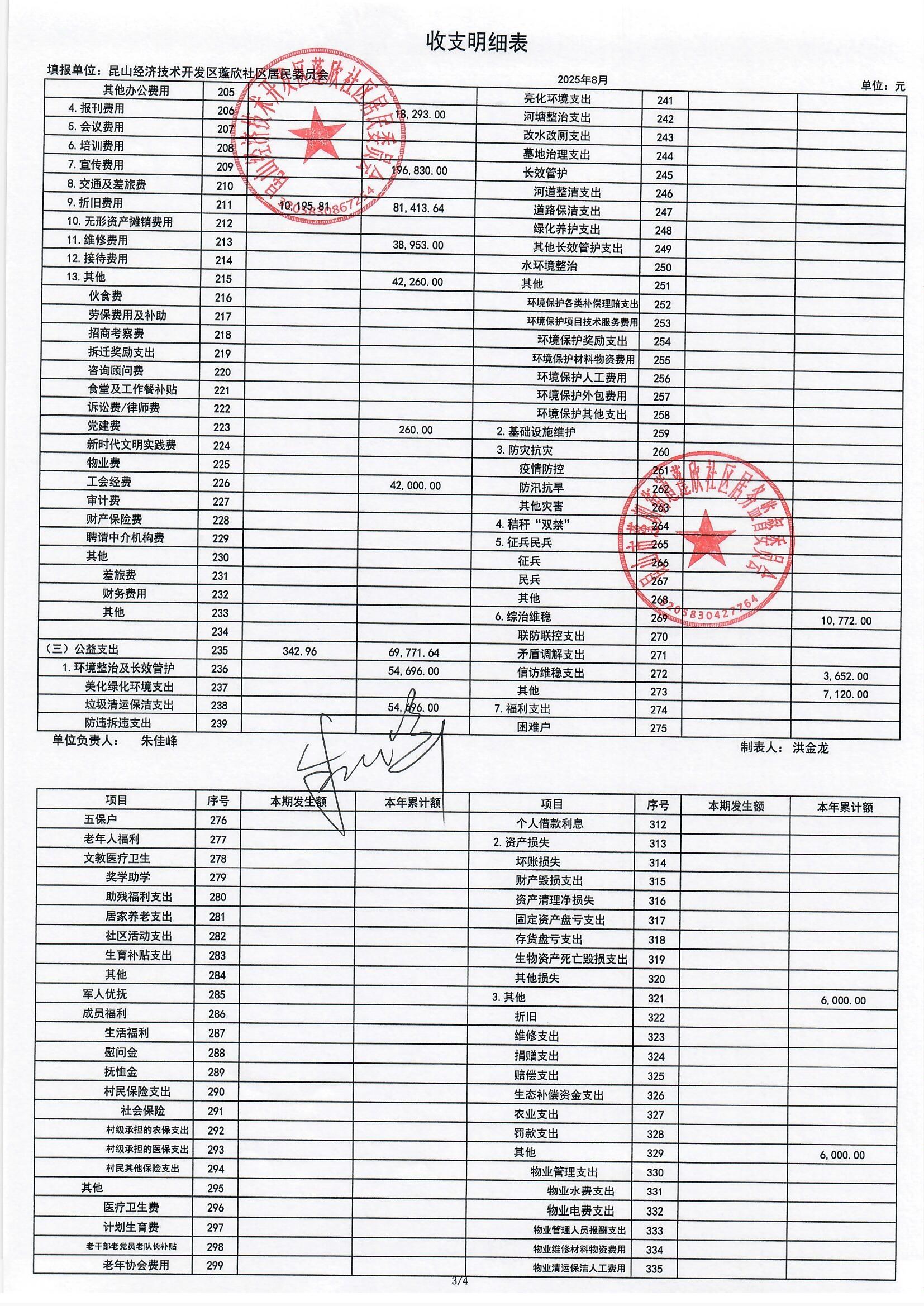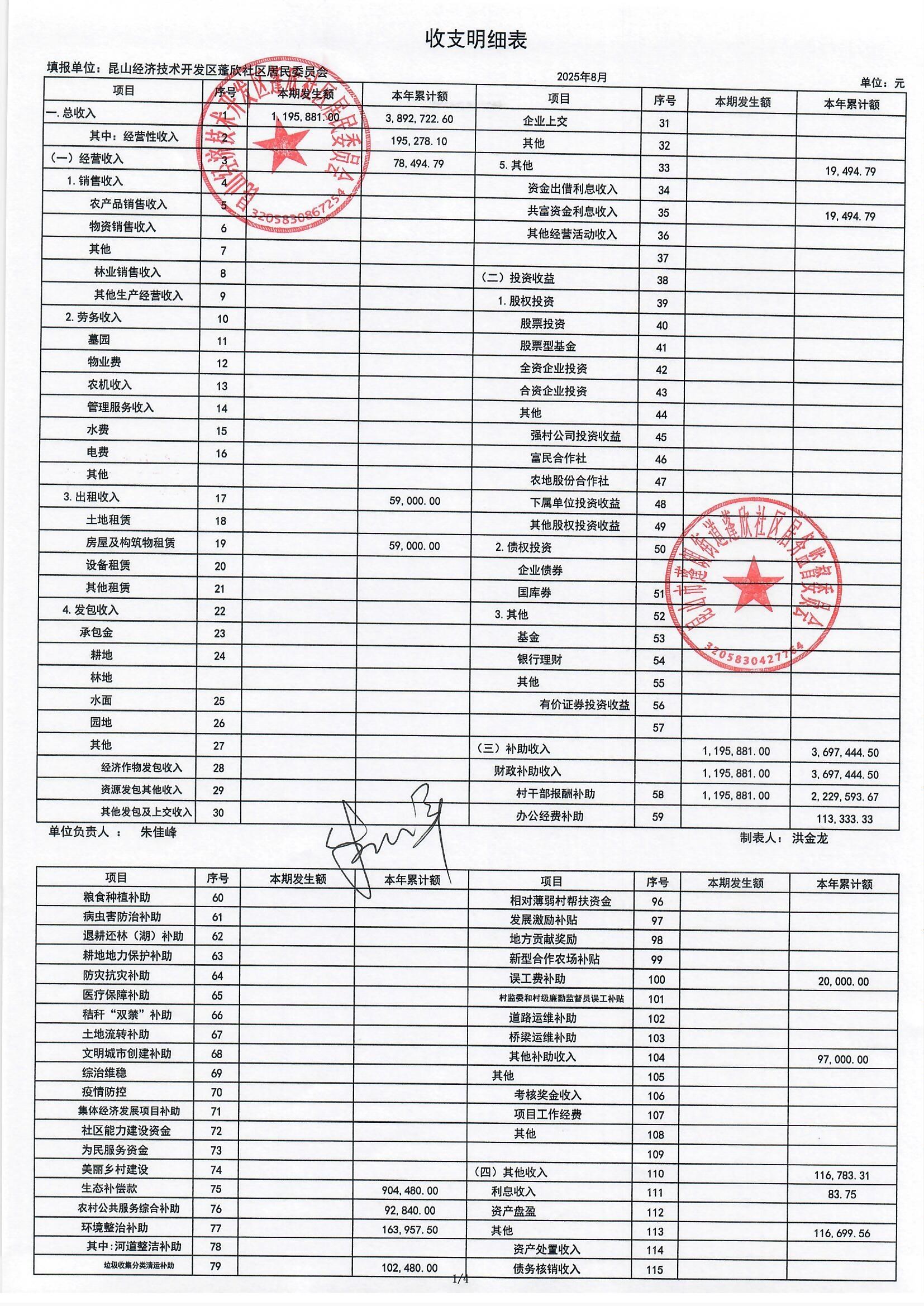 2025年8月份蓬欣社區(qū)財(cái)務(wù)公開