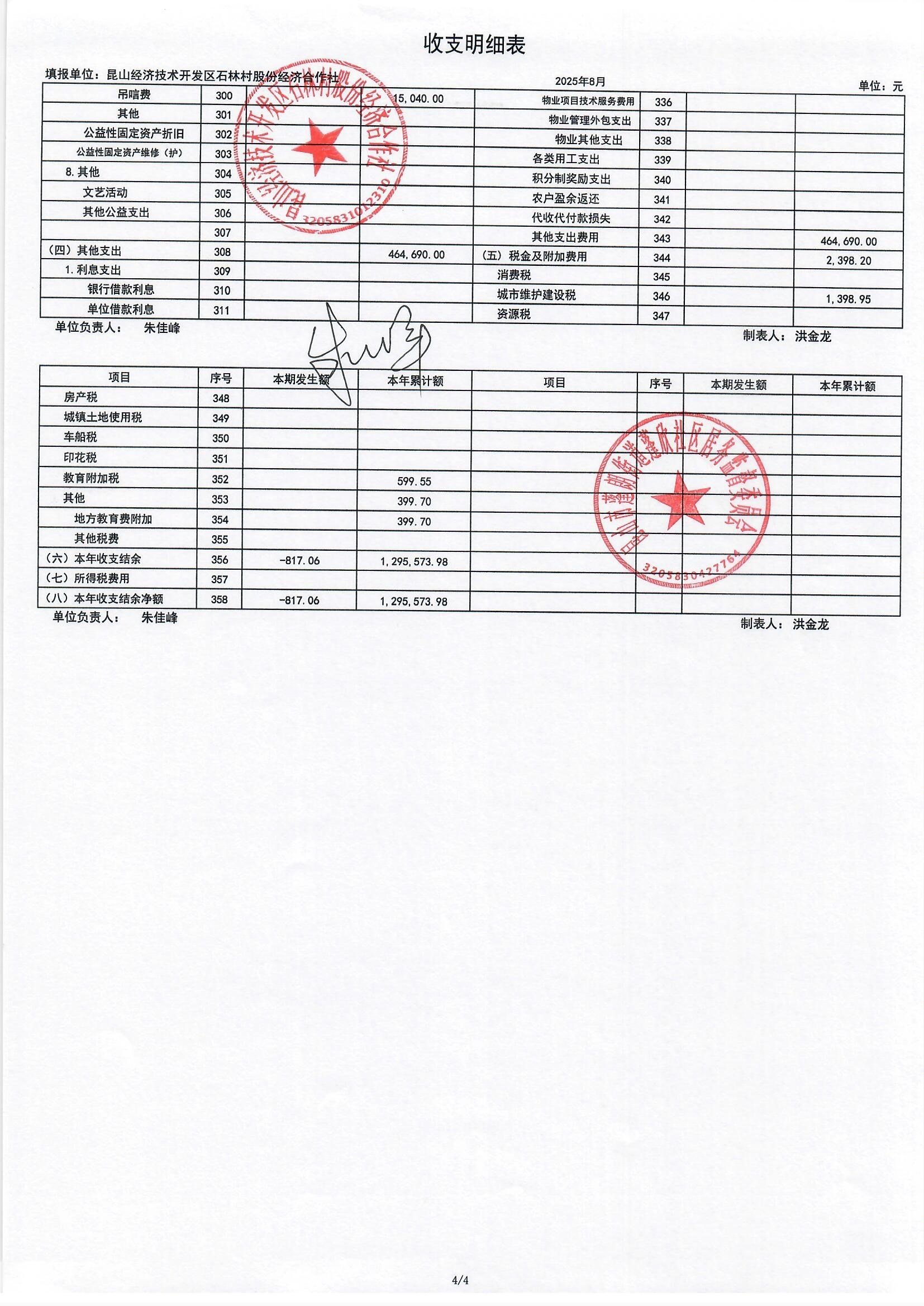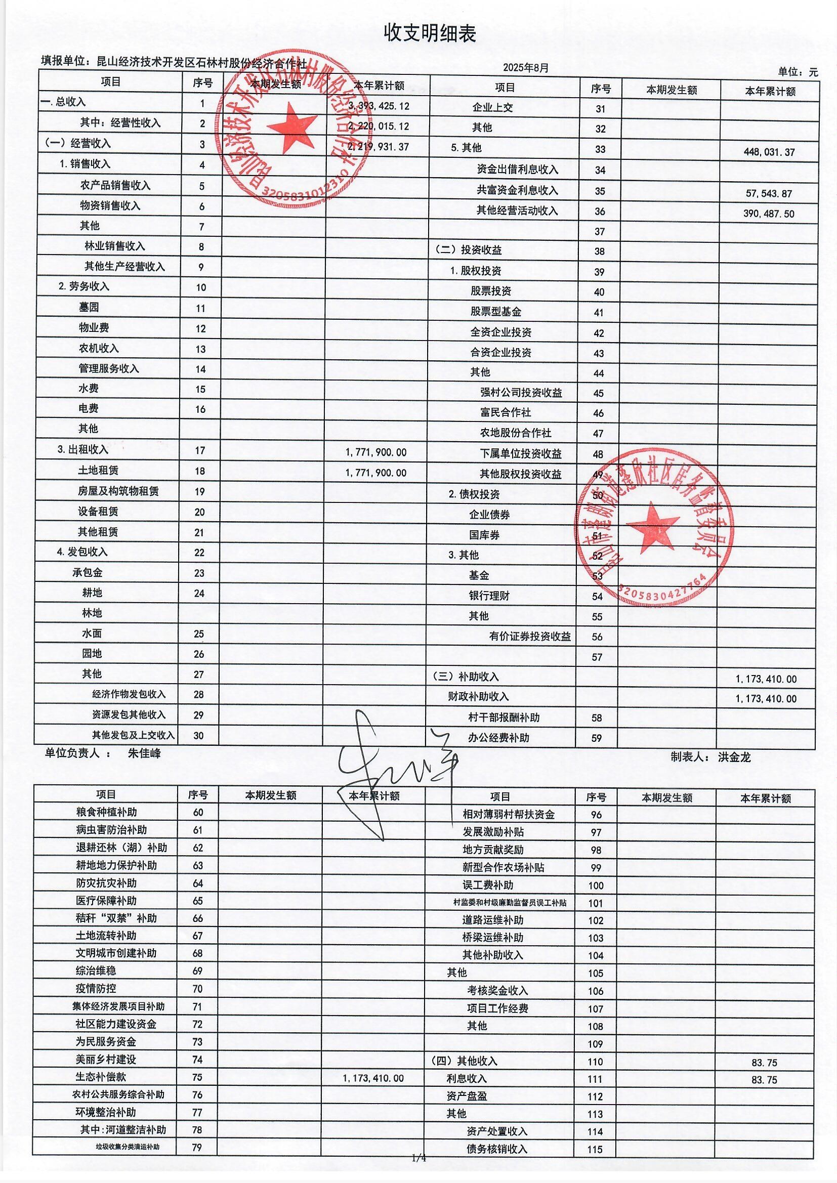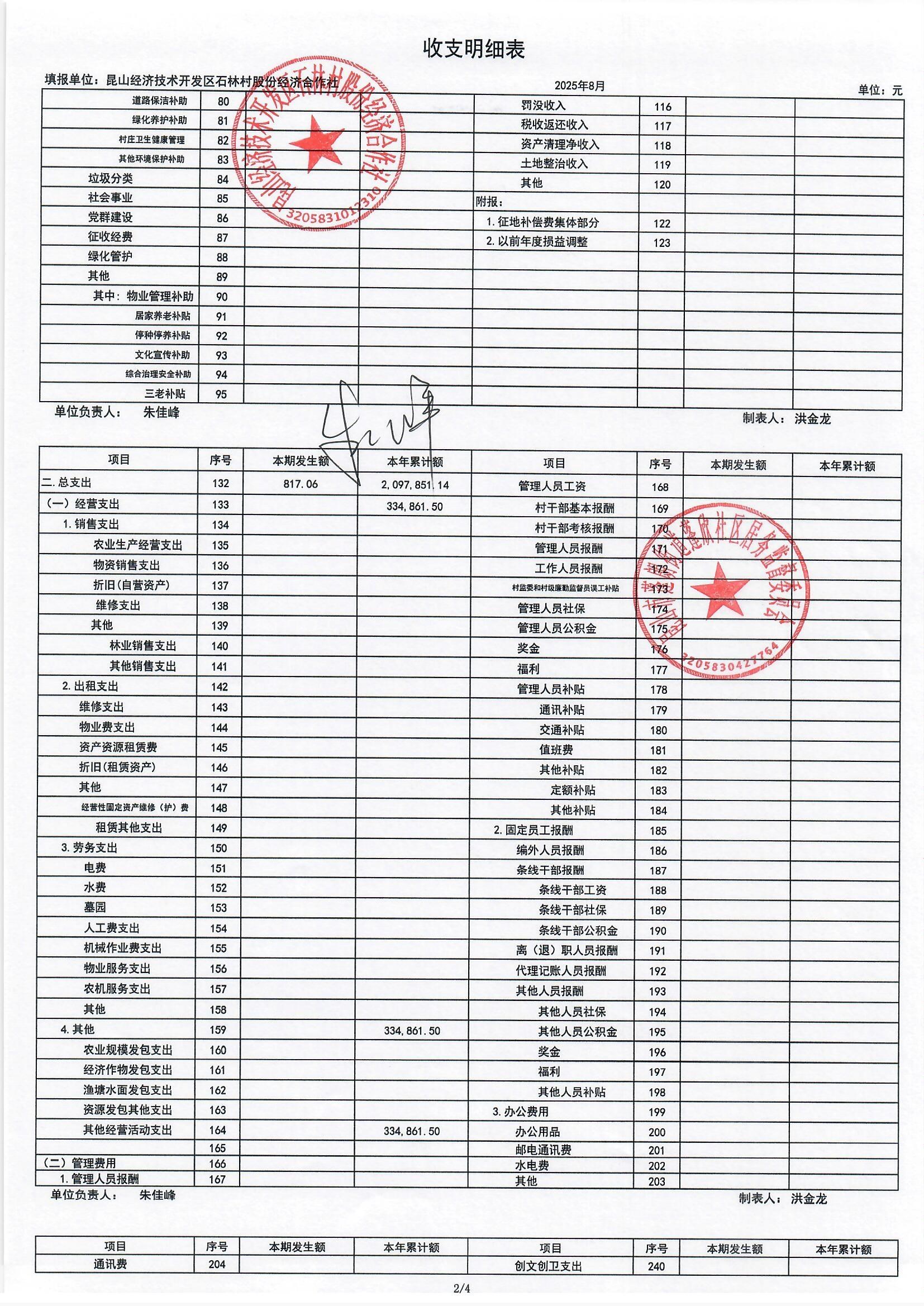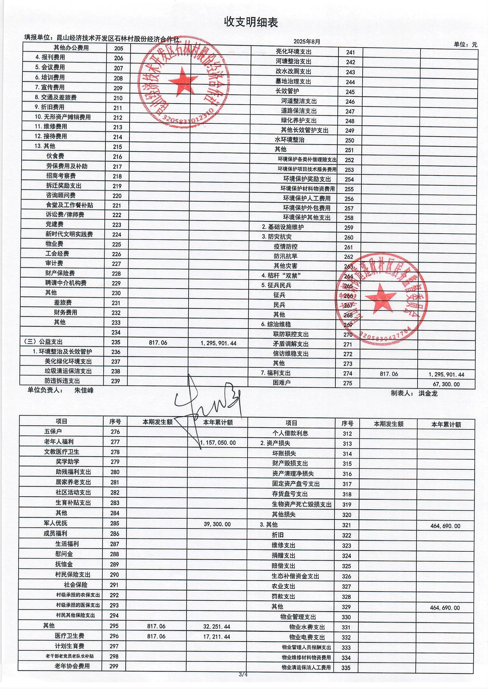 2025年8月份石林村股份經(jīng)濟合作社財務(wù)公開