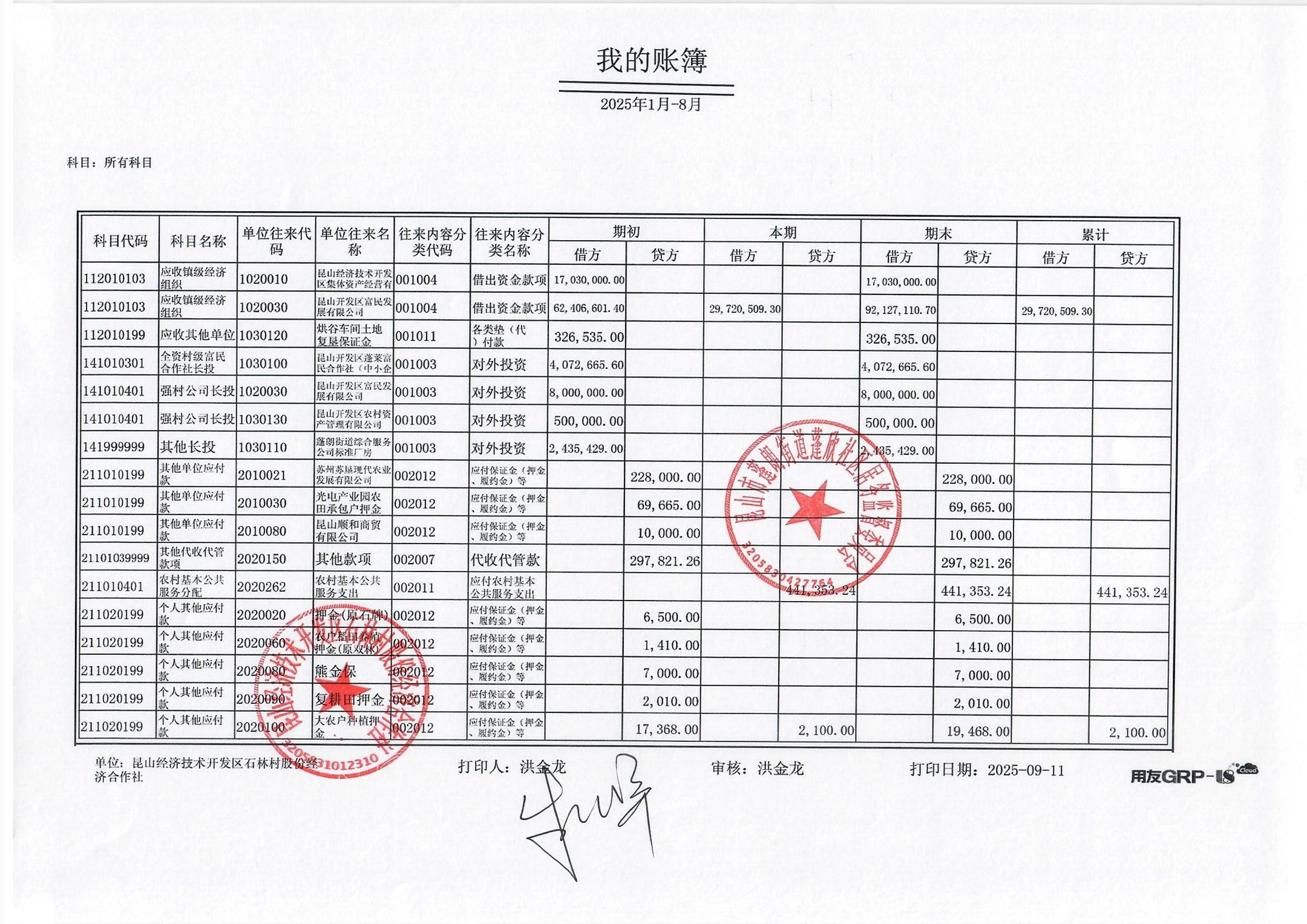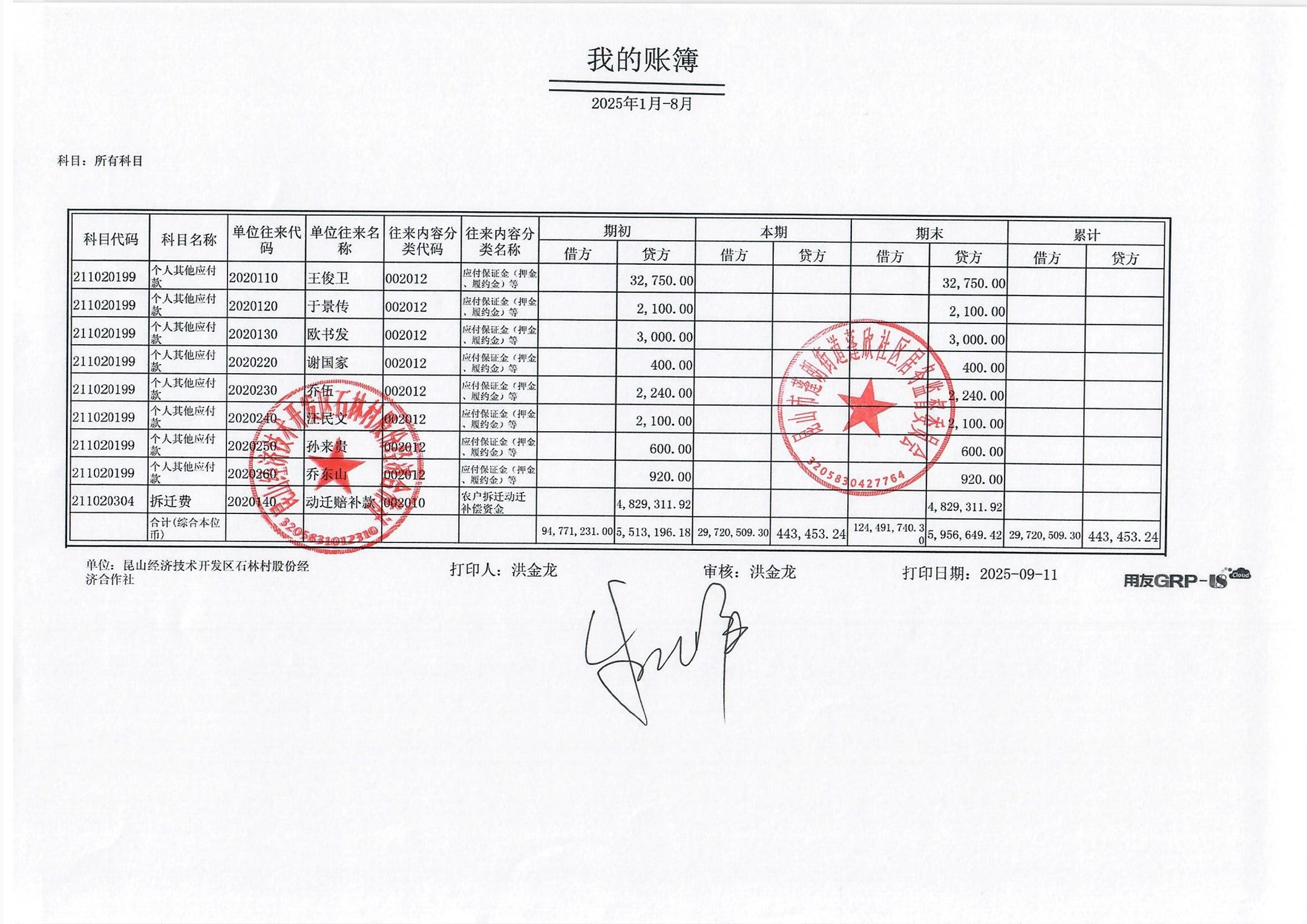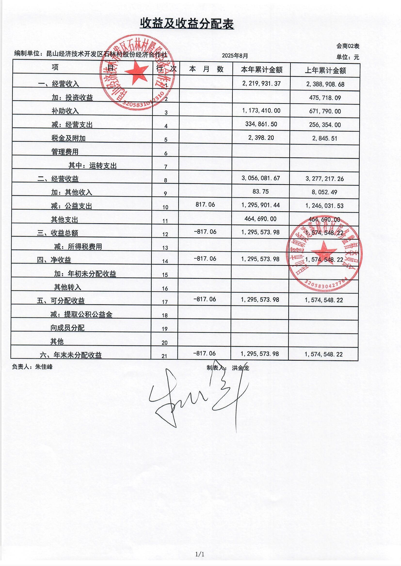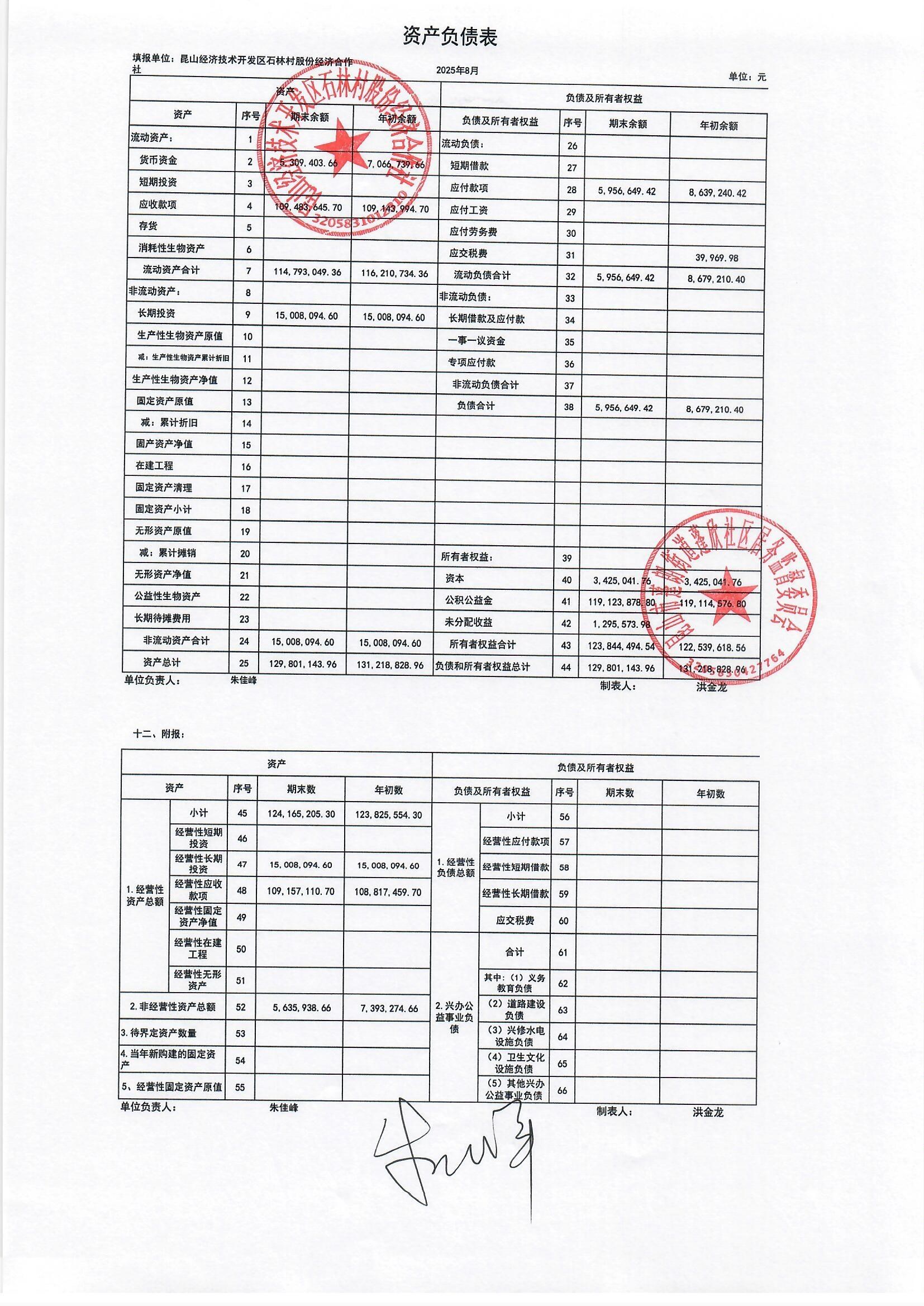 2025年8月份石林村股份經(jīng)濟合作社財務(wù)公開