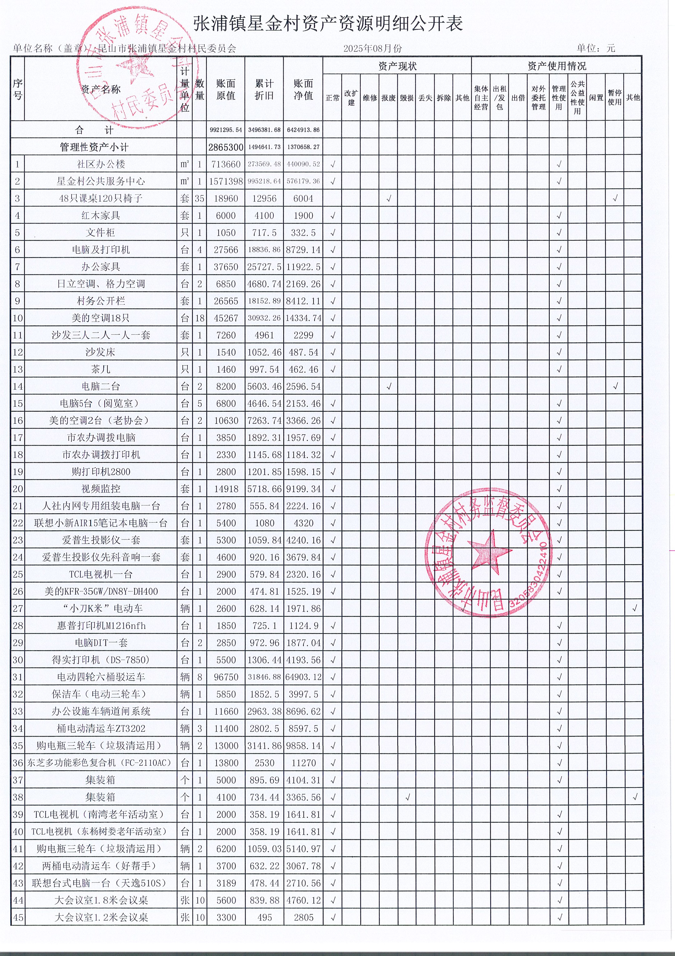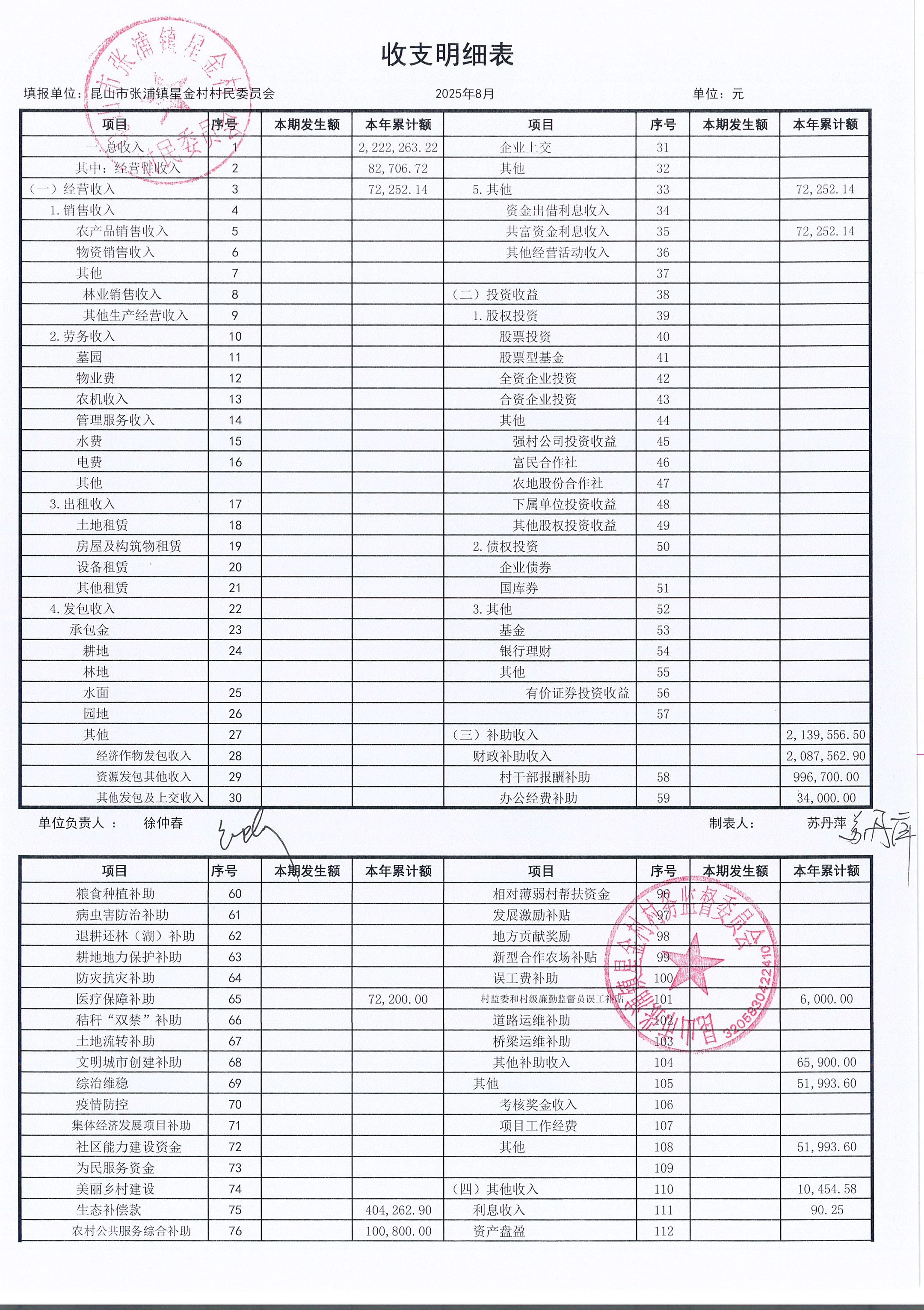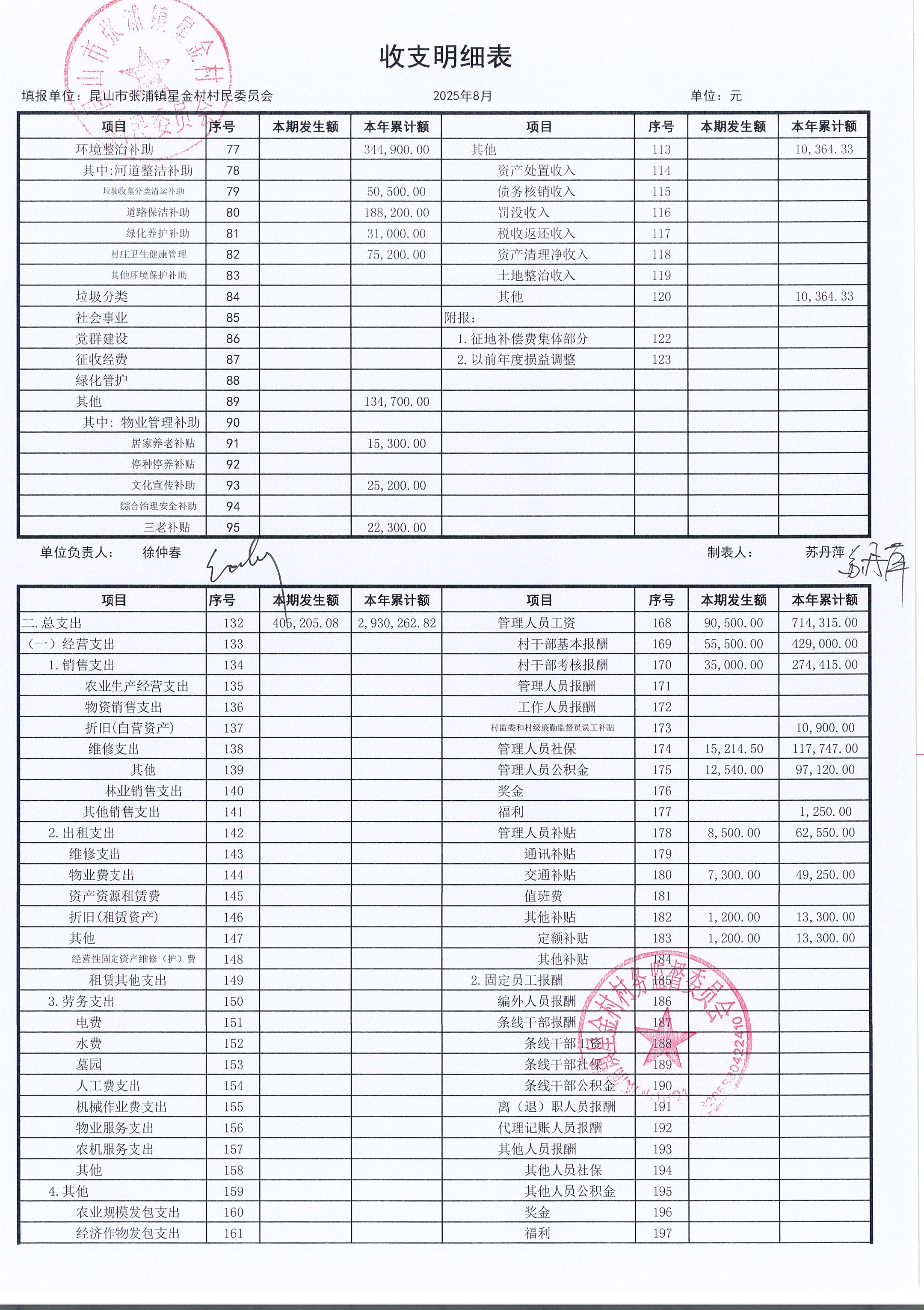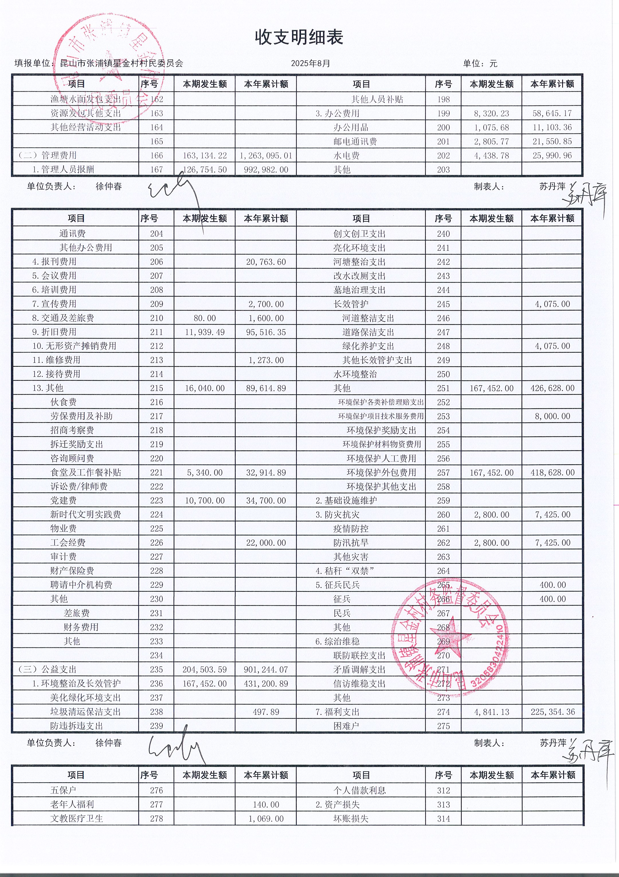 星金村村民委員會(huì)2025年08月財(cái)務(wù)公開(kāi)
