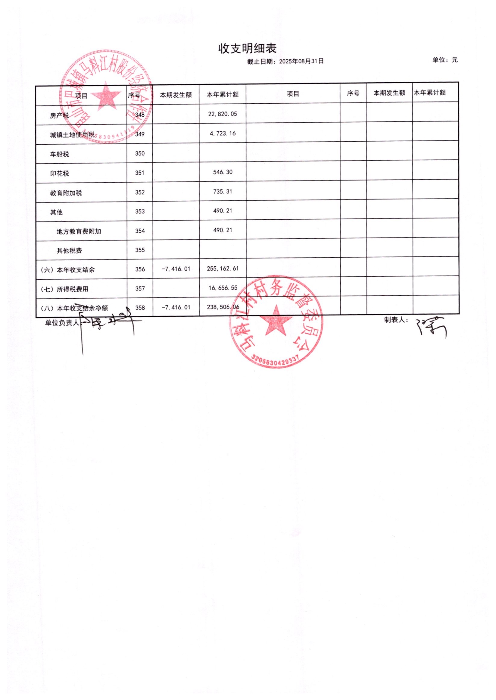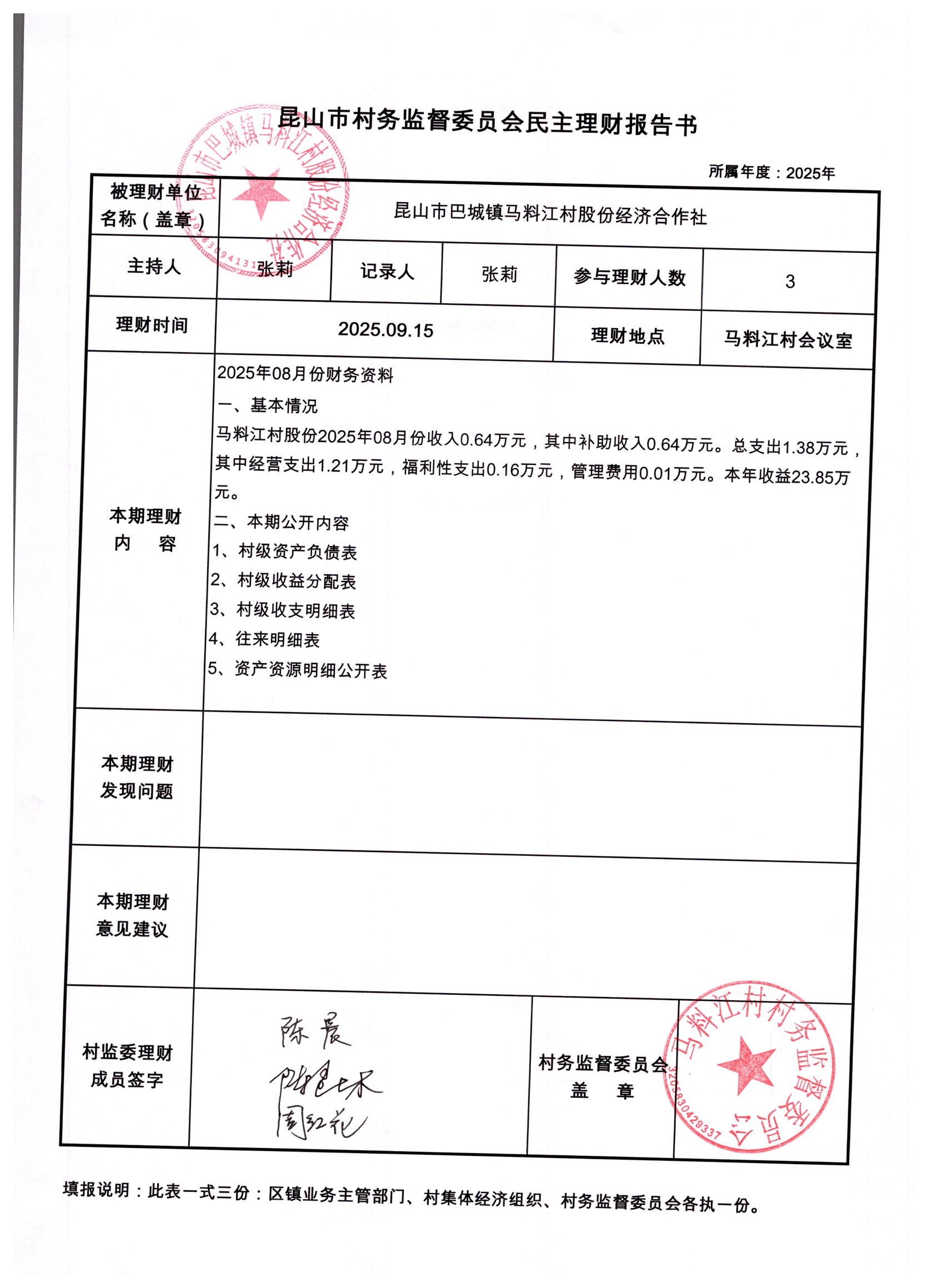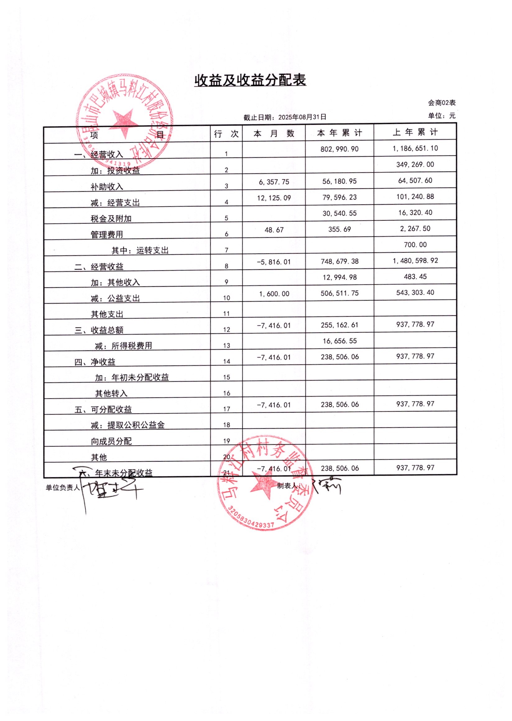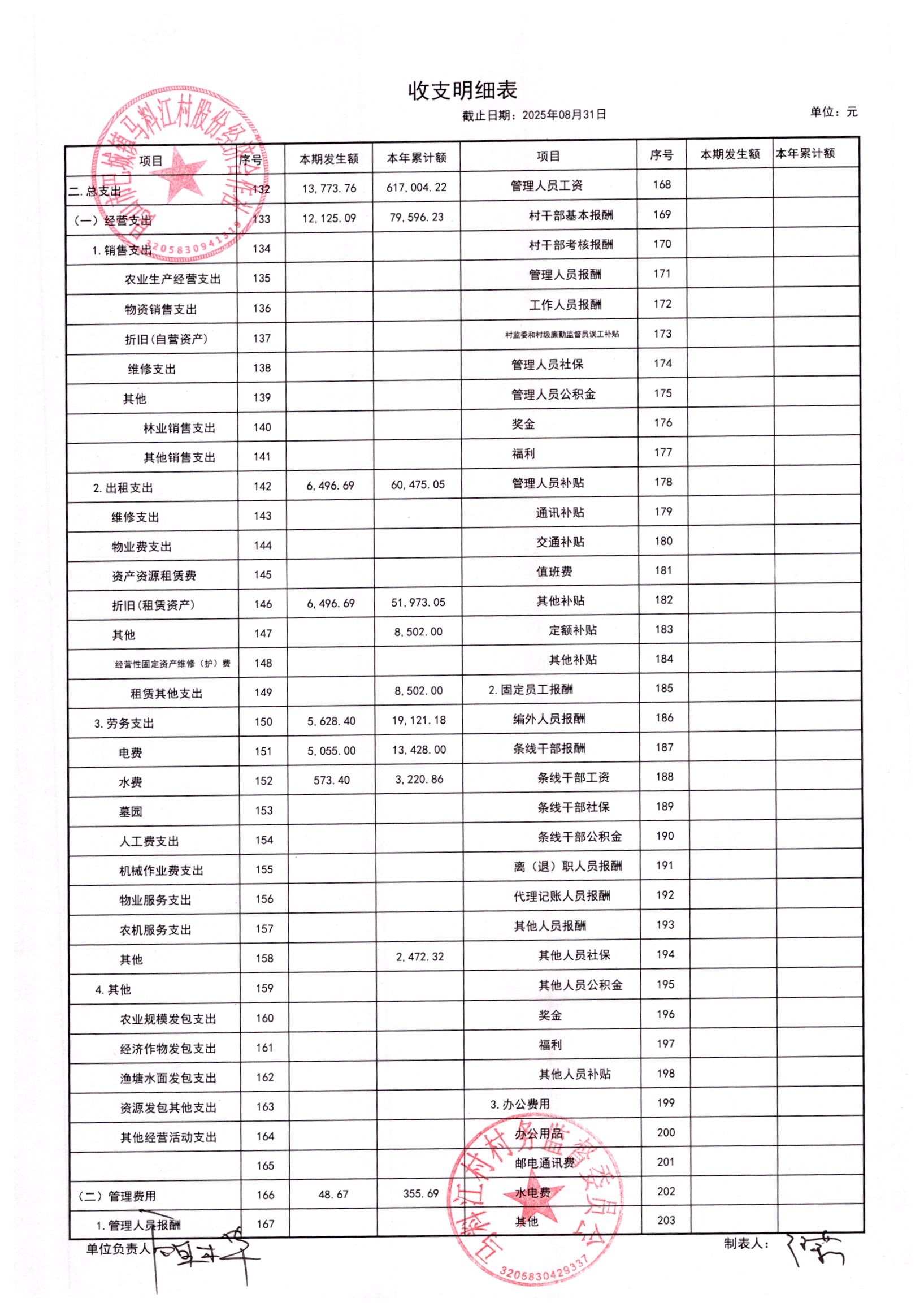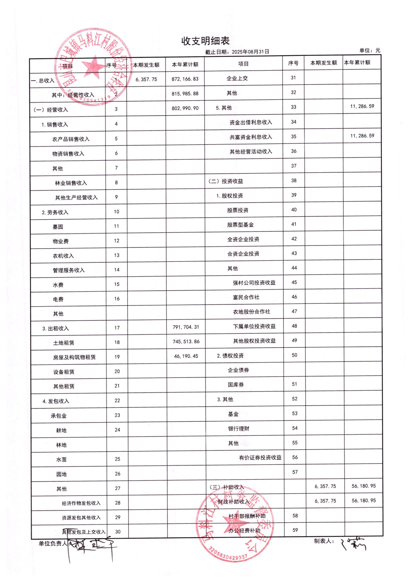 馬料江村股份-2025年09月份財(cái)務(wù)公開(kāi)內(nèi)容