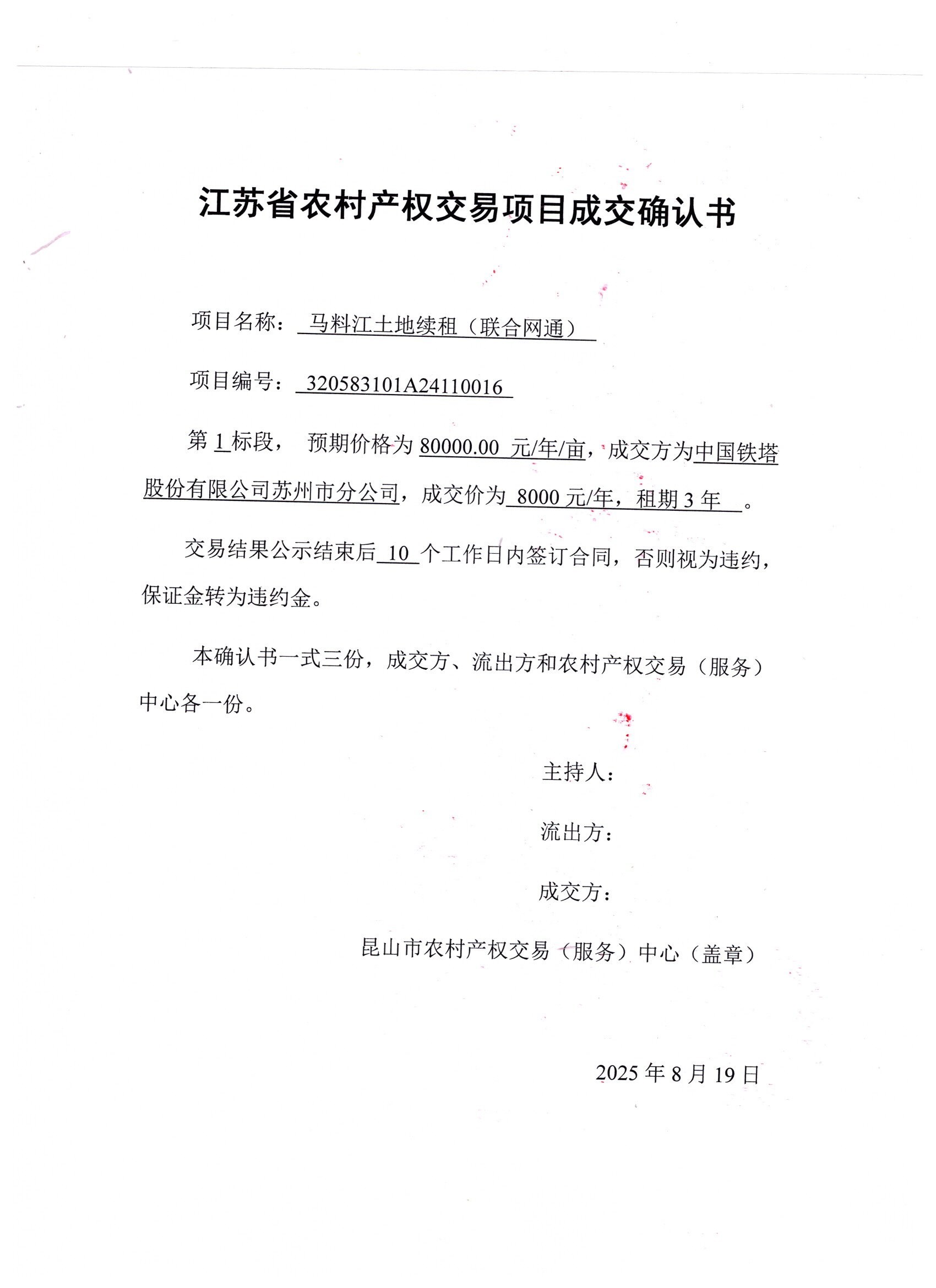 2025年08月馬料江村土地租賃成交結(jié)果公示