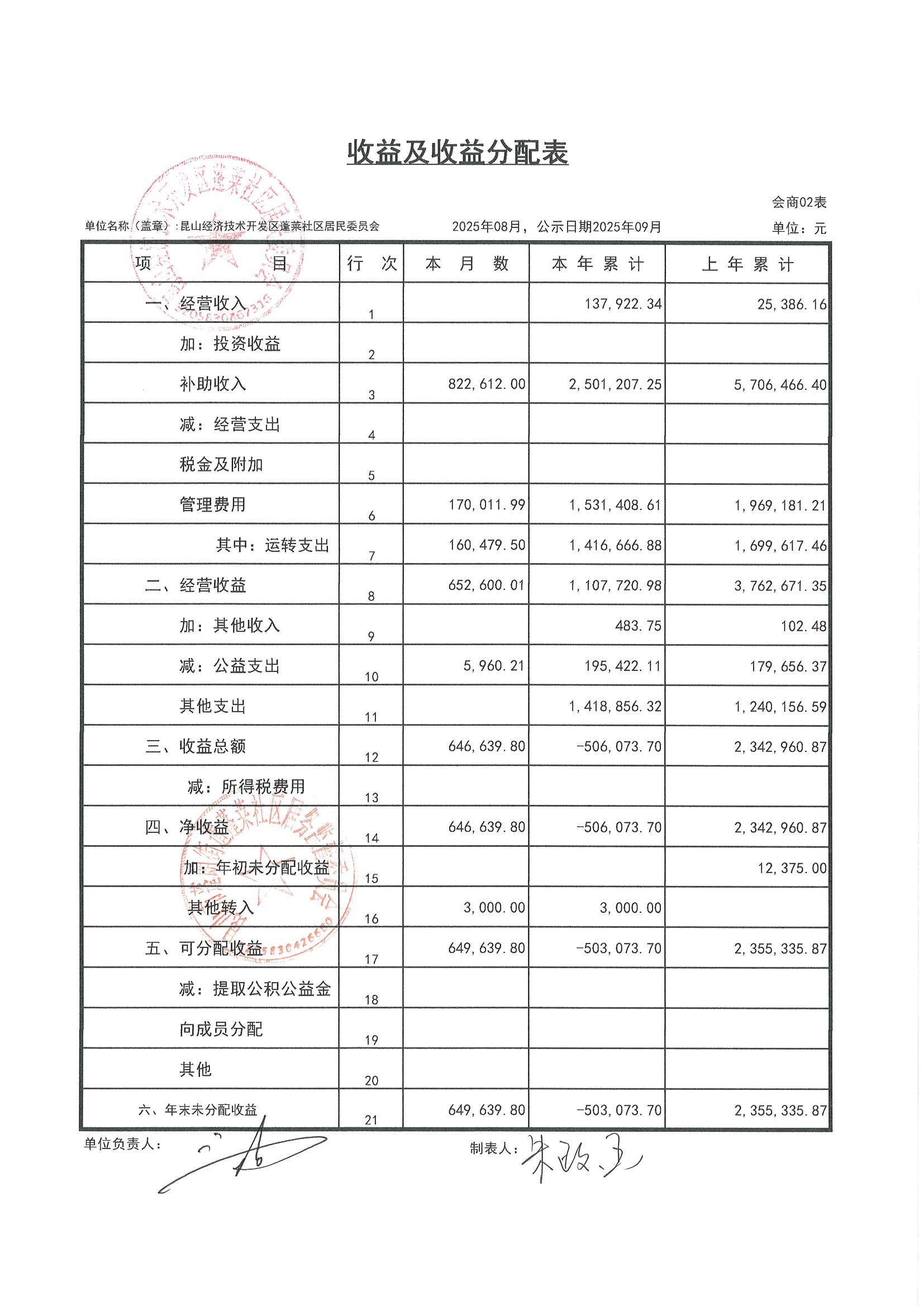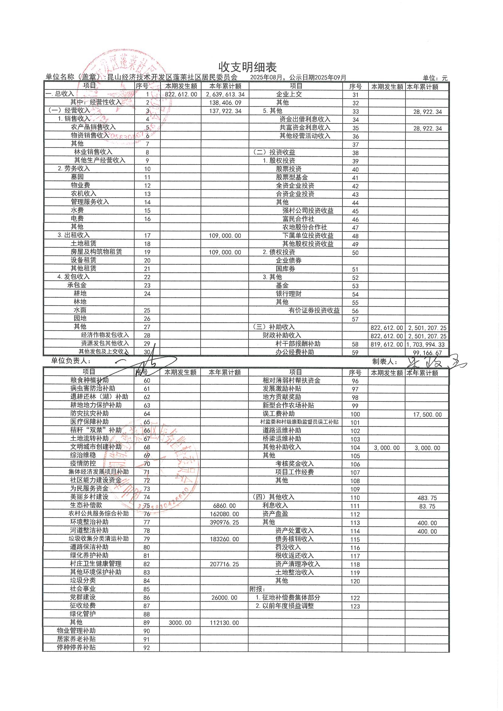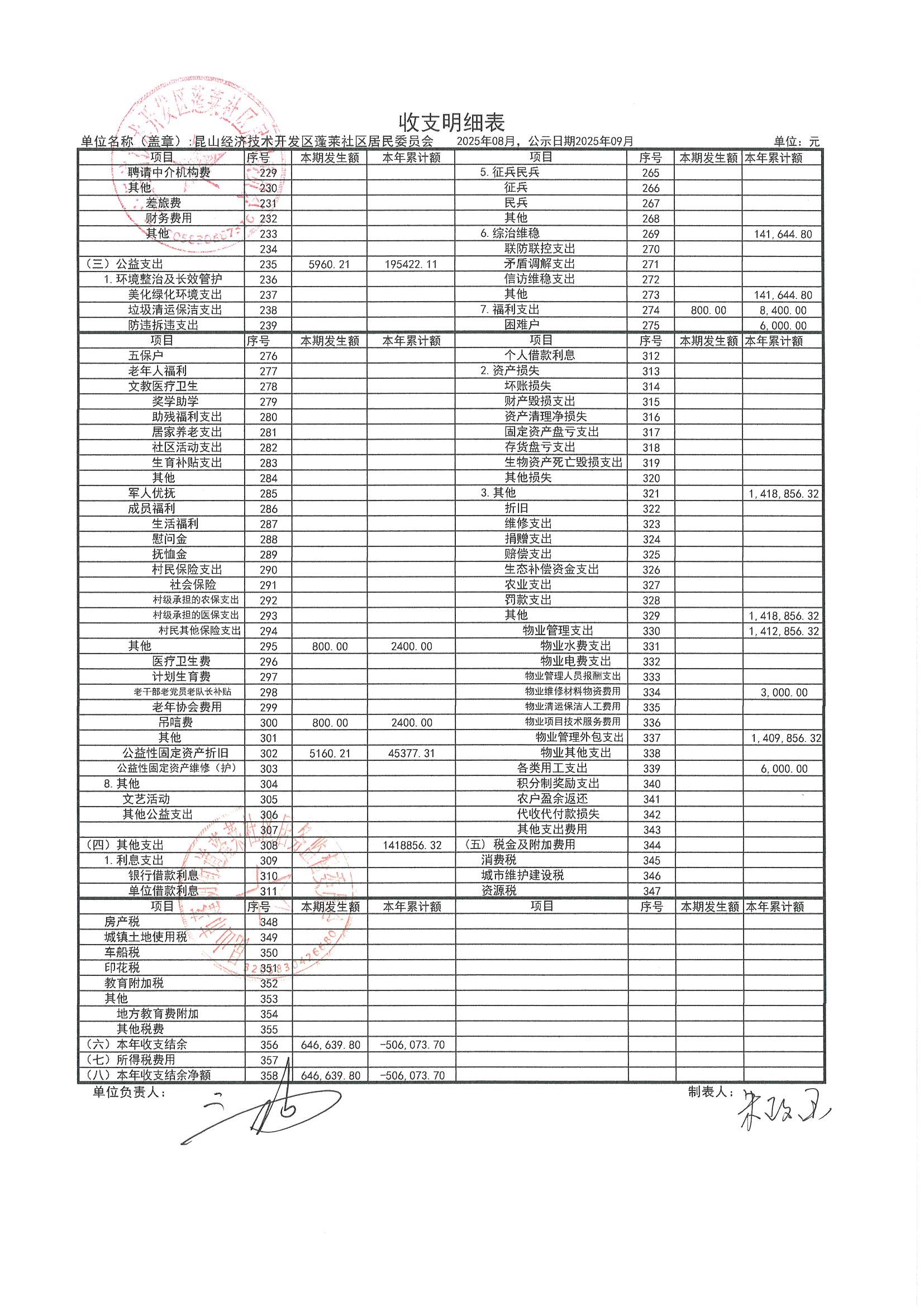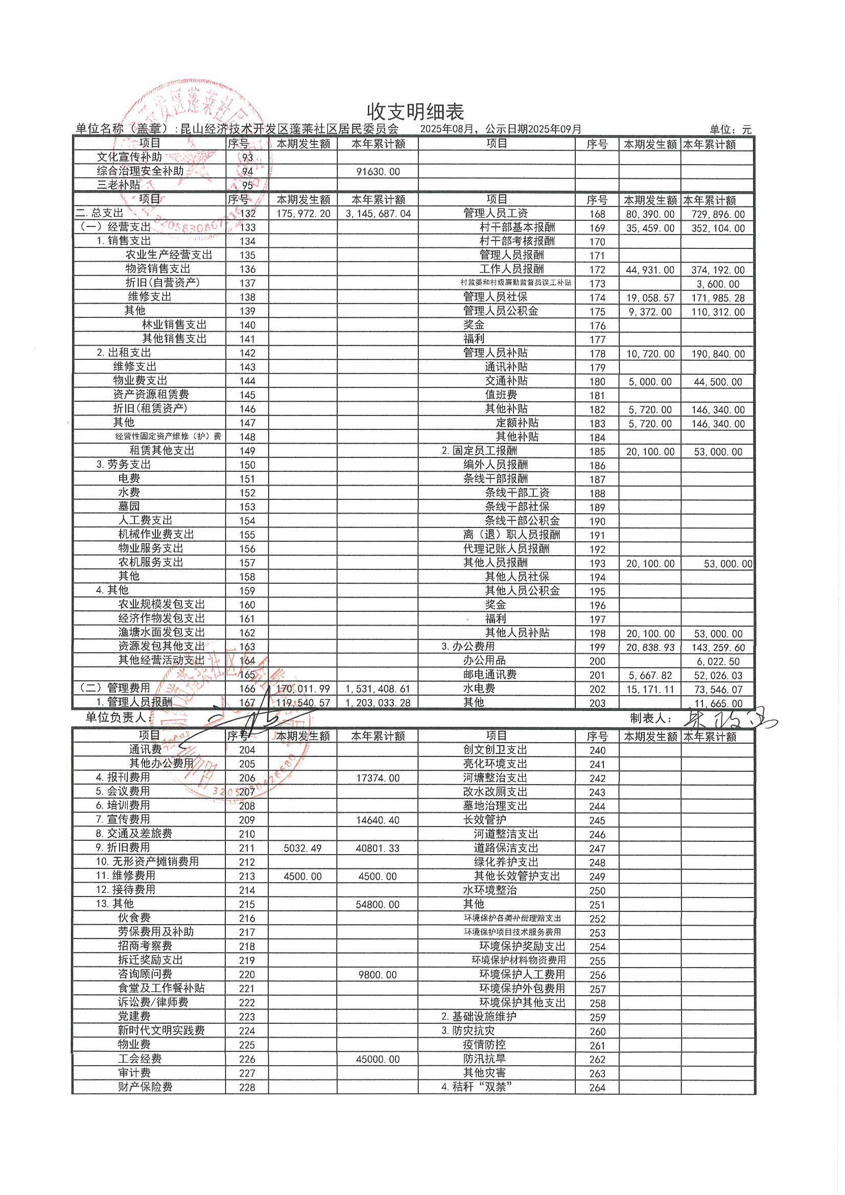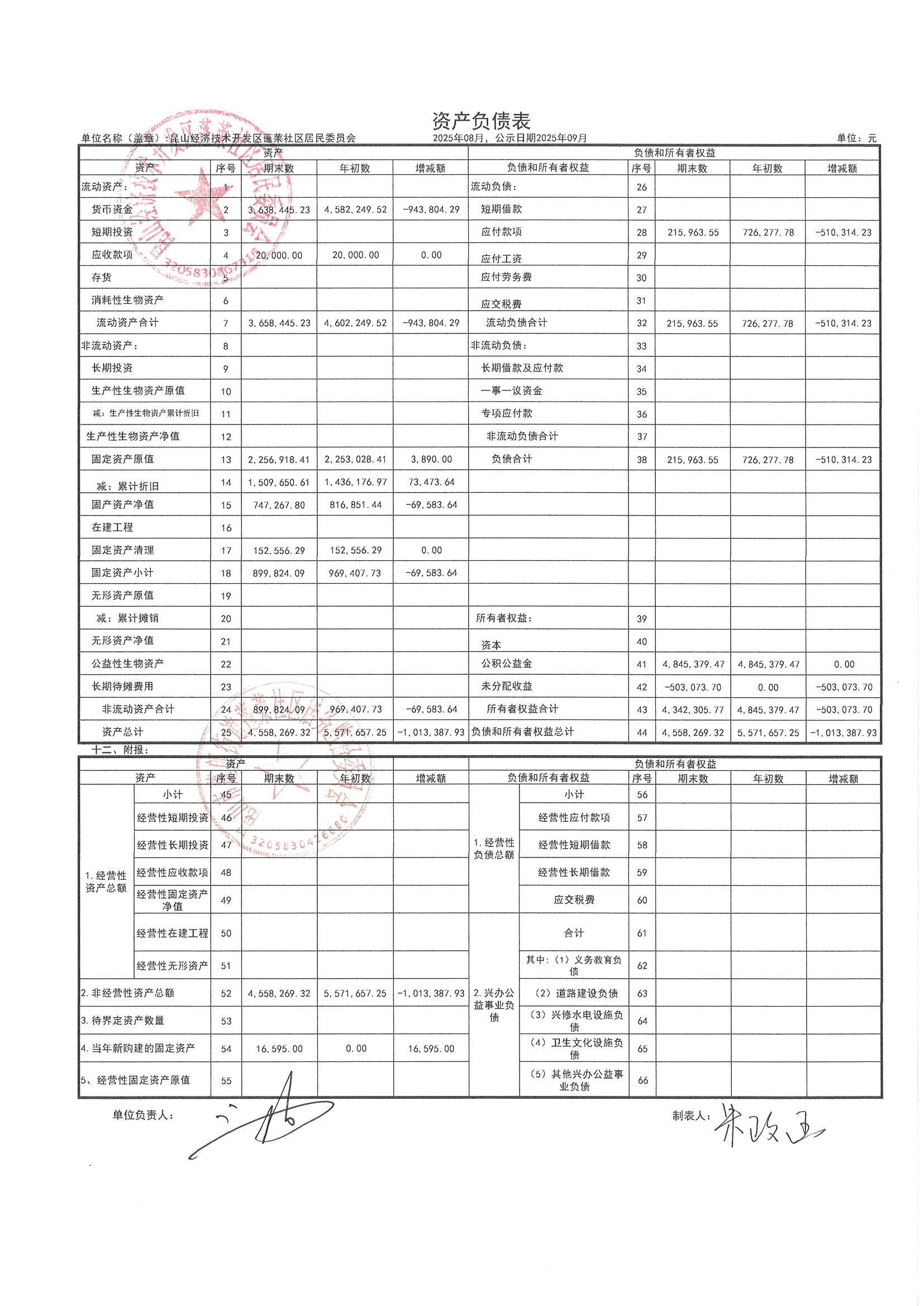 2025年8月財(cái)務(wù)公開(蓬萊社區(qū)居委會(huì))