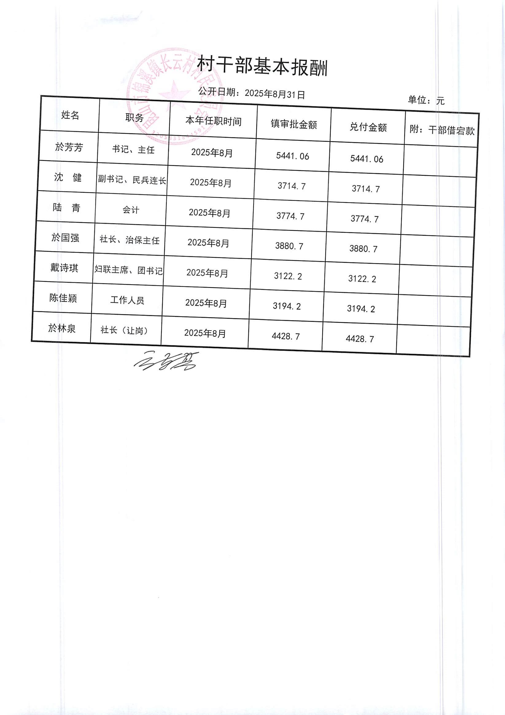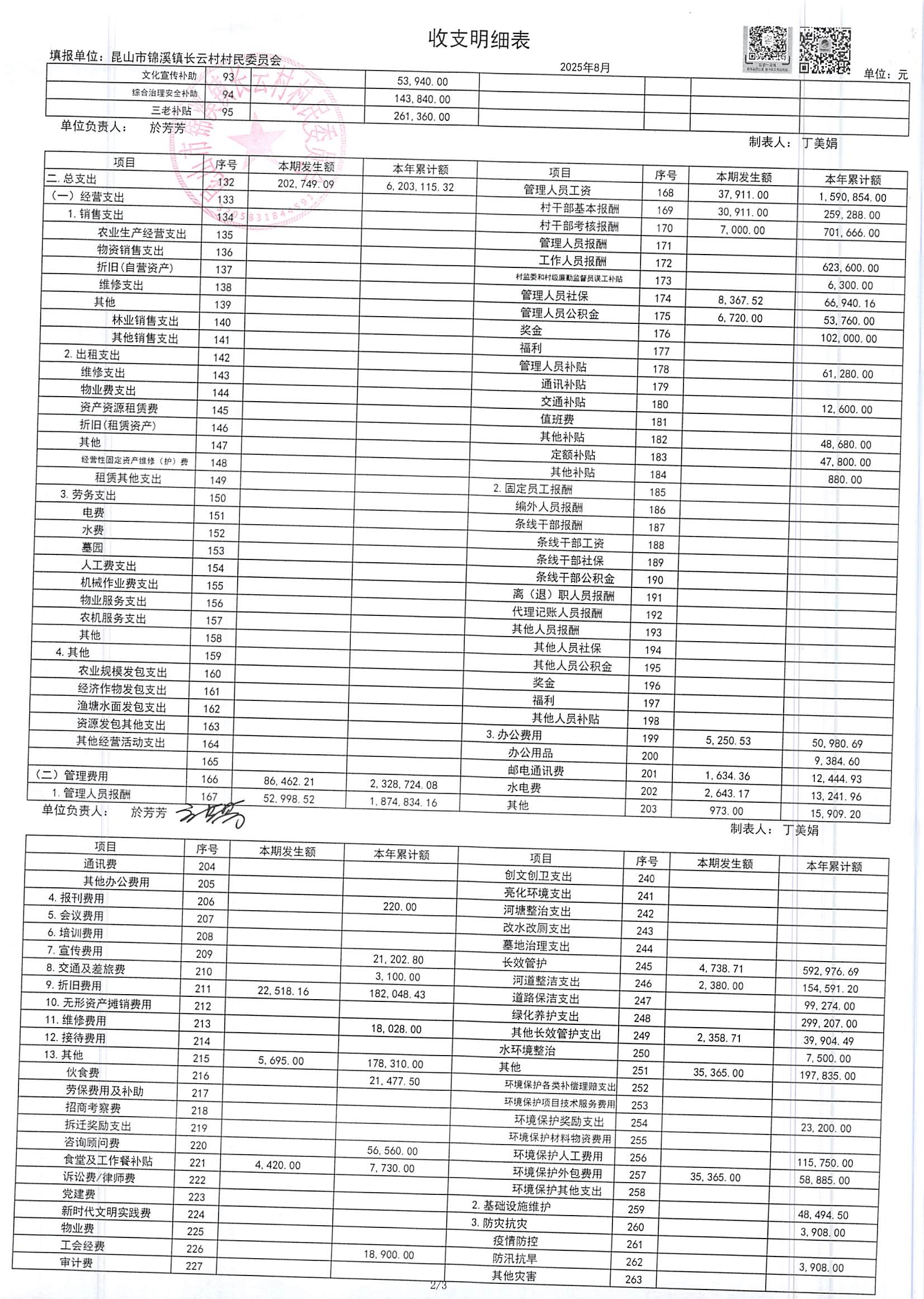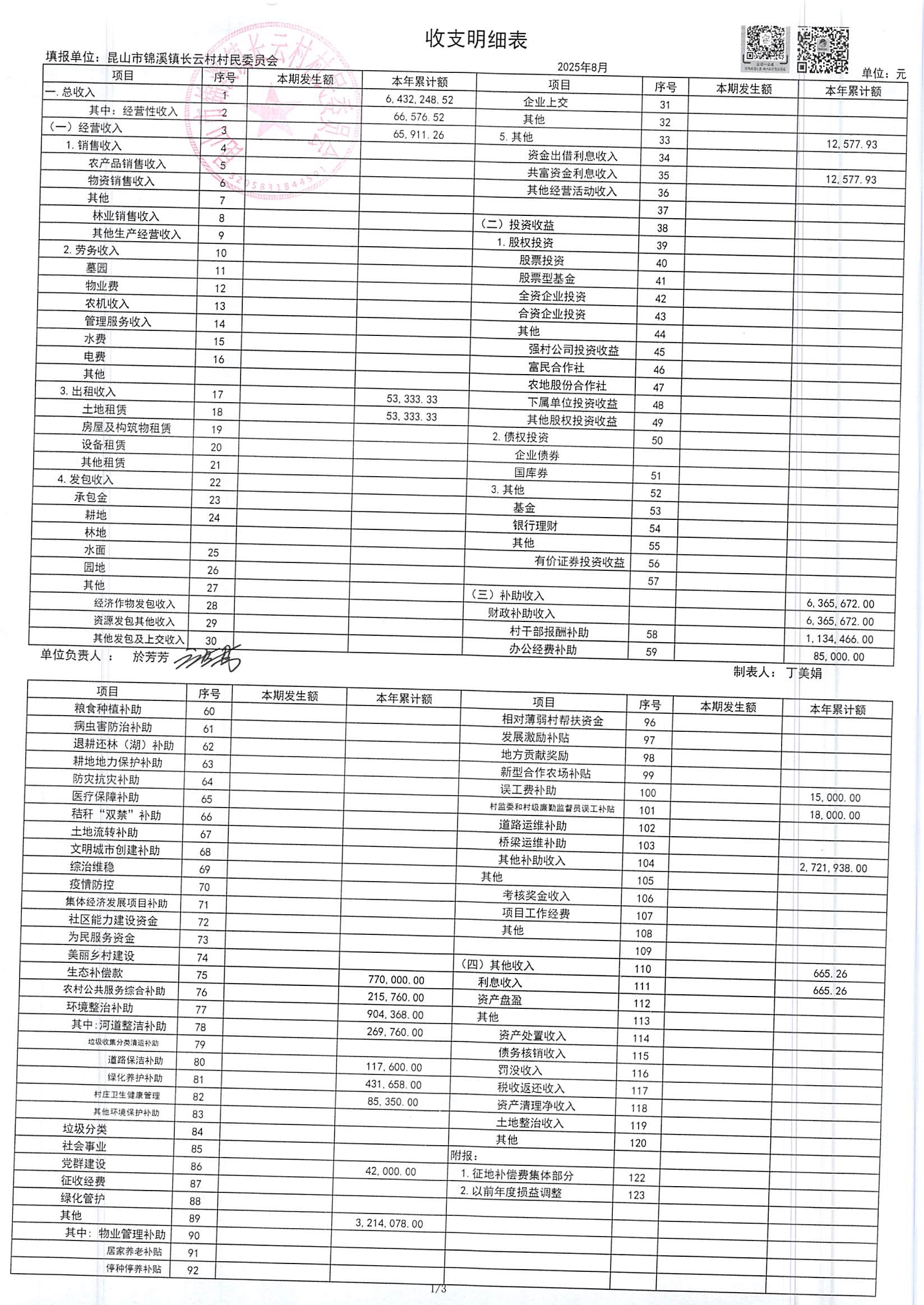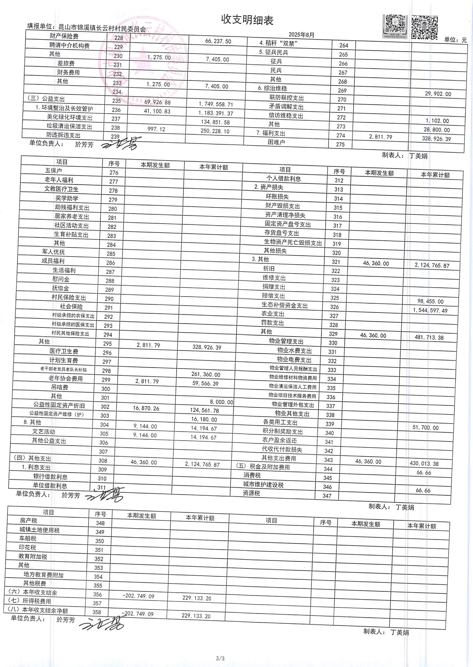 2025年第三季度財(cái)務(wù)公開(kāi)定期公開(kāi)(村委會(huì))(8月份)
