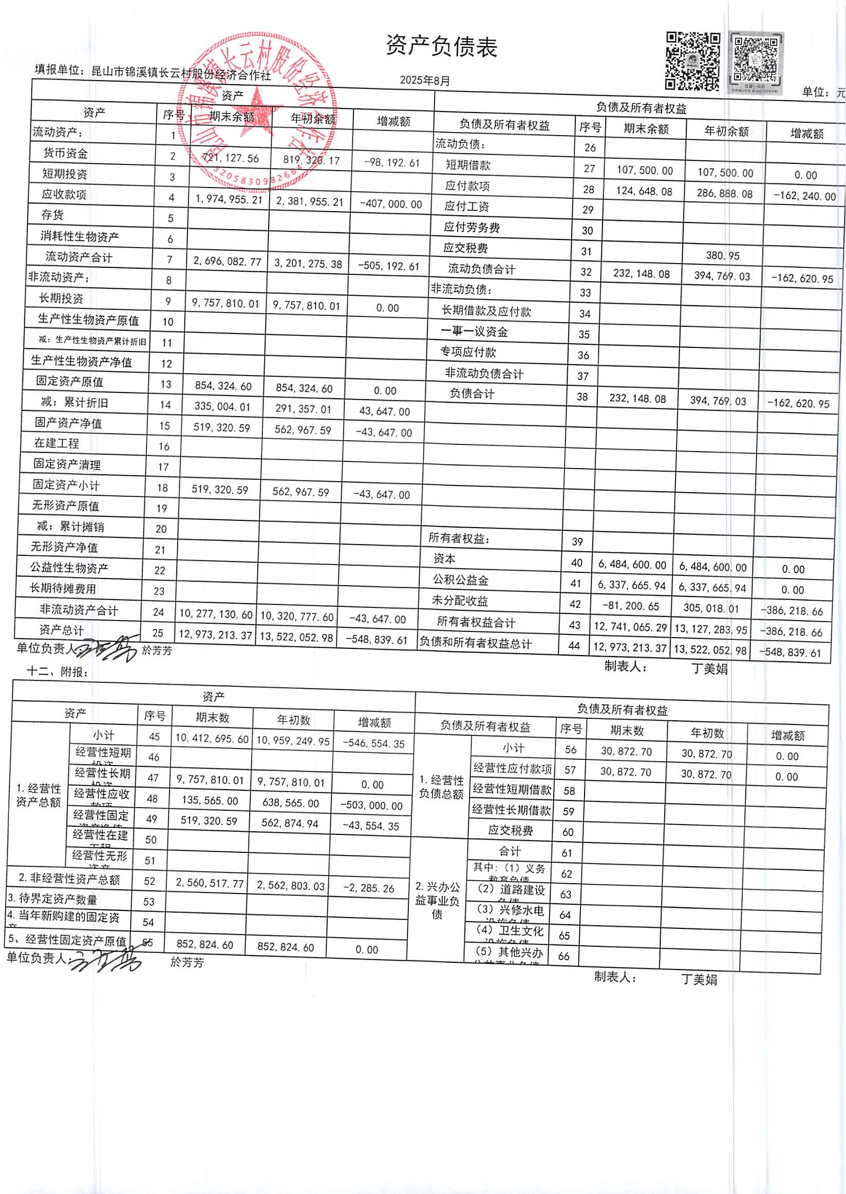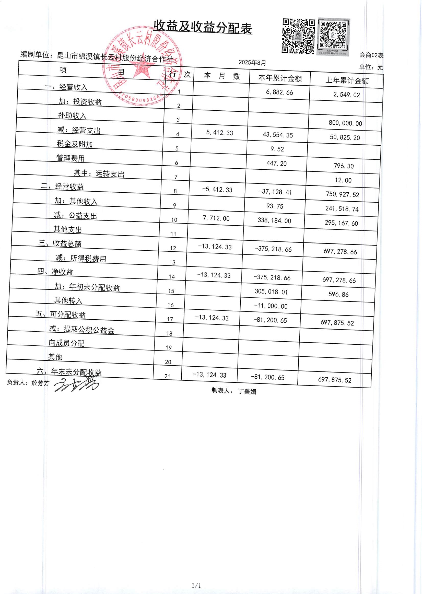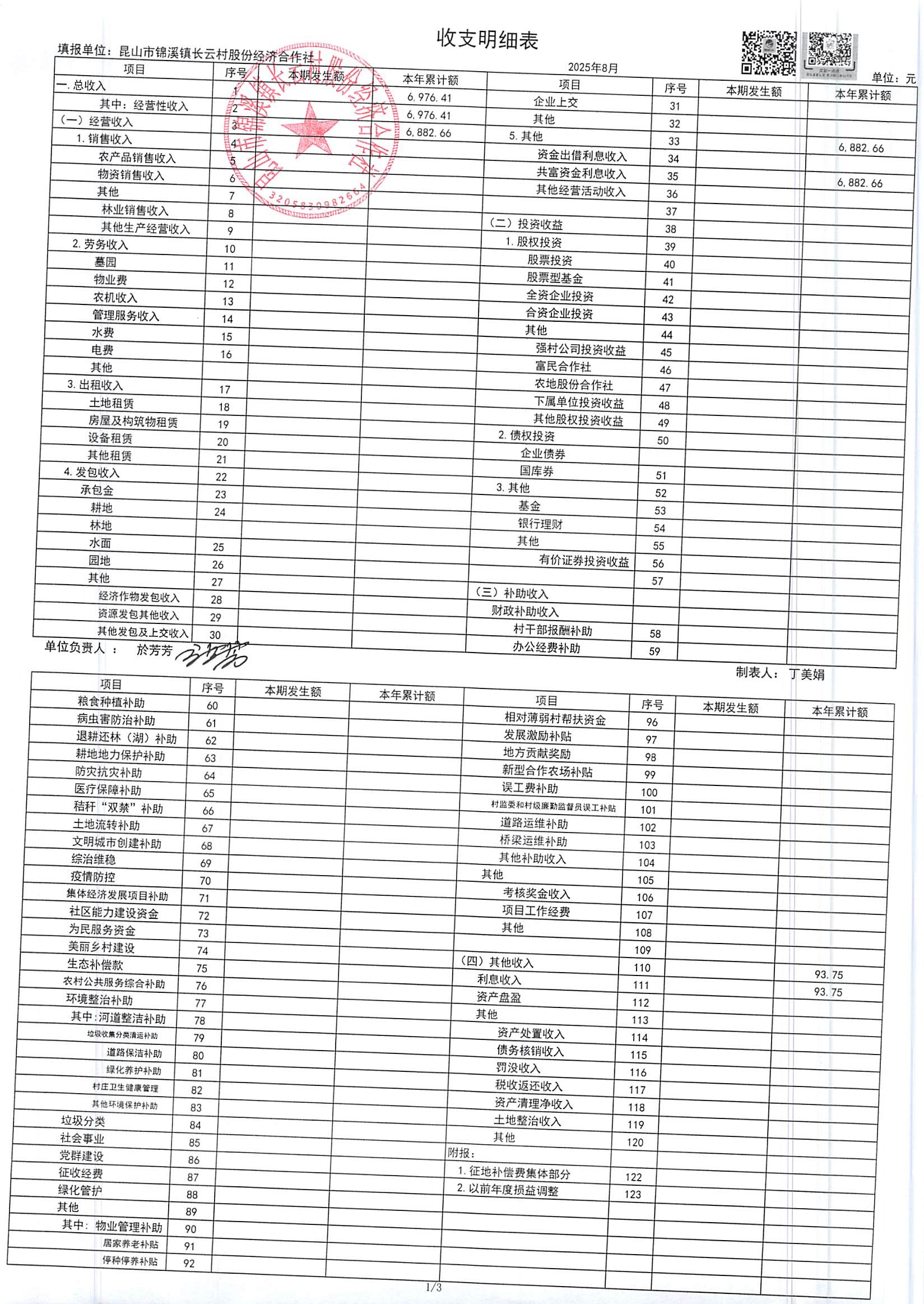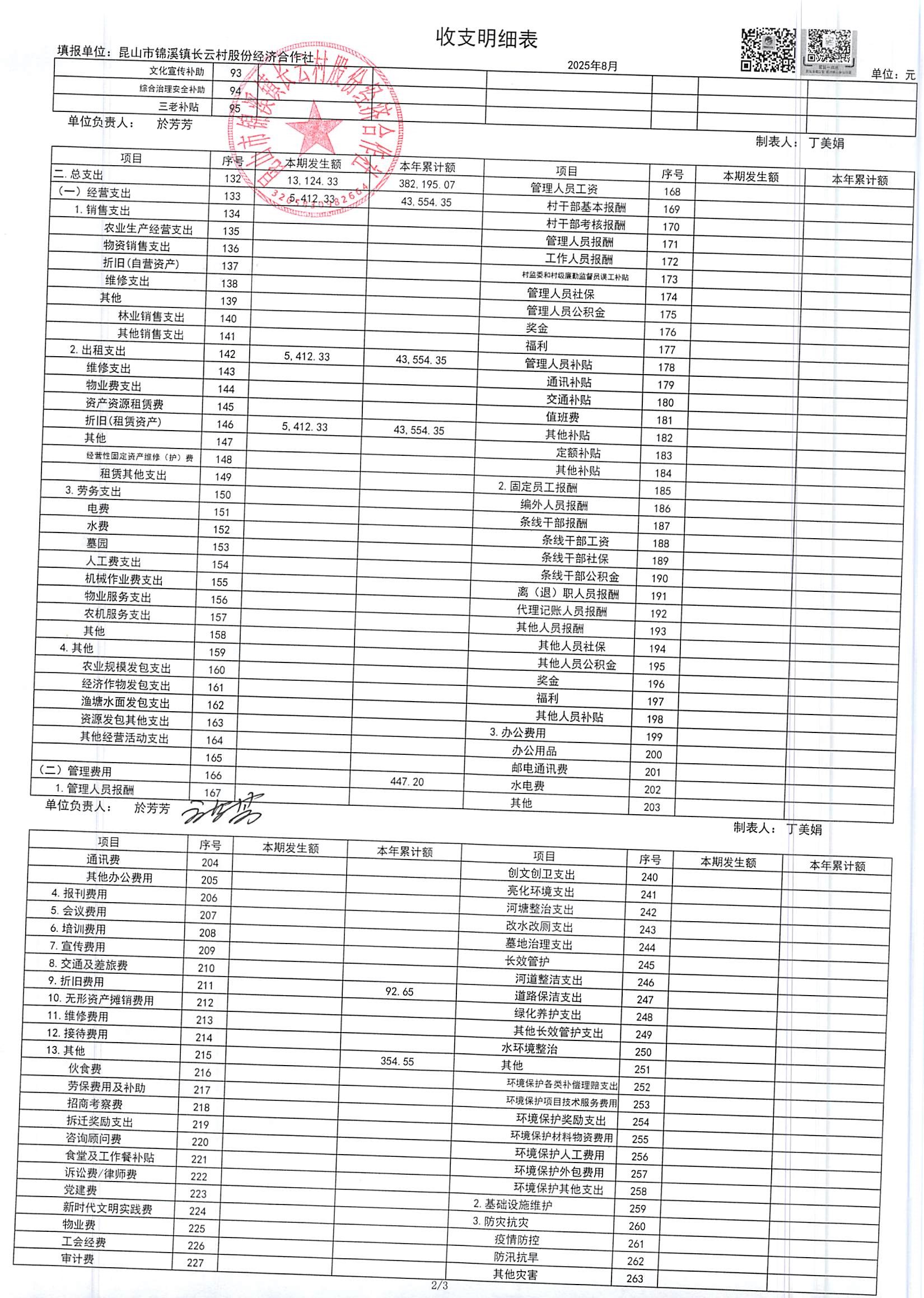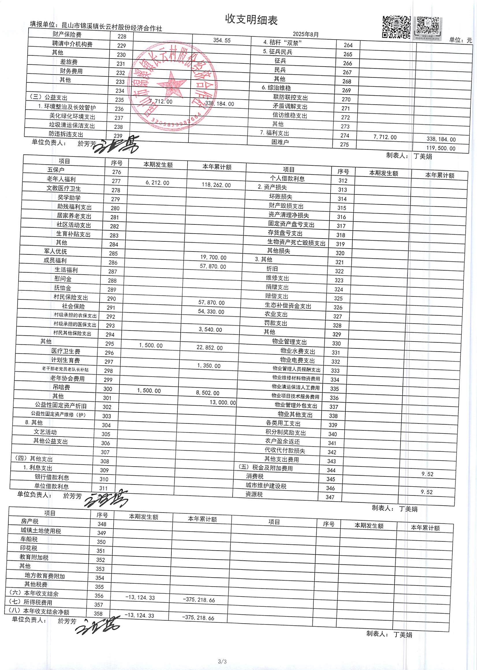 2025年第三季度財務(wù)公開定期公開(社區(qū))(8月份)