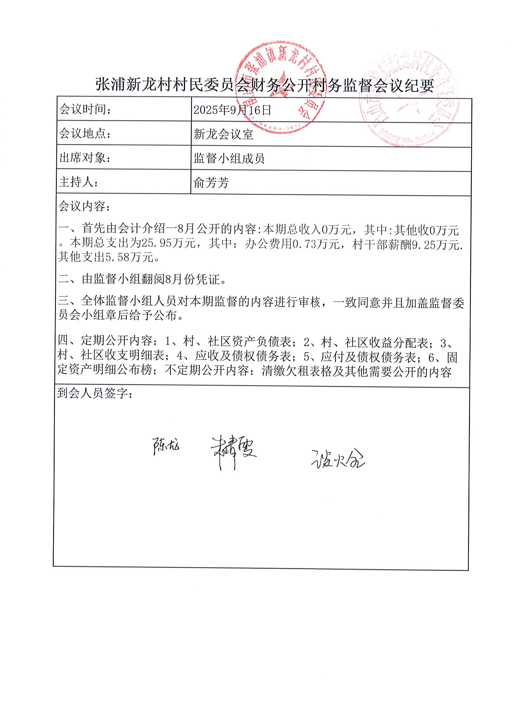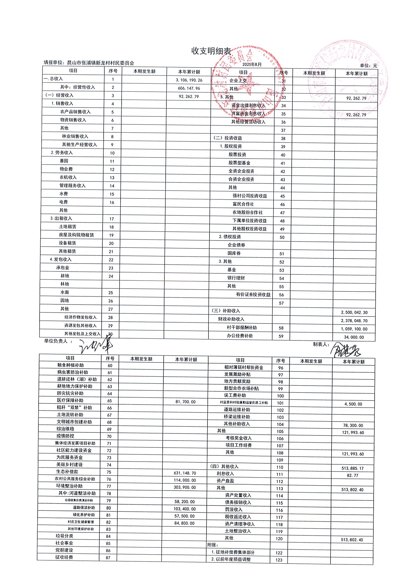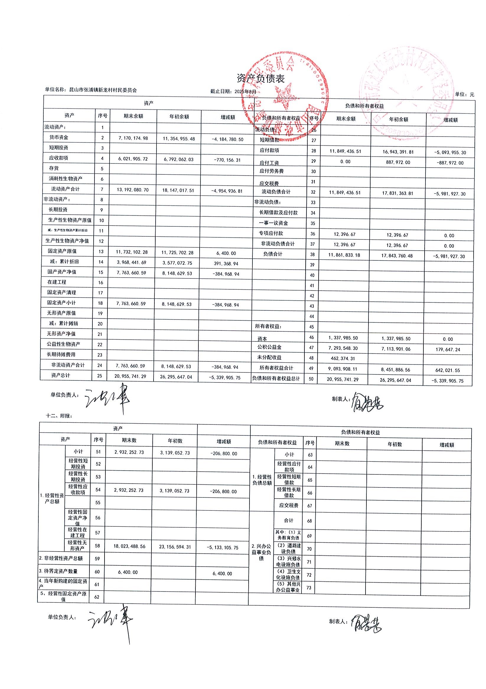 2025年張浦鎮(zhèn)新龍村村民委員會8月財務(wù)公開