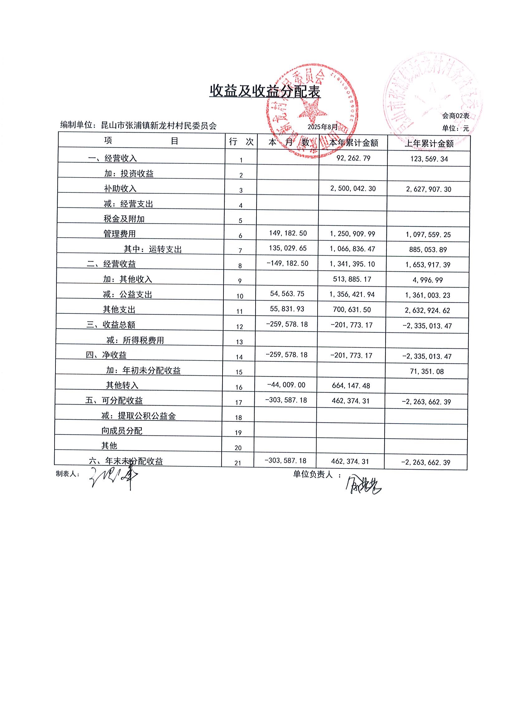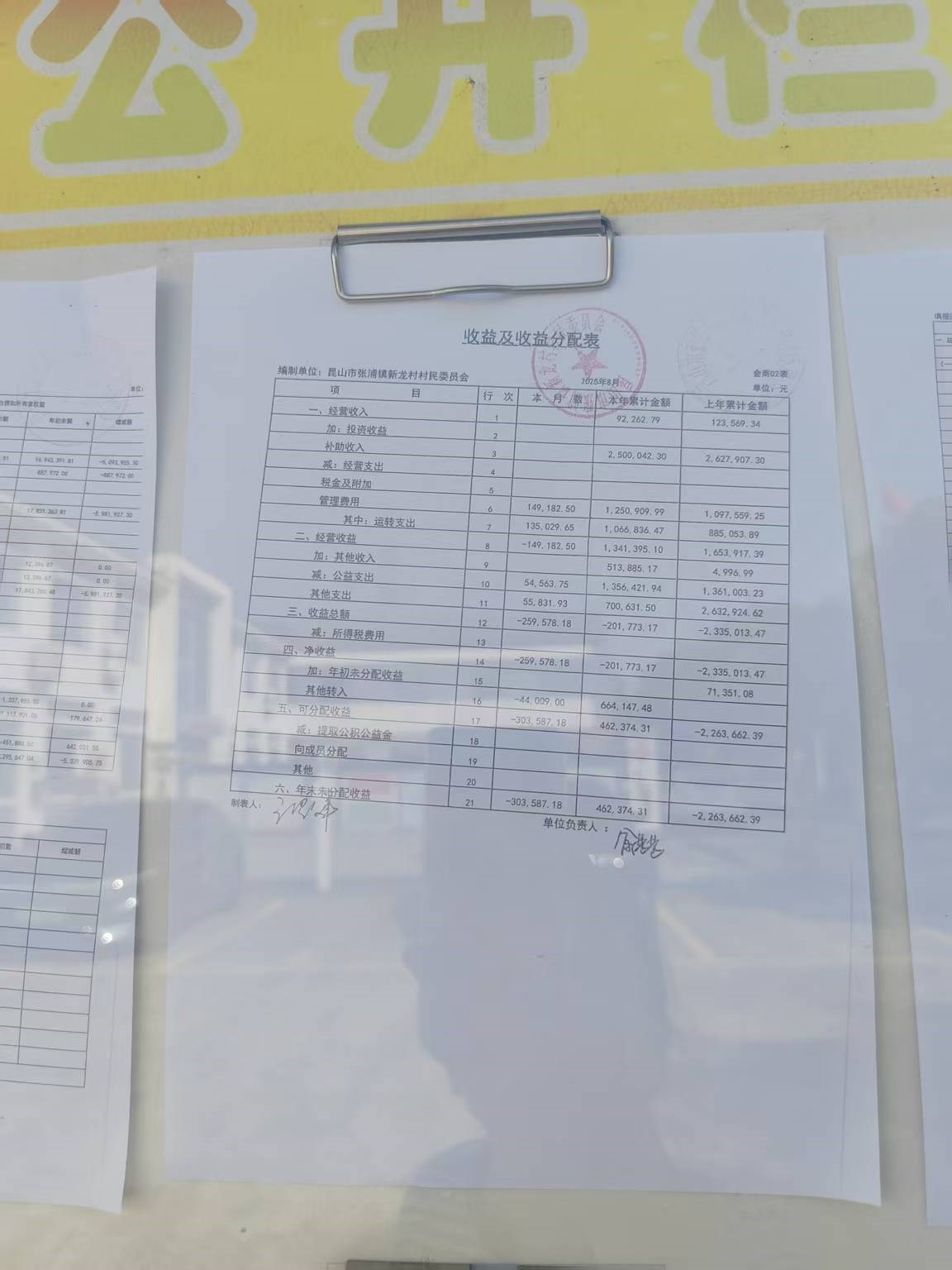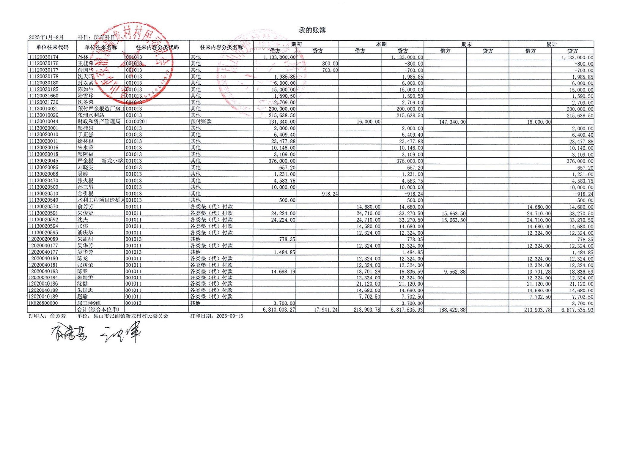 2025年張浦鎮(zhèn)新龍村村民委員會8月財務(wù)公開