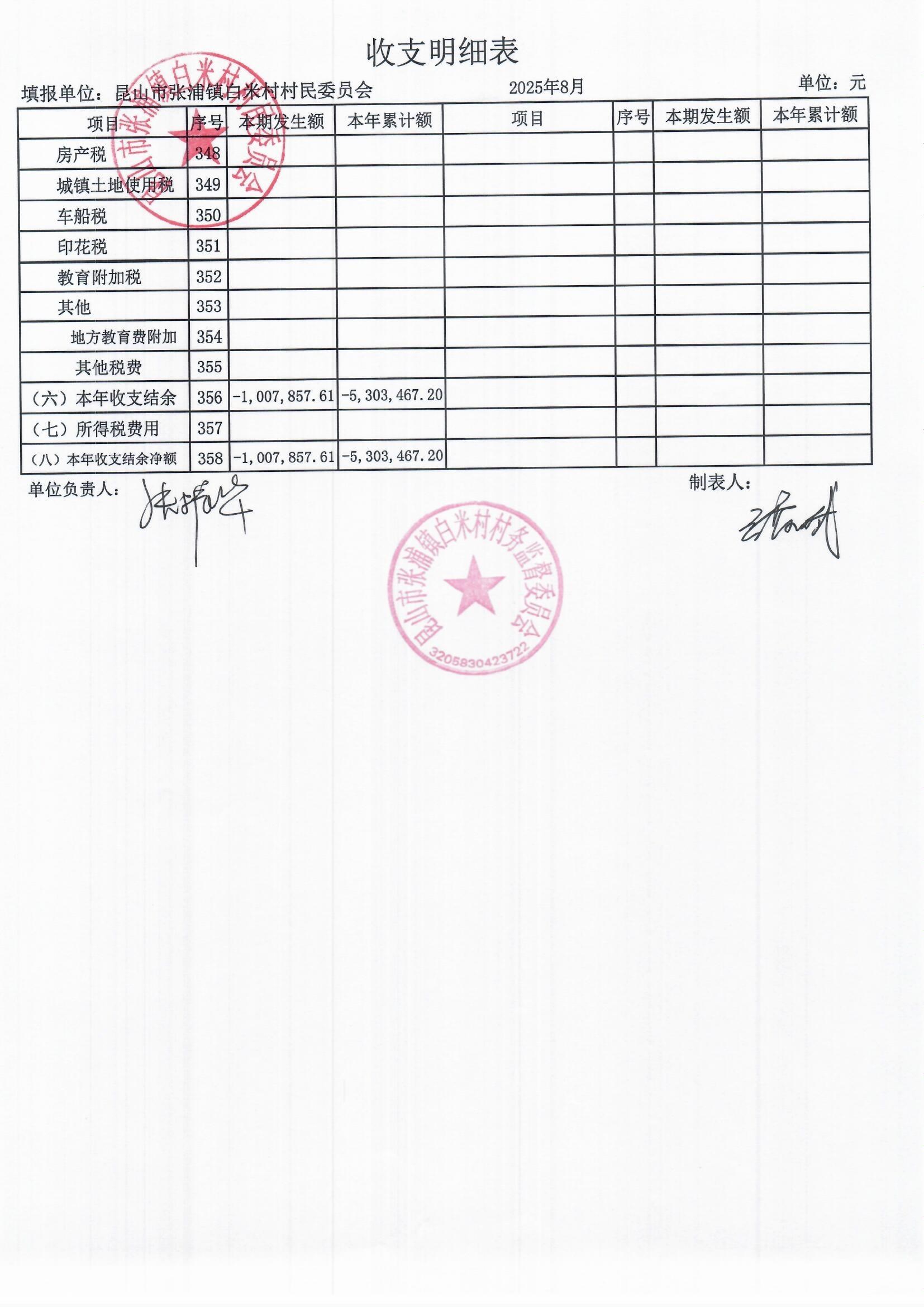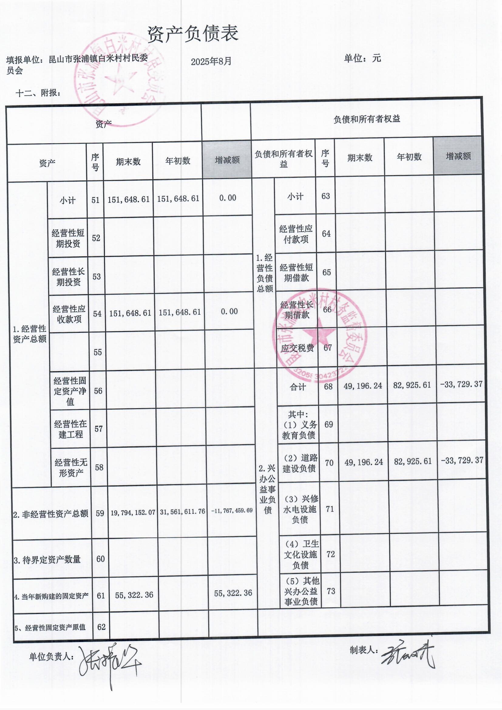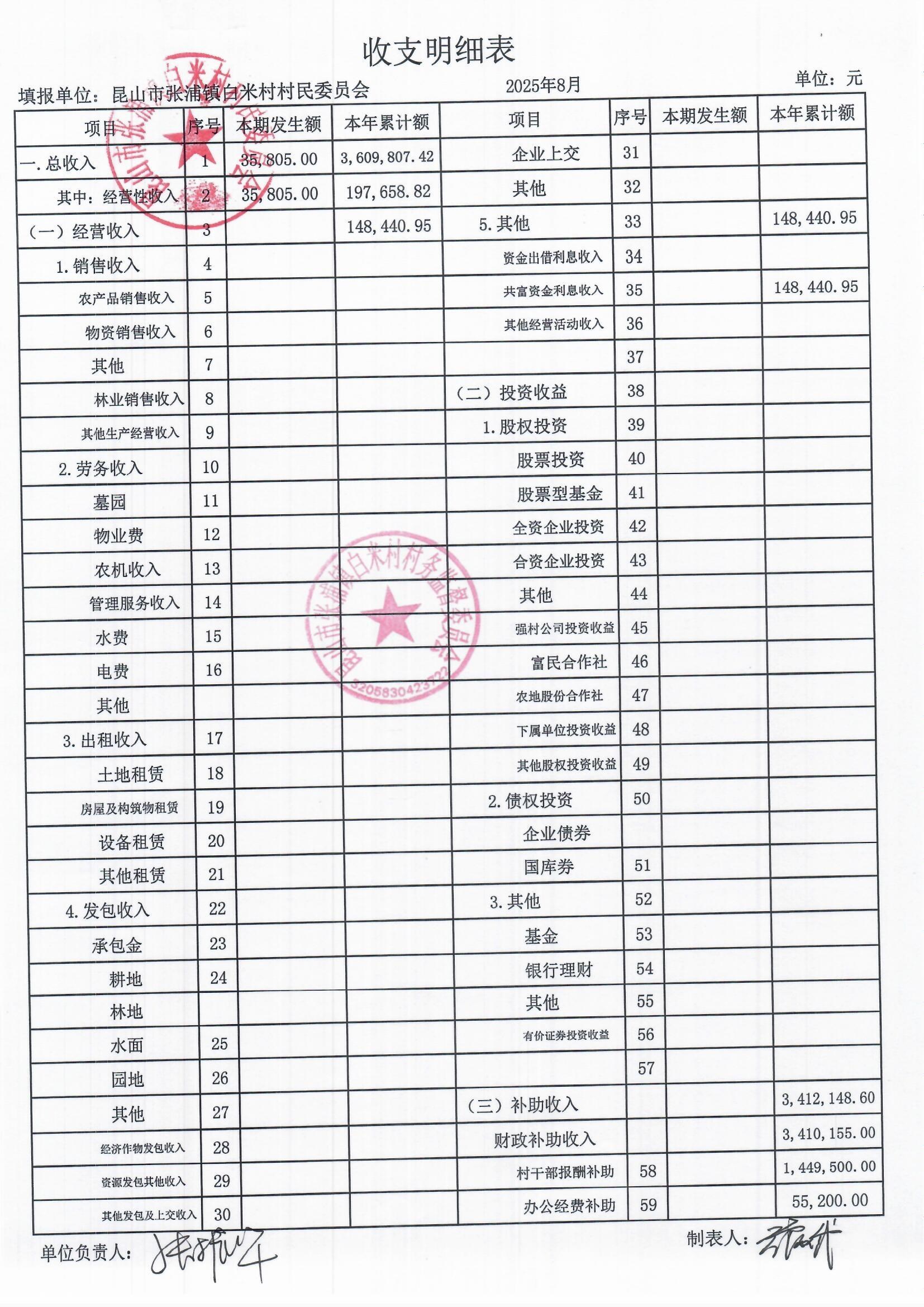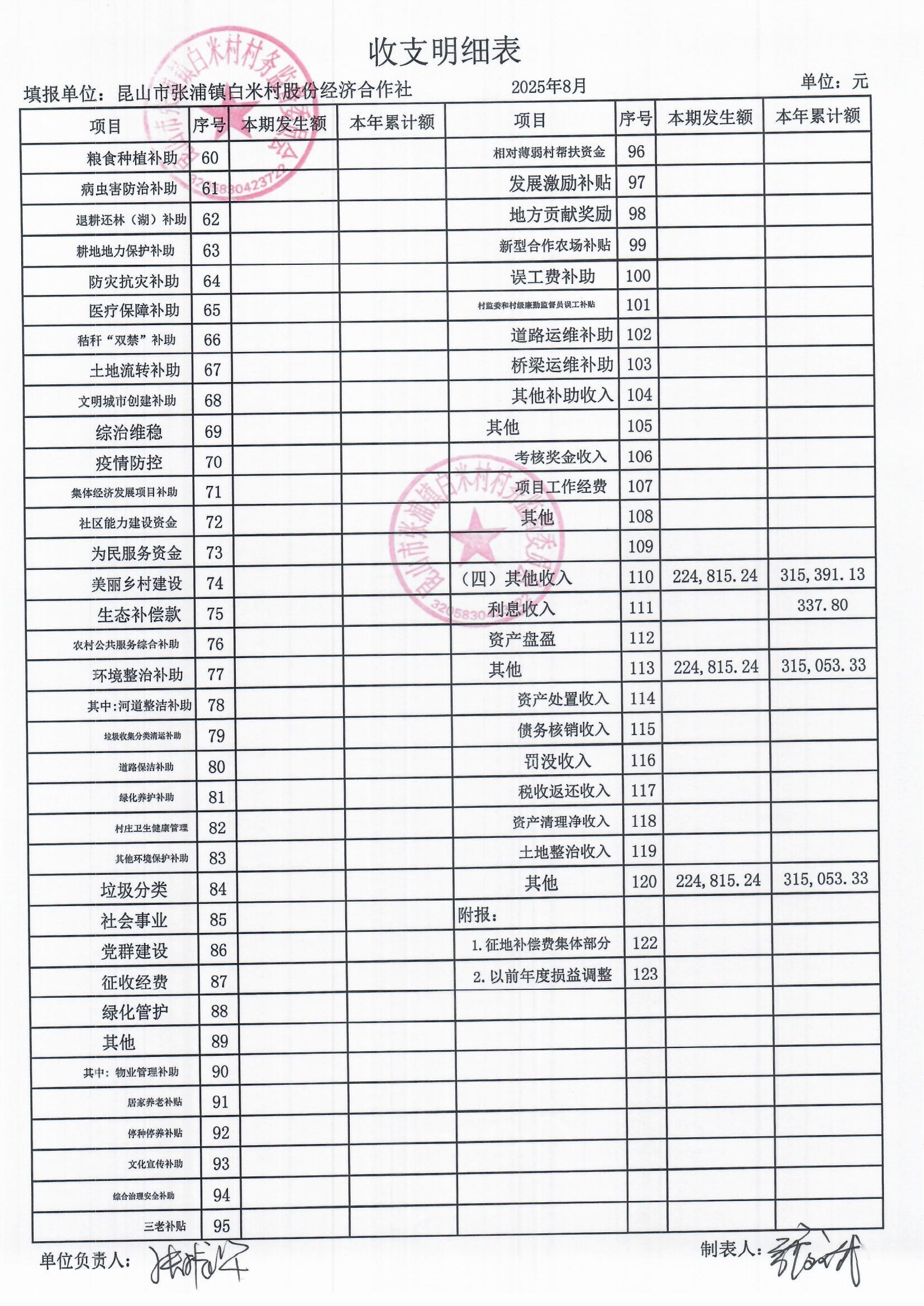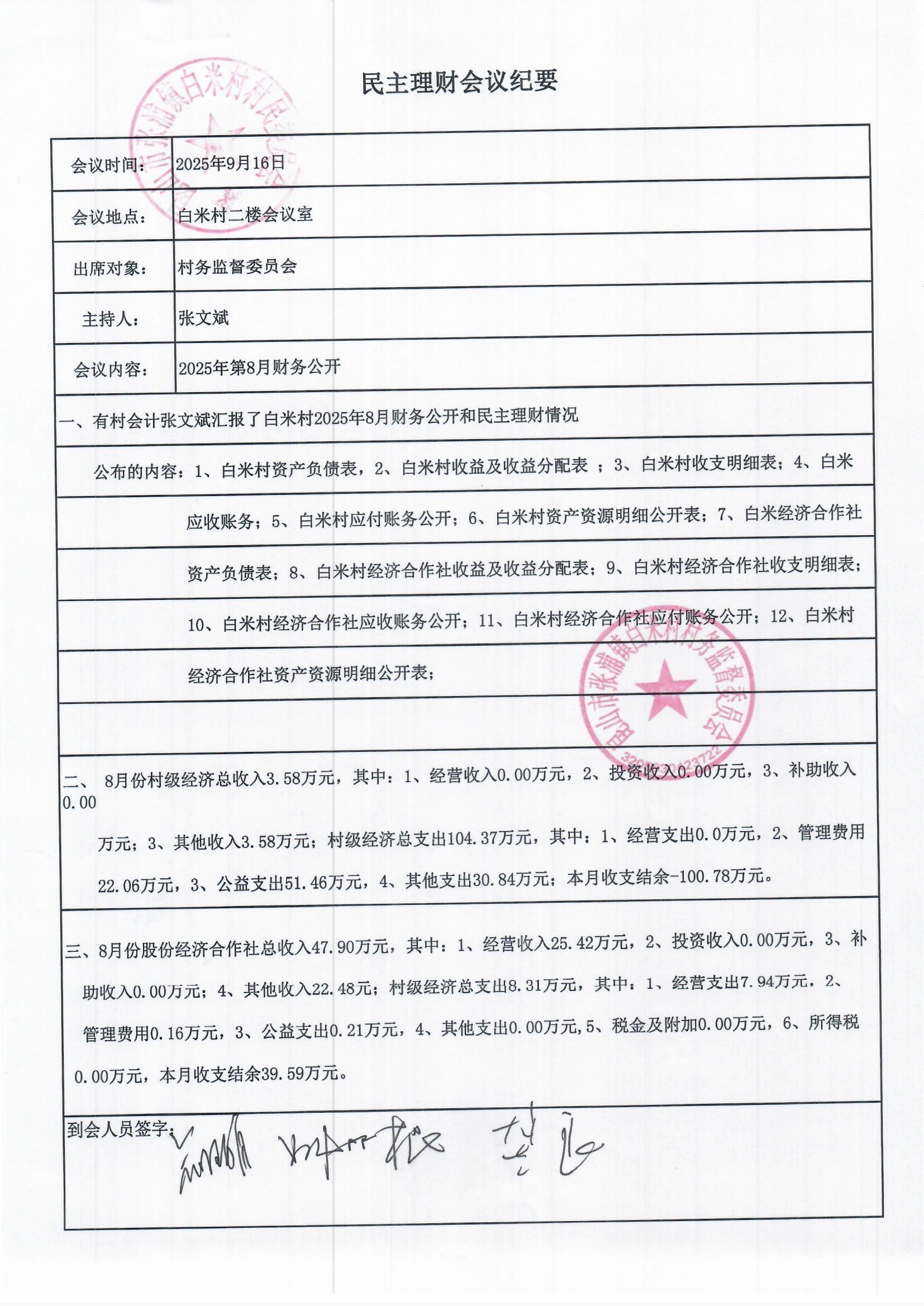 2025年8月白米村委會和股份合作社財務(wù)公開