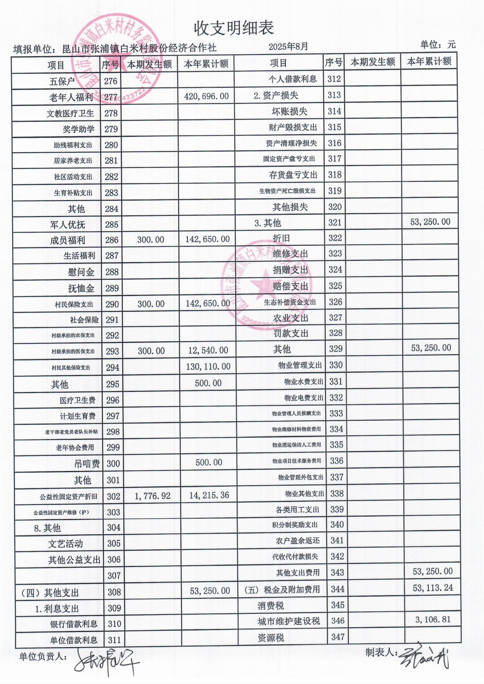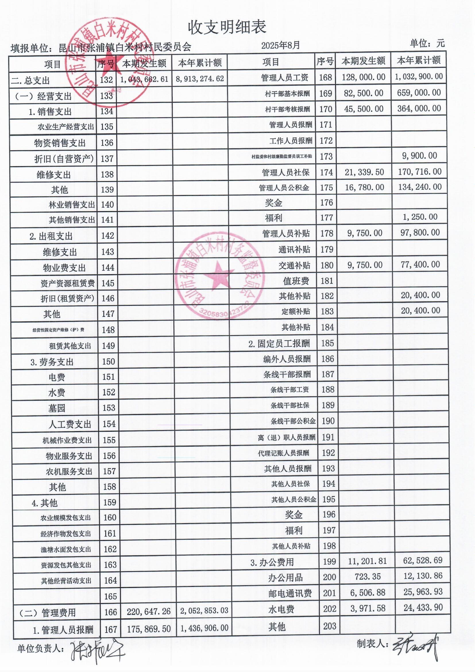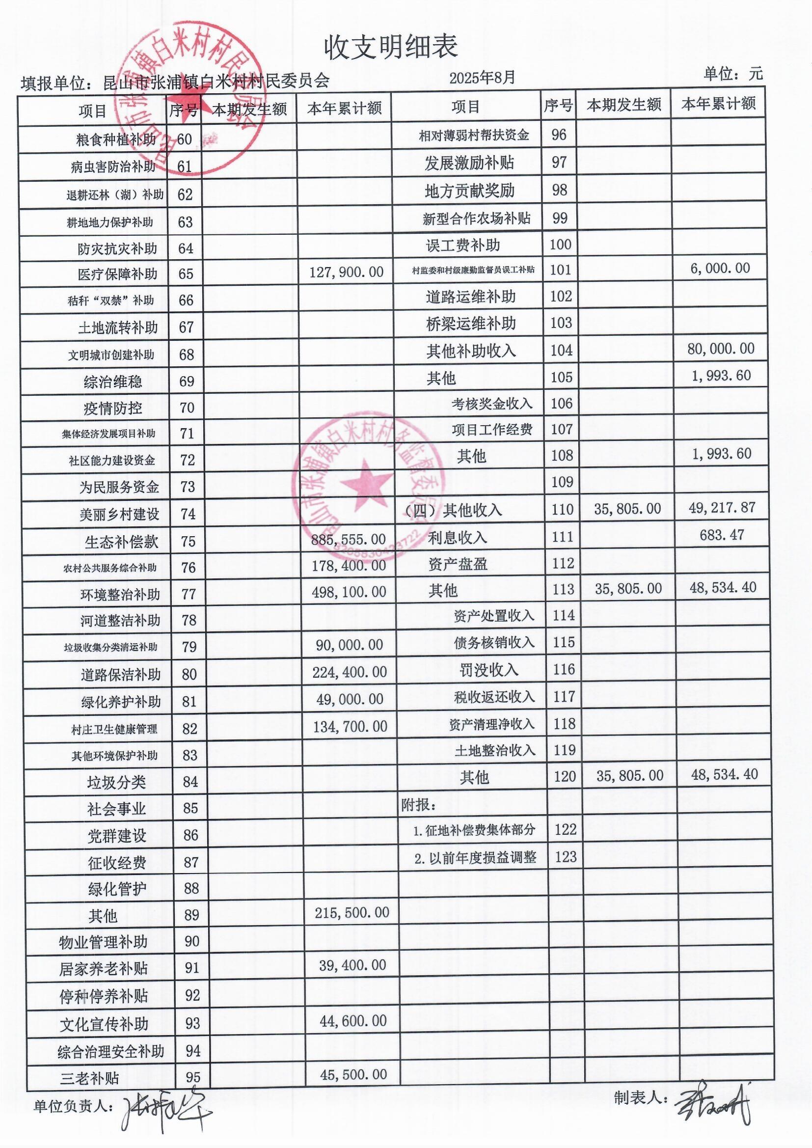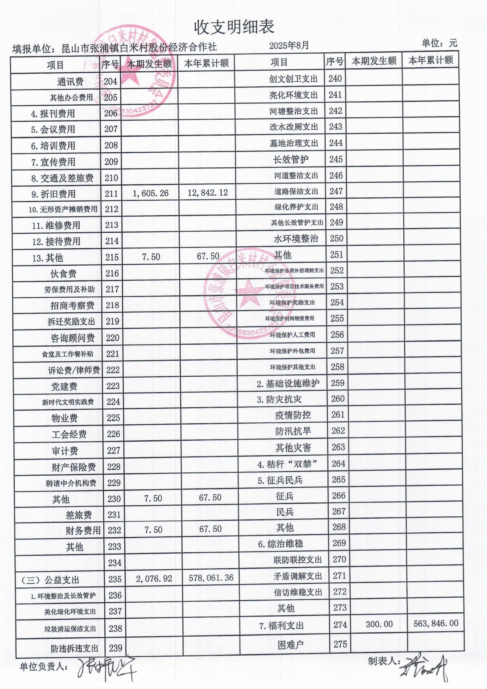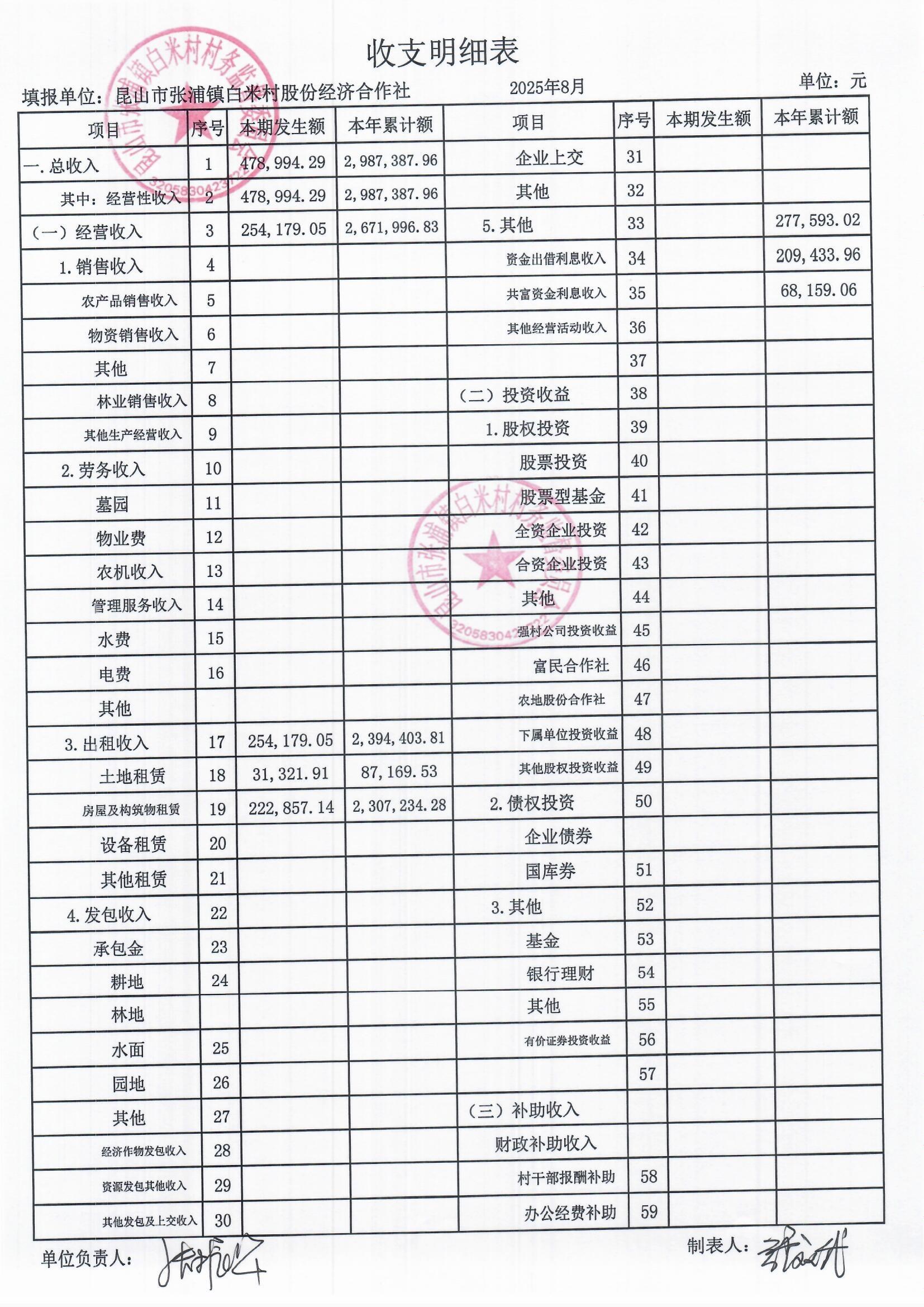 2025年8月白米村委會和股份合作社財務(wù)公開