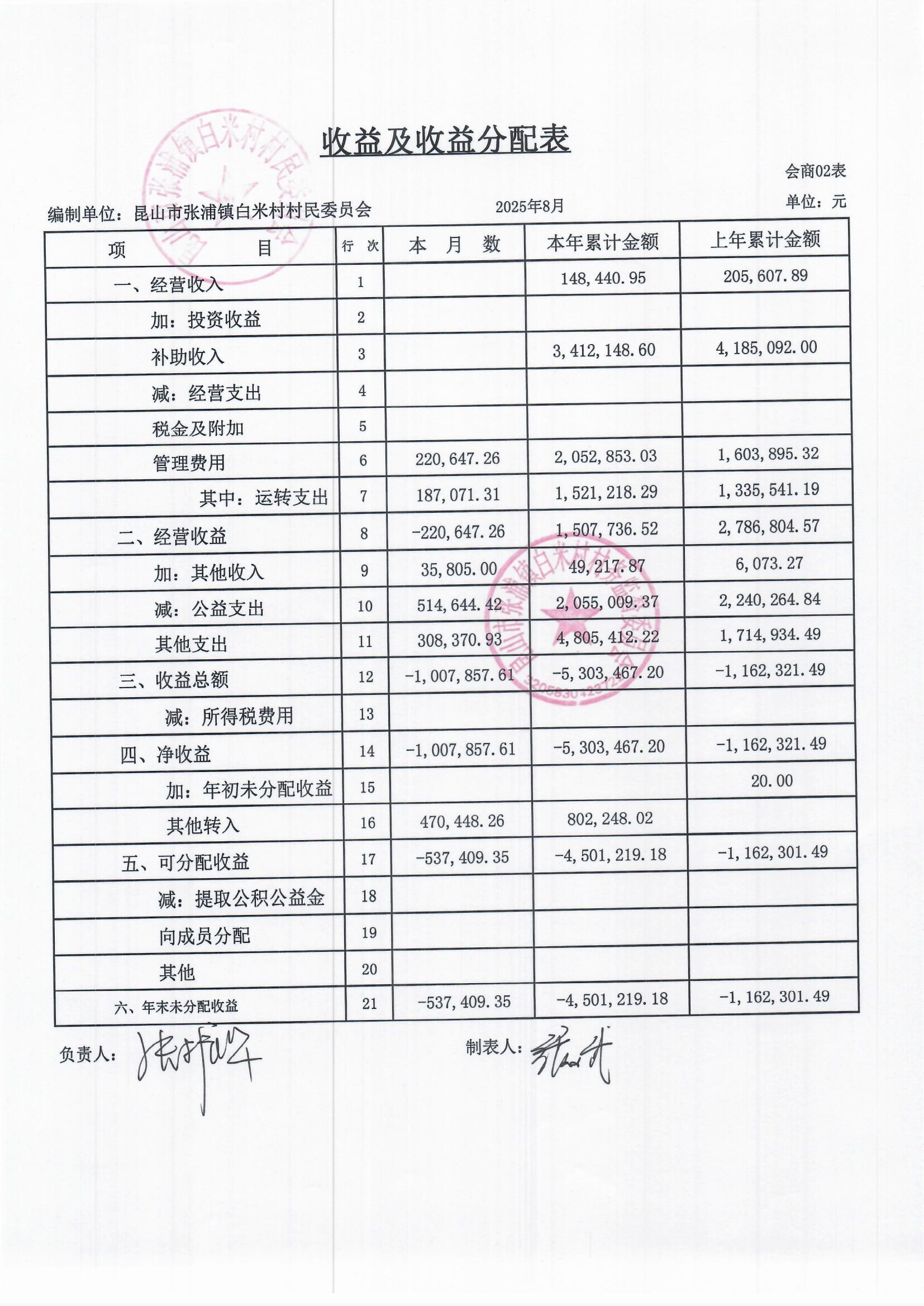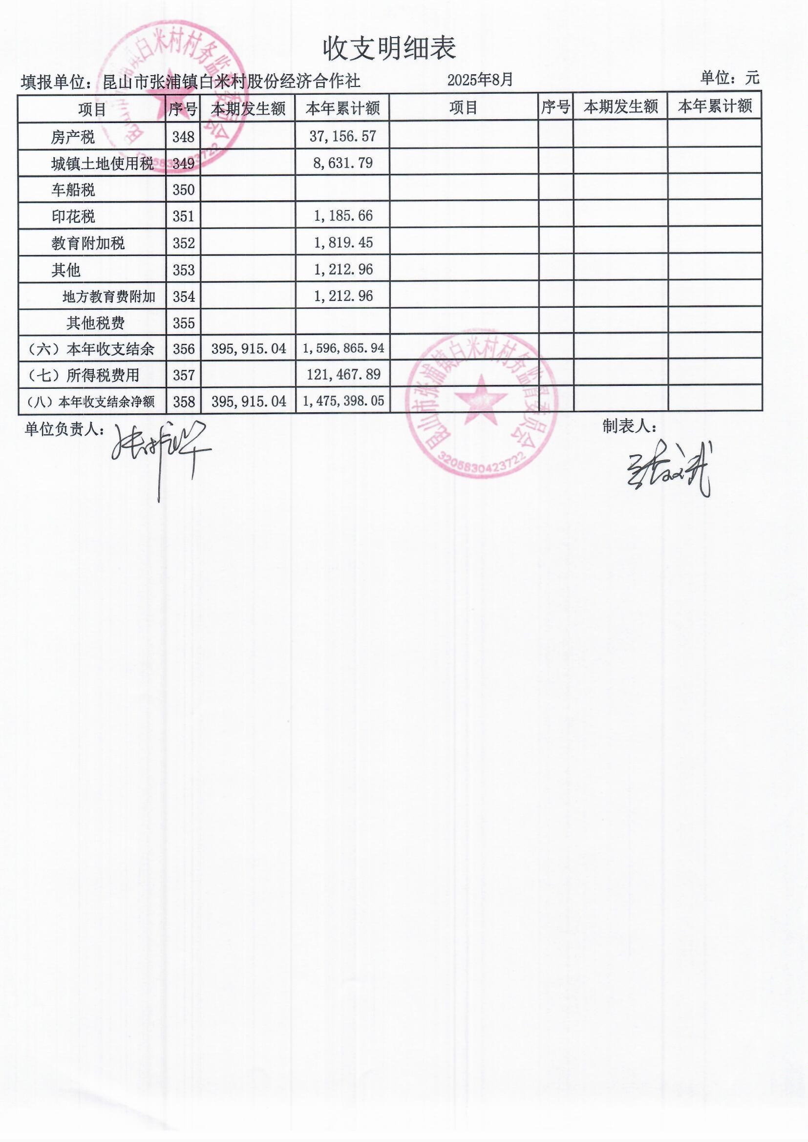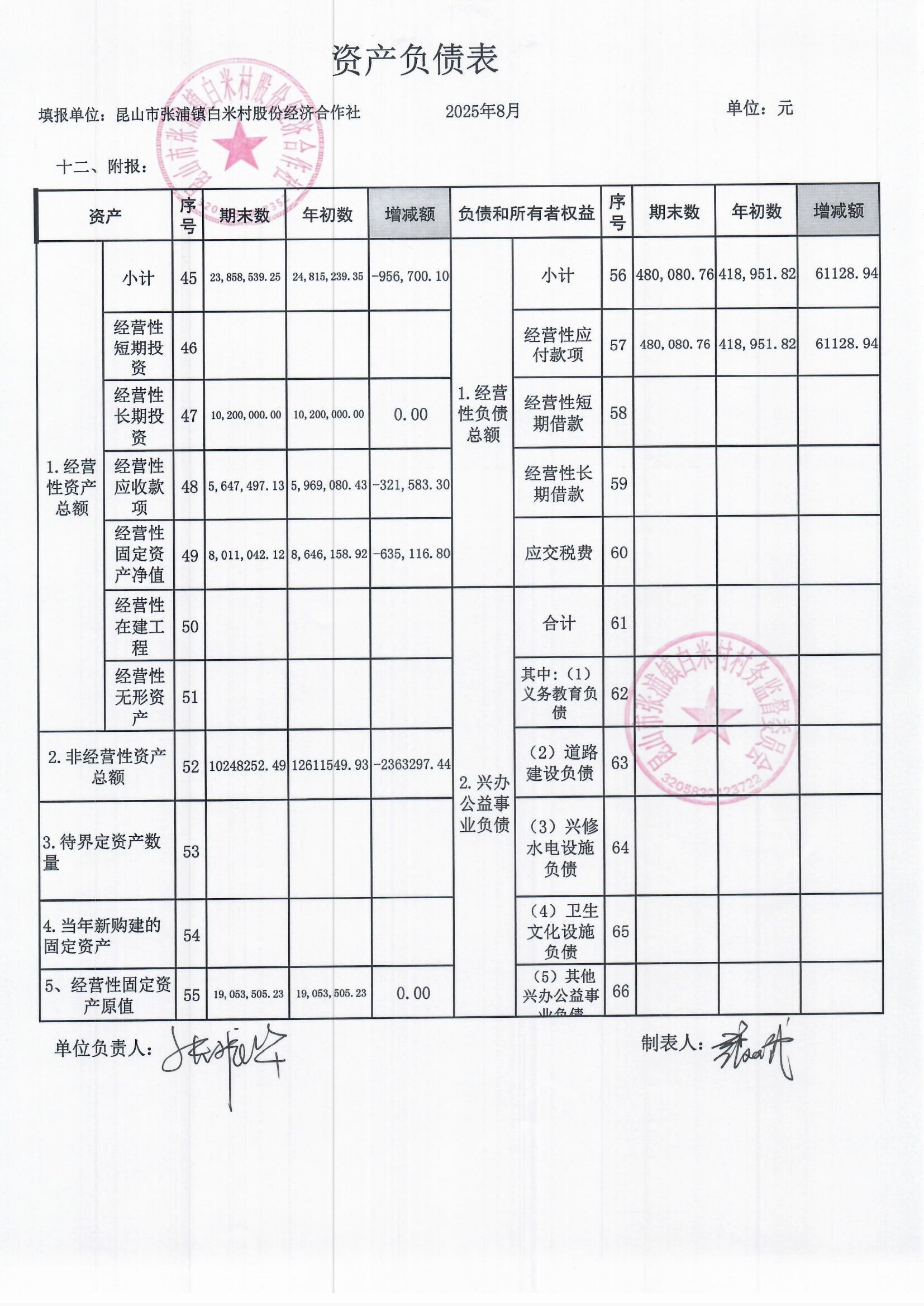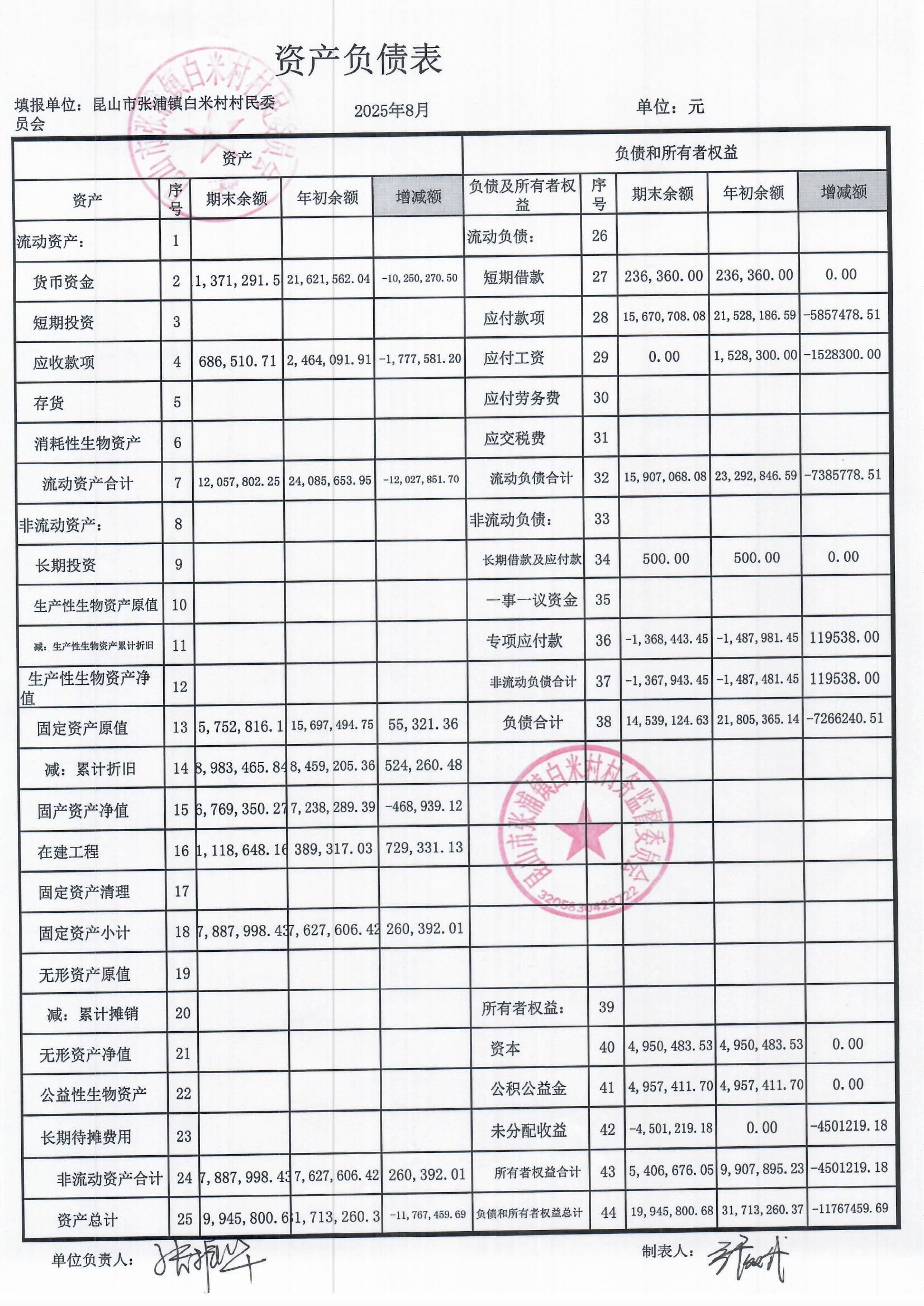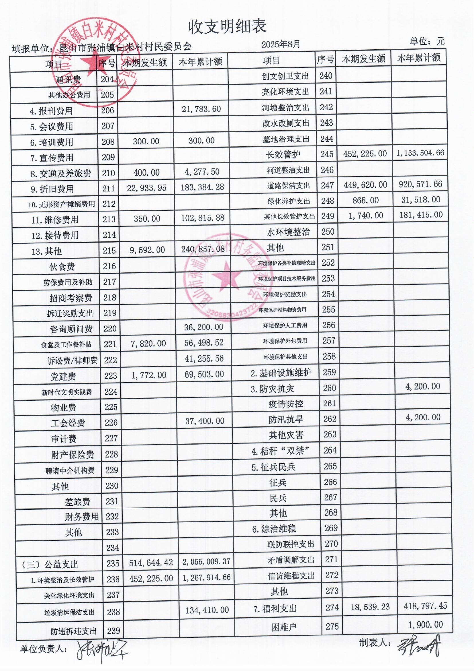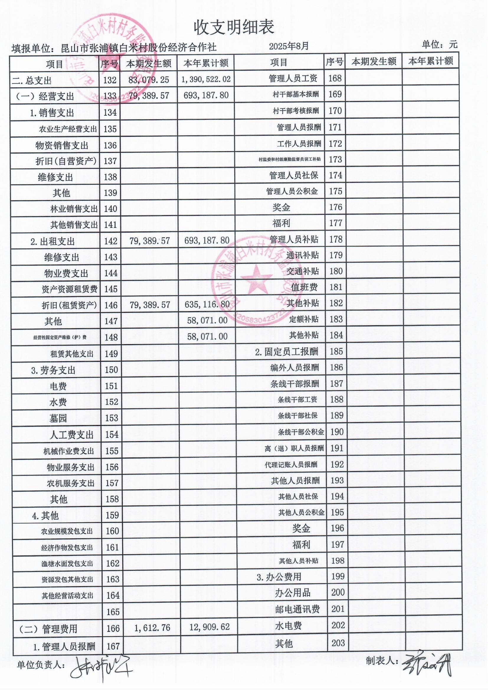 2025年8月白米村委會和股份合作社財務(wù)公開