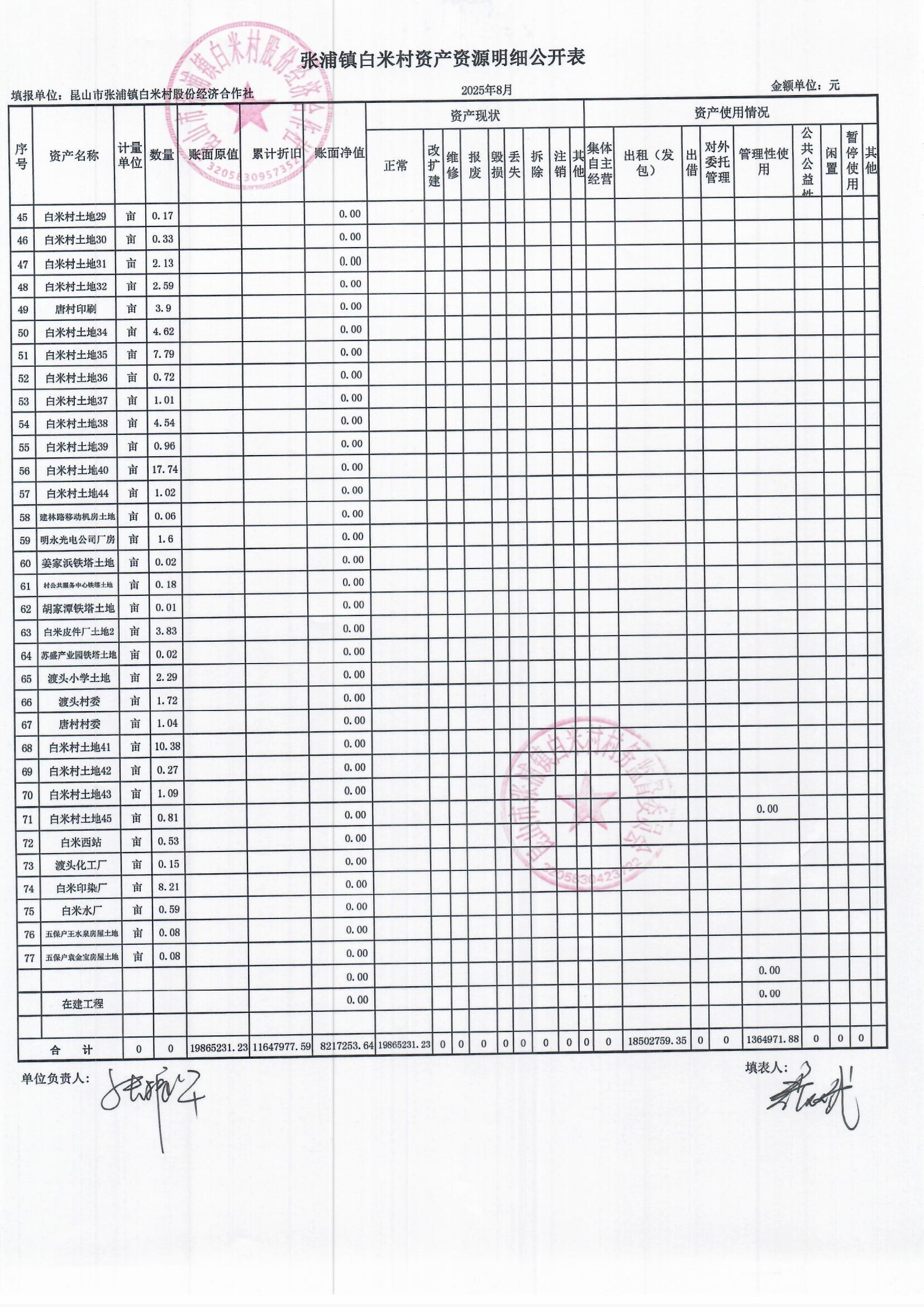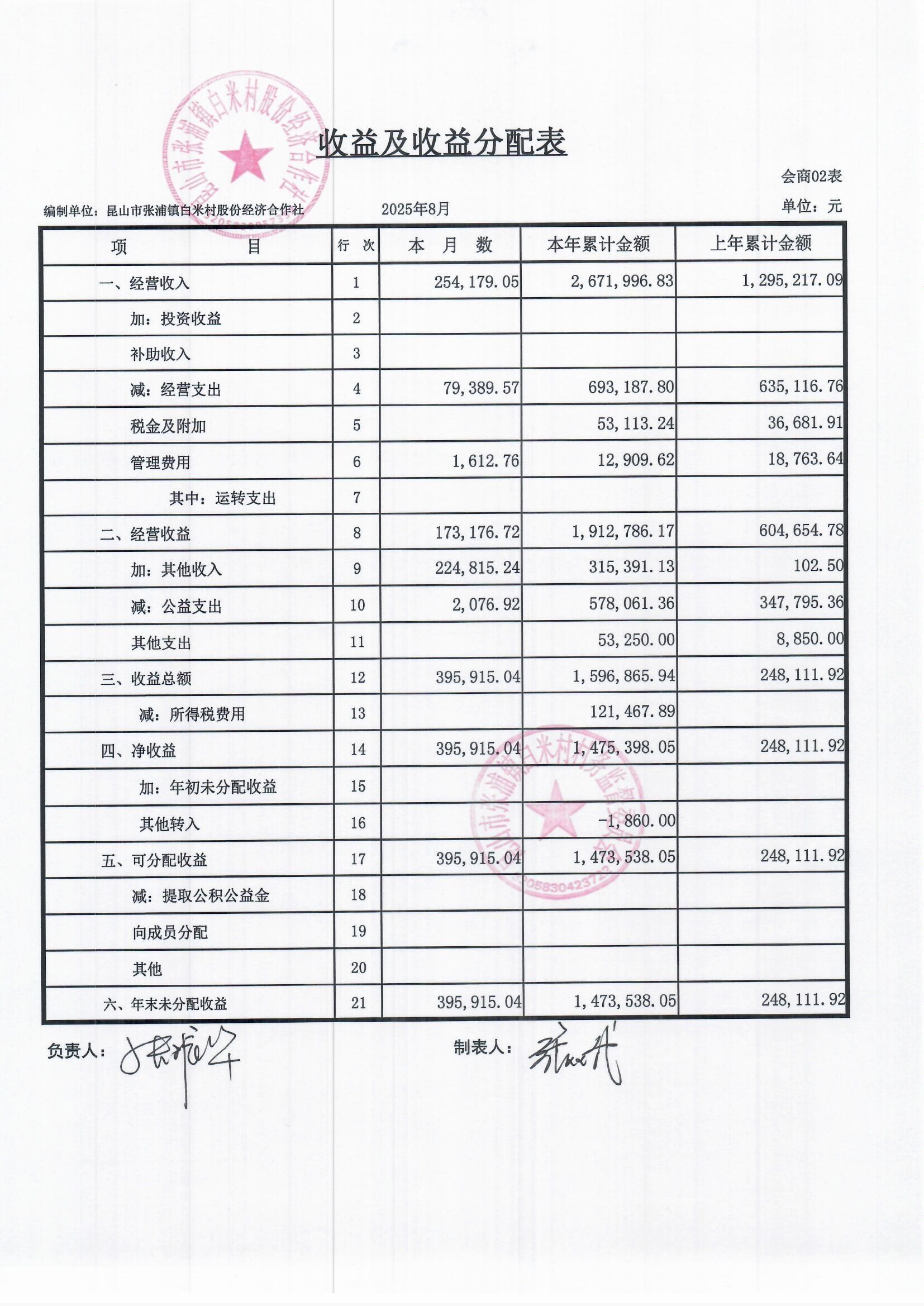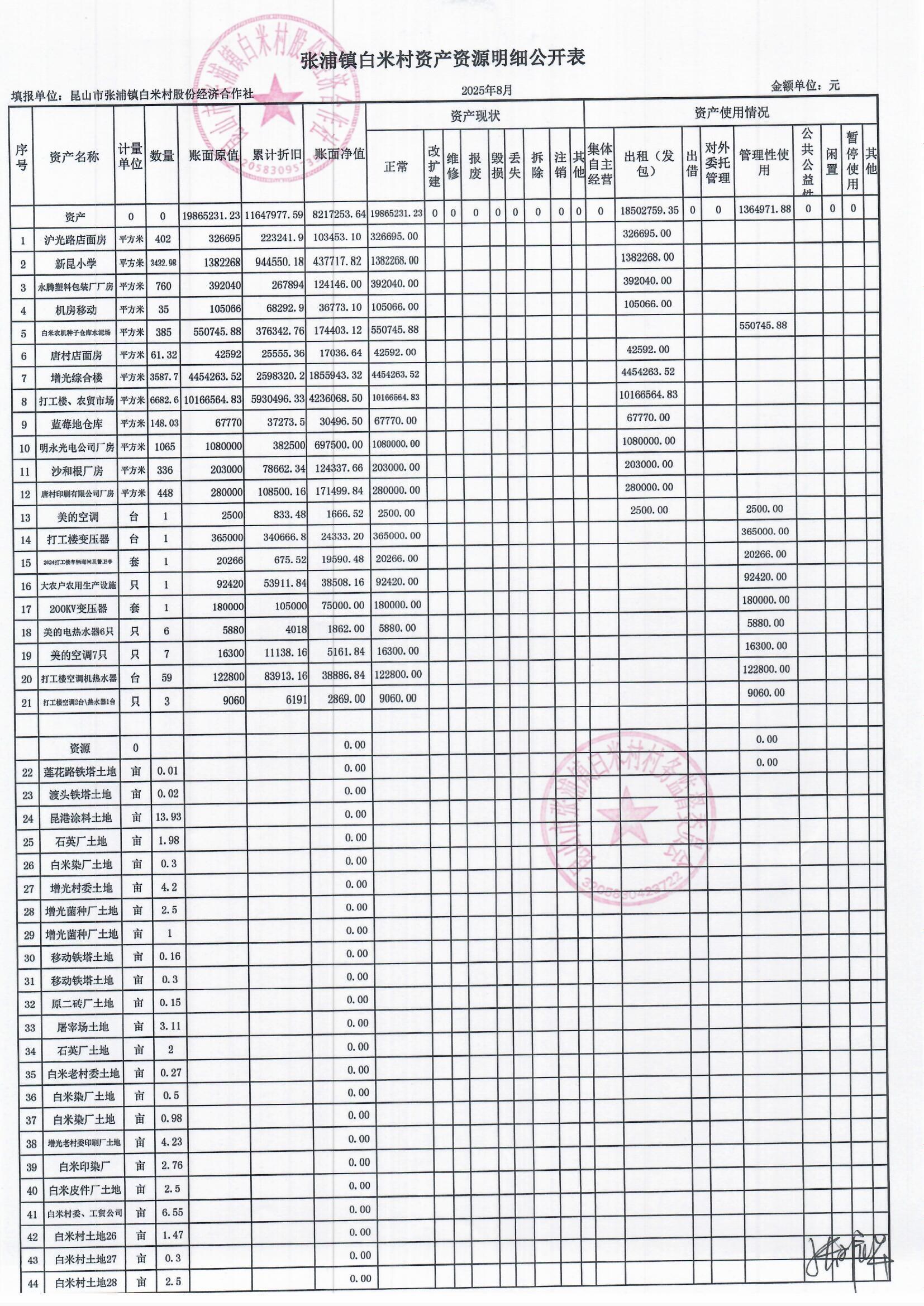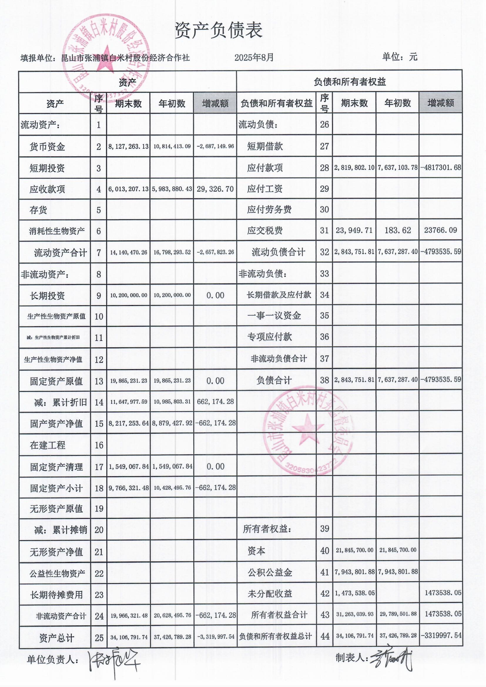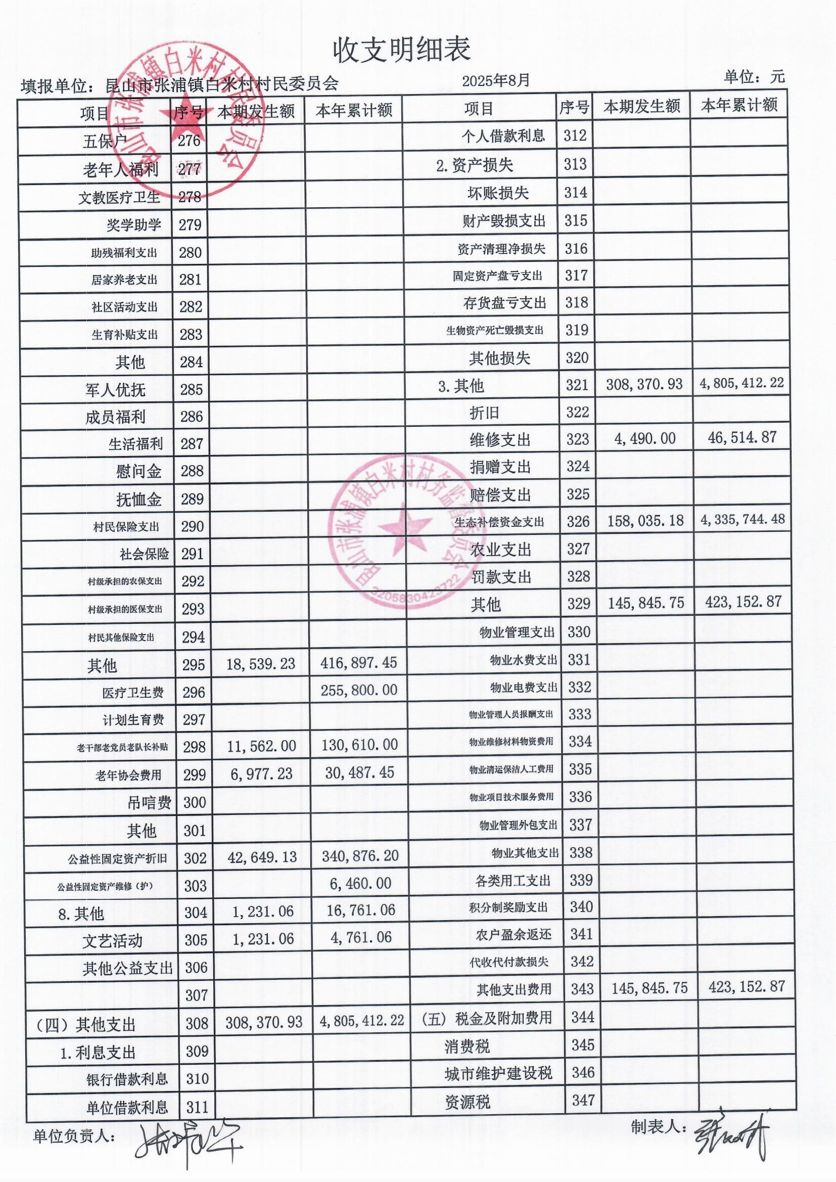 2025年8月白米村委會和股份合作社財務(wù)公開