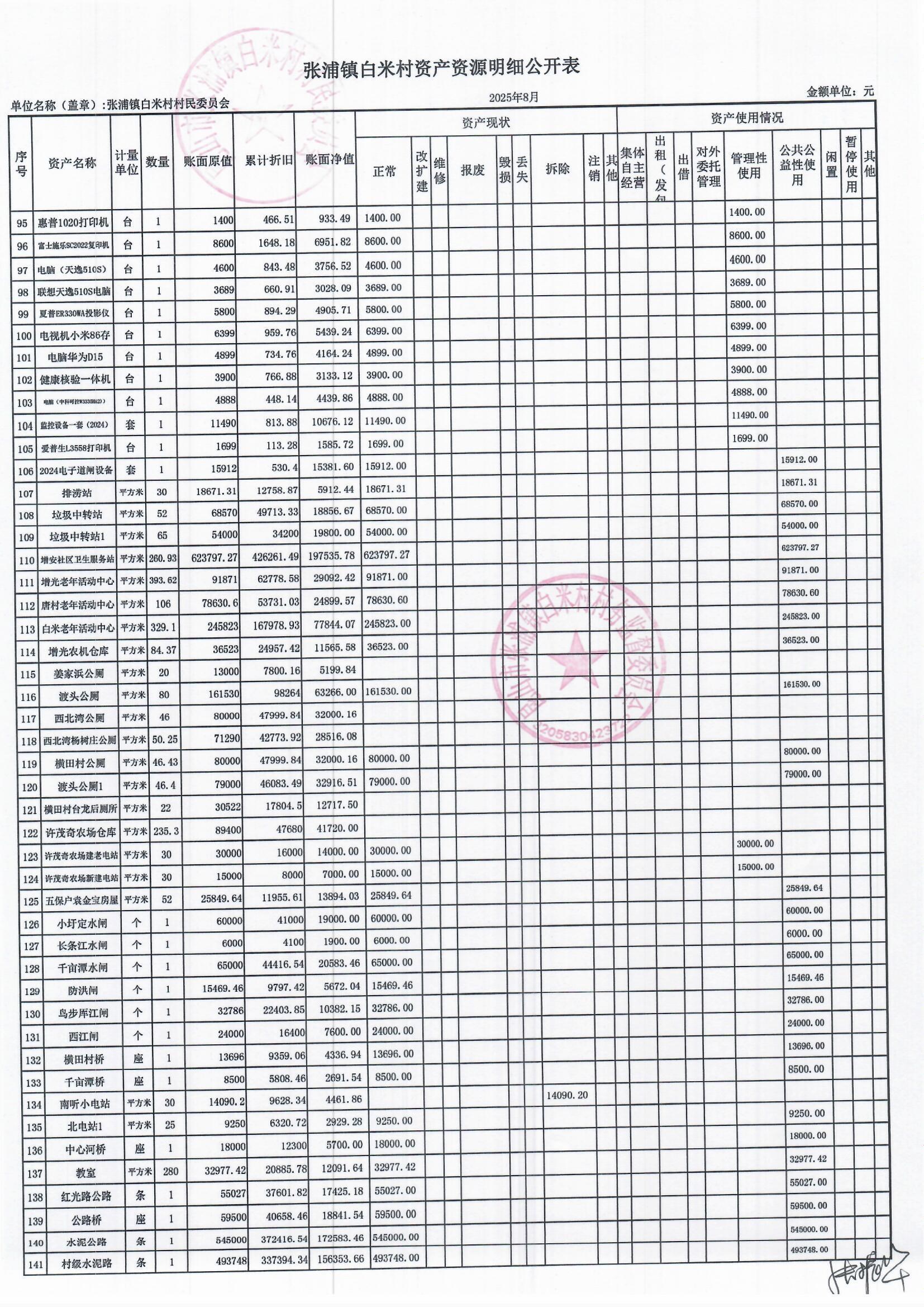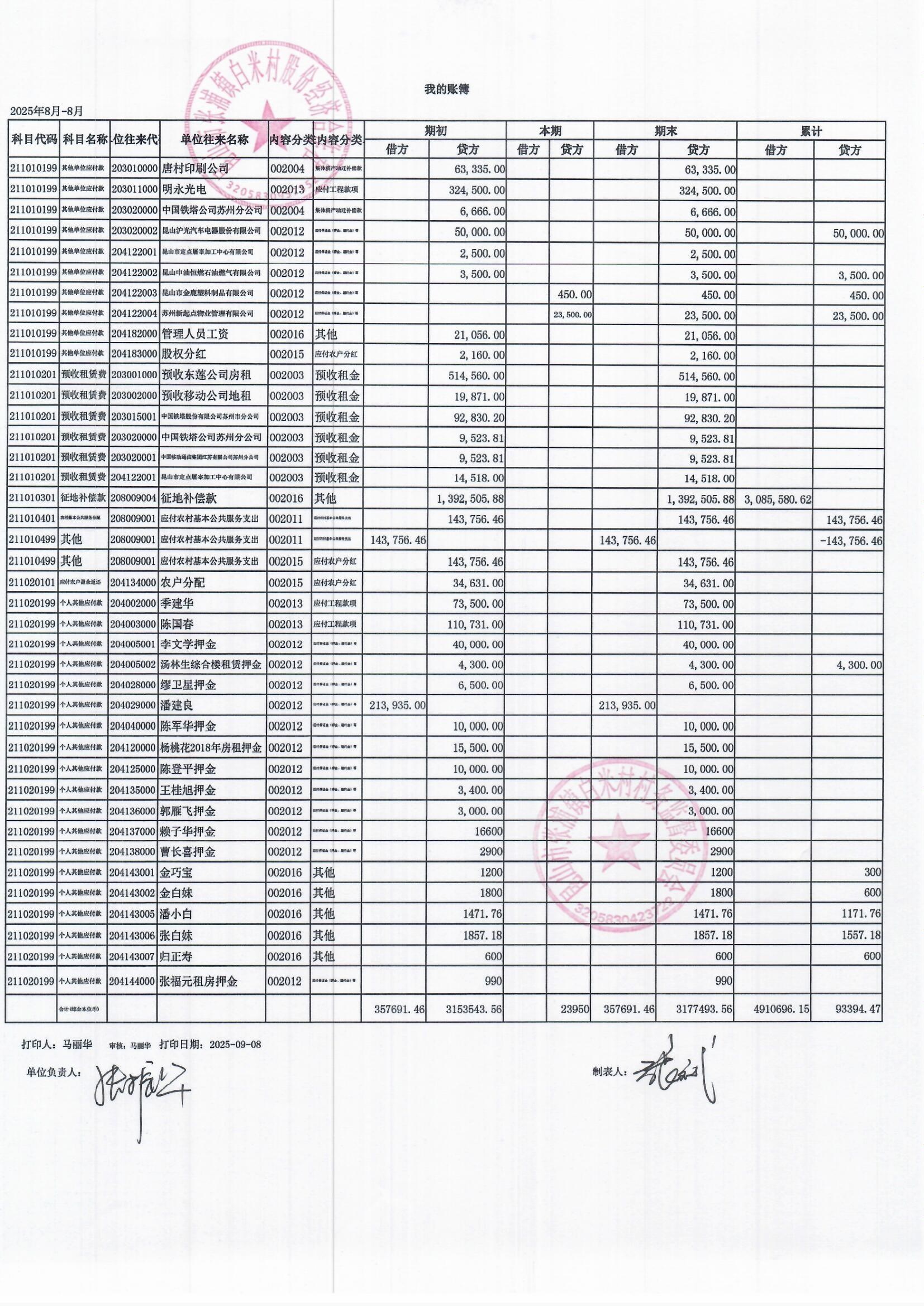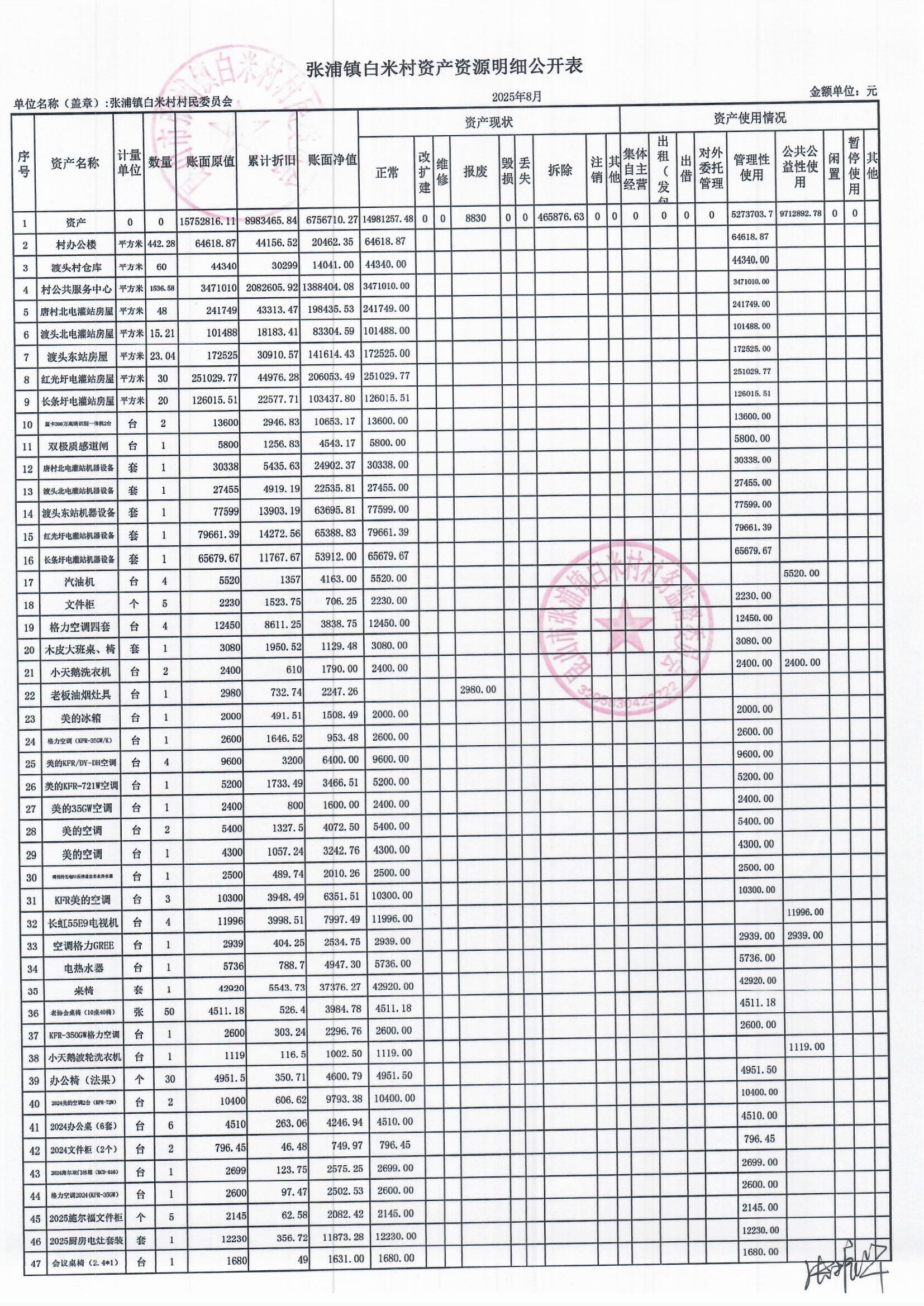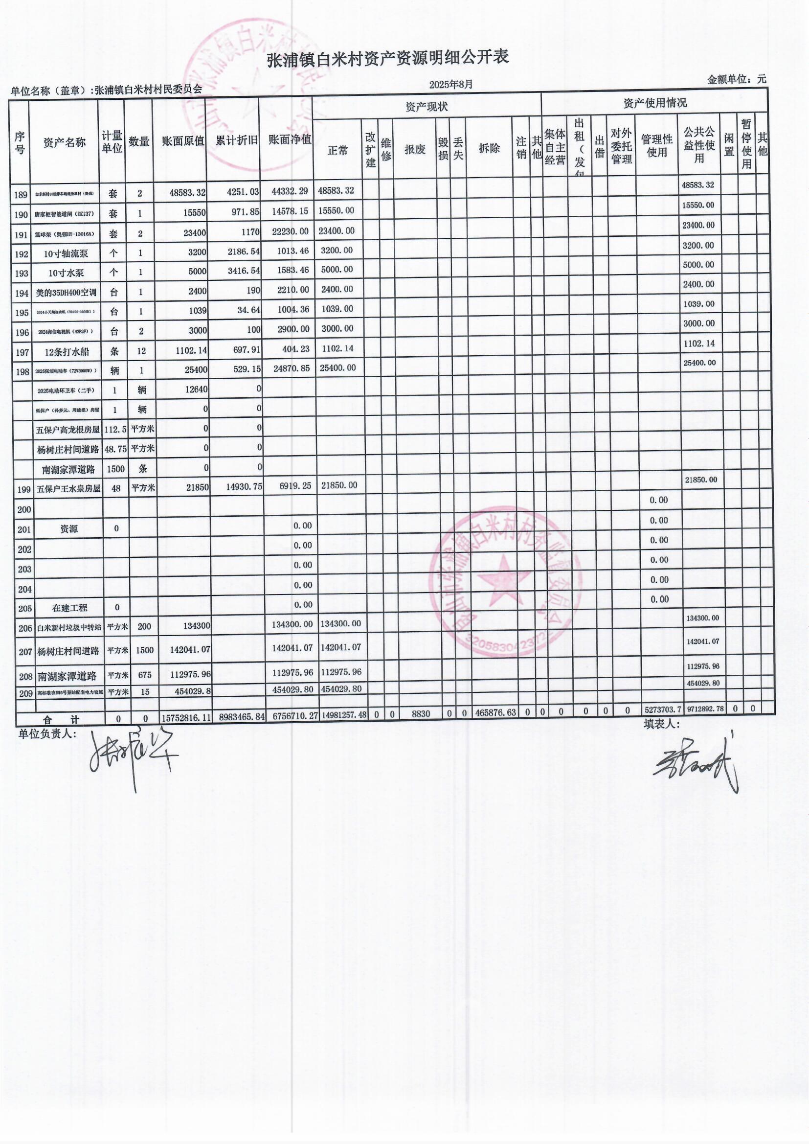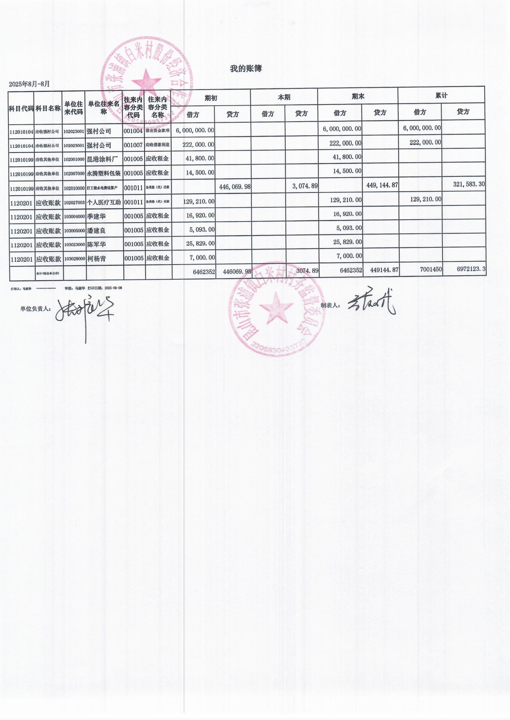 2025年8月白米村委會和股份合作社財務(wù)公開