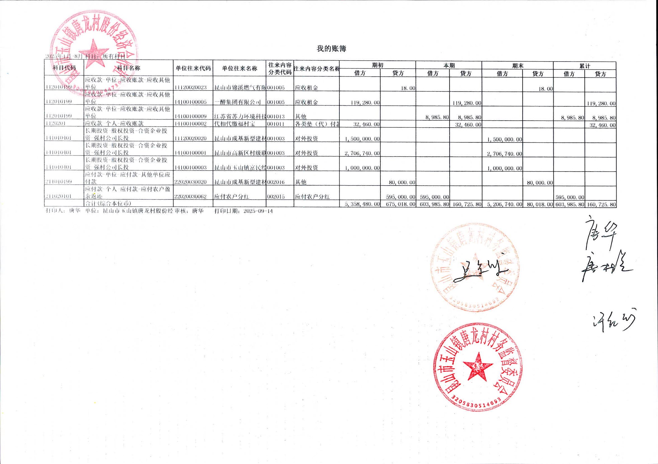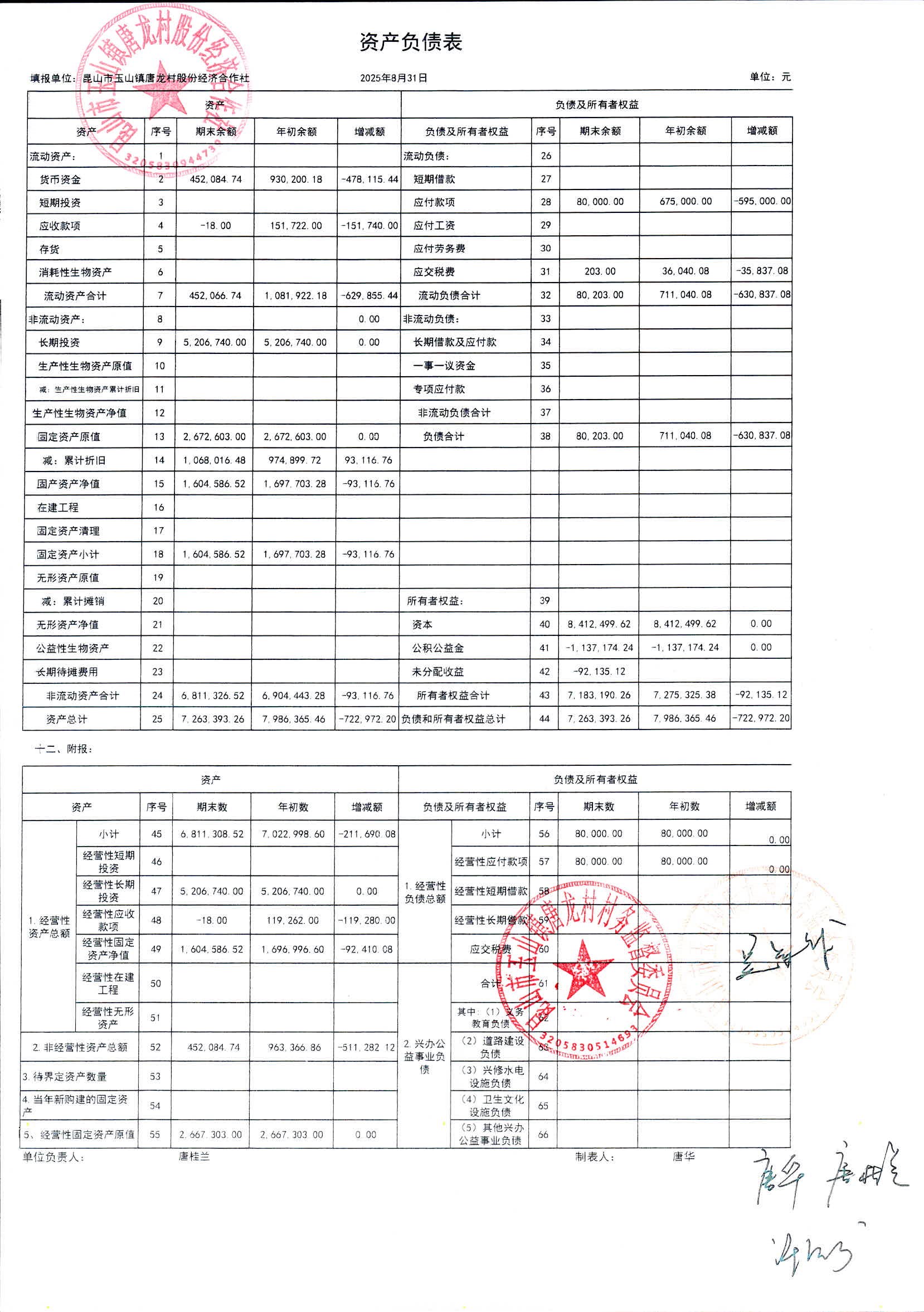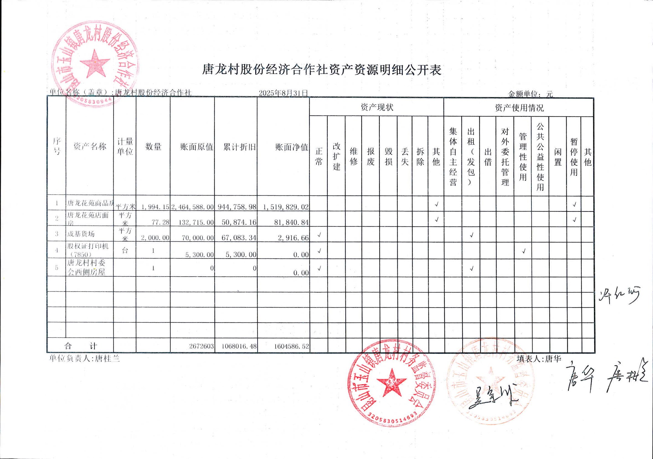 2025年9月唐龍村股份經(jīng)濟合作社財務(wù)公開