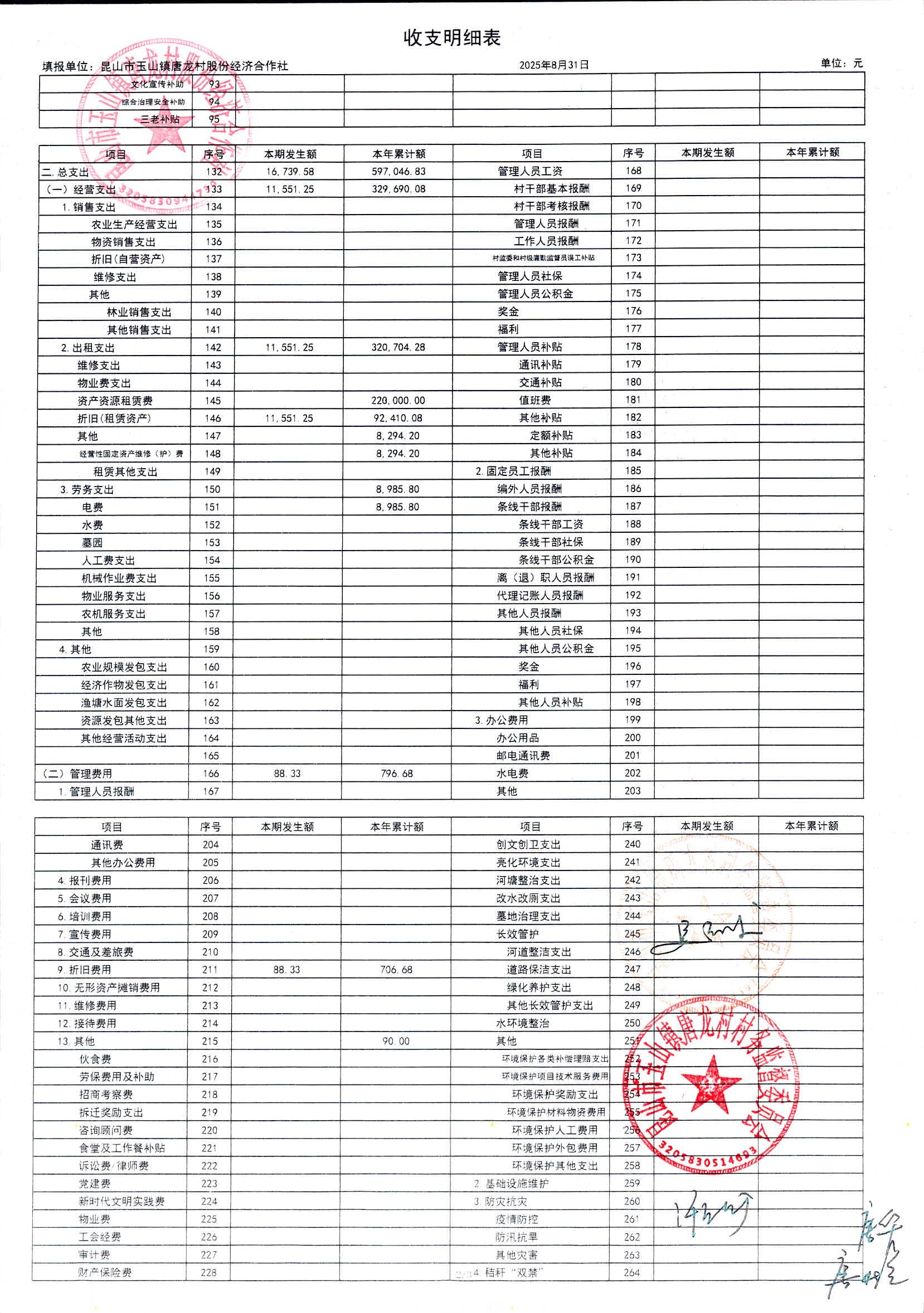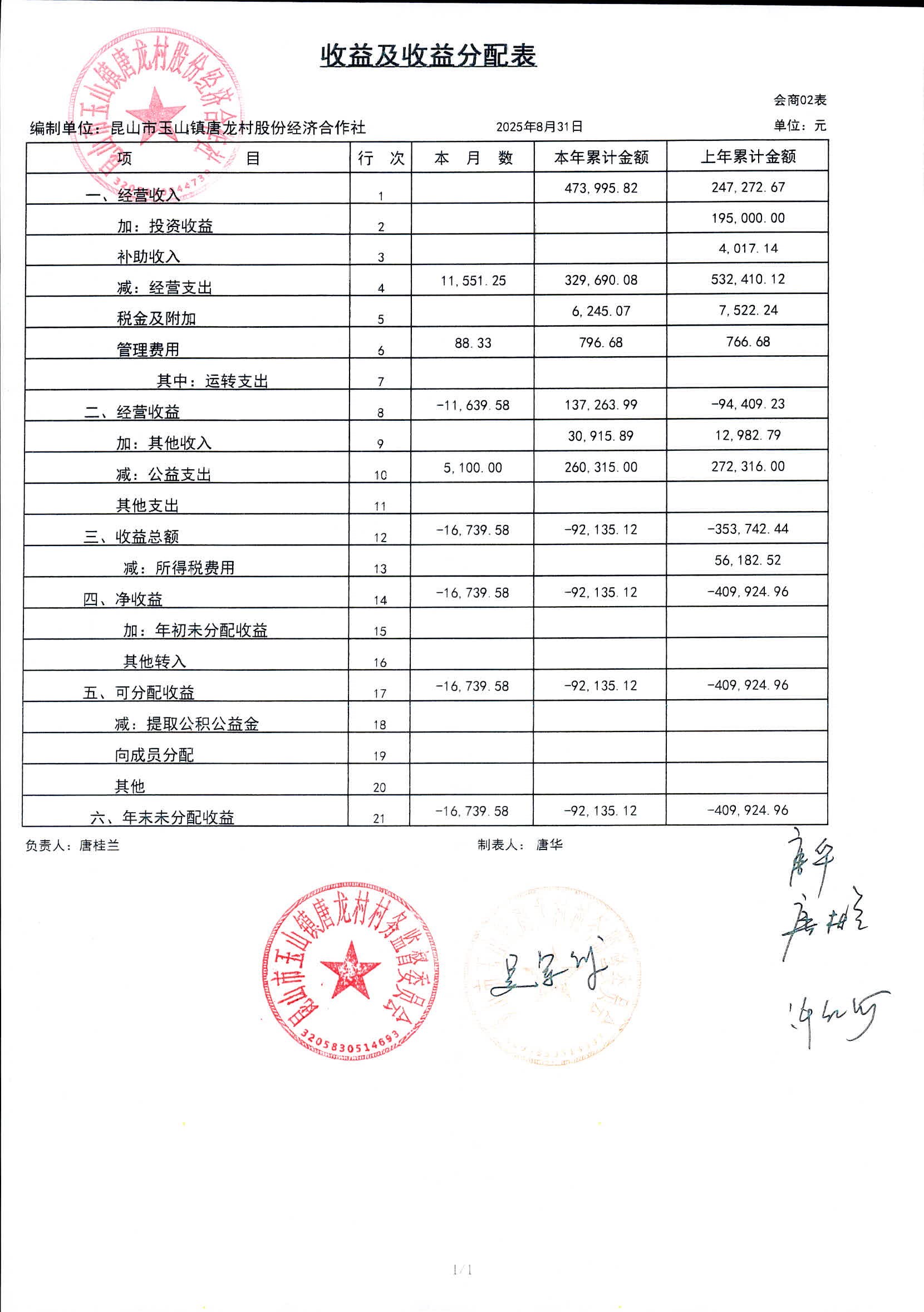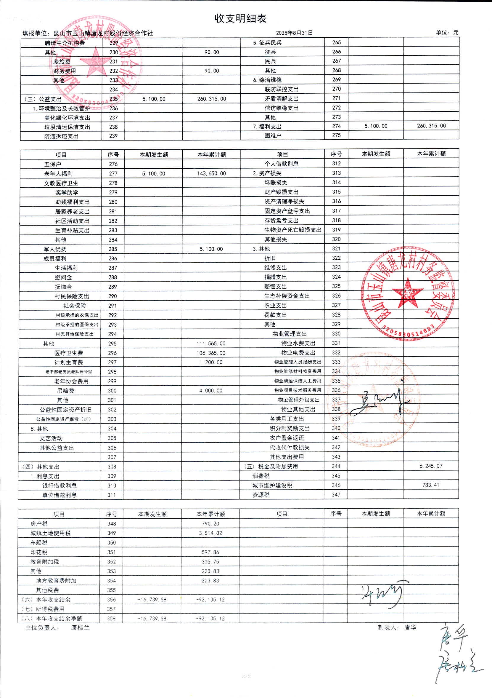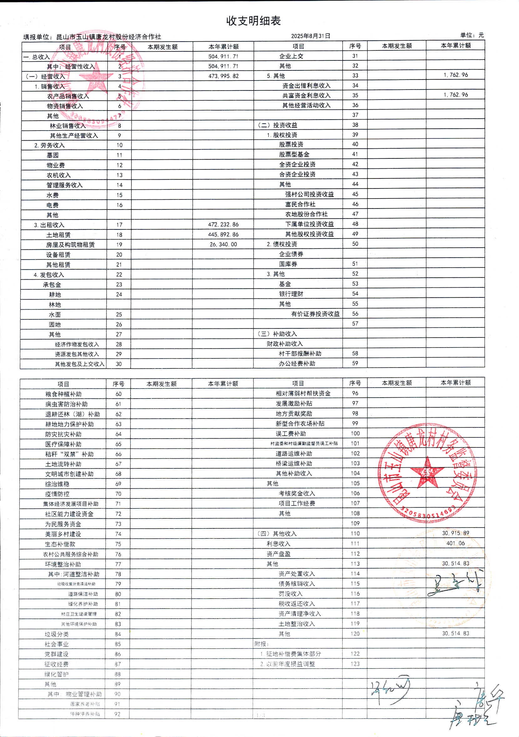 2025年9月唐龍村股份經(jīng)濟合作社財務(wù)公開