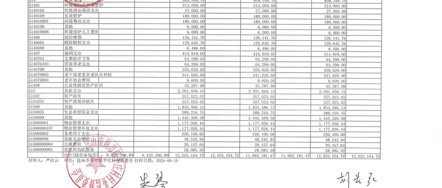 2025年第三季度(8月)平莊村村委會(huì)財(cái)務(wù)公開(定期公開)