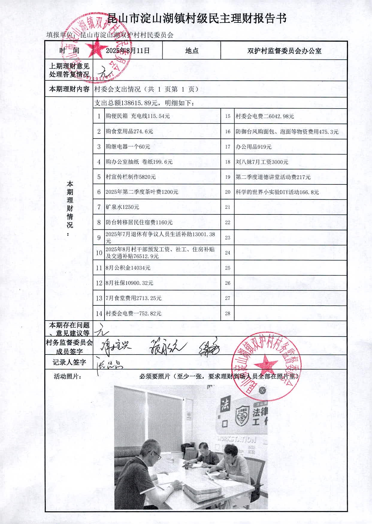 2025年8月雙護(hù)村理財(cái)報(bào)告書